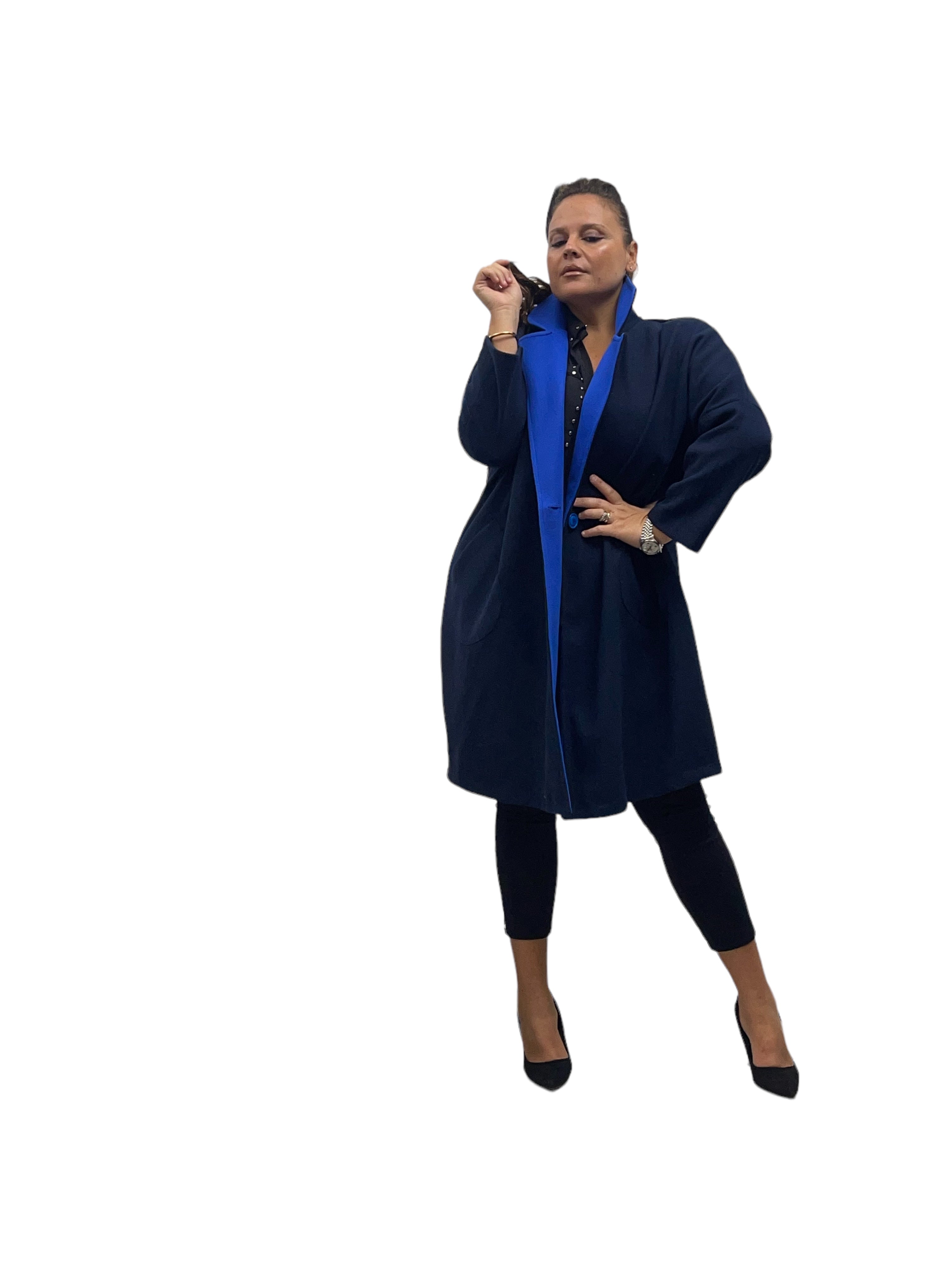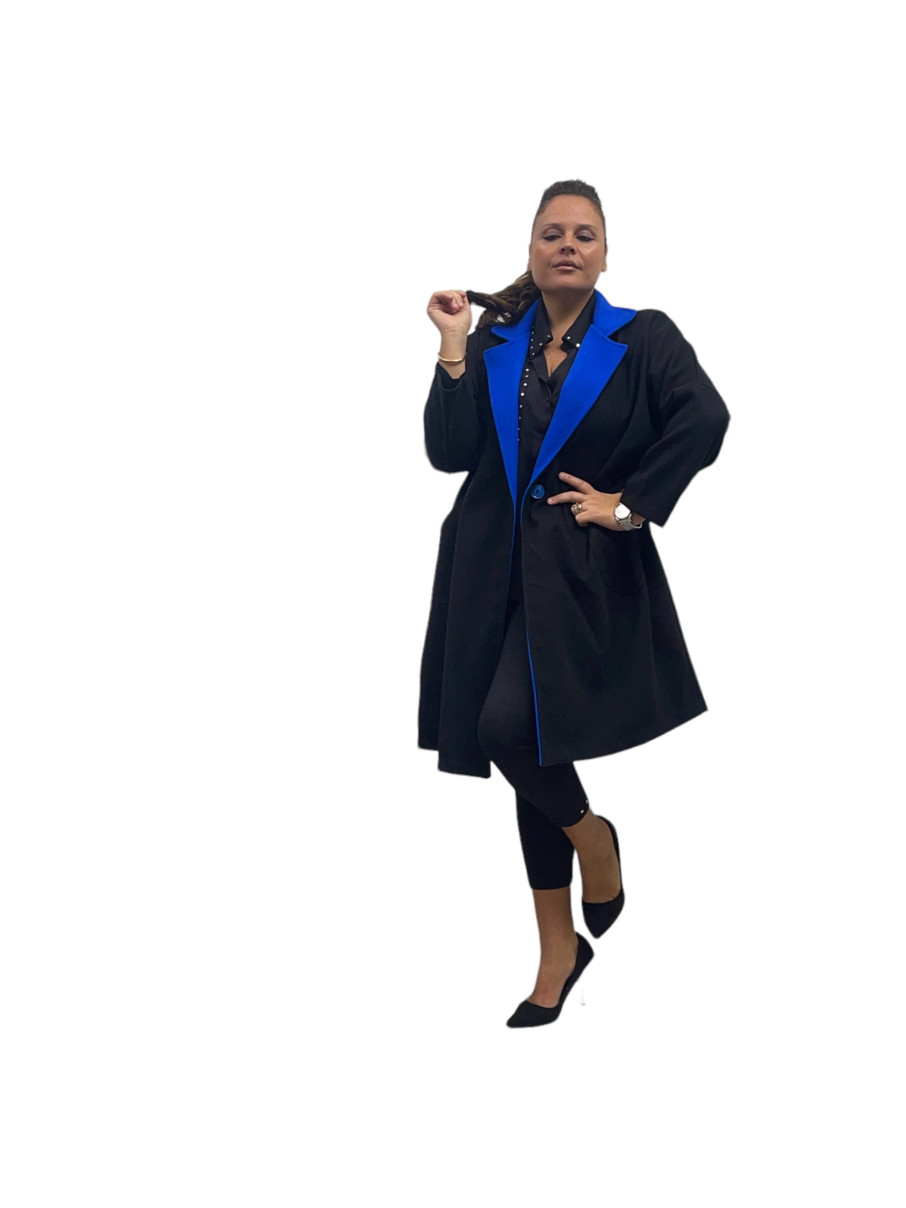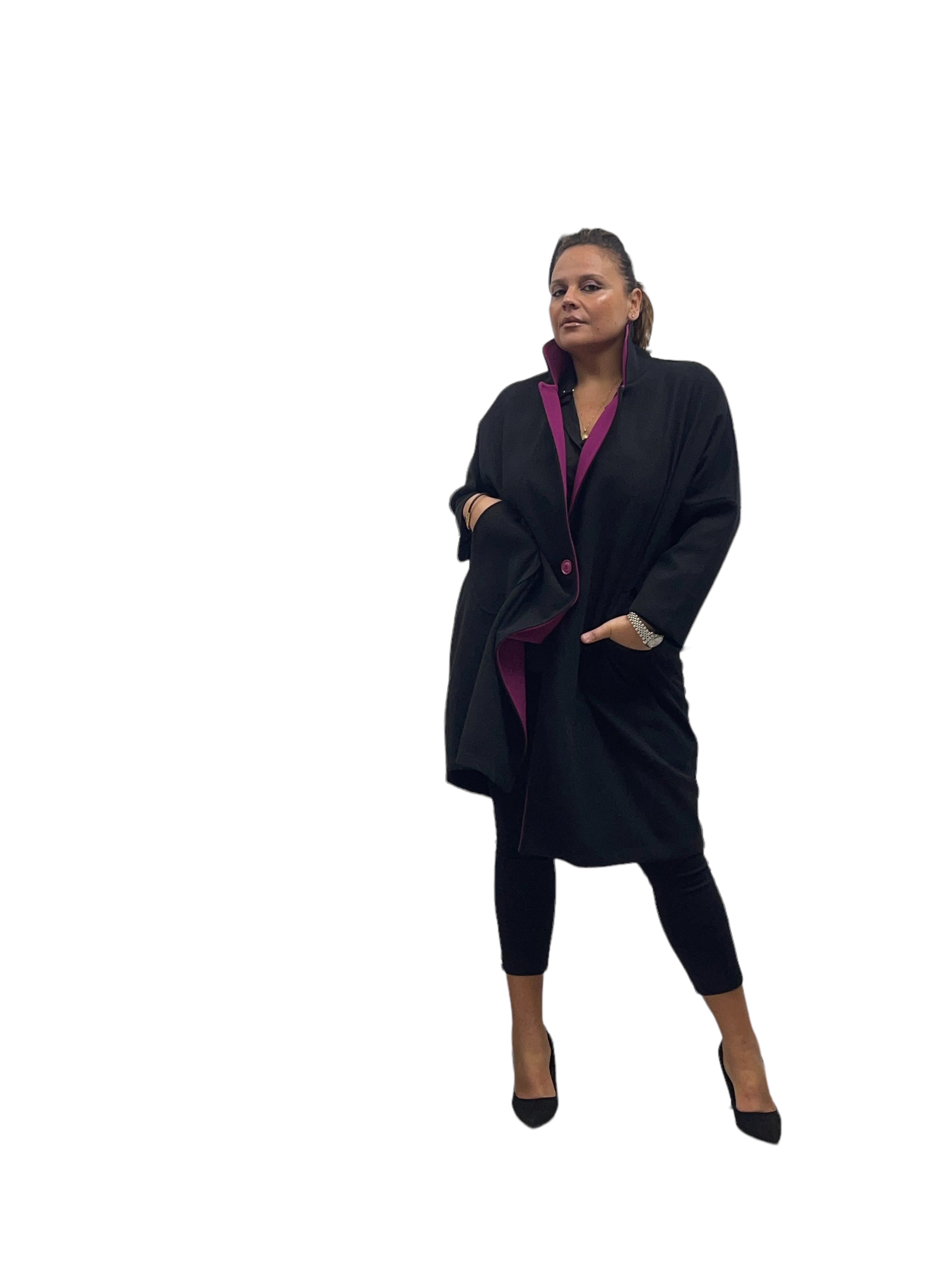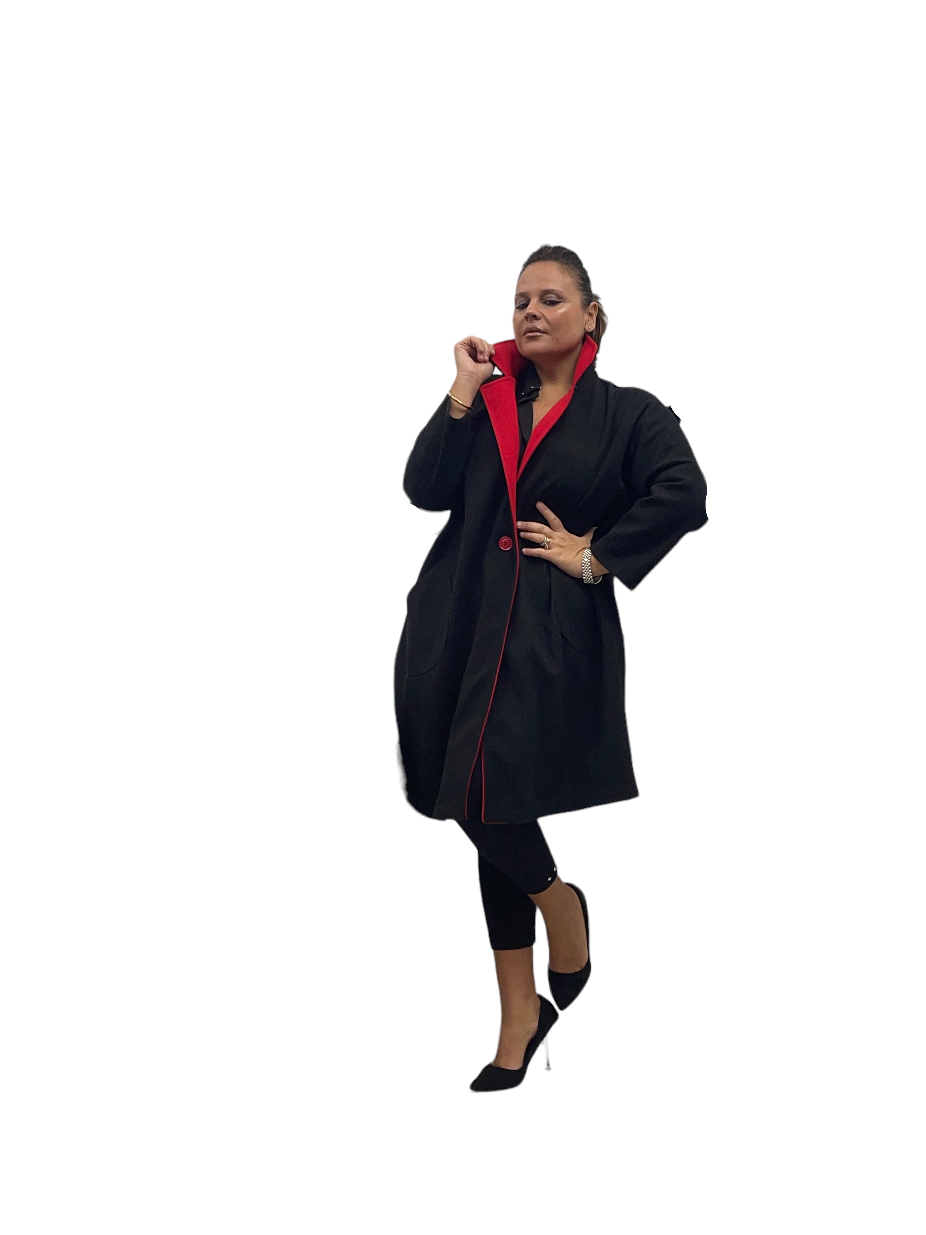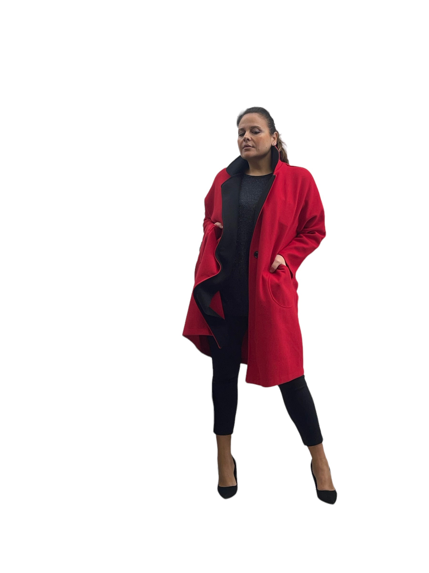 Cappotto over in panno con tasconi, doppio colore e bottone in tinta
