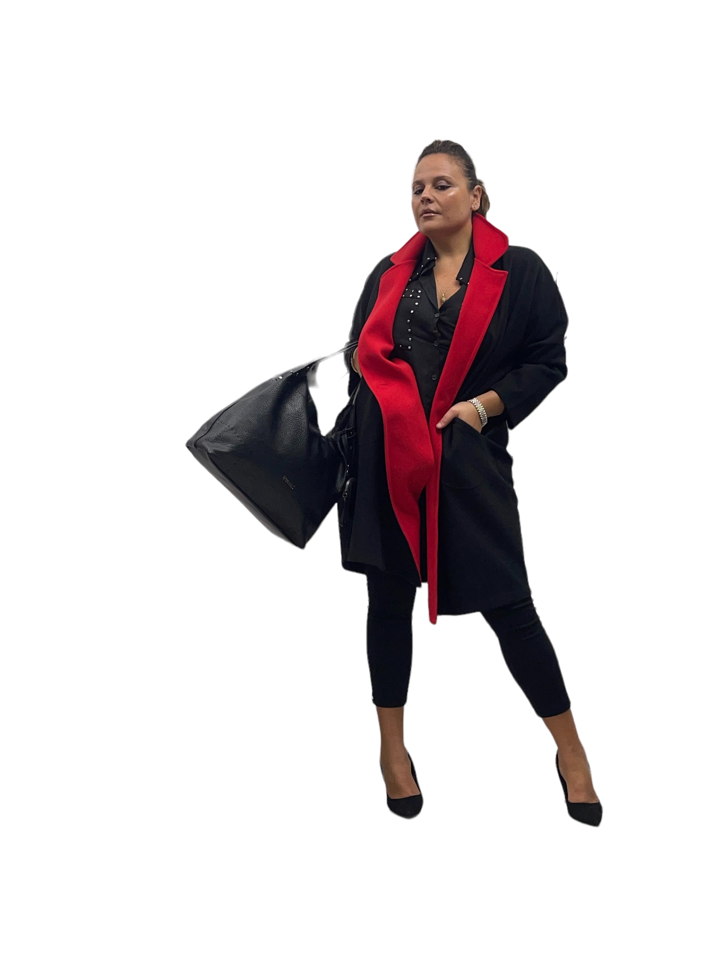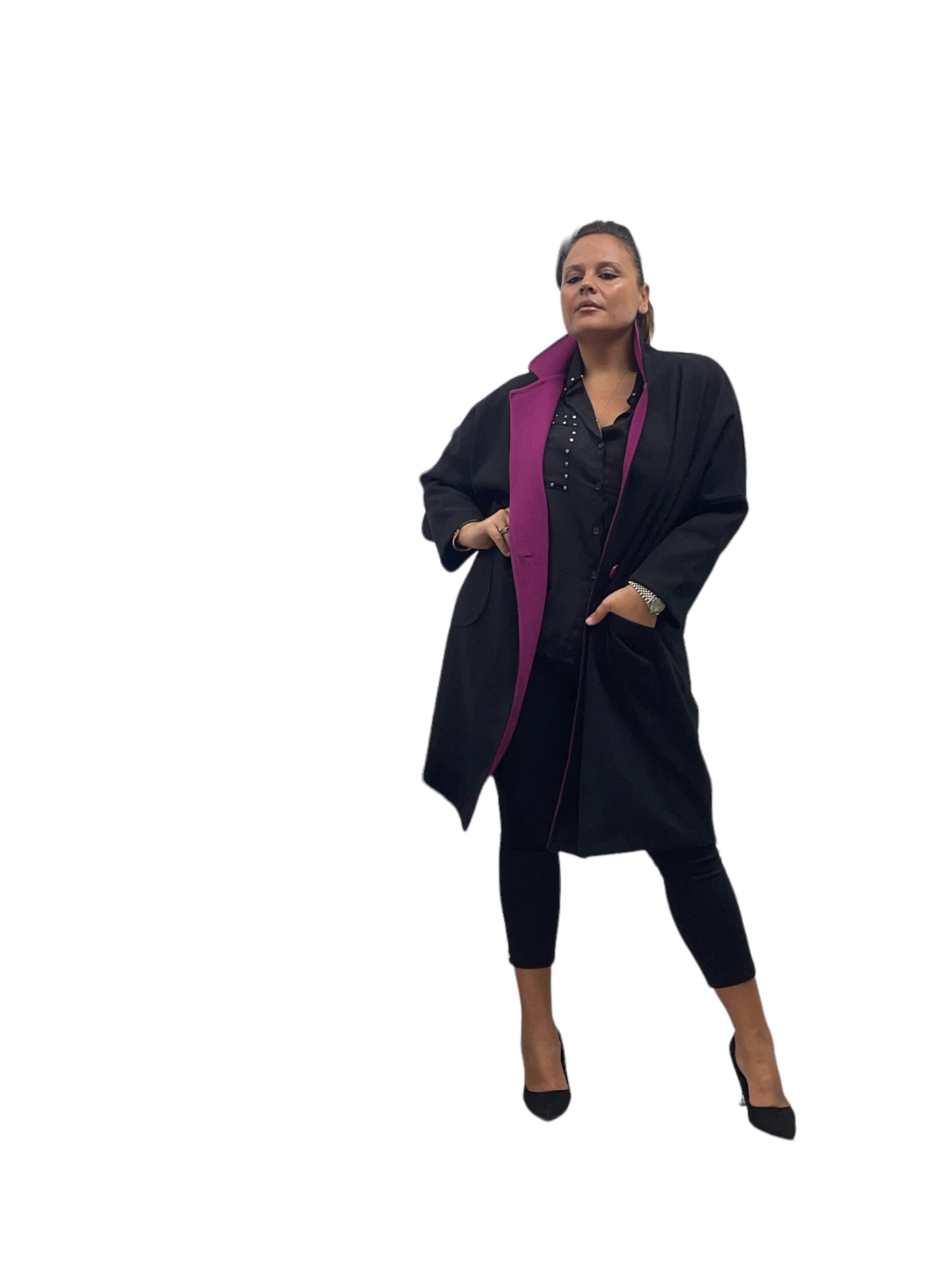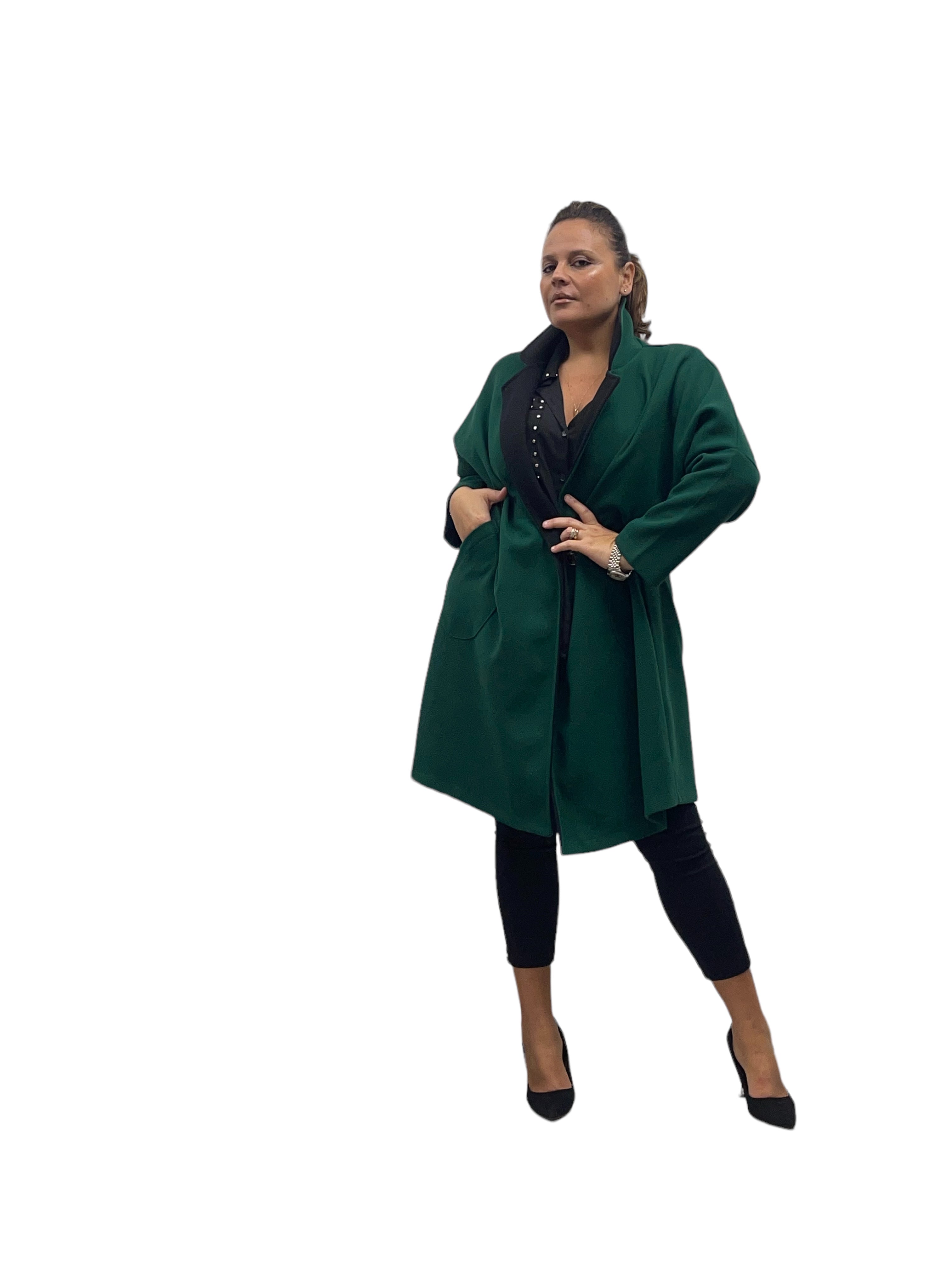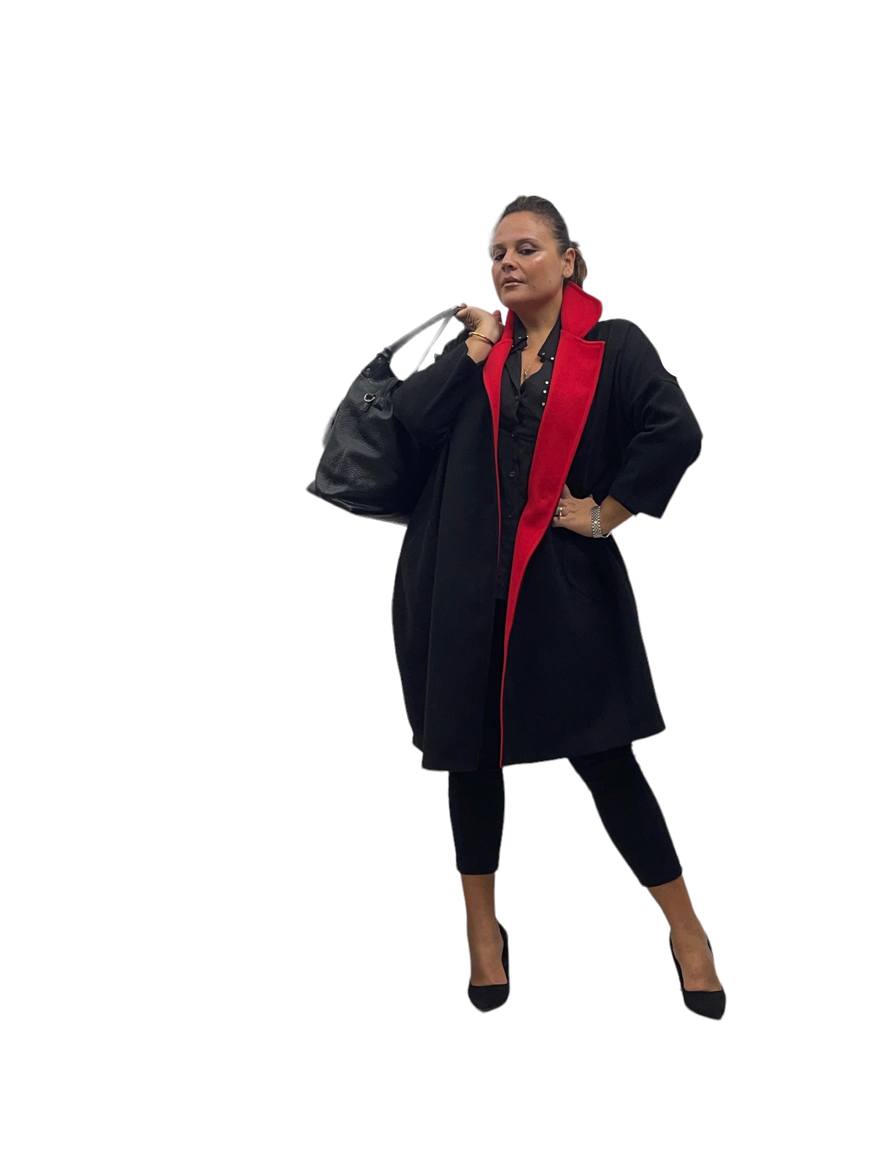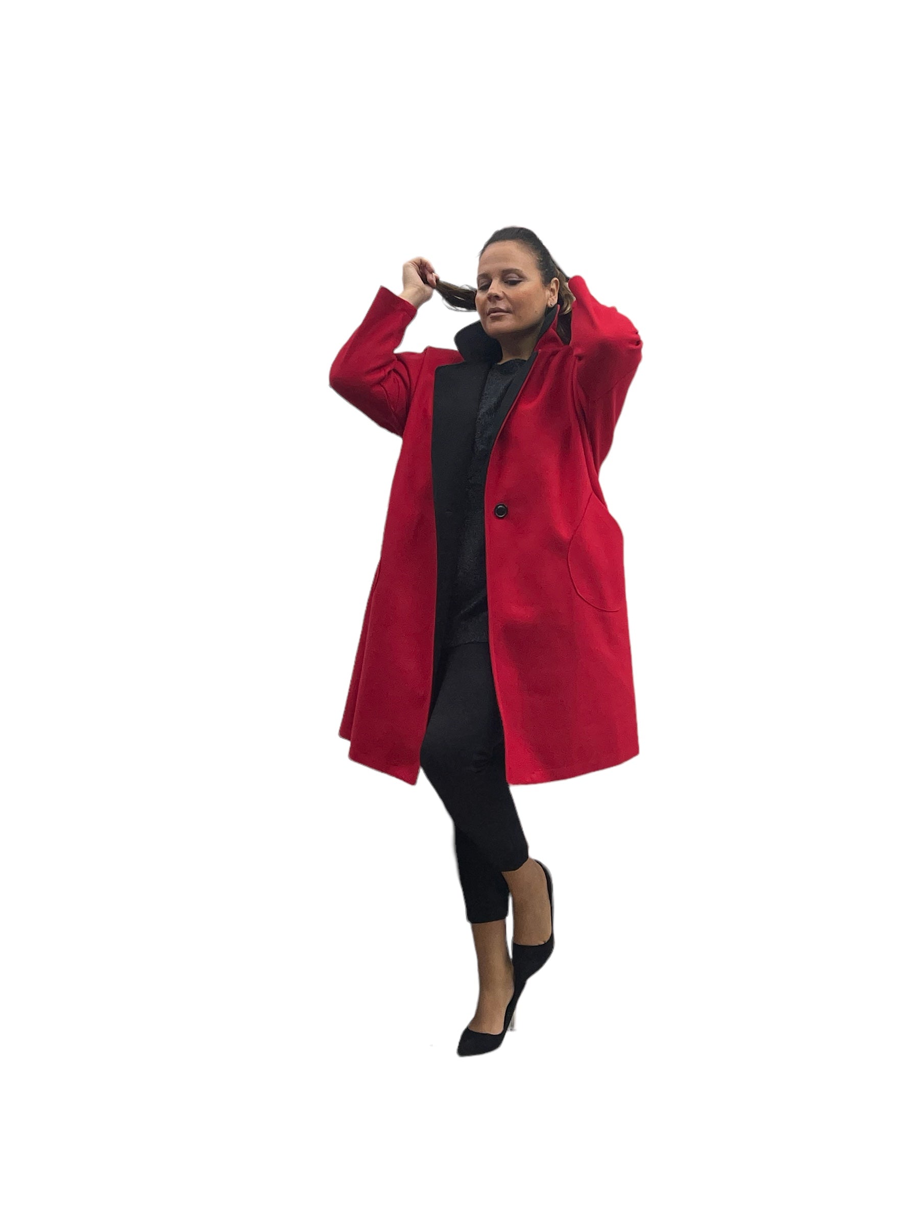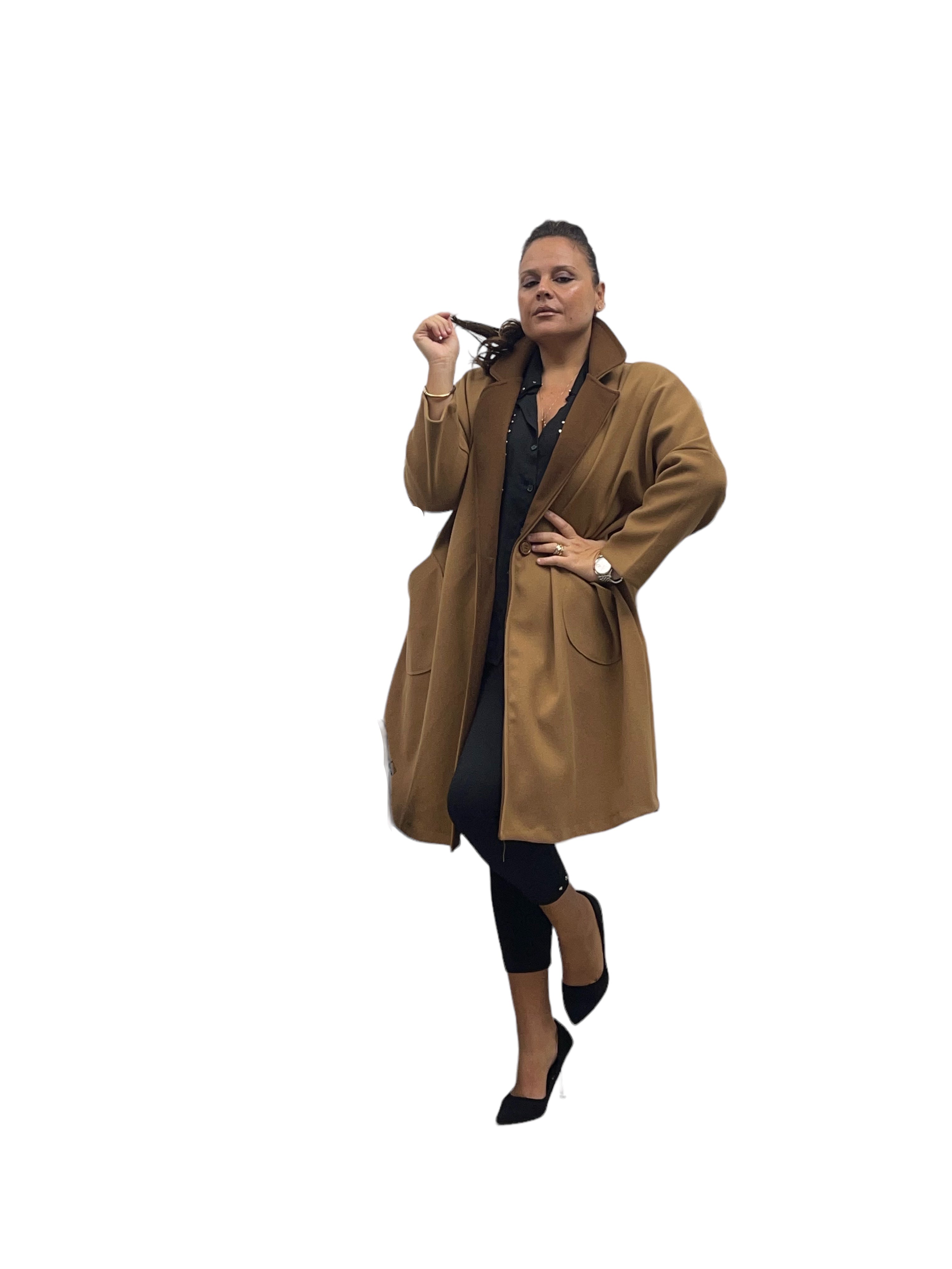 Cappotto over in panno con tasconi, doppio colore e bottone in tinta