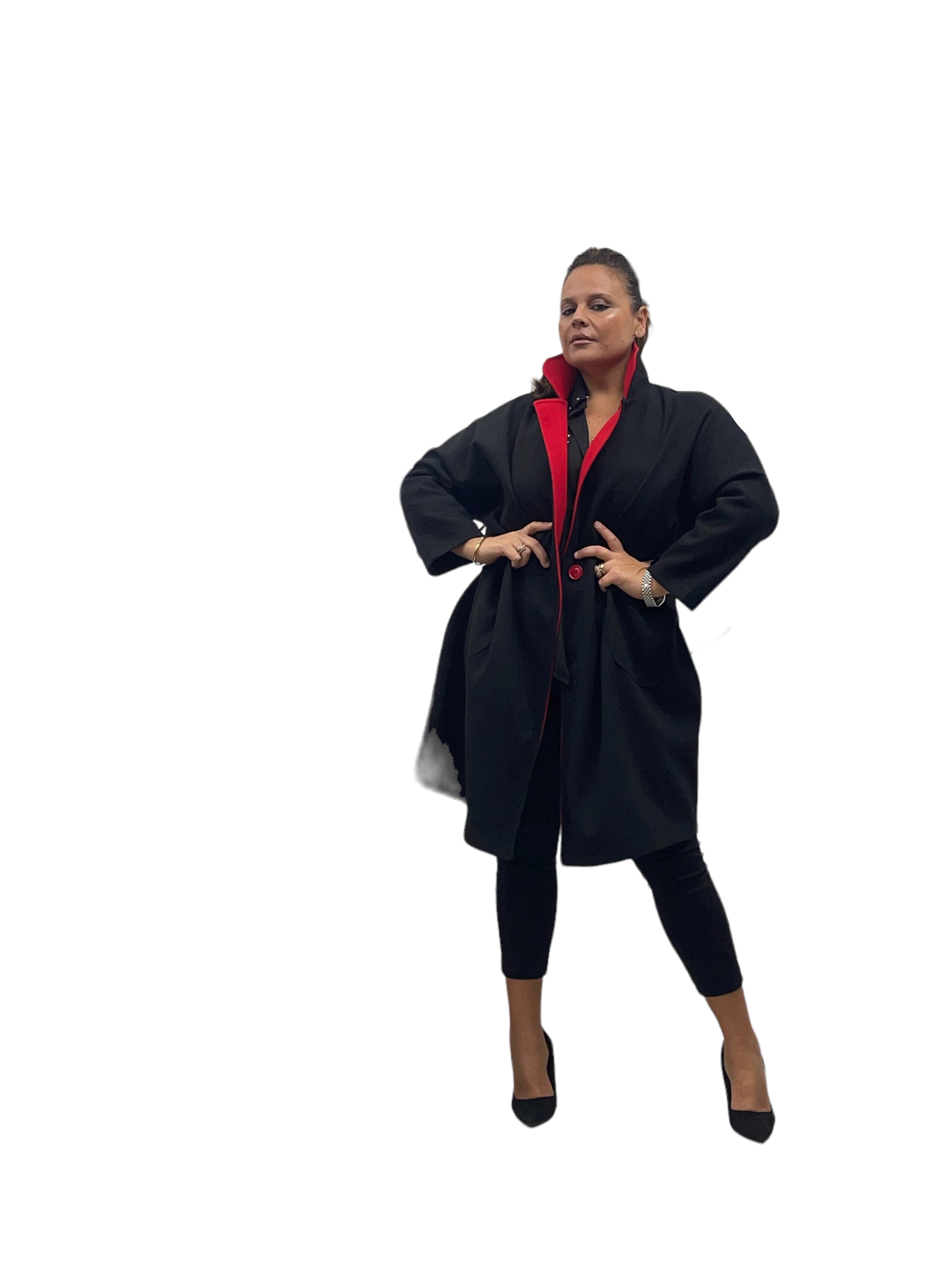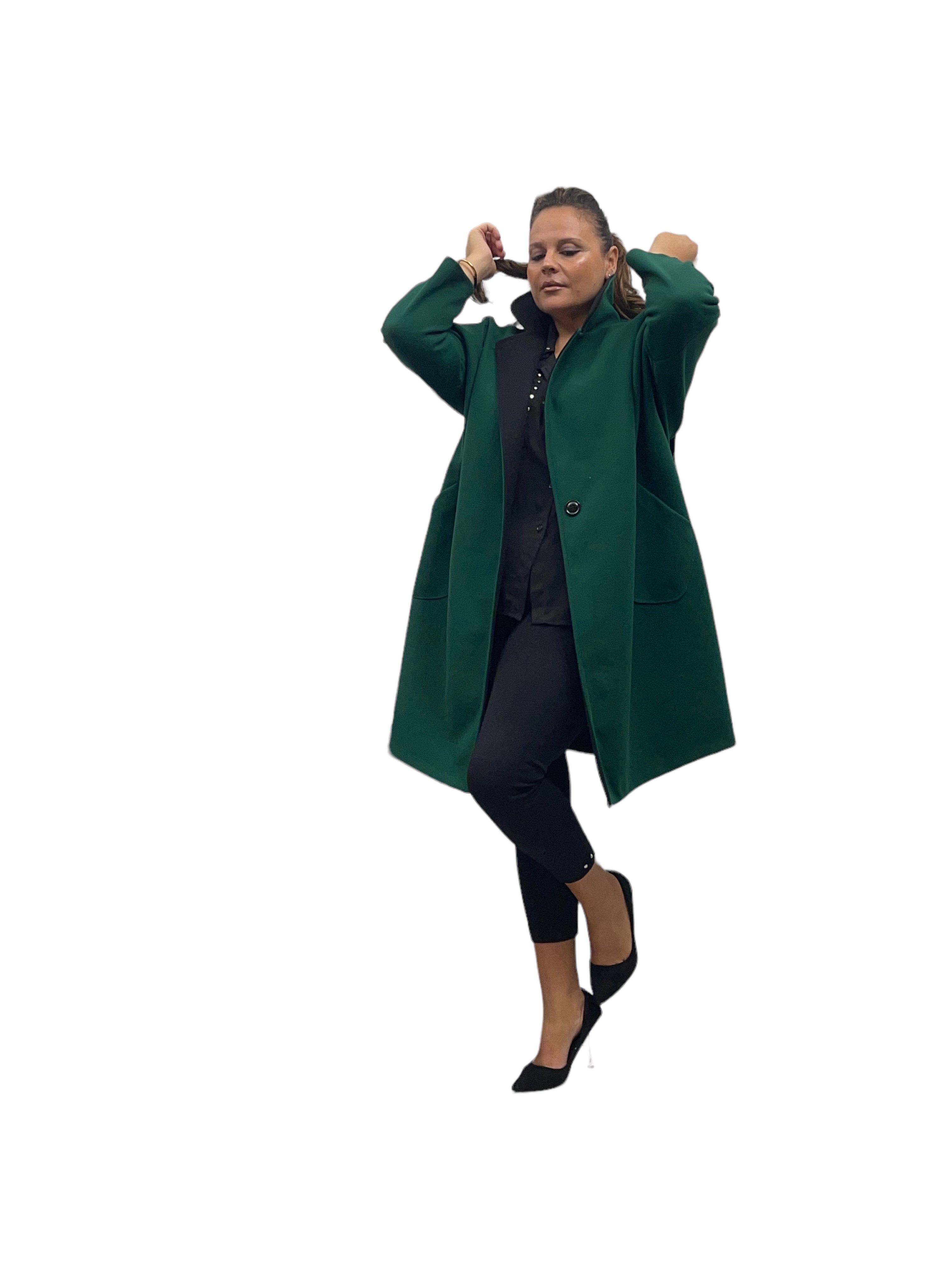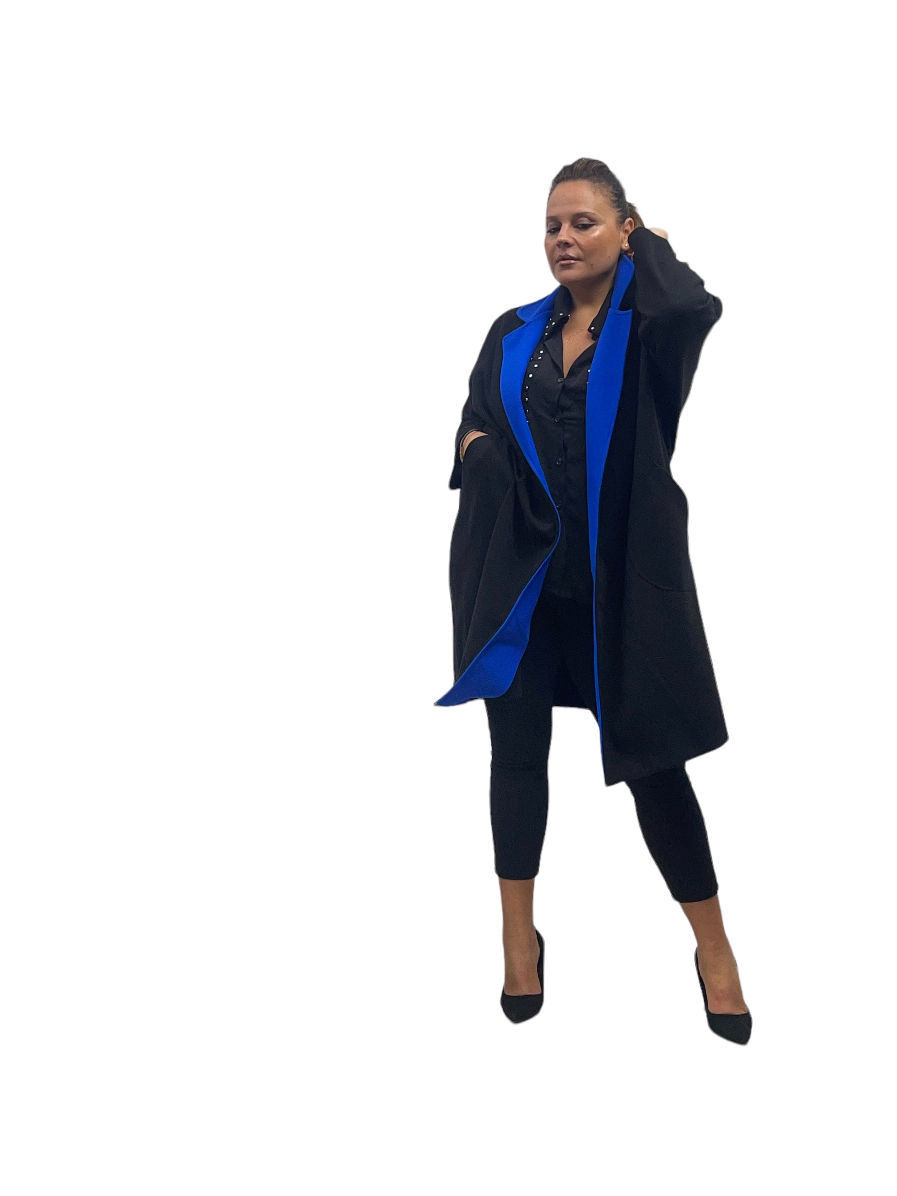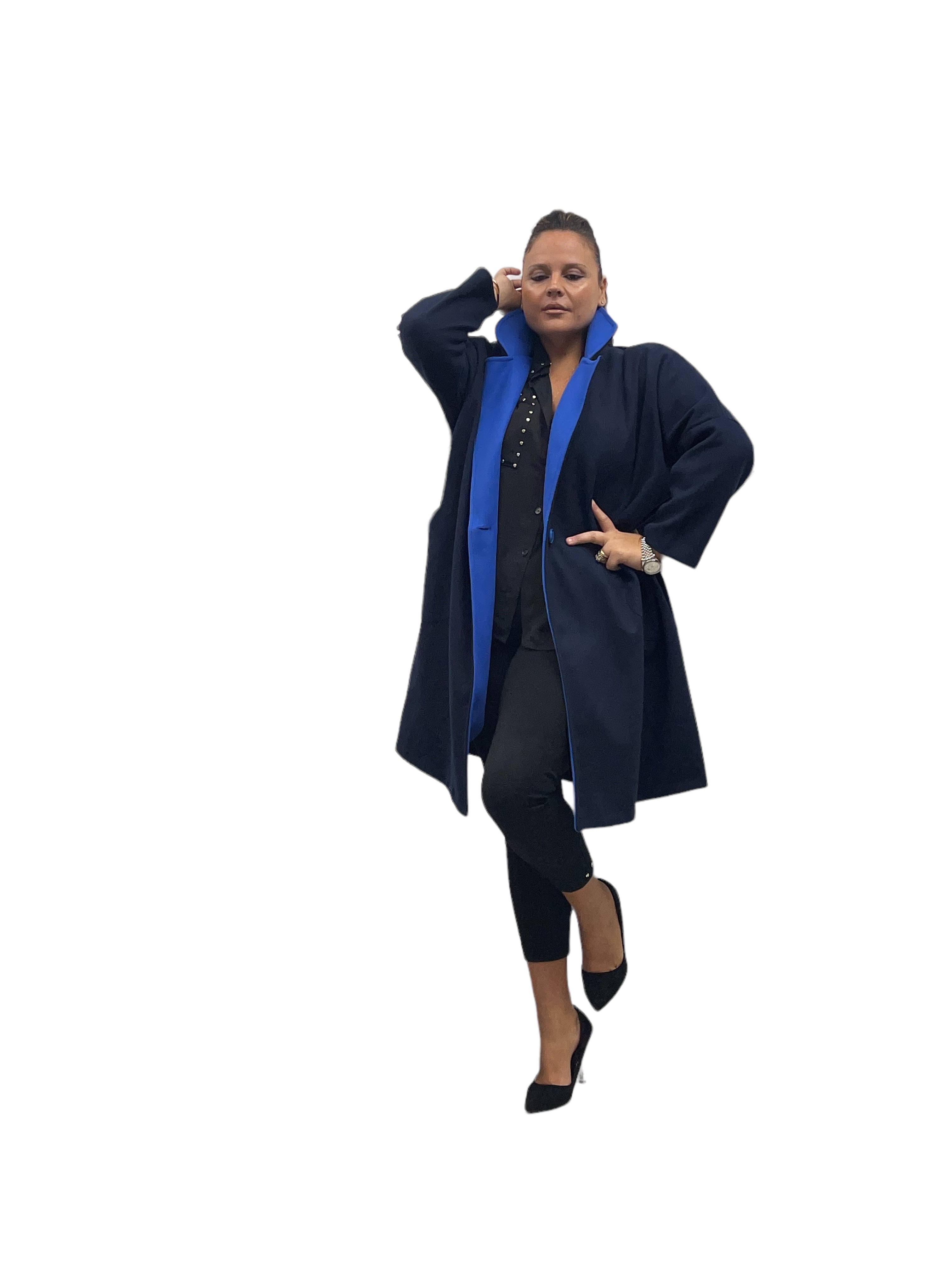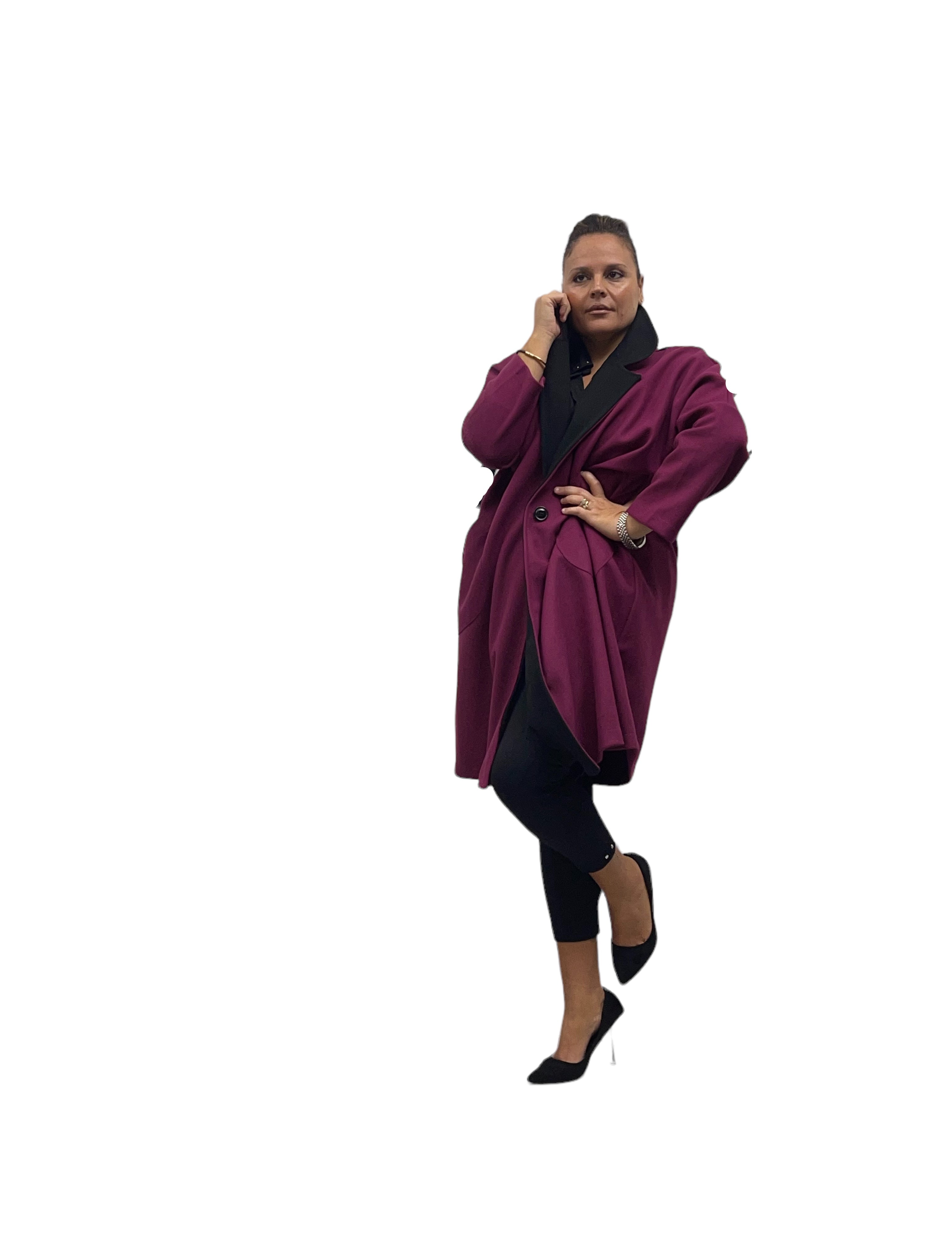 Cappotto over in panno con tasconi, doppio colore e bottone in tinta