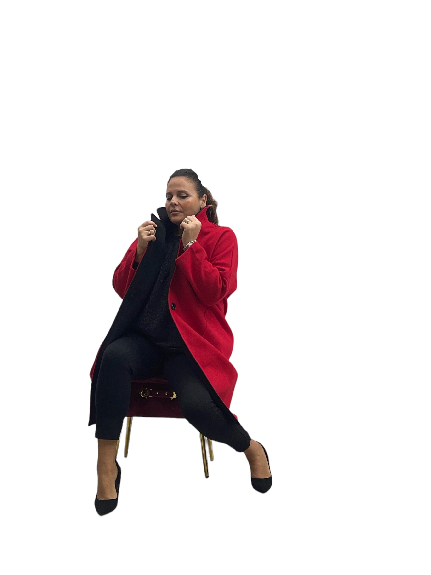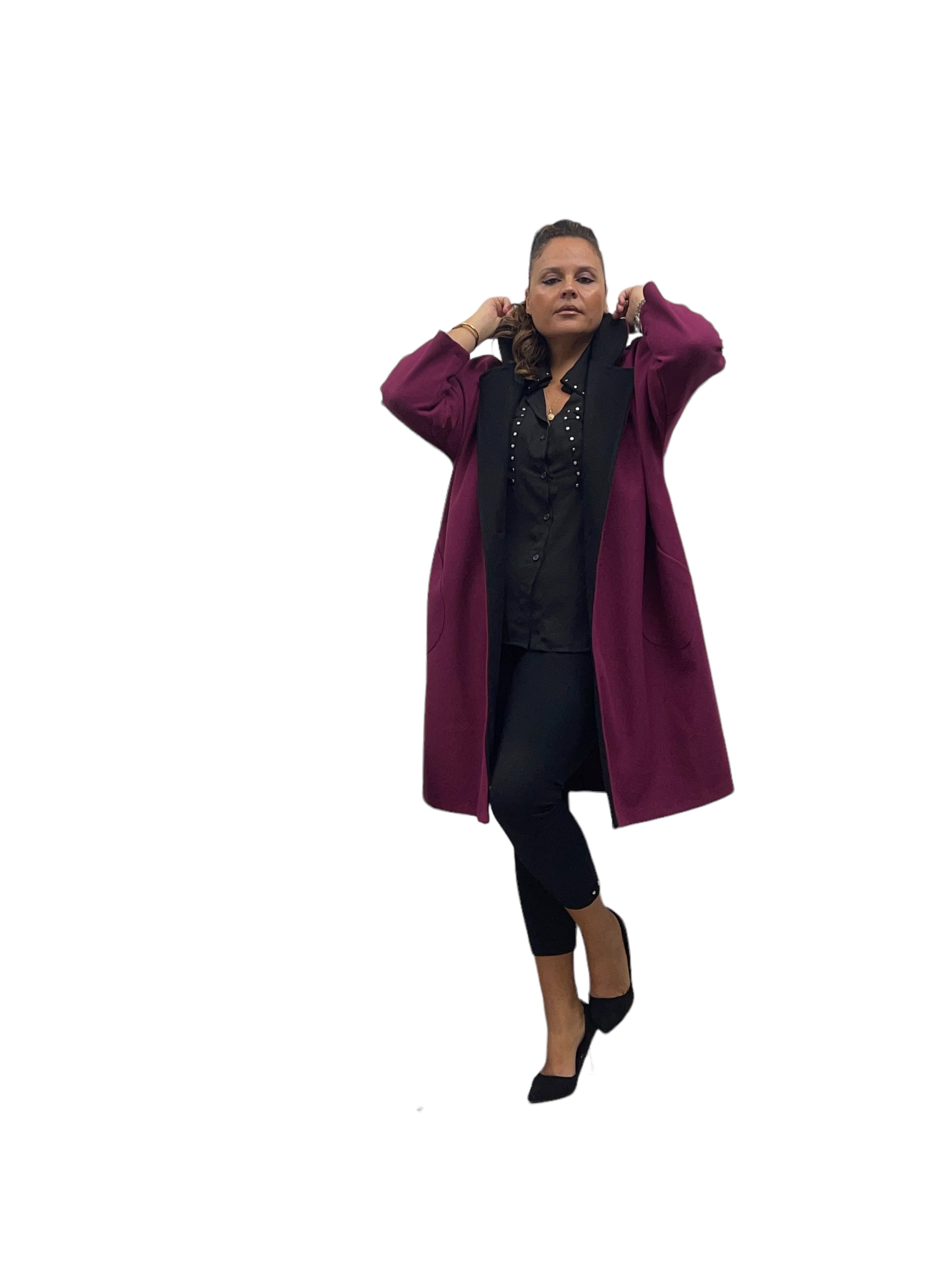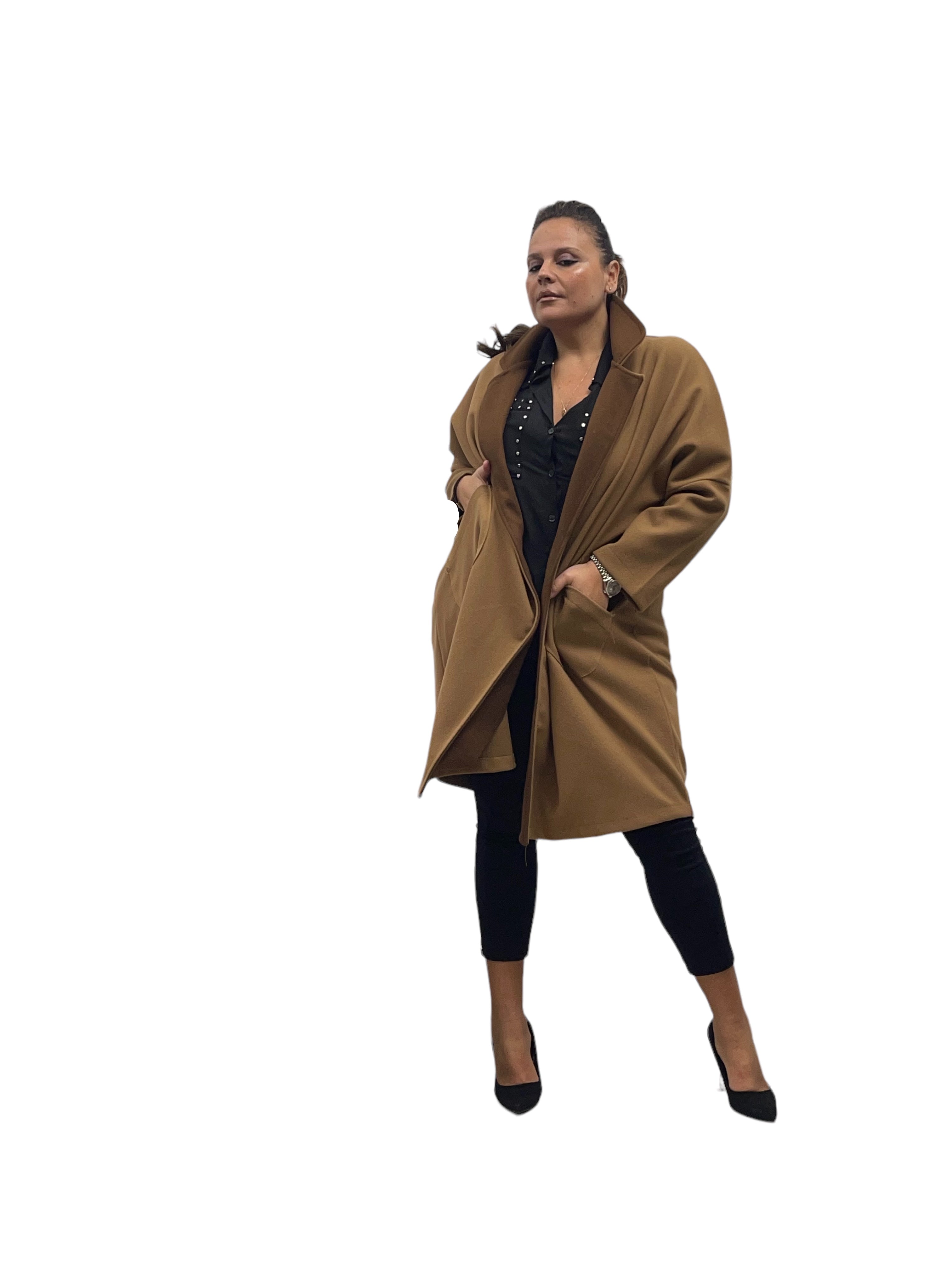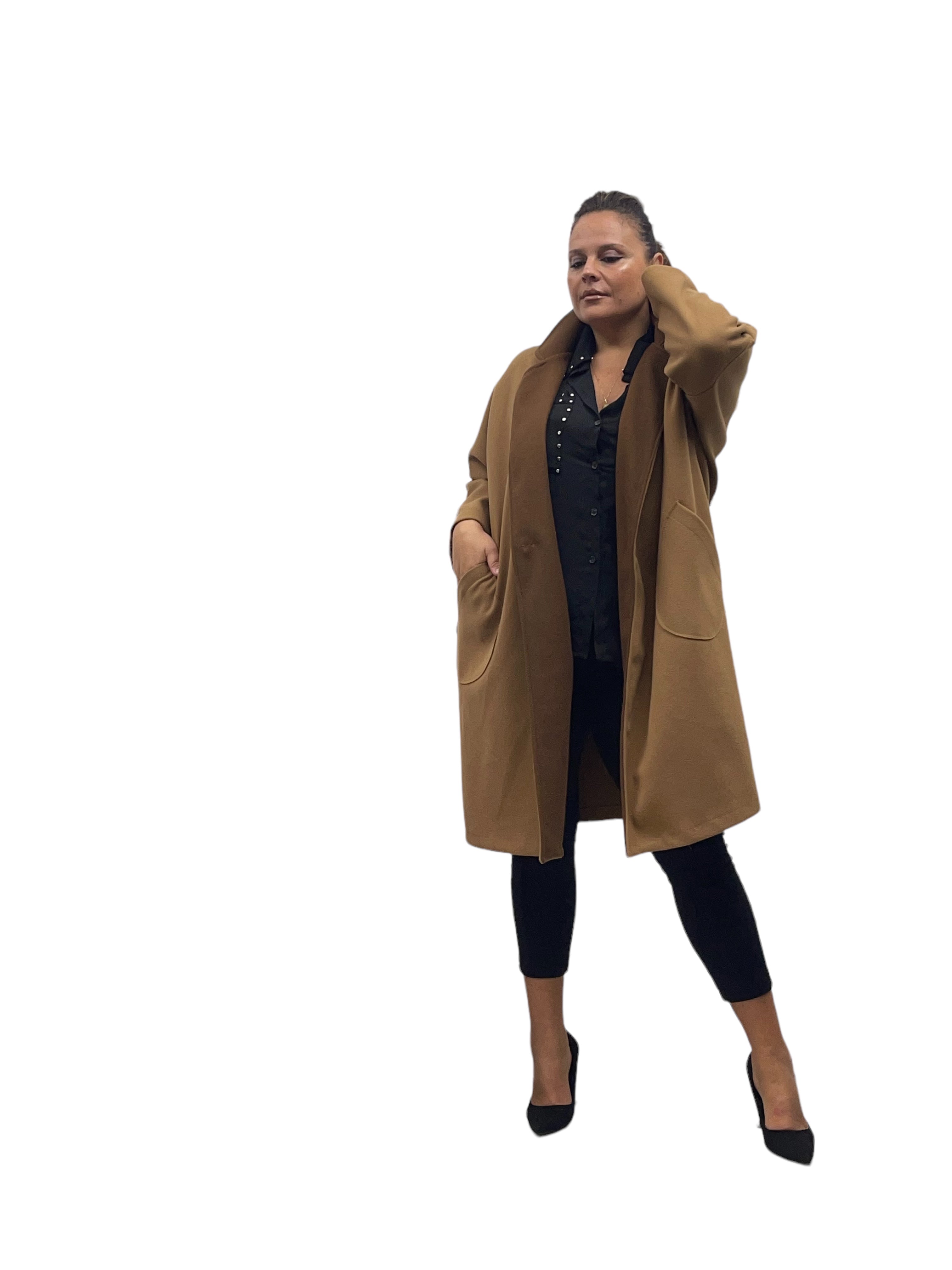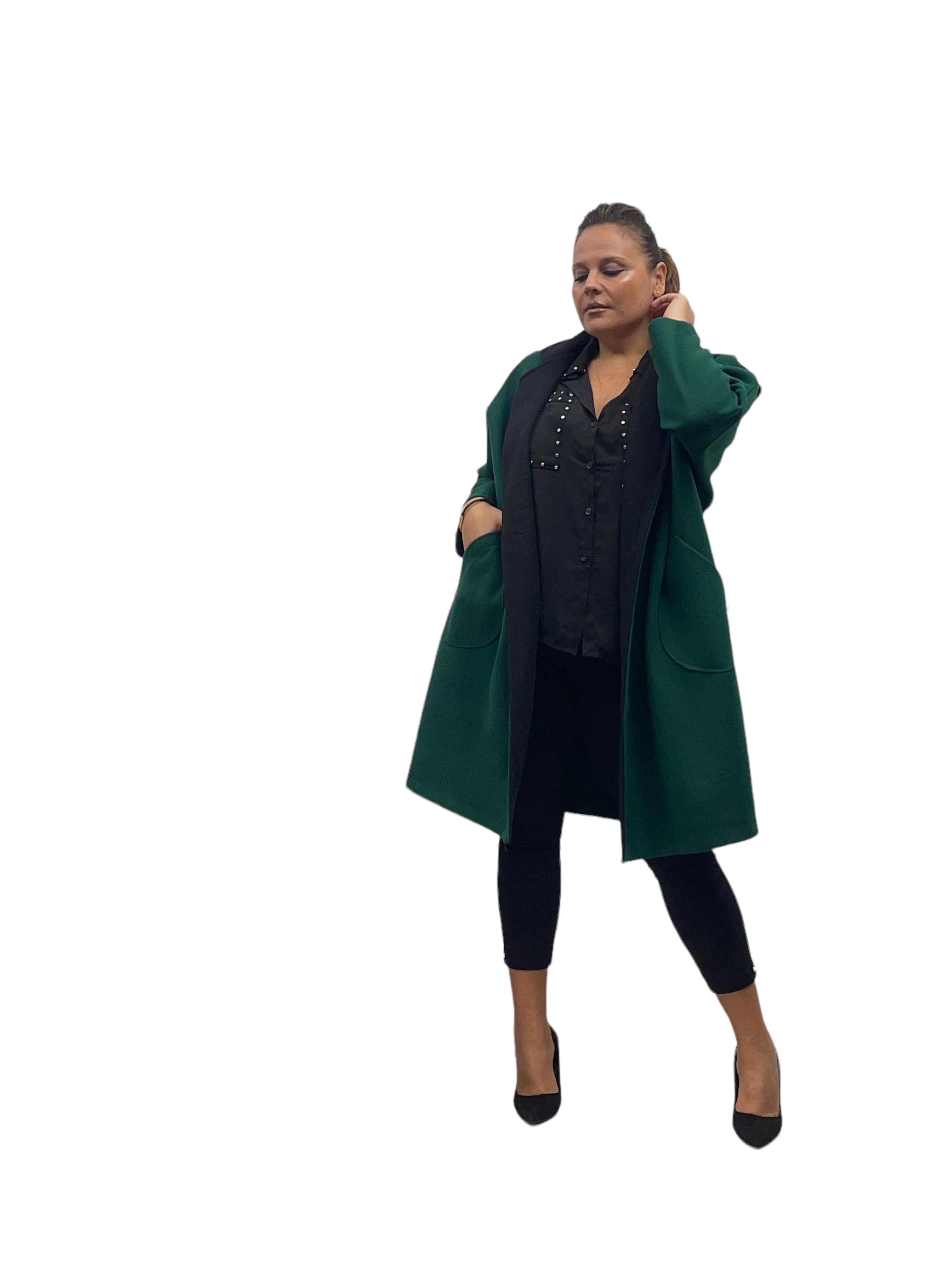 Cappotto over in panno con tasconi, doppio colore e bottone in tinta