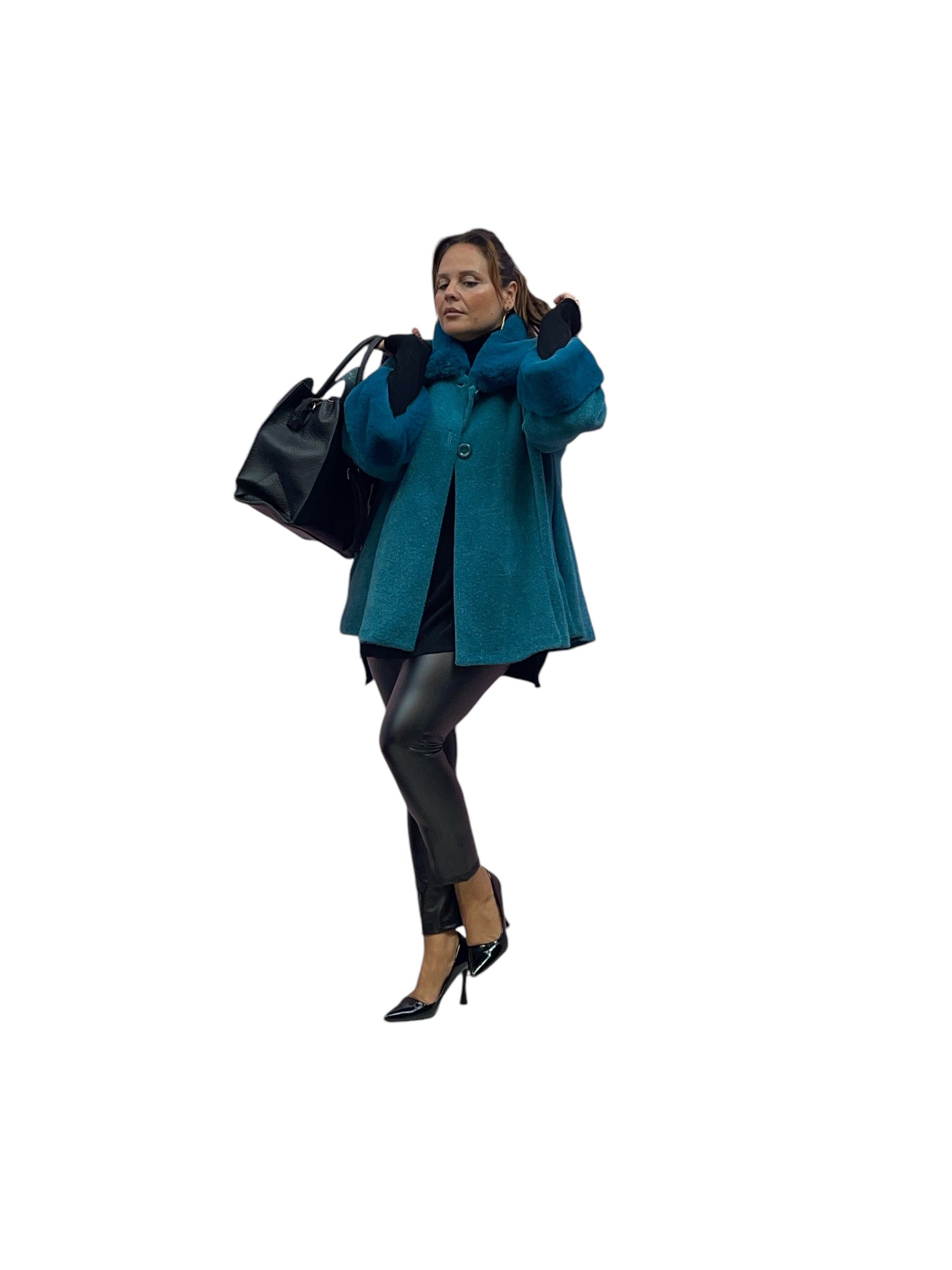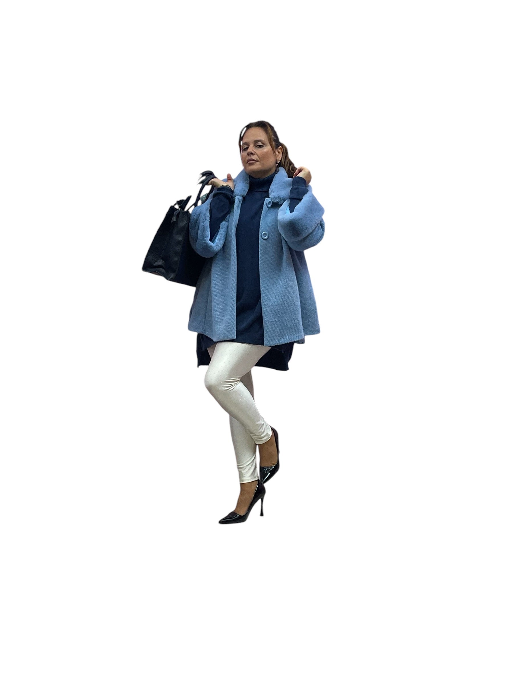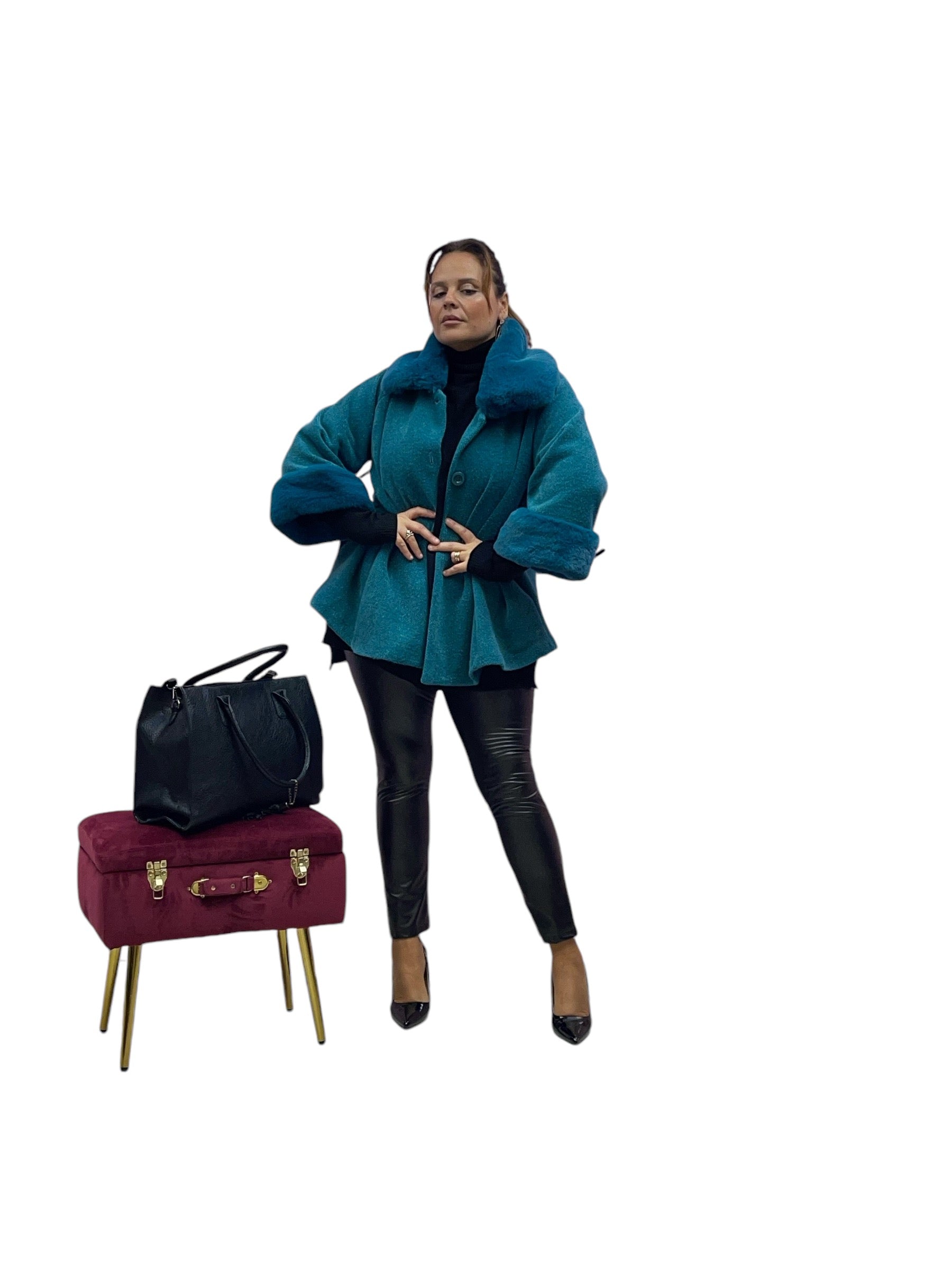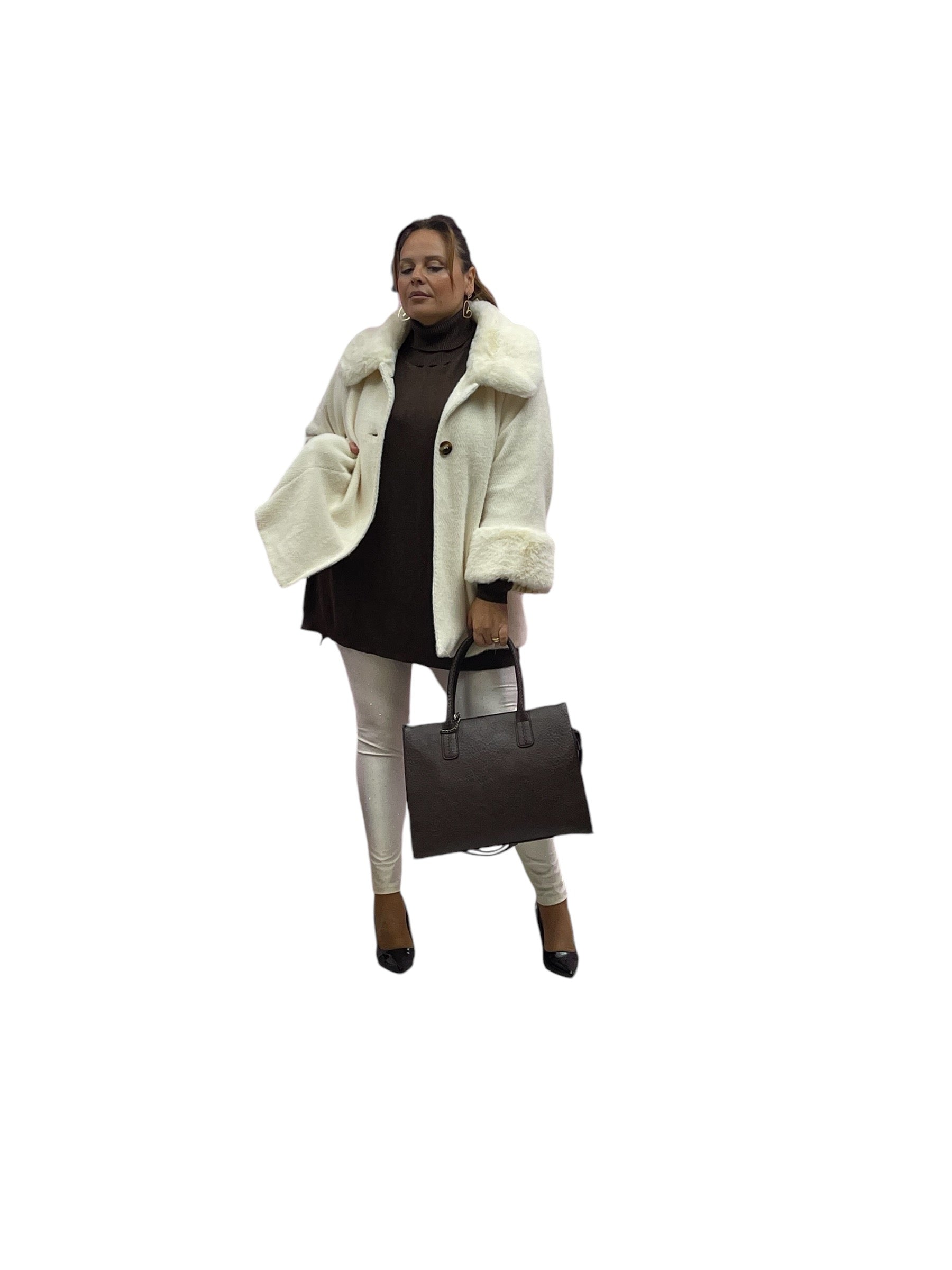 Cappottino over con ecopelliccia al collo e polsi 2 bottoni modello svasato manica al polso