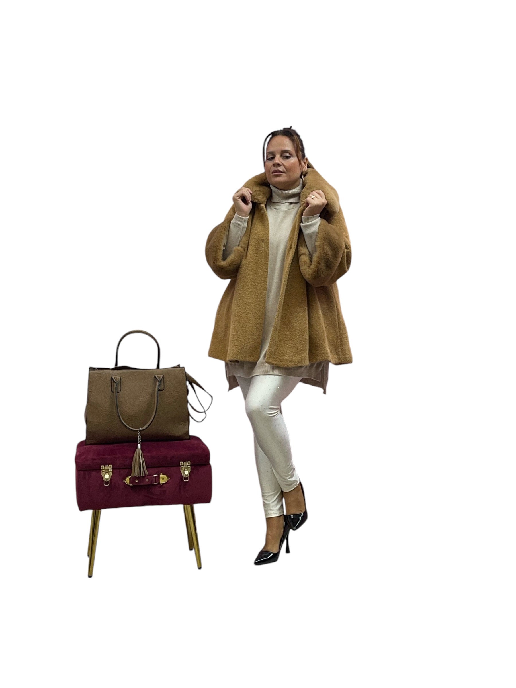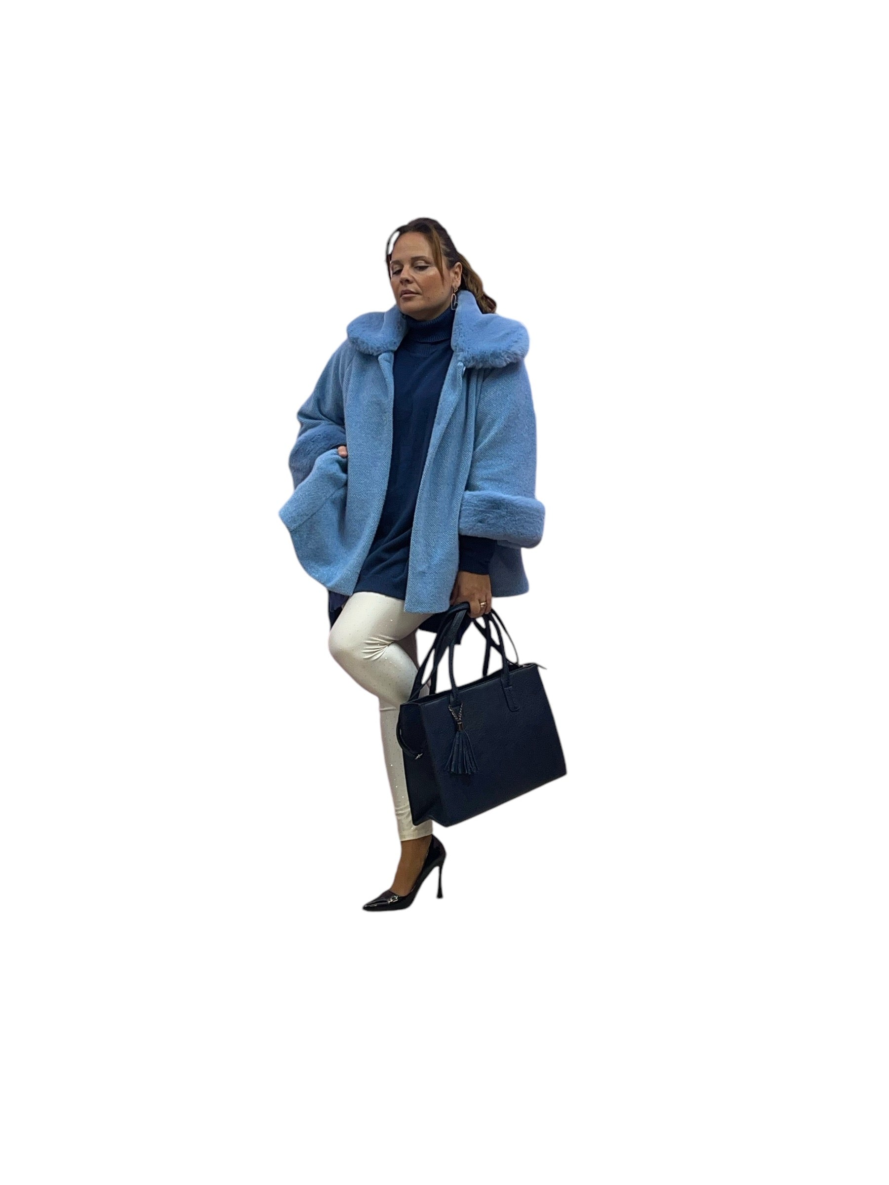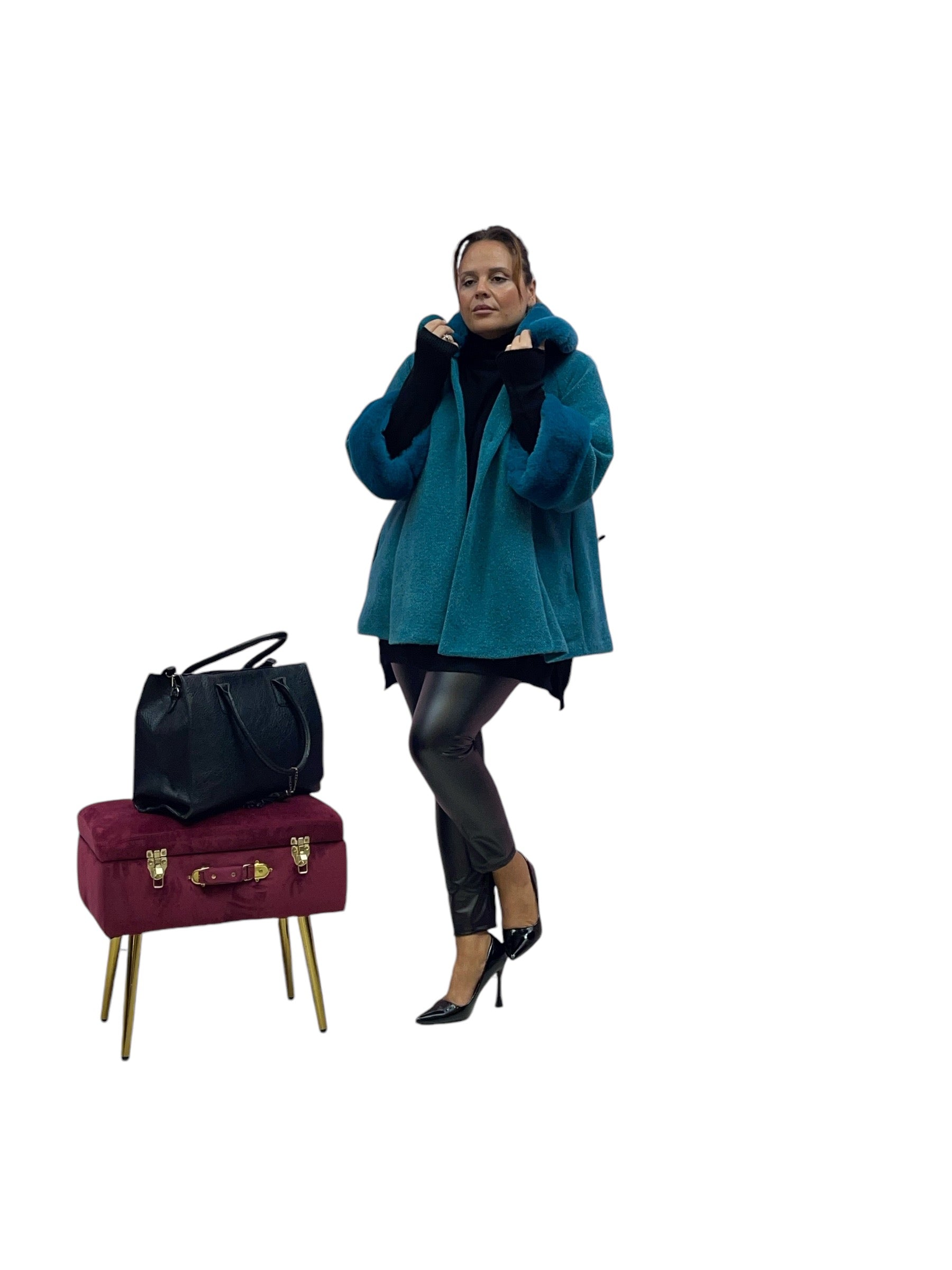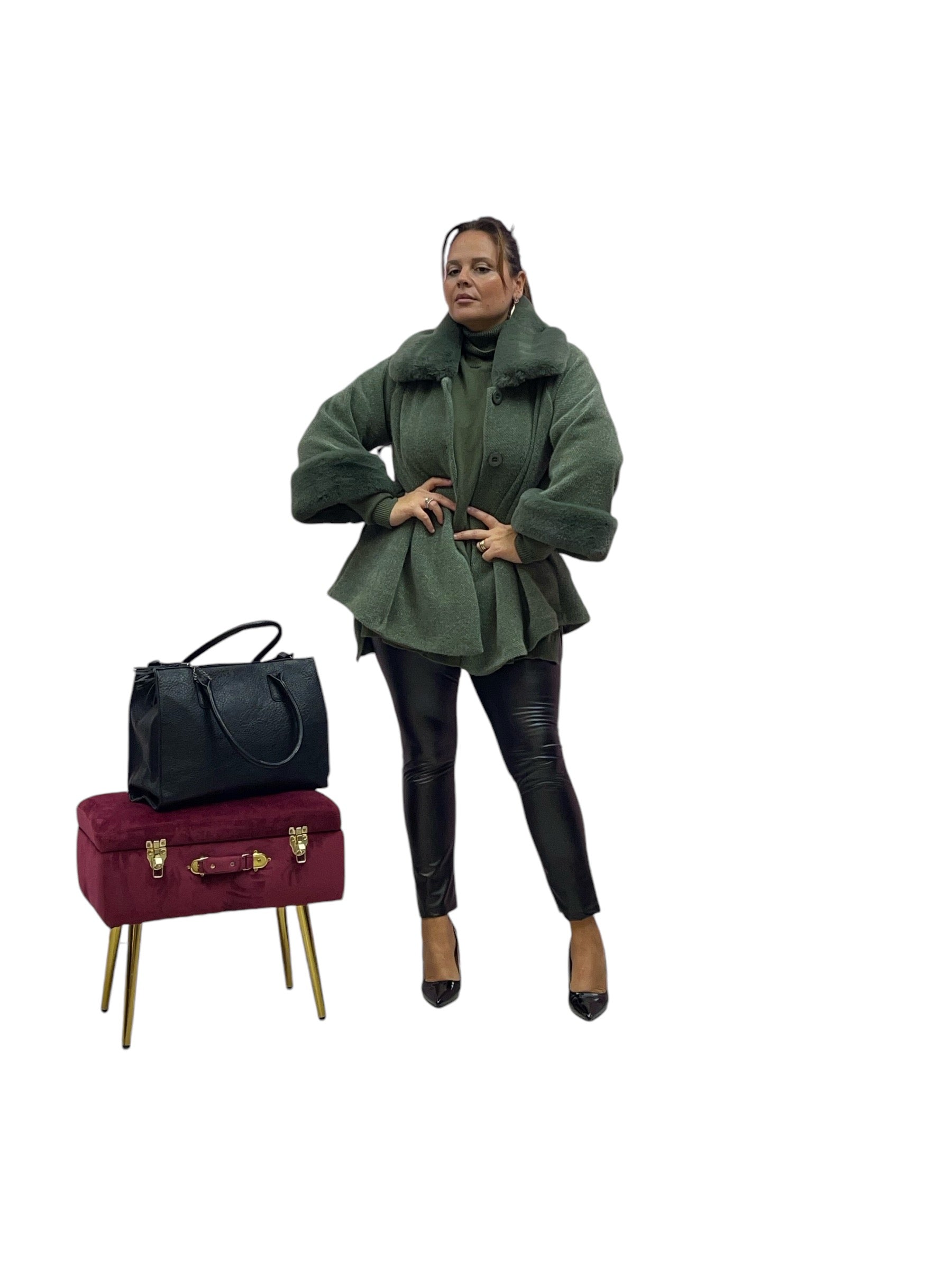Cappottino over con ecopelliccia al collo e polsi 2 bottoni modello svasato manica al polso