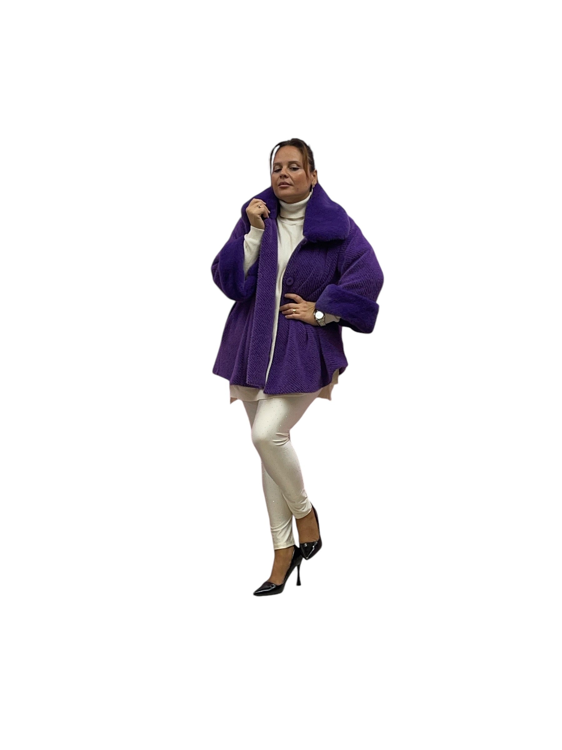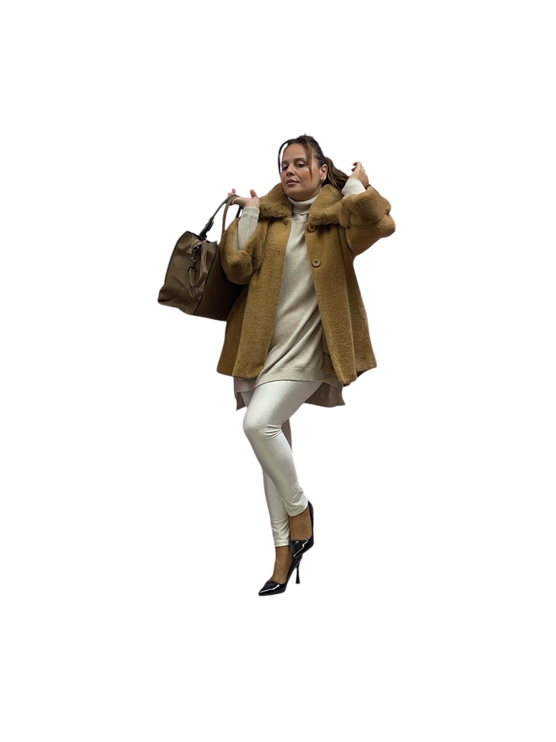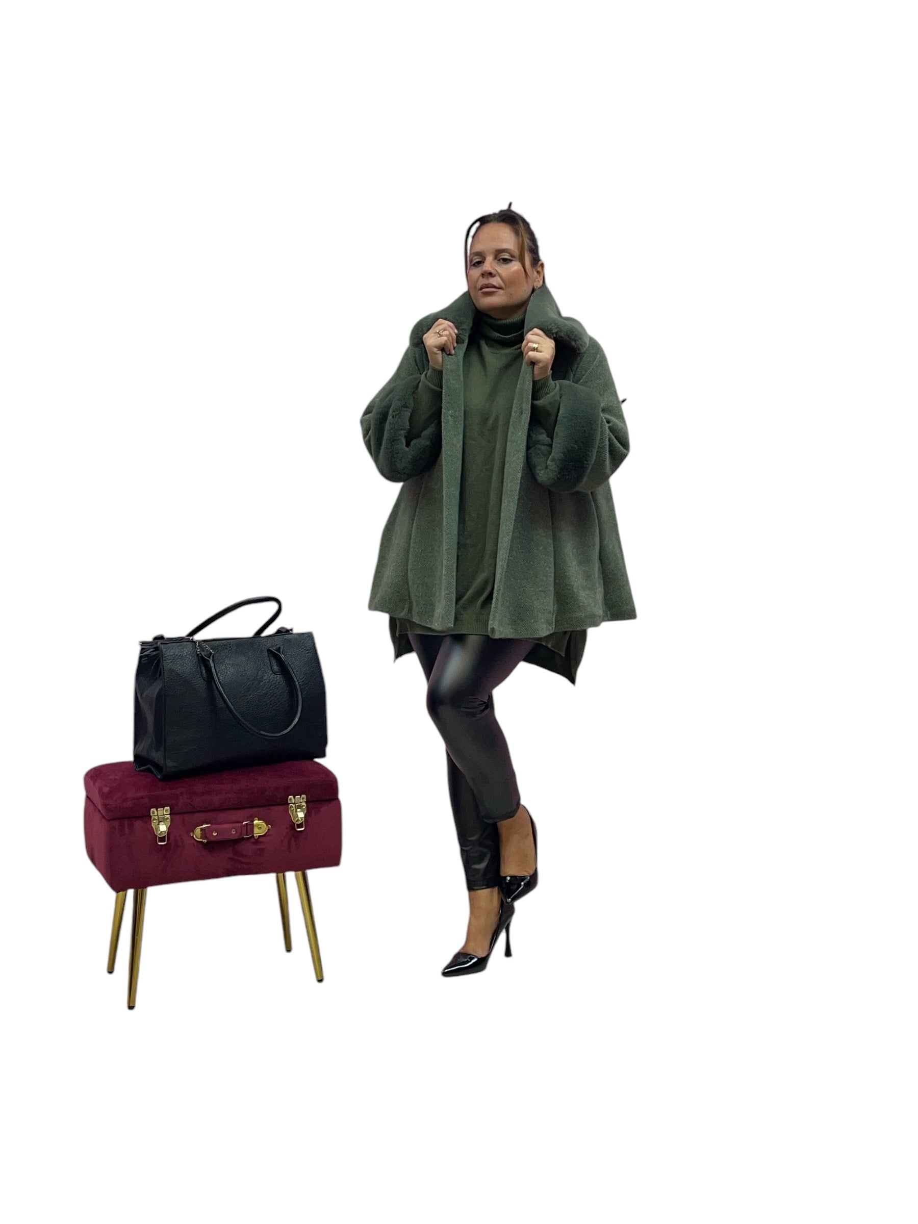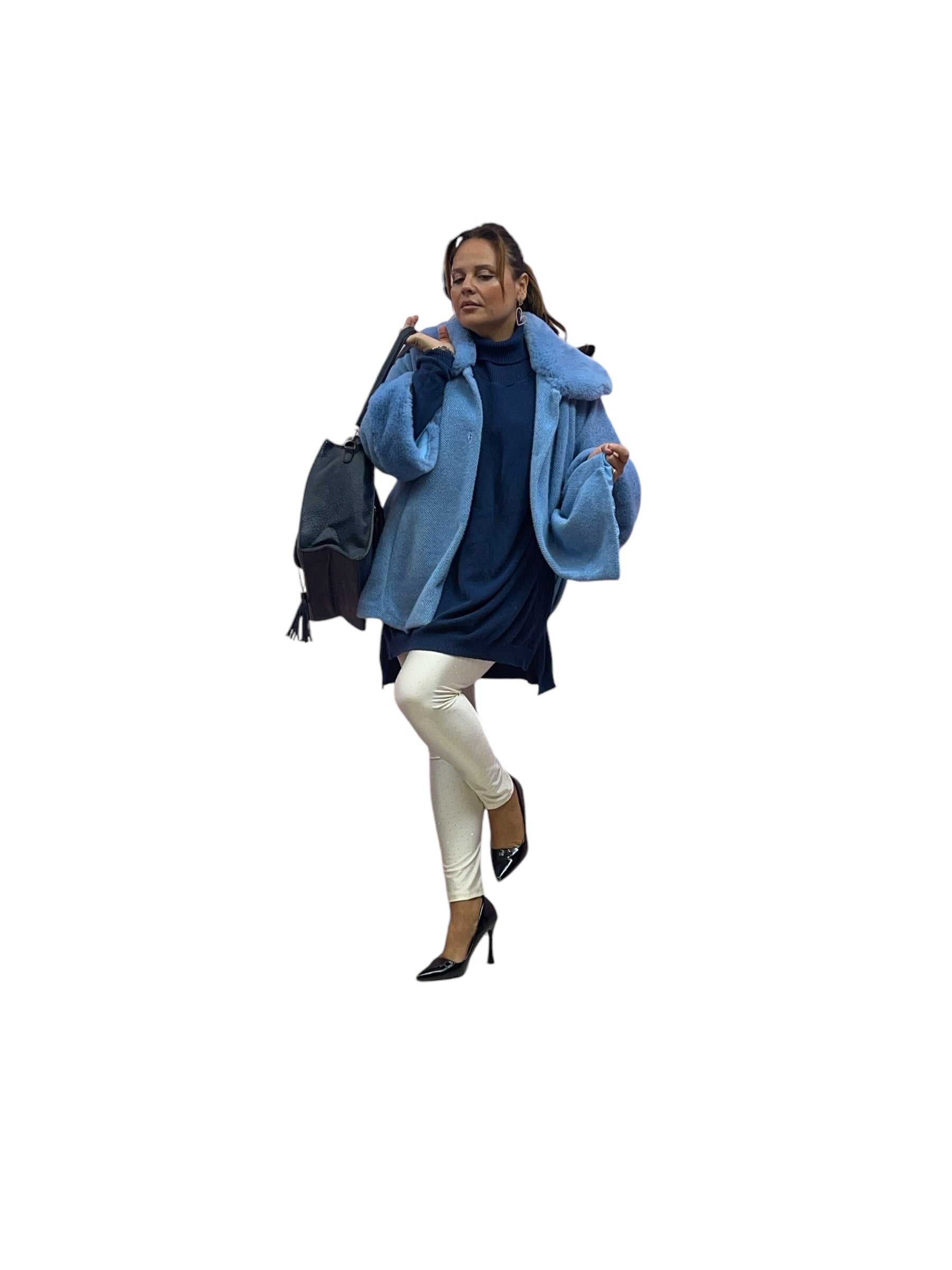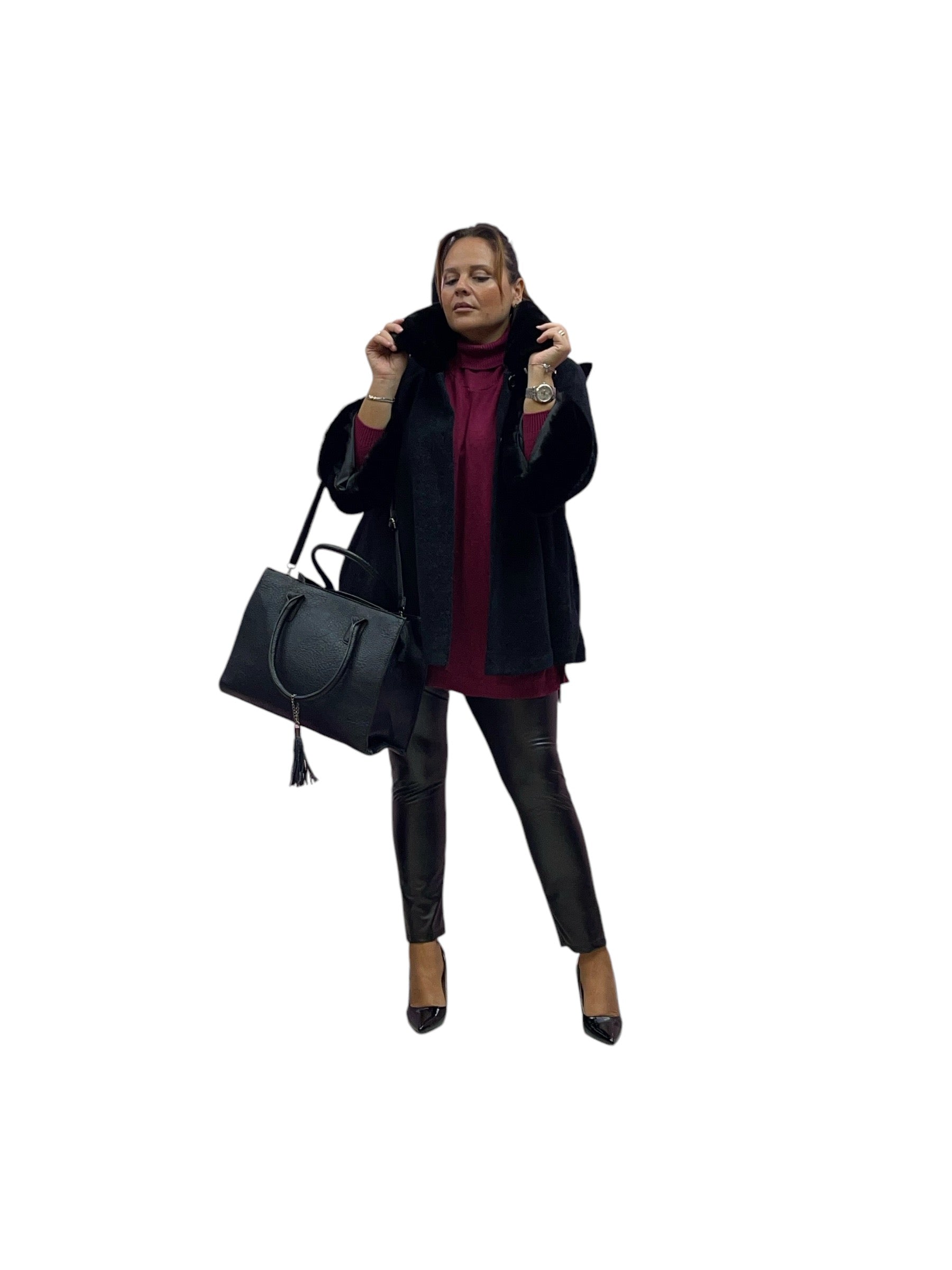 Cappottino over con ecopelliccia al collo e polsi 2 bottoni modello svasato manica al polso