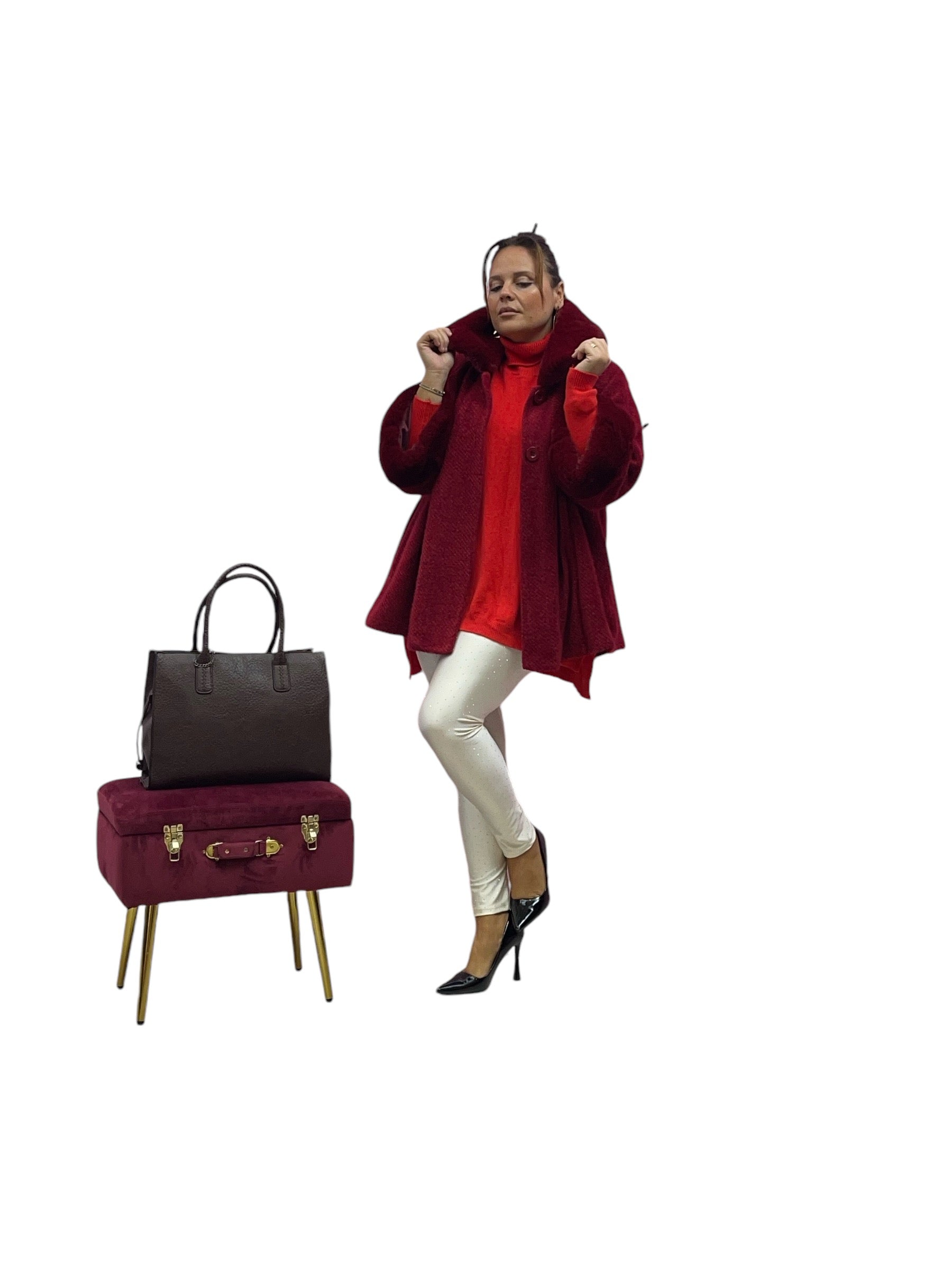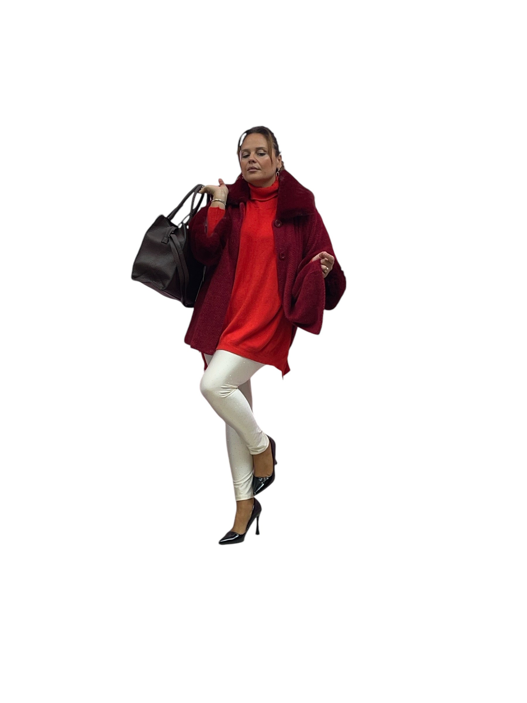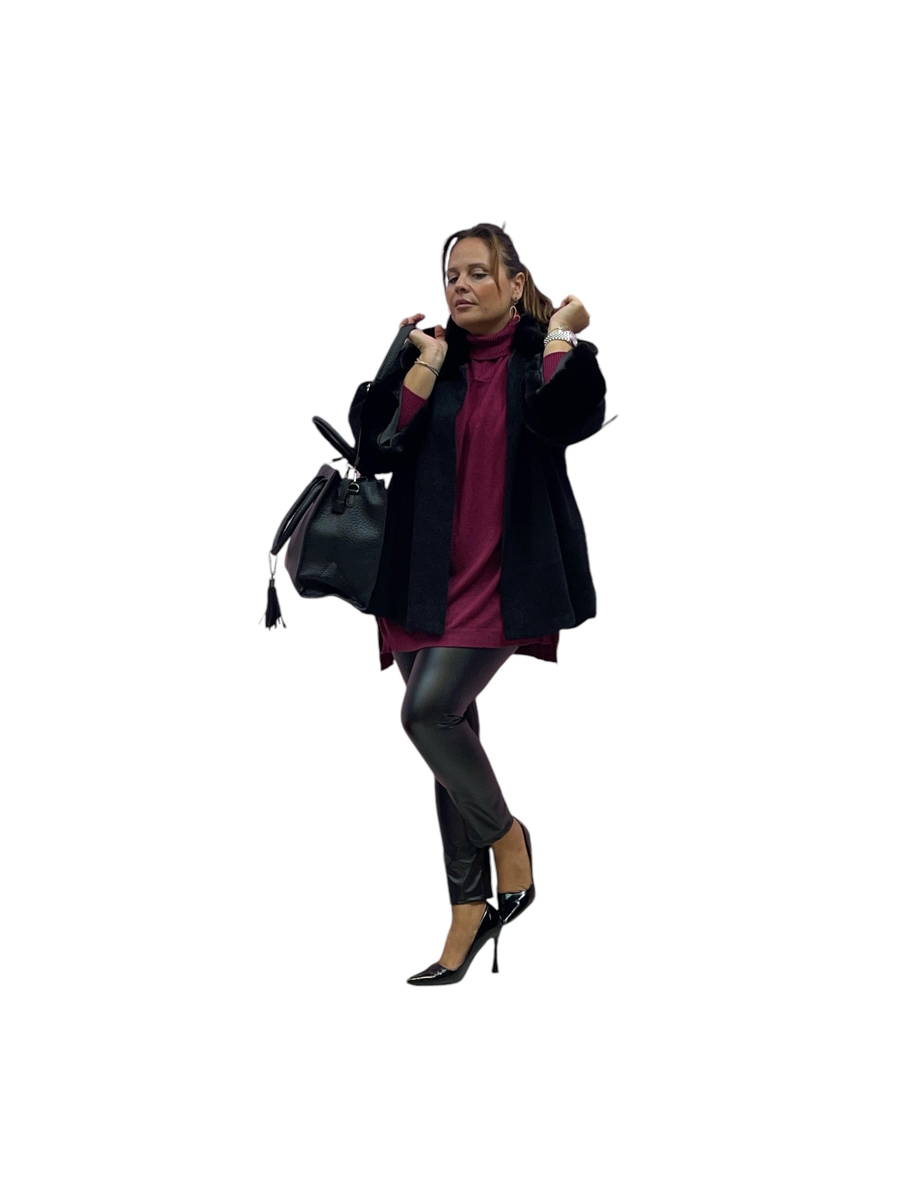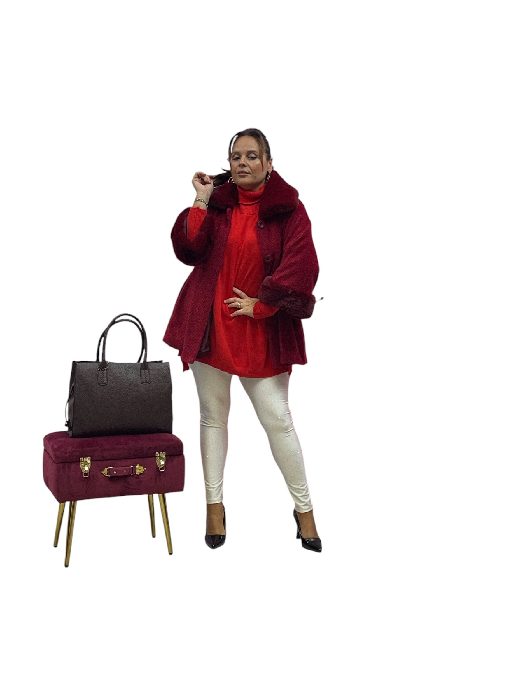 Cappottino over con ecopelliccia al collo e polsi 2 bottoni modello svasato manica al polso