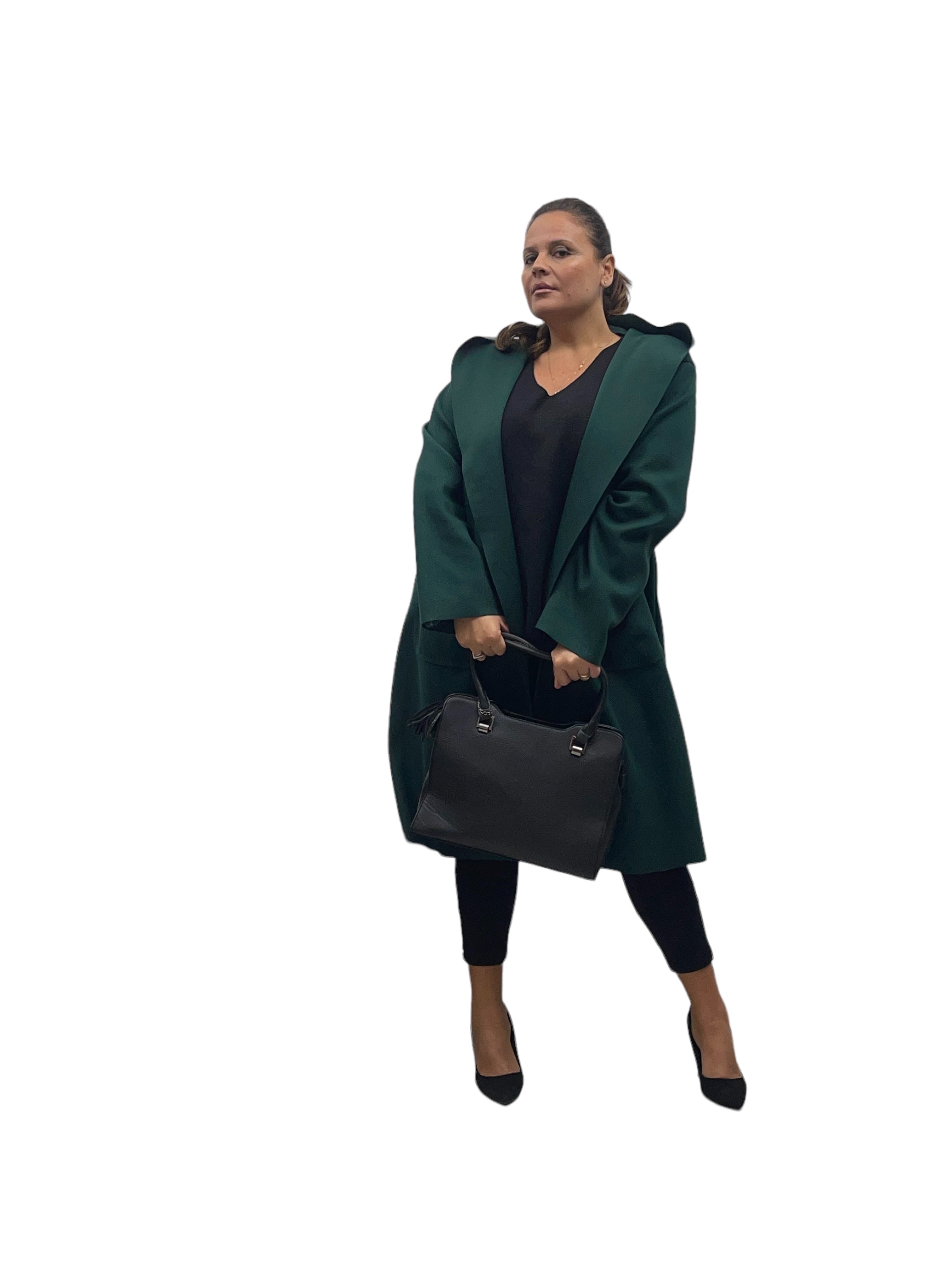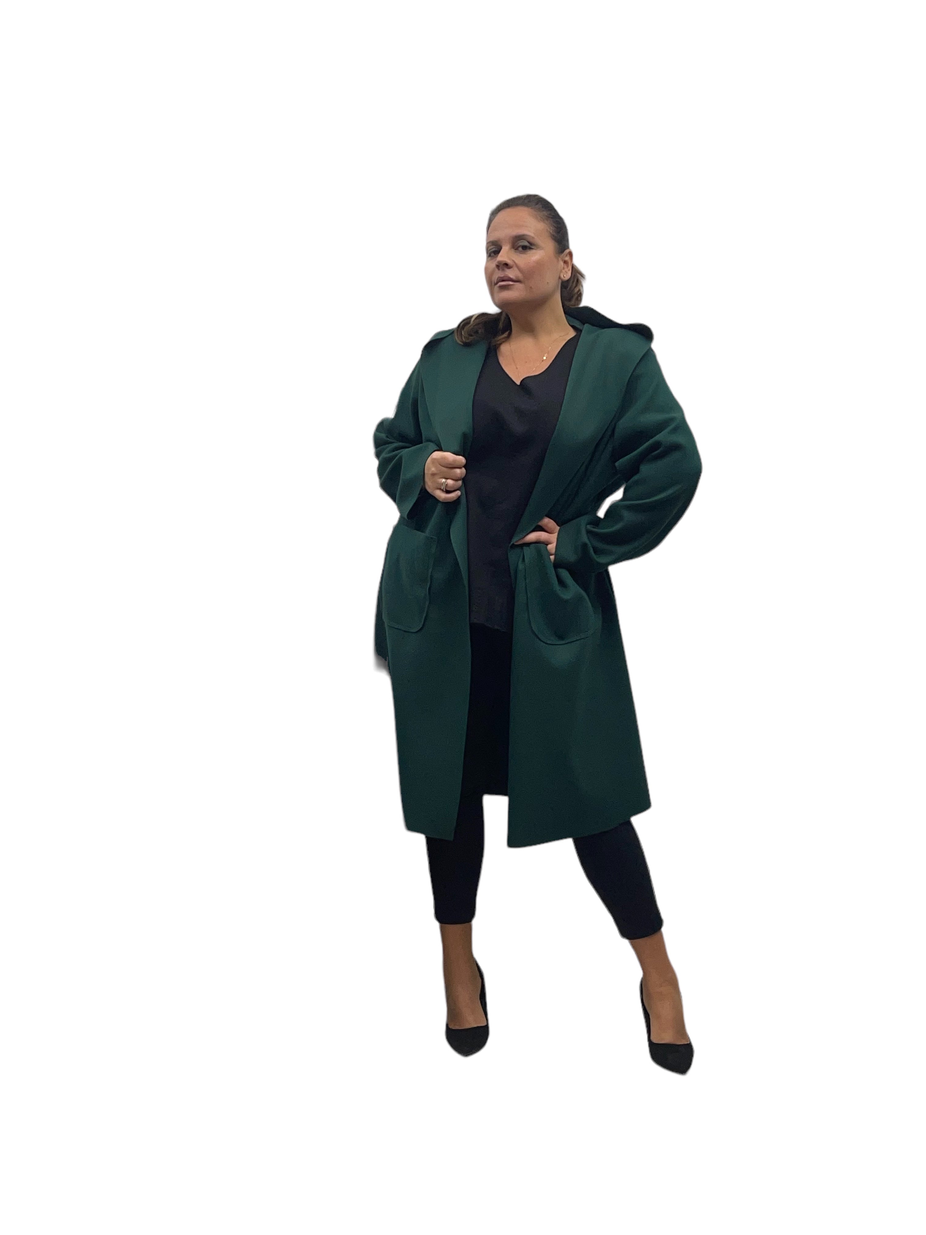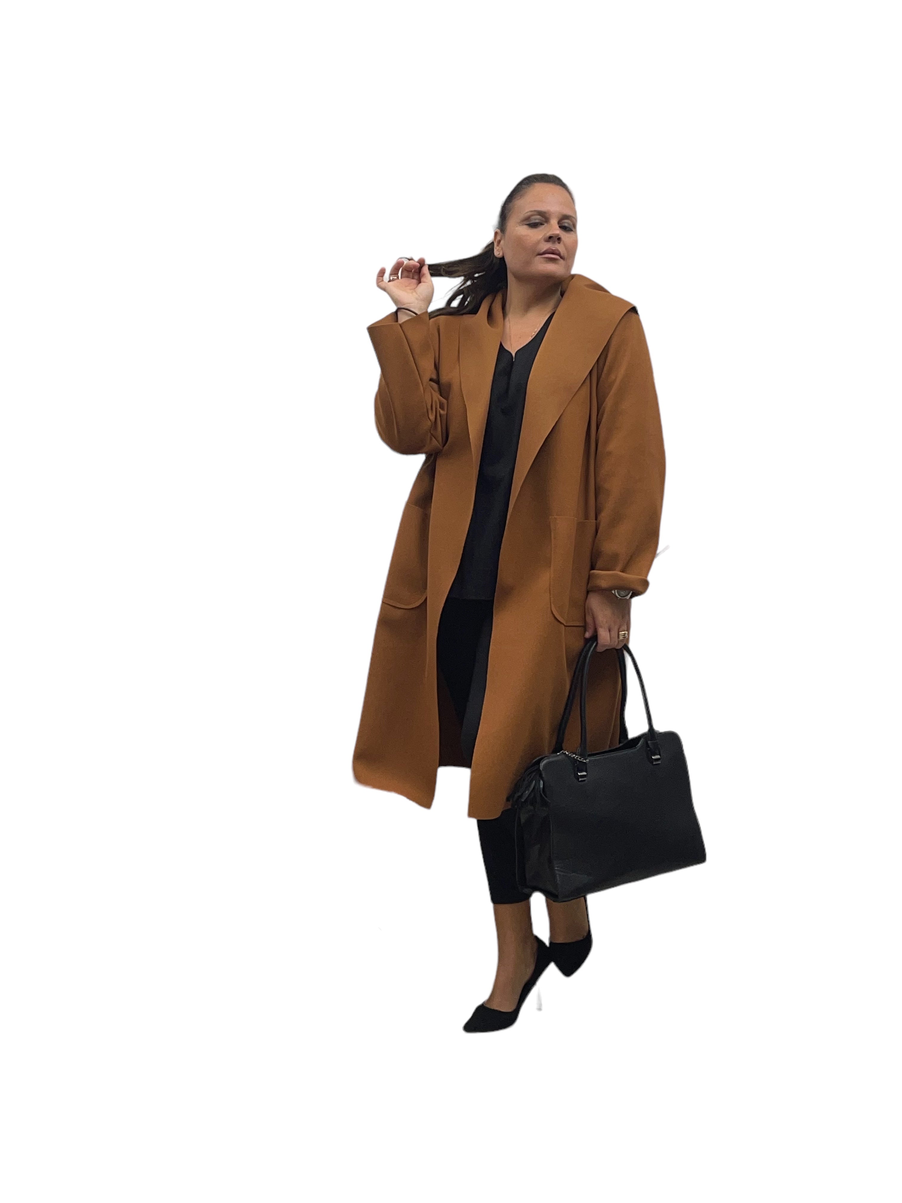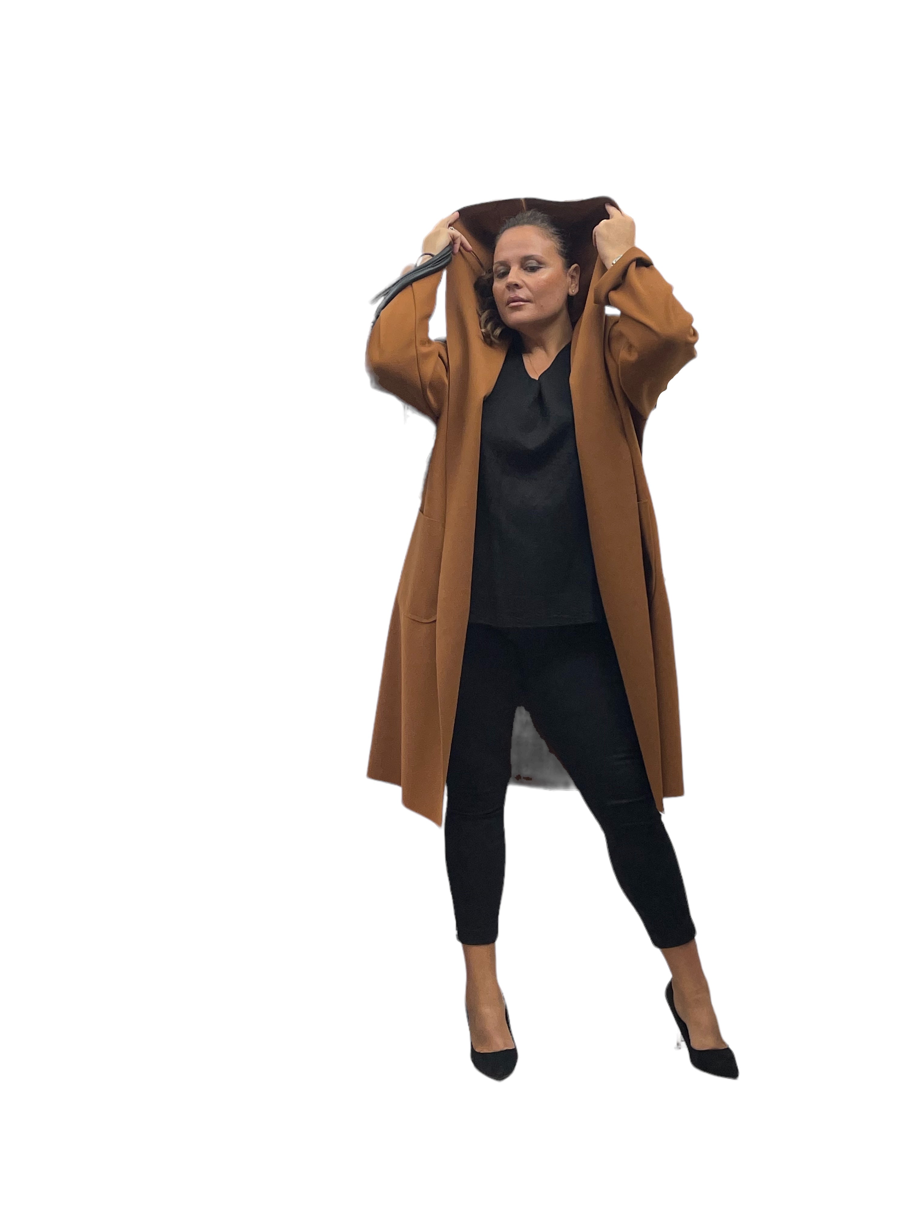 Cardigan lungo effetto in panno con cappuccio e tasconi