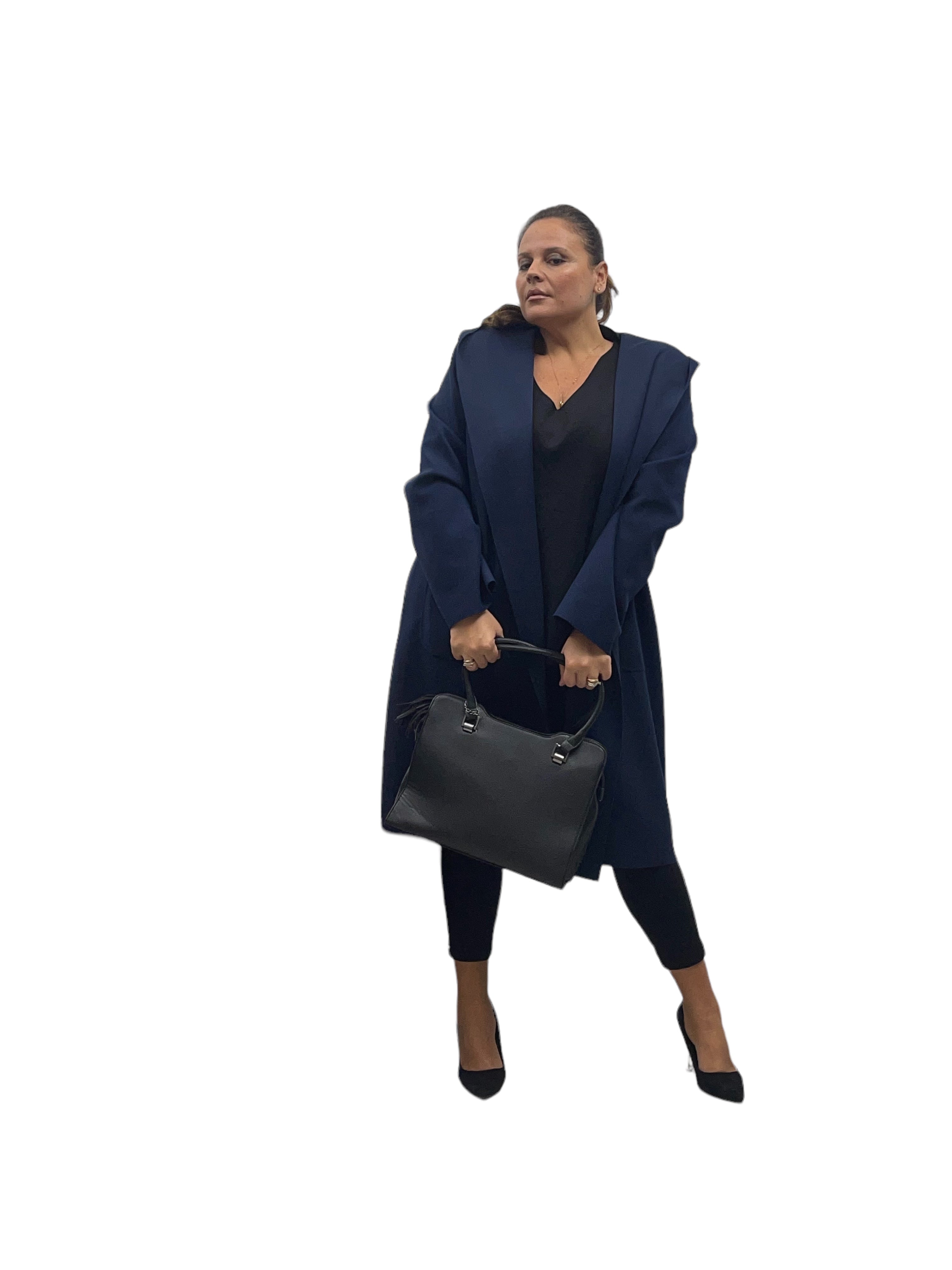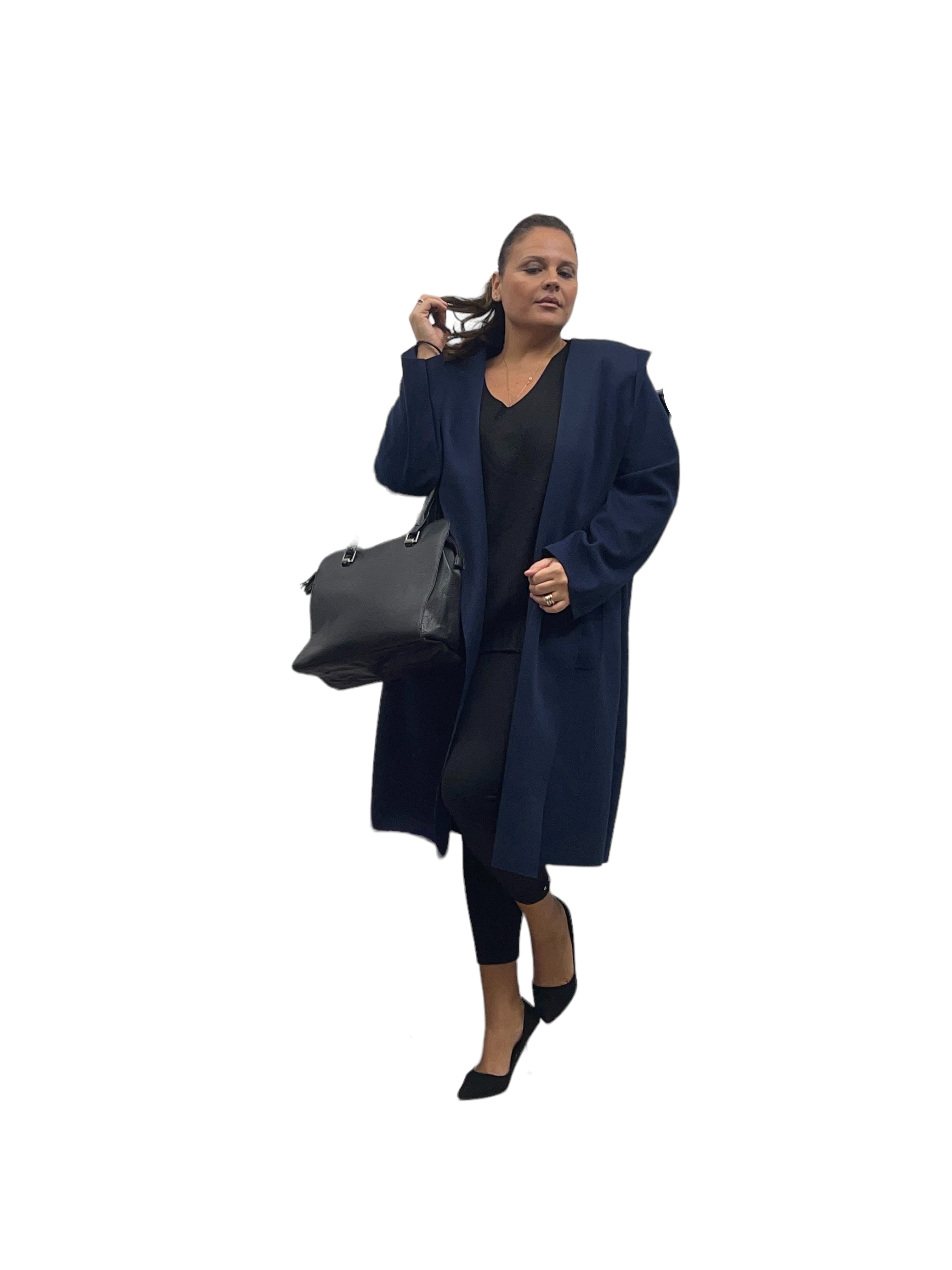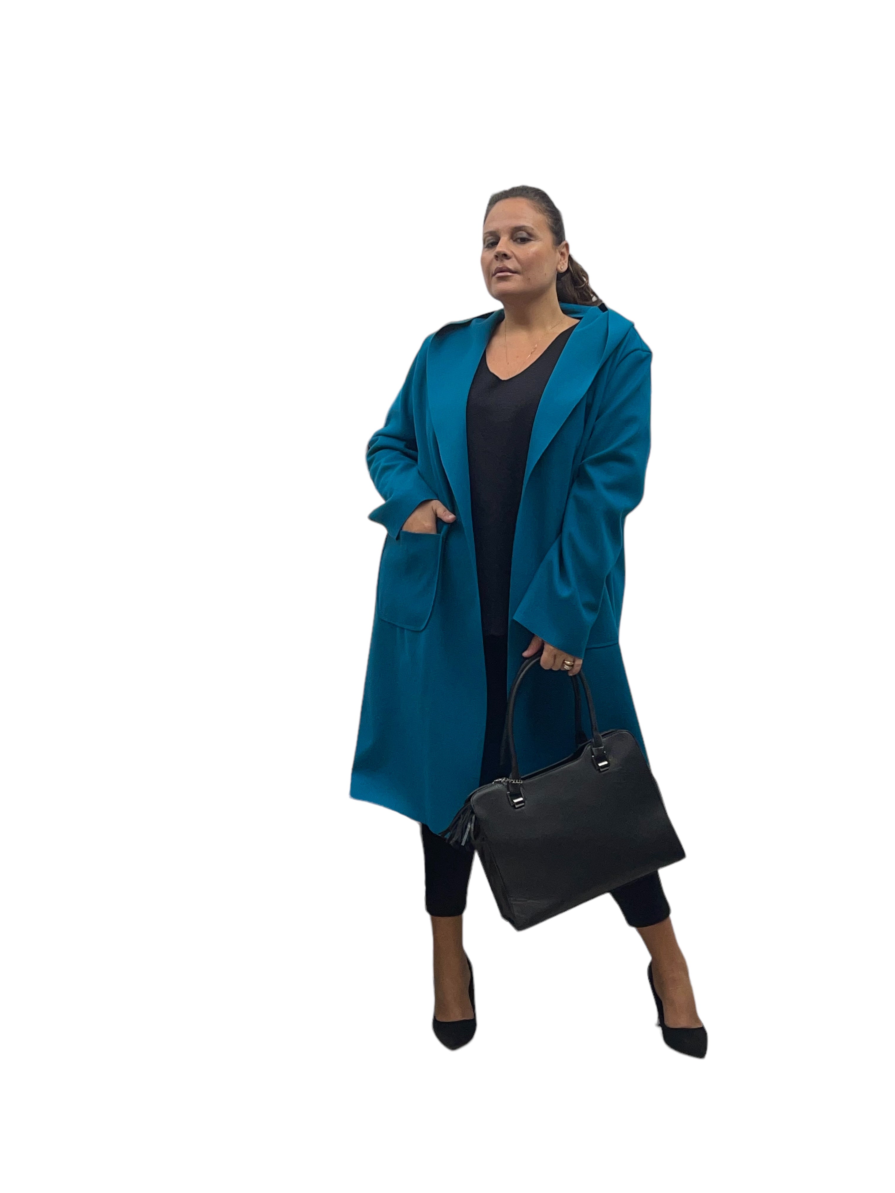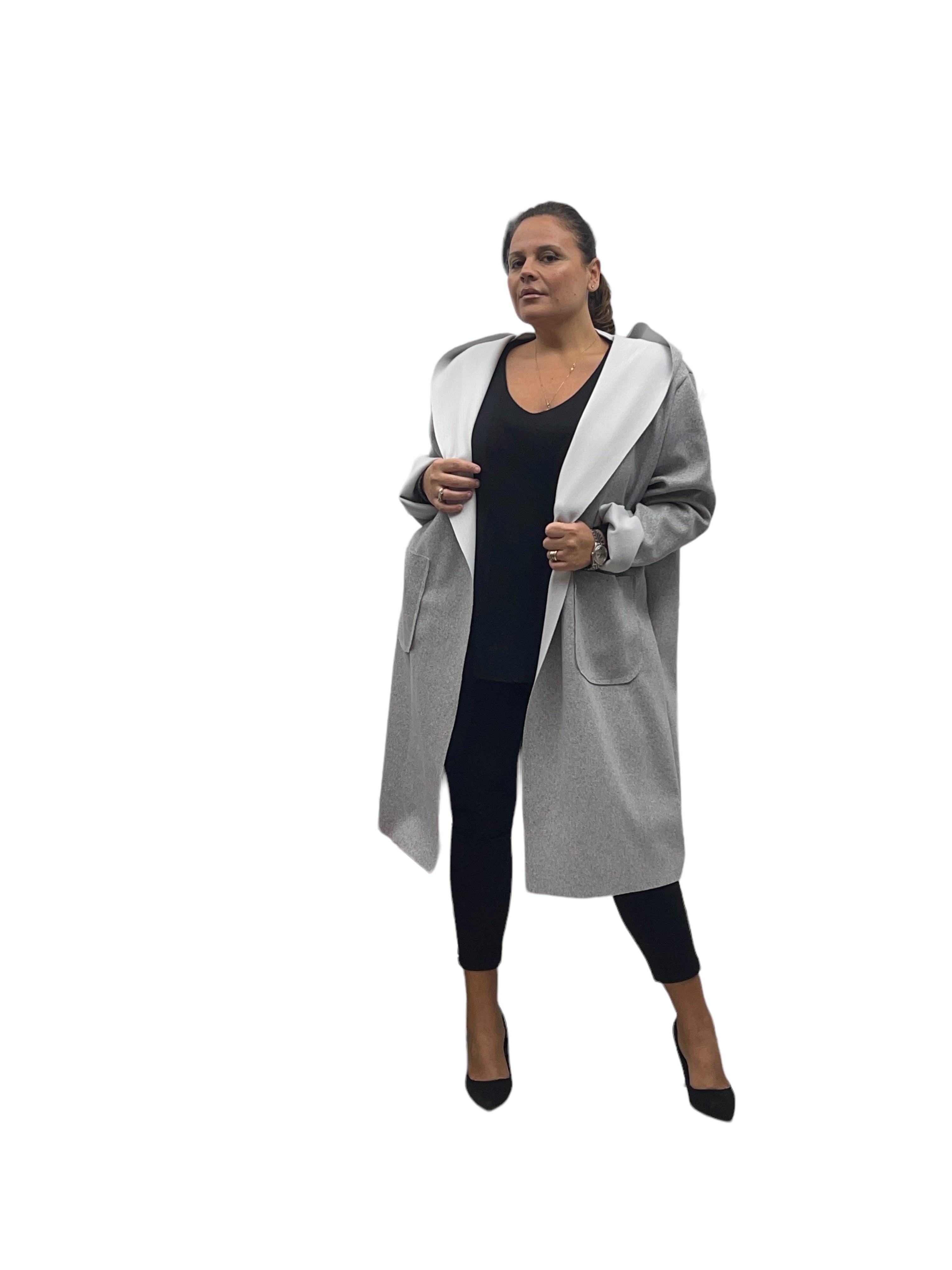 Cardigan lungo effetto in panno con cappuccio e tasconi