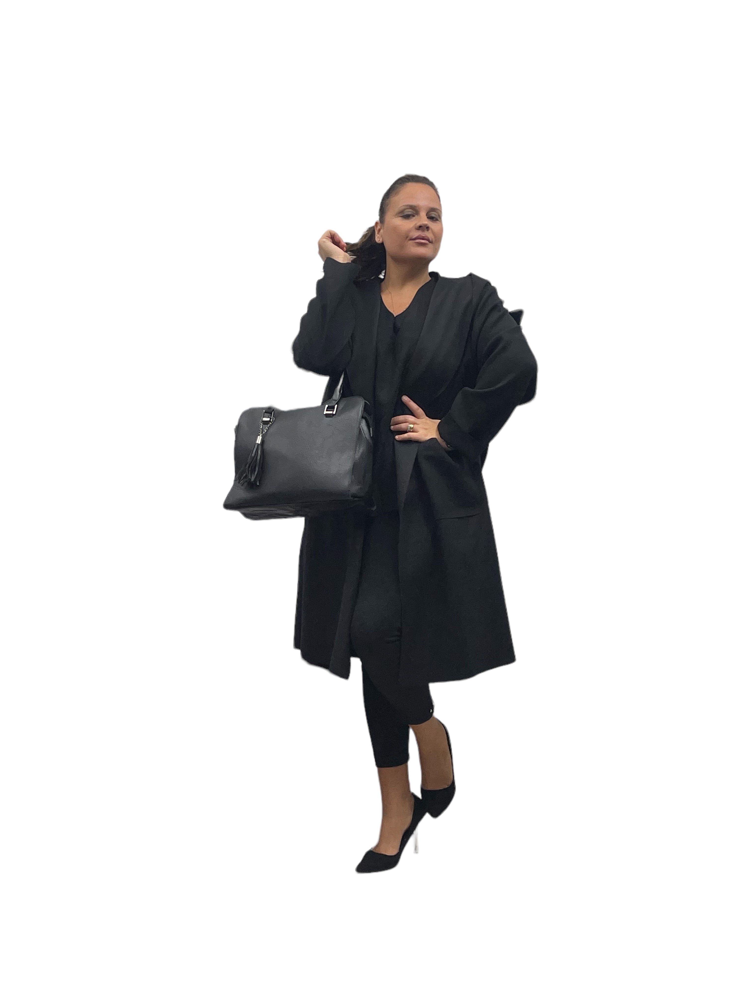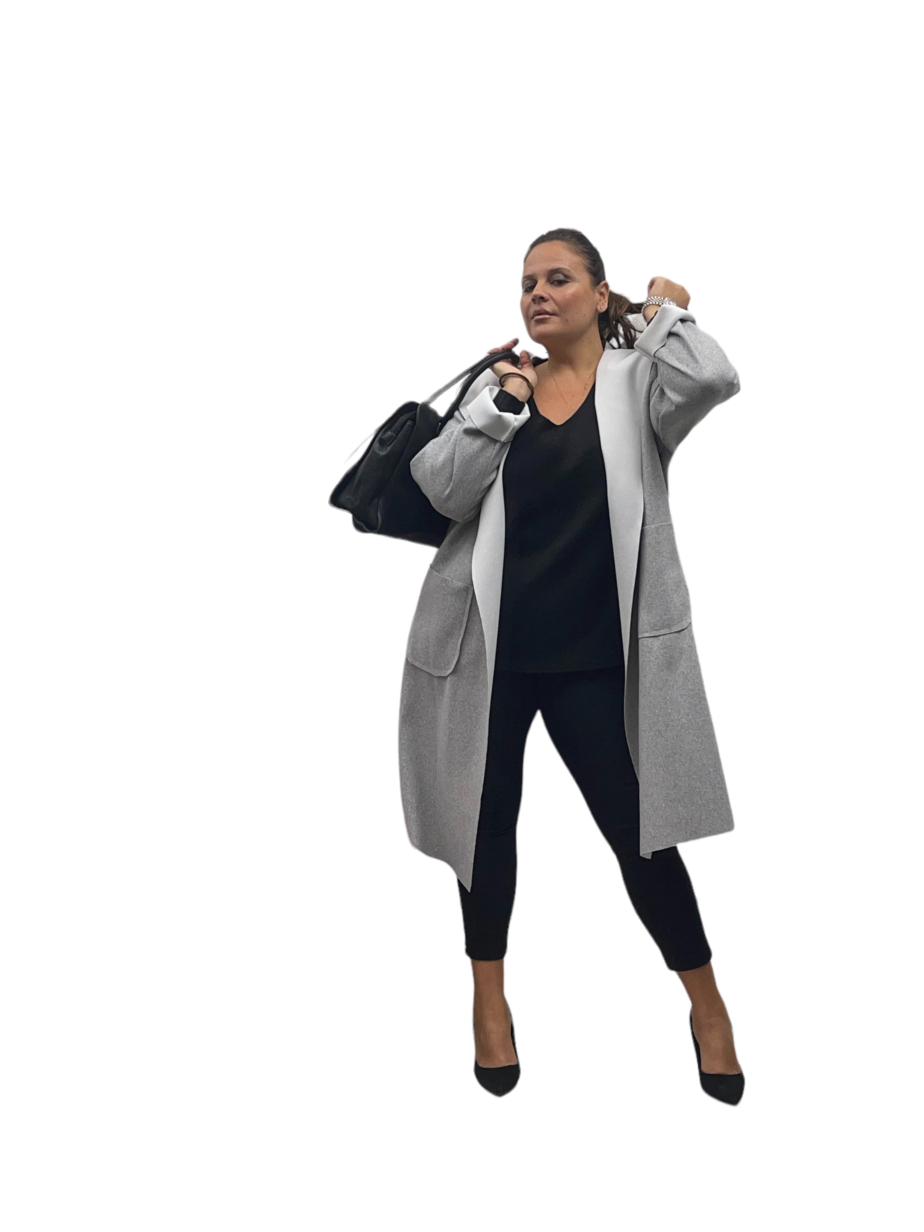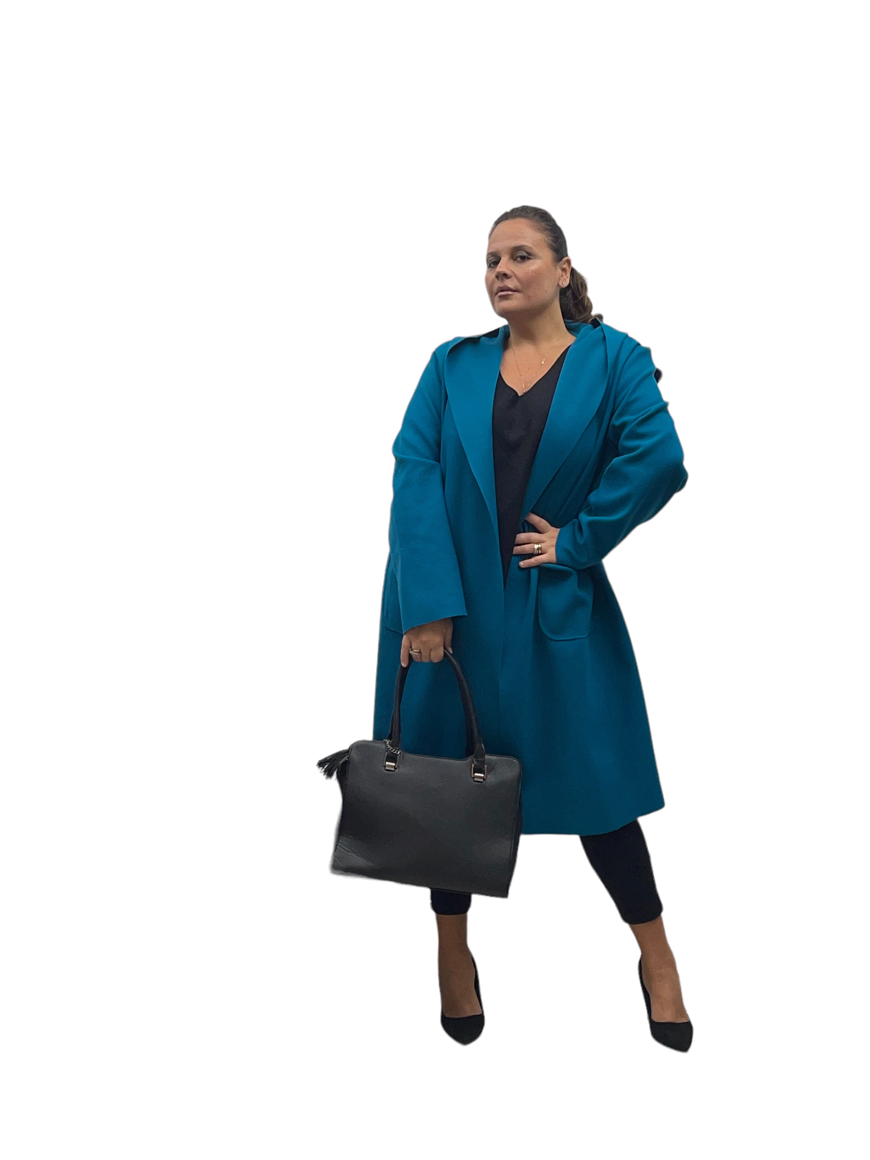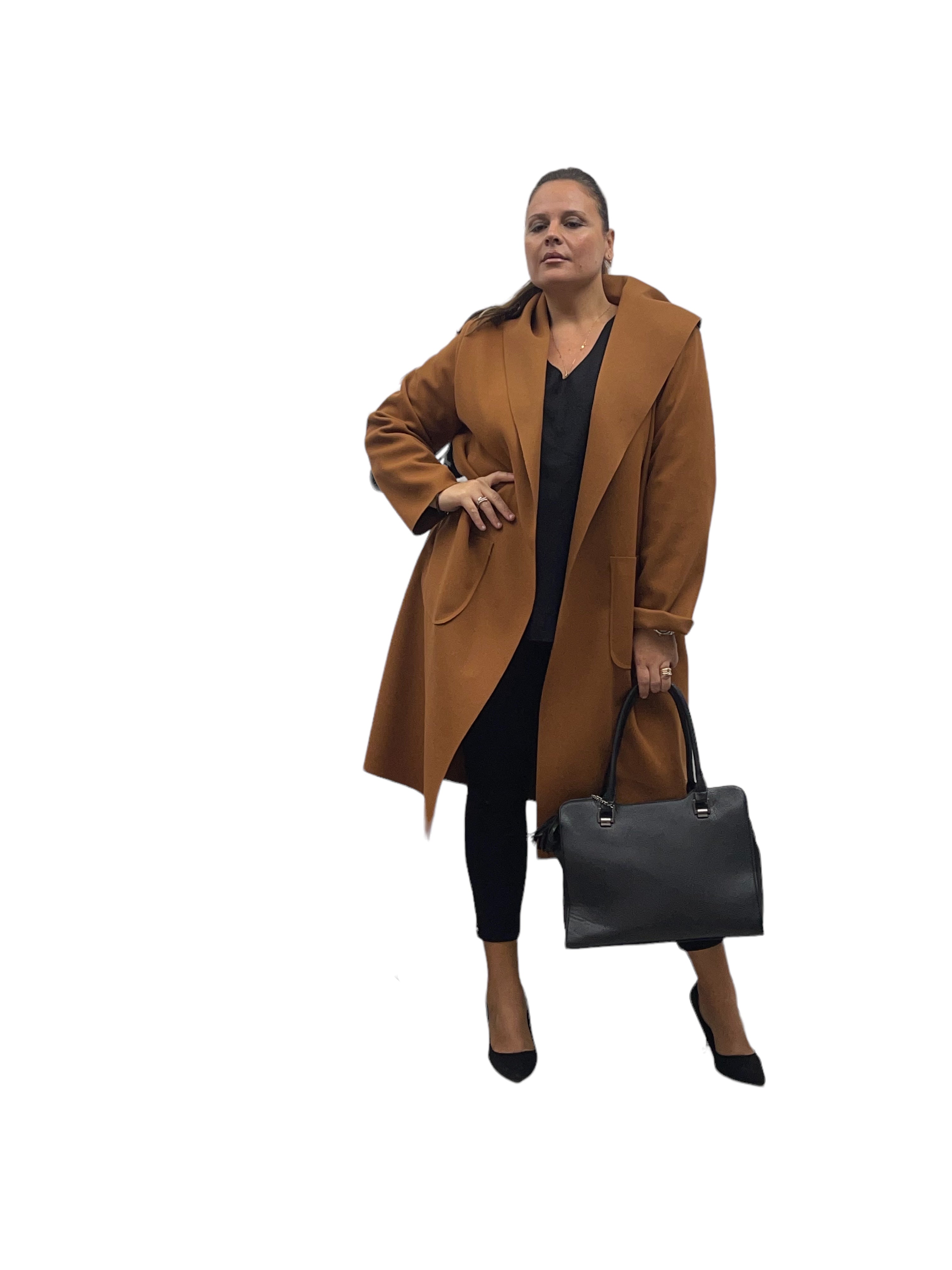 Cardigan lungo effetto in panno con cappuccio e tasconi