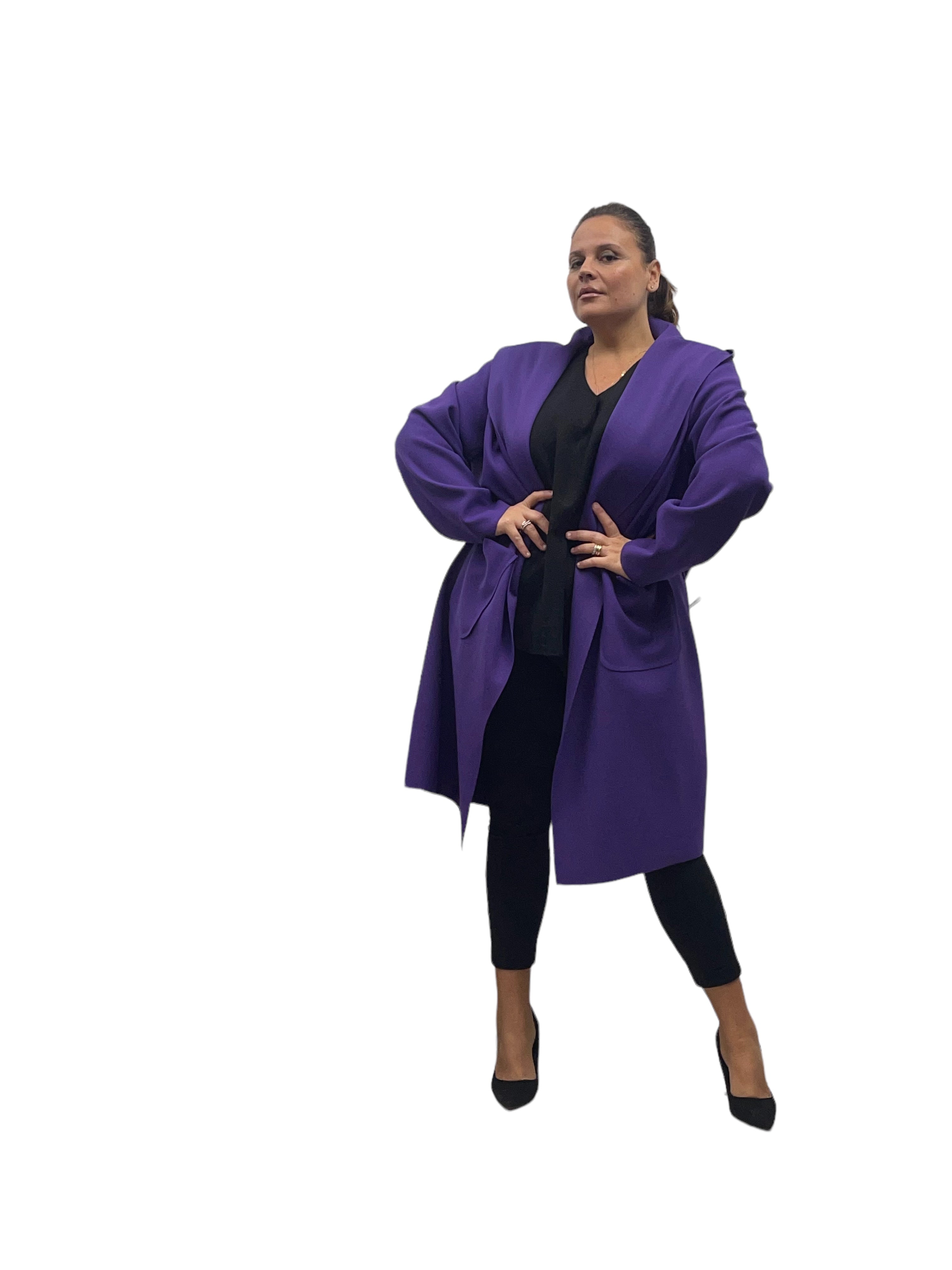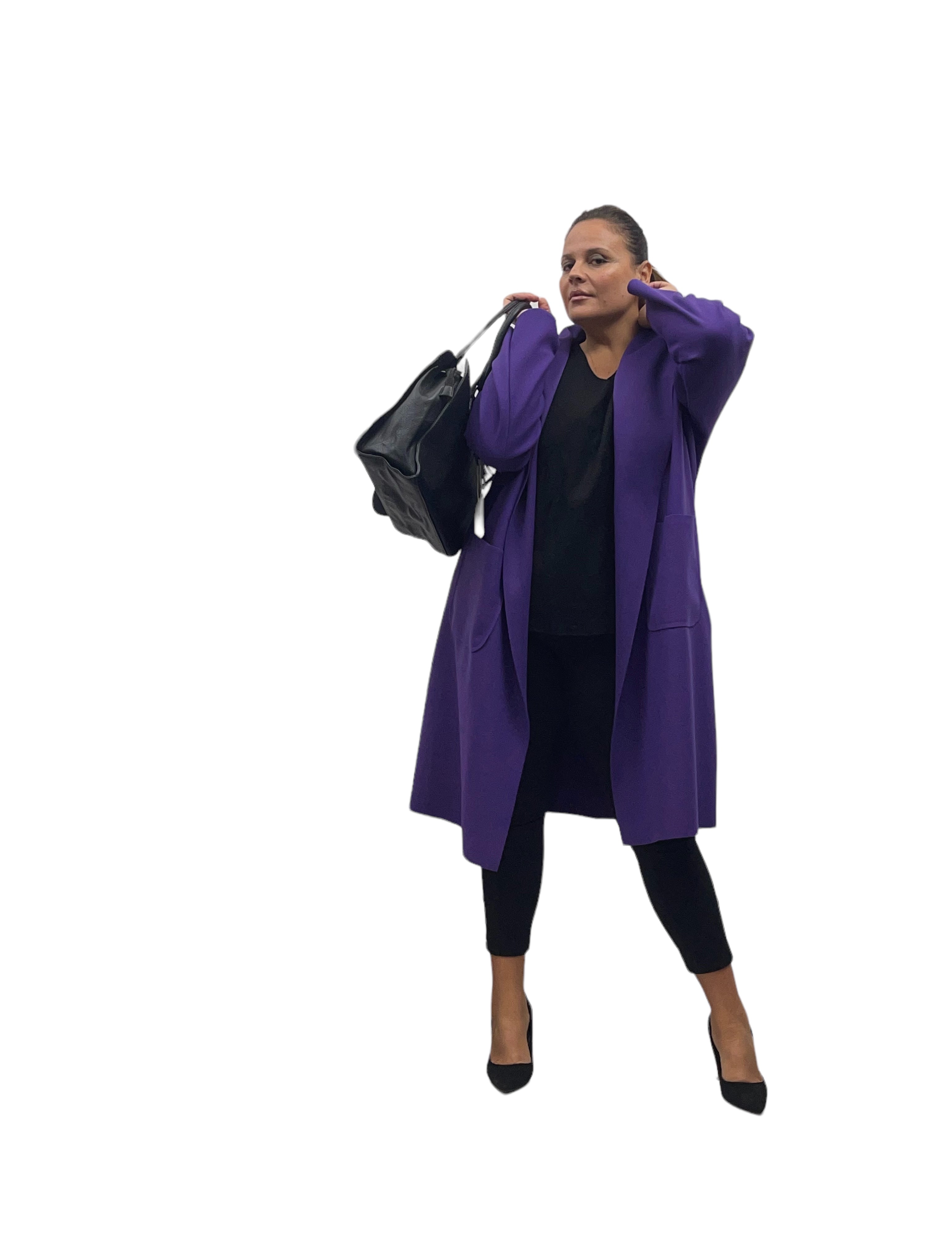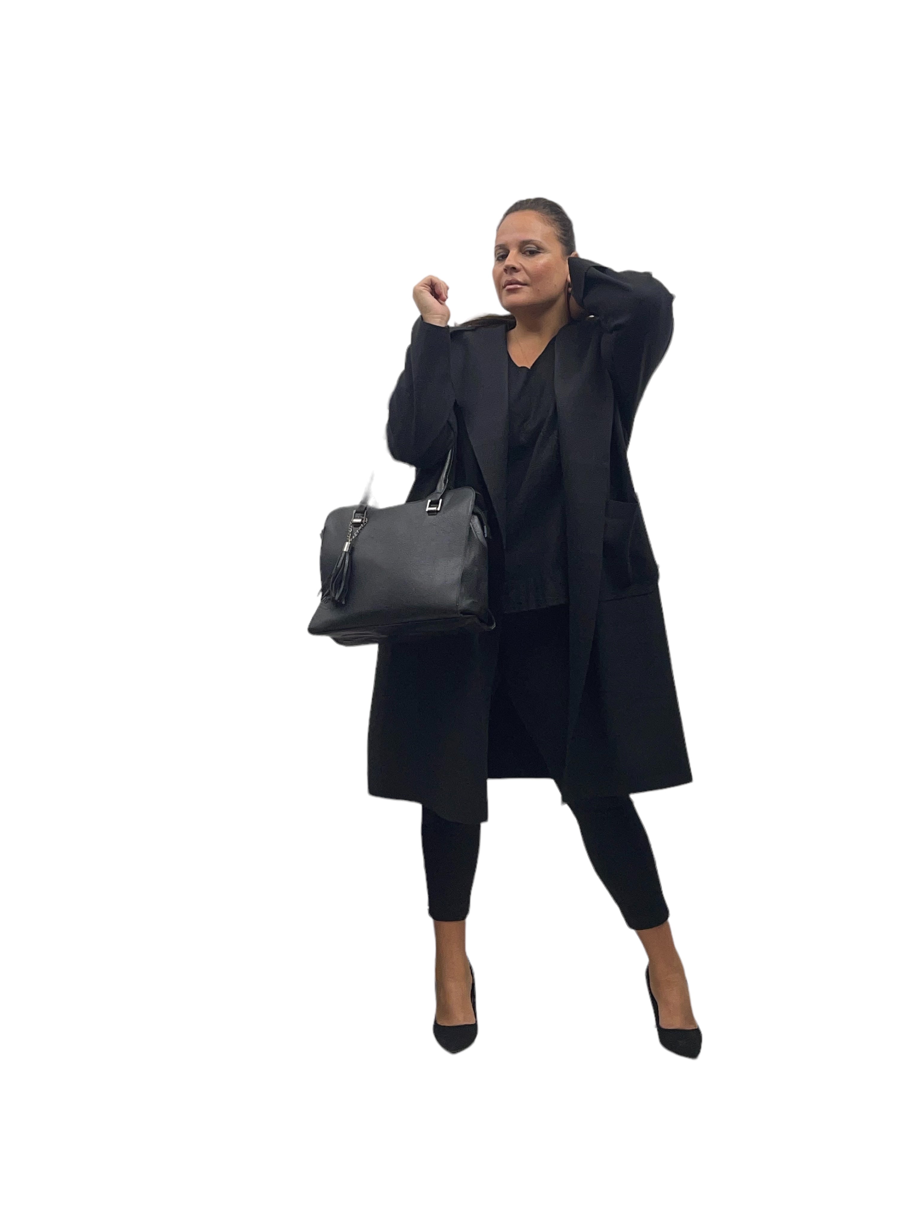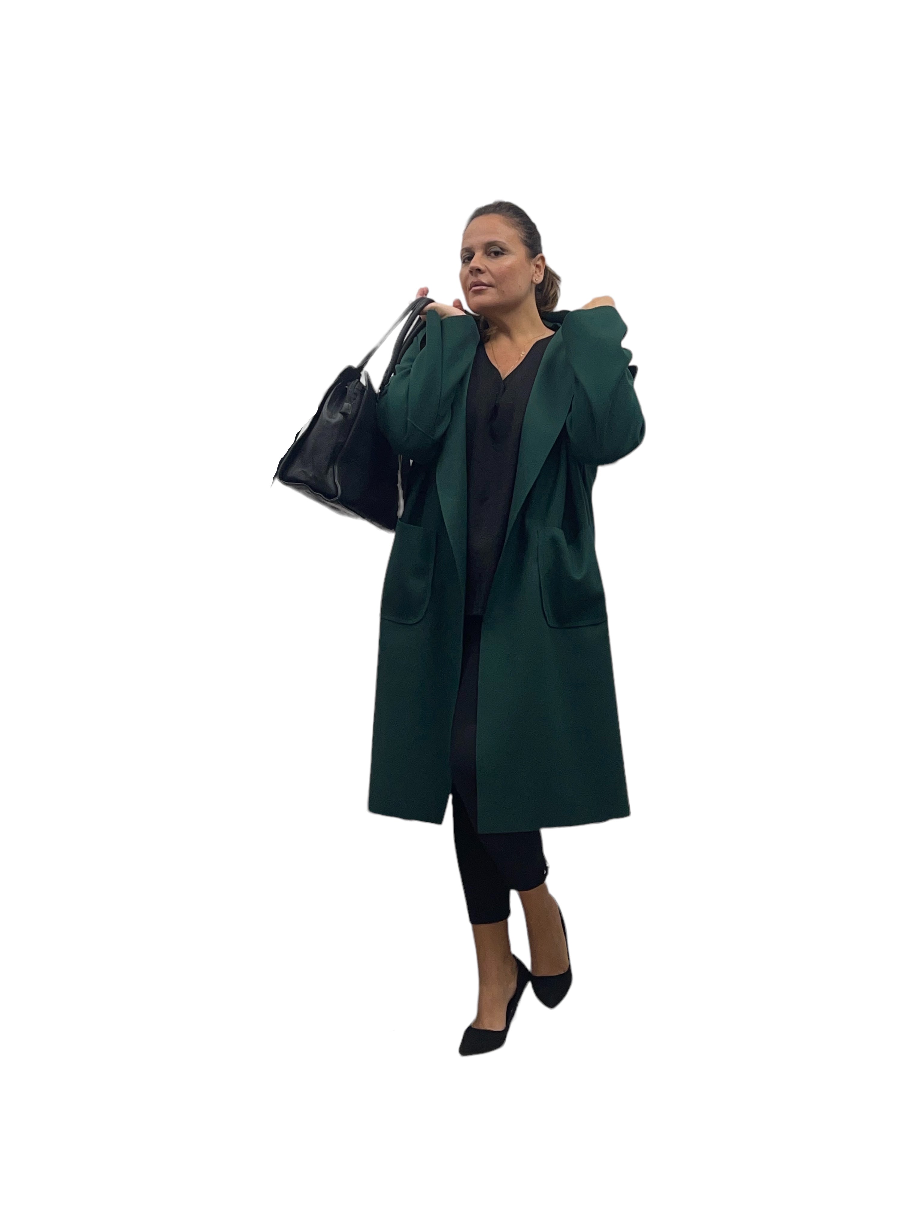 Cardigan lungo effetto in panno con cappuccio e tasconi