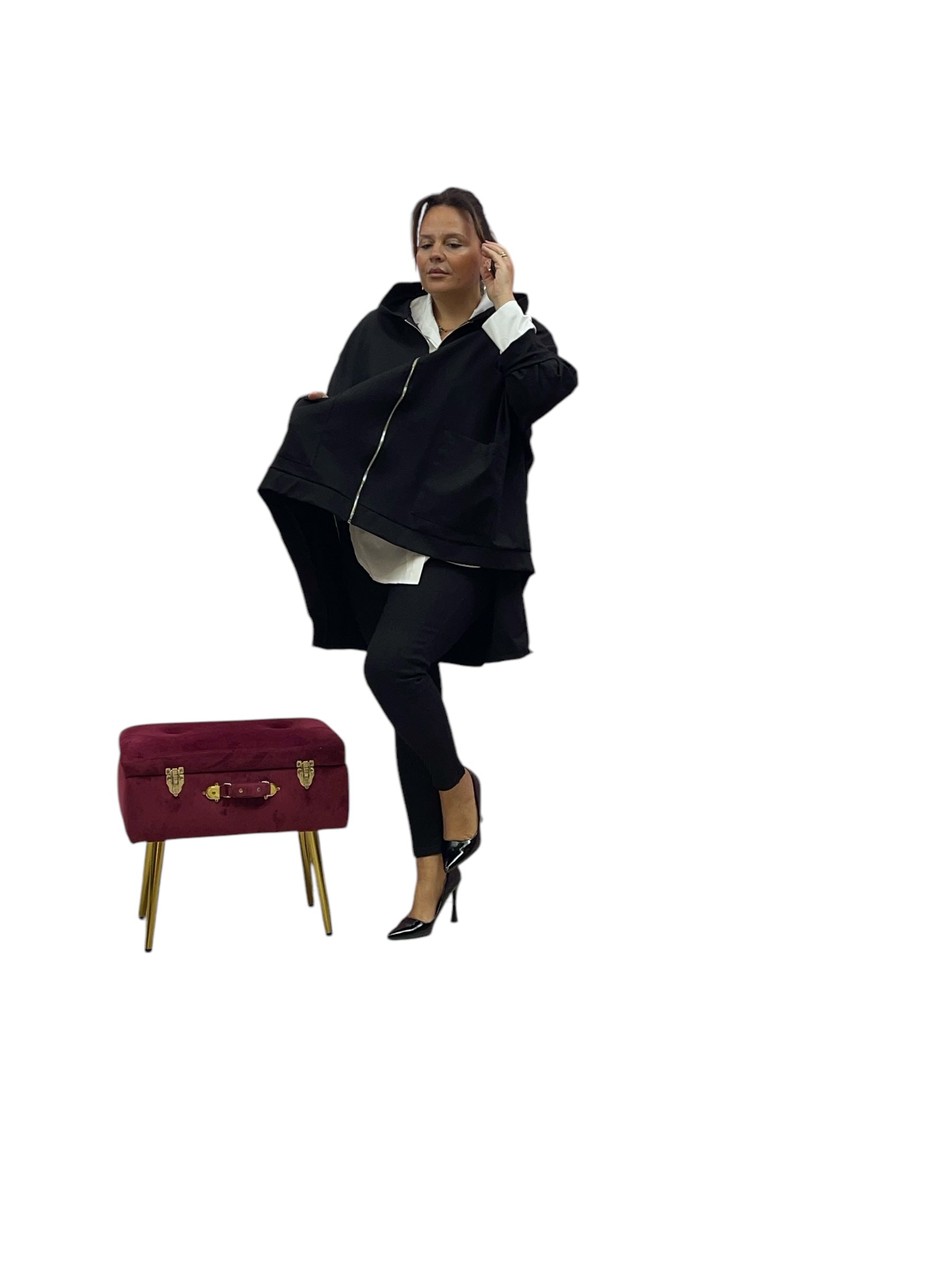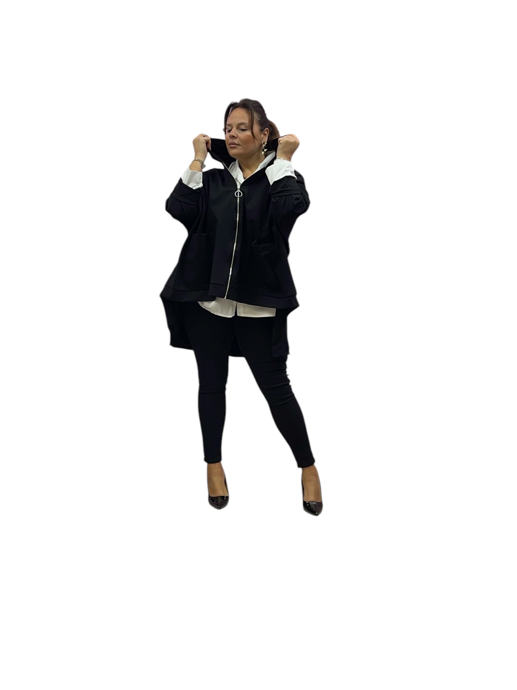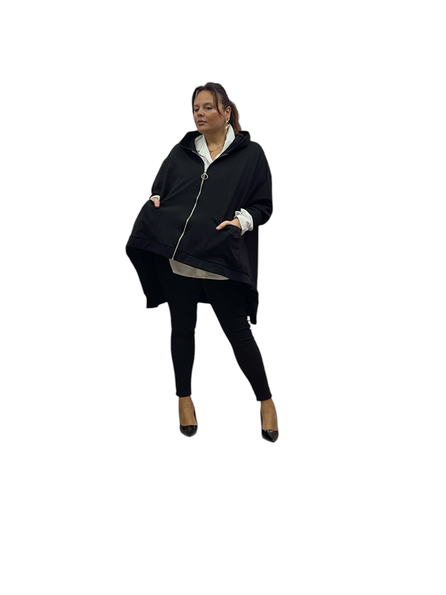Cardigan over in felpa con cappuccio e zip corto avanti e lungo dietro