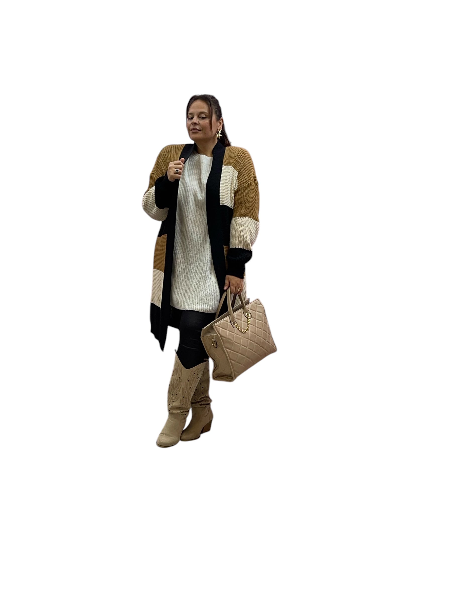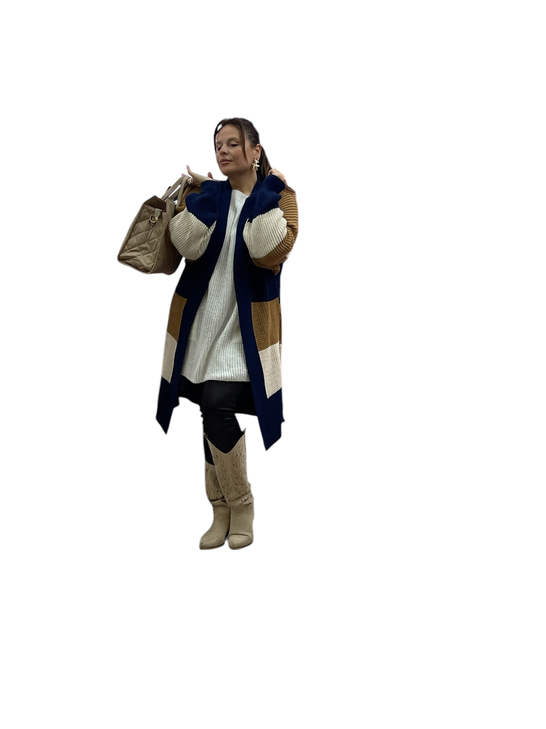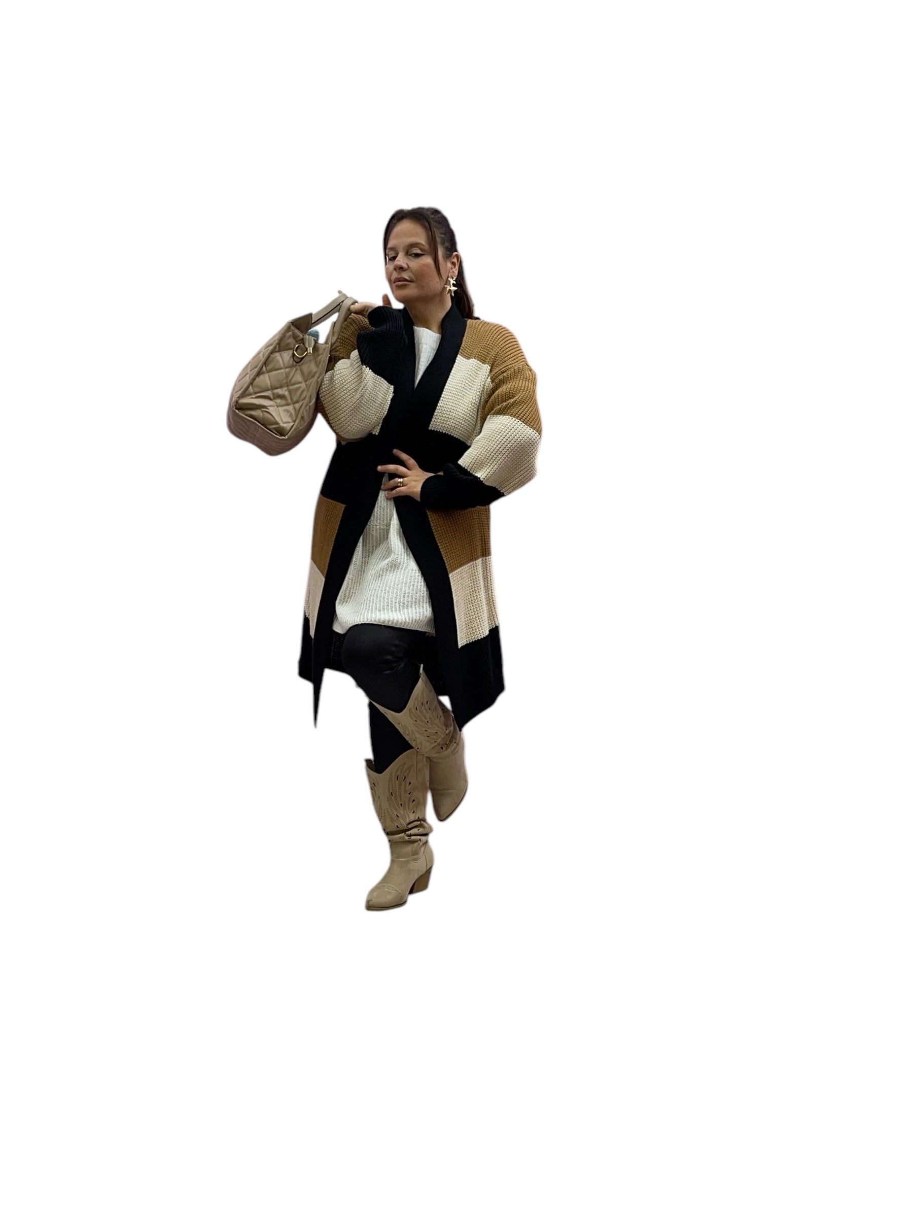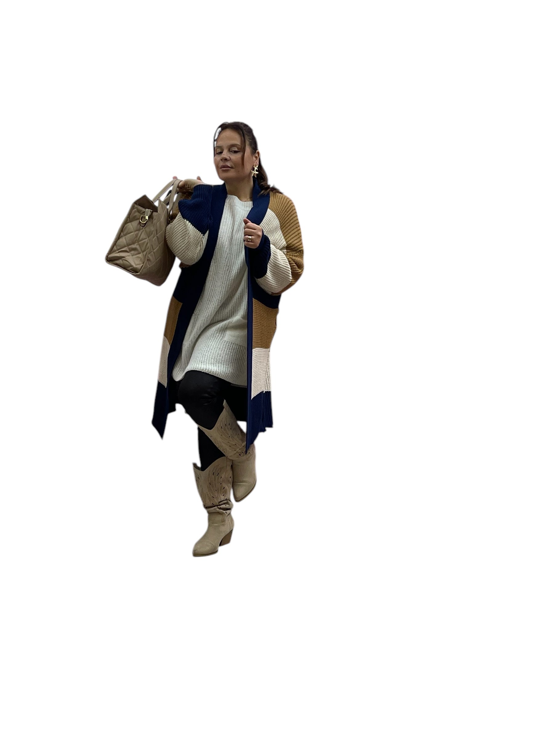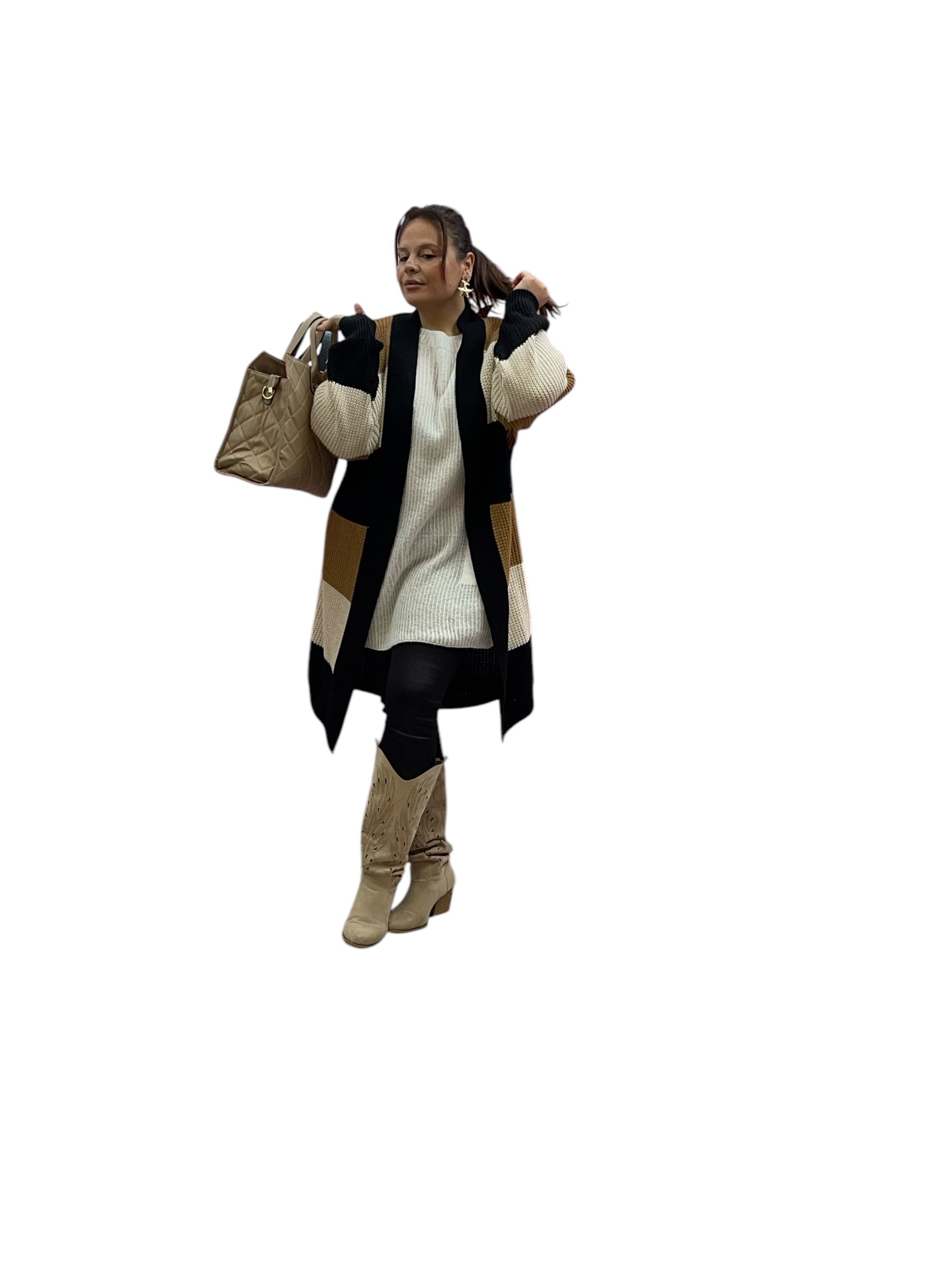 Cardigan over fasciato effetto lana grossa