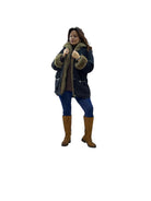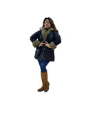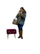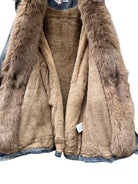 Giaccone lungo in jeans con interno in ecopelliccia,fascia pelo lungo sul bordo e polsi completamente staccabile e culisse interna in vita