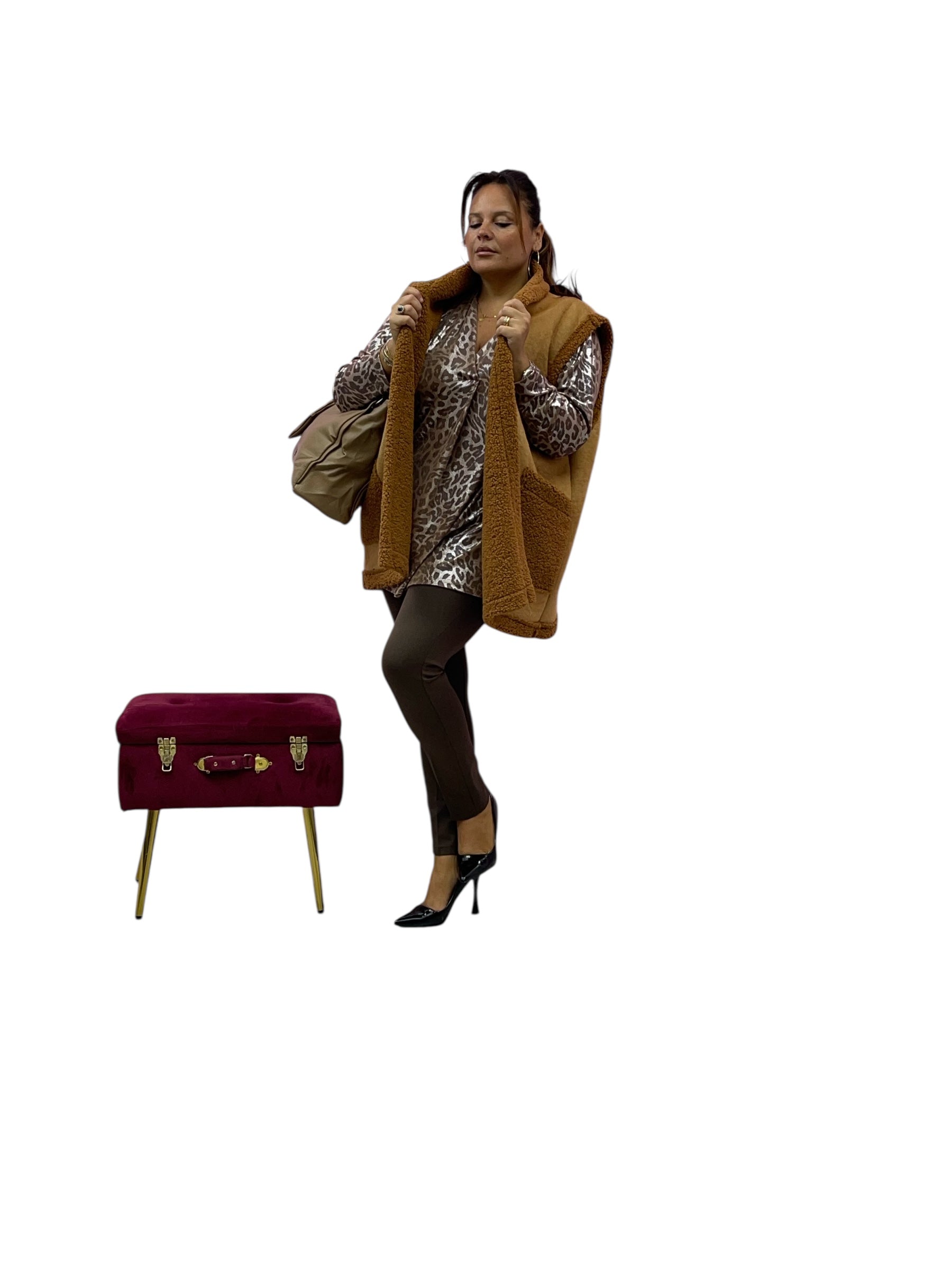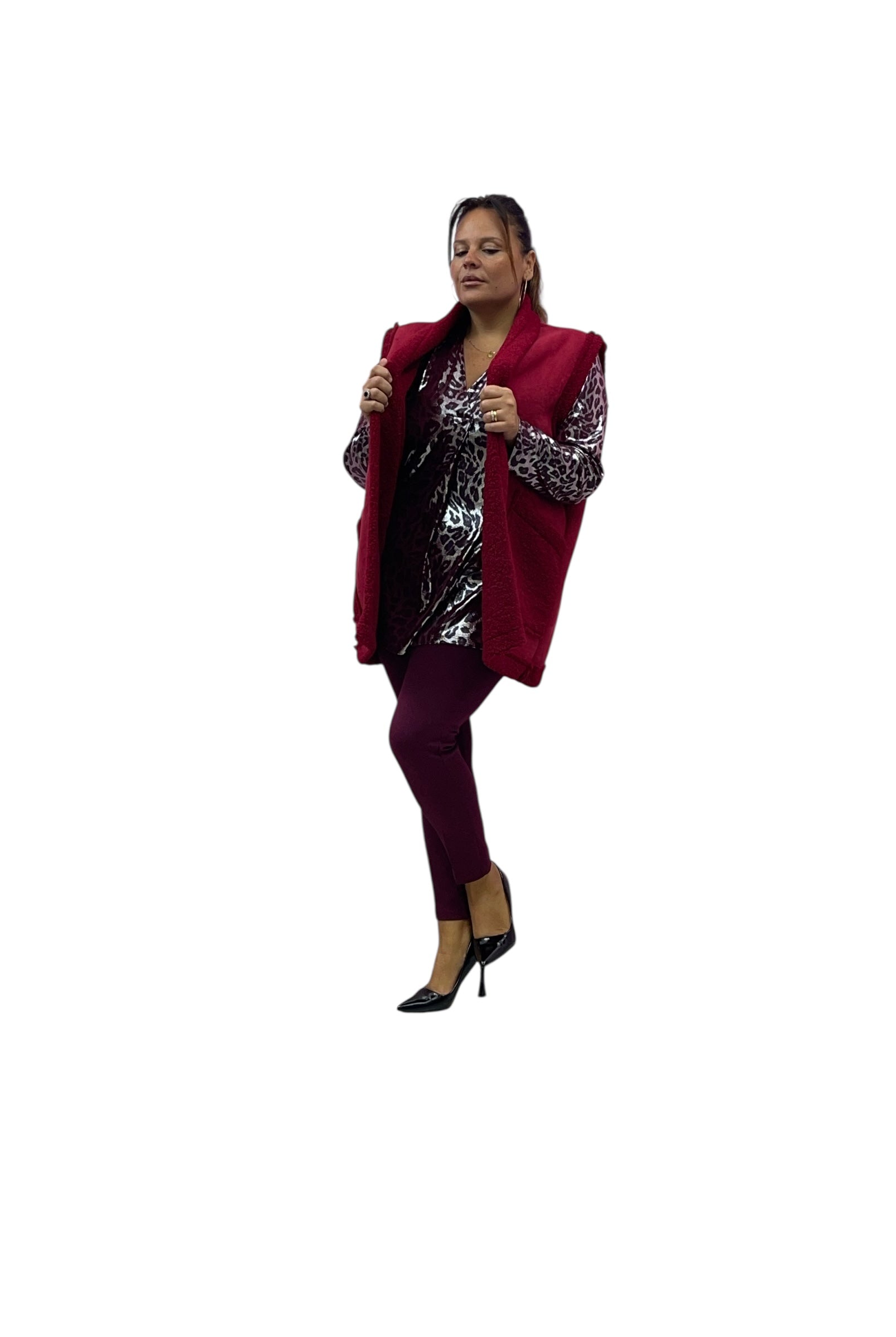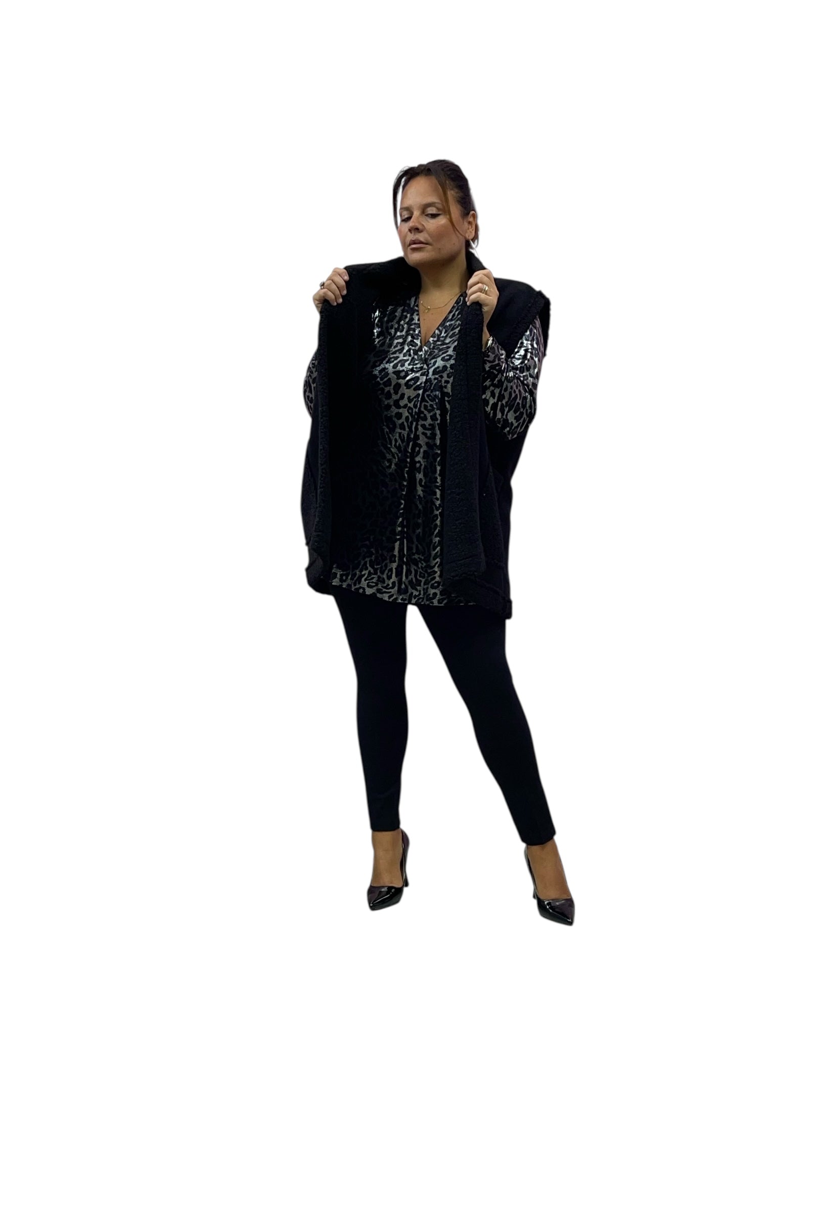 Giaccone/montoncino smanicato in ecopelle con ecopelliccia interna e tasconi