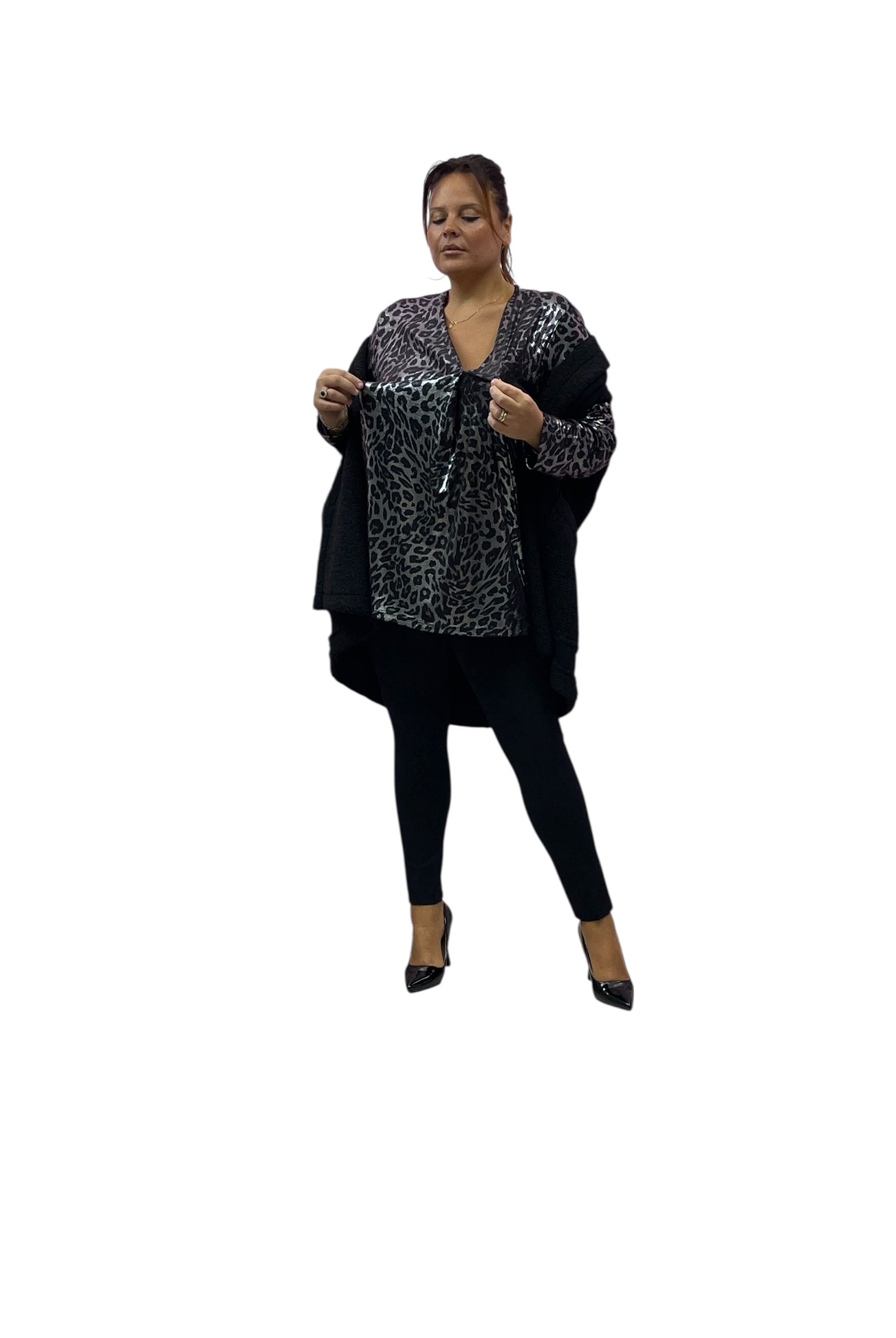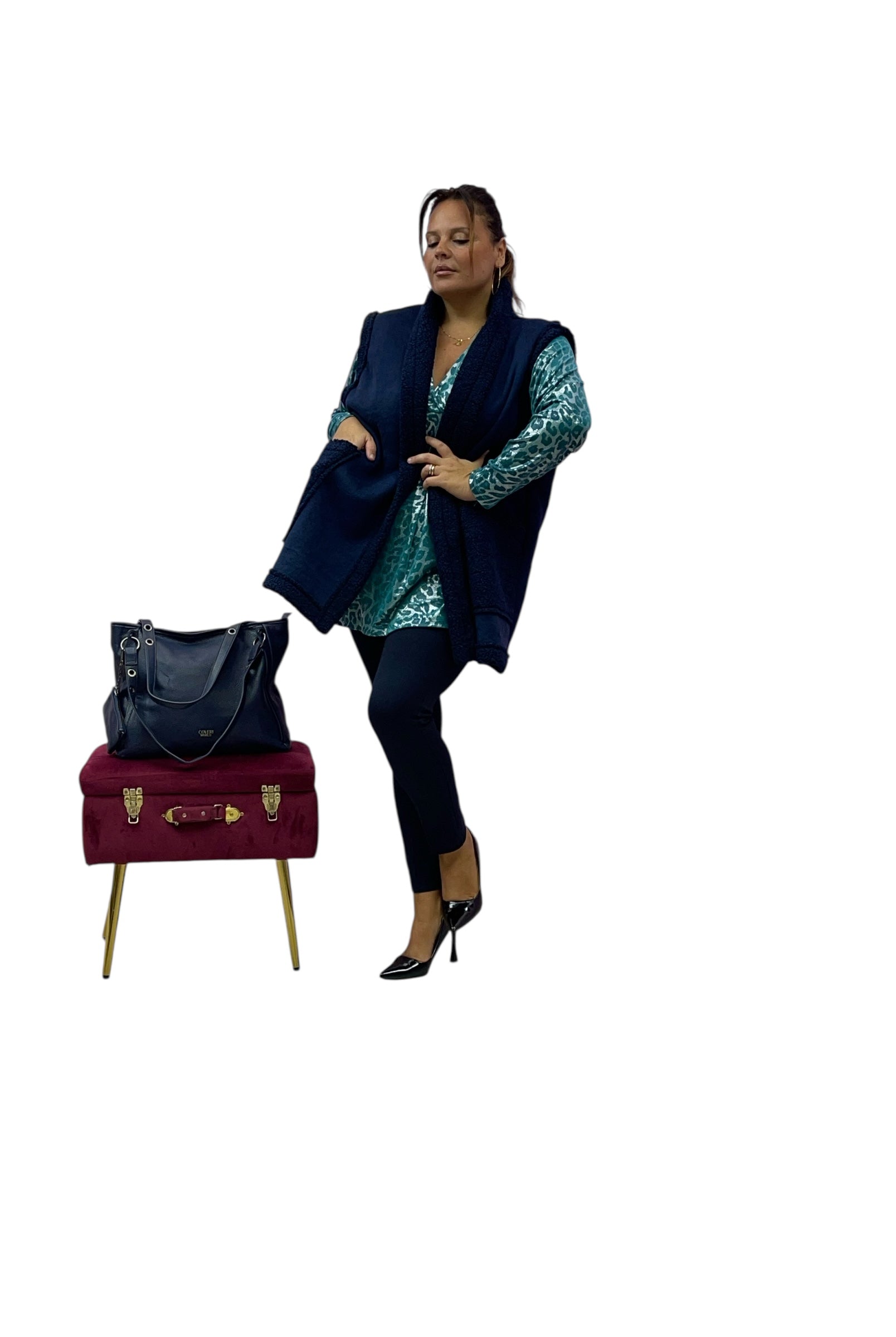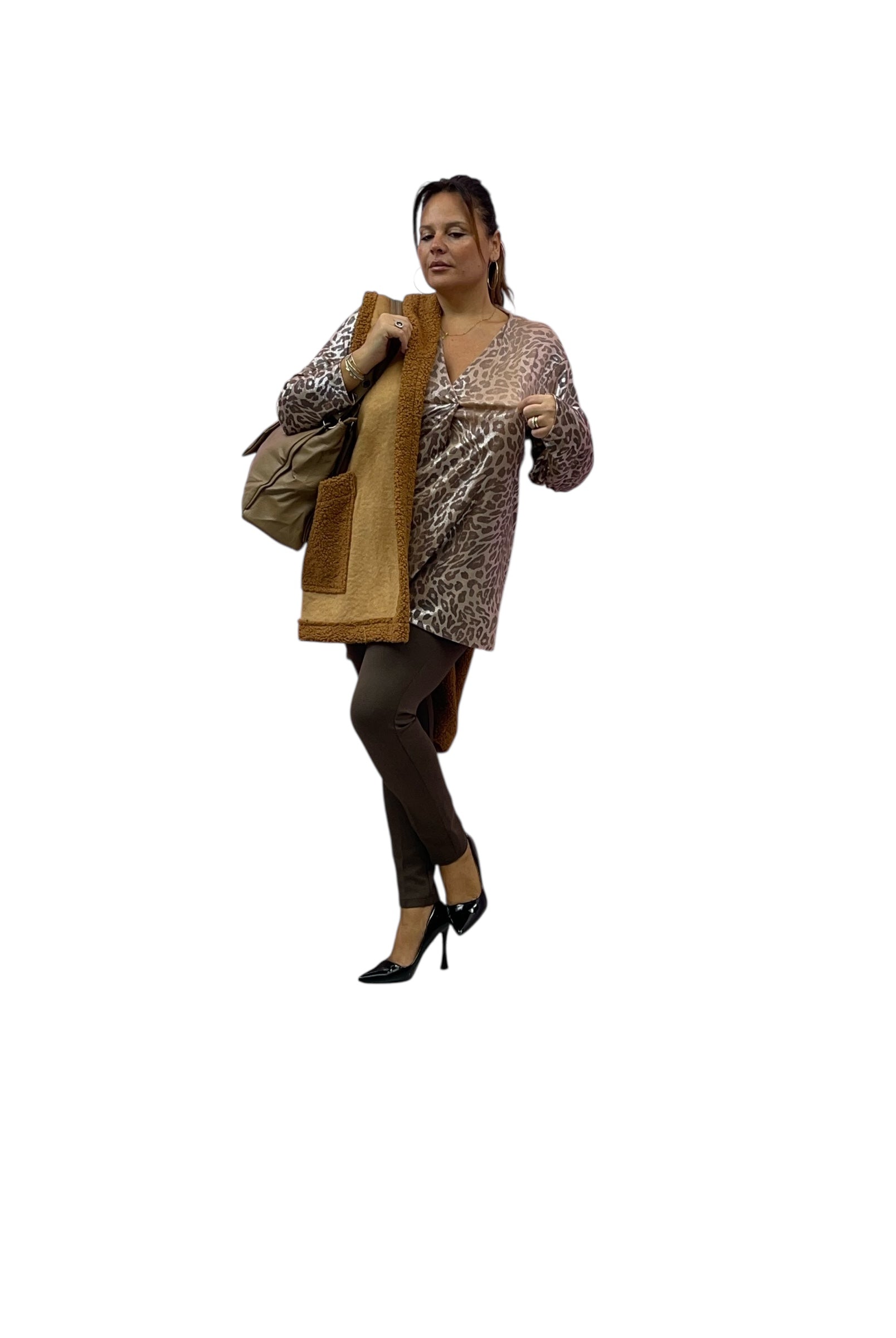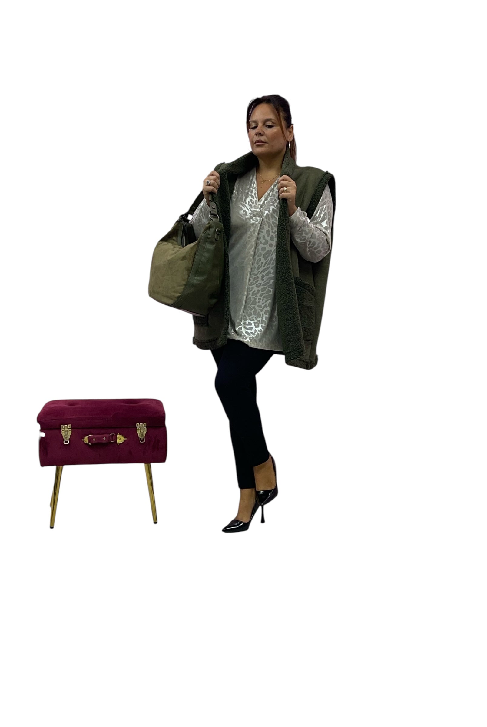 Giaccone/montoncino smanicato in ecopelle con ecopelliccia interna e tasconi