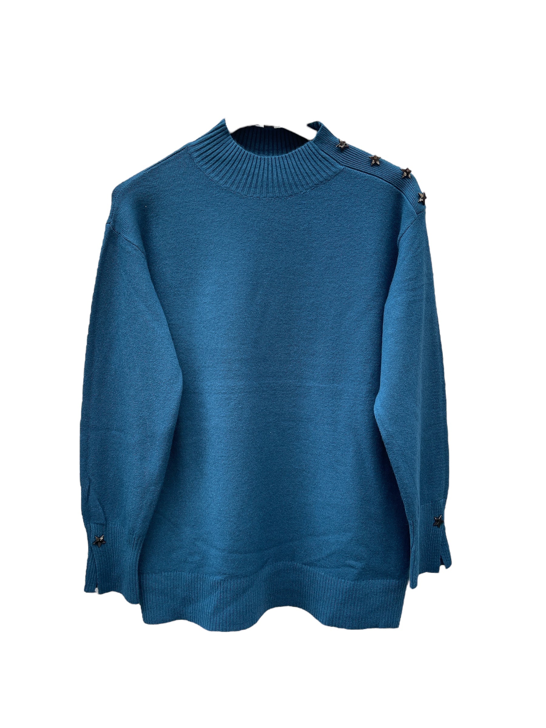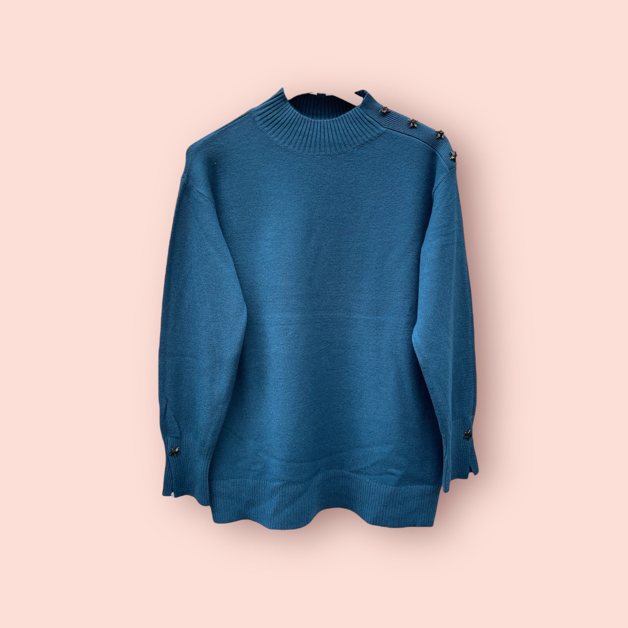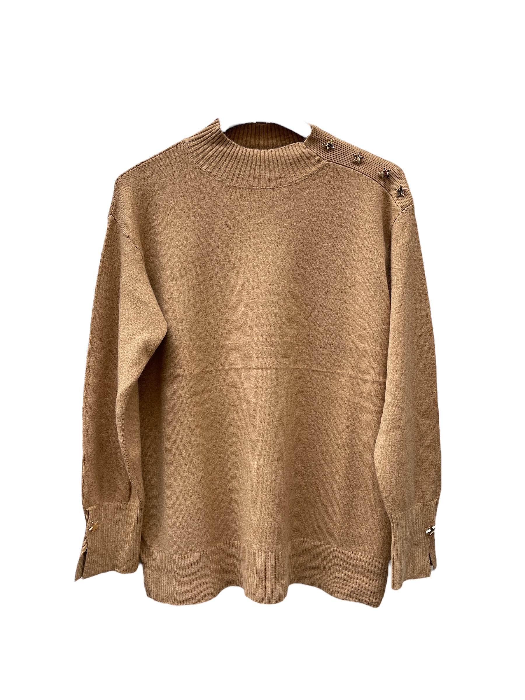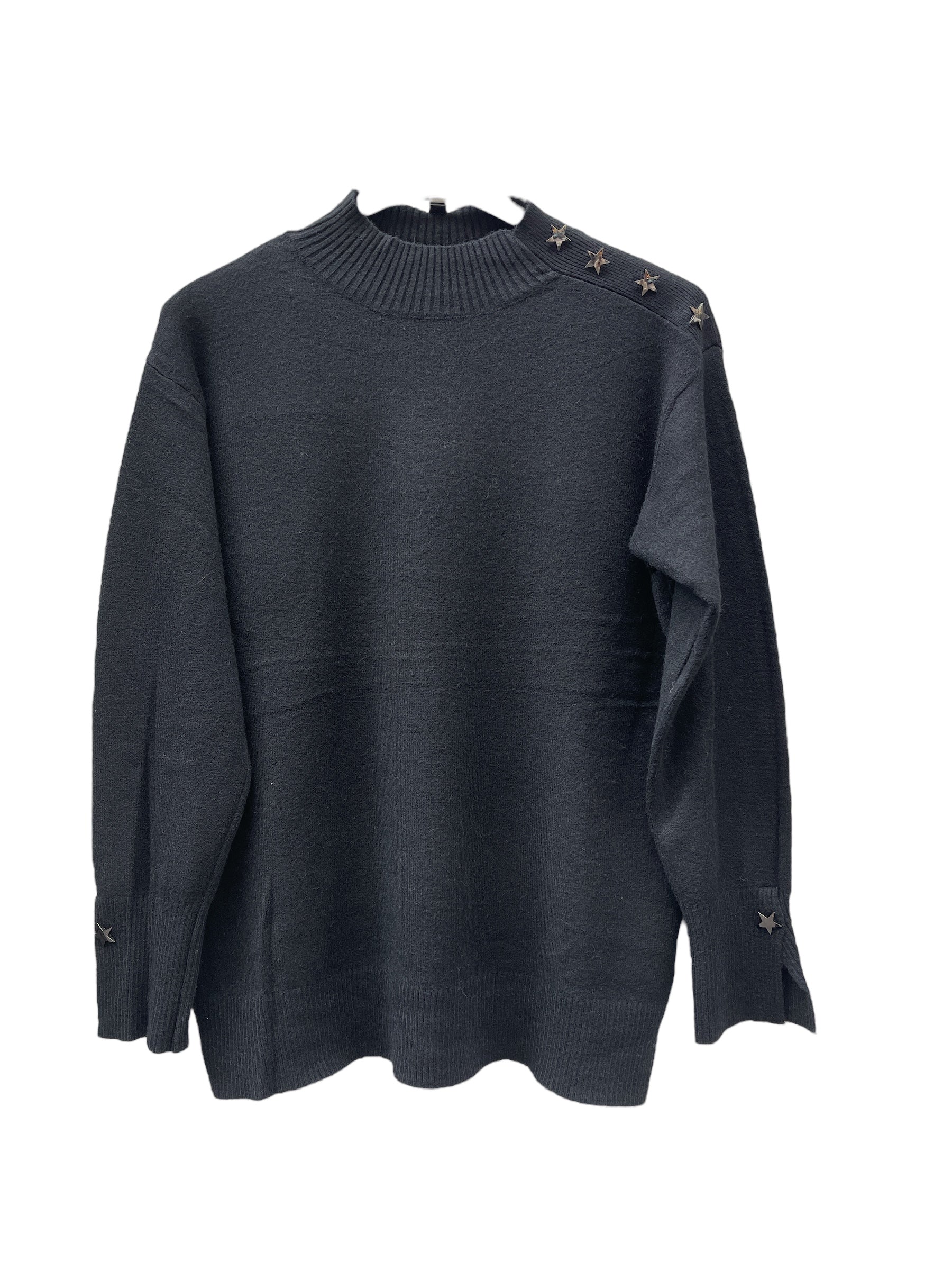 Maglia mezzo collo con applicazioni stelle in metello alla spalla e ai polsi