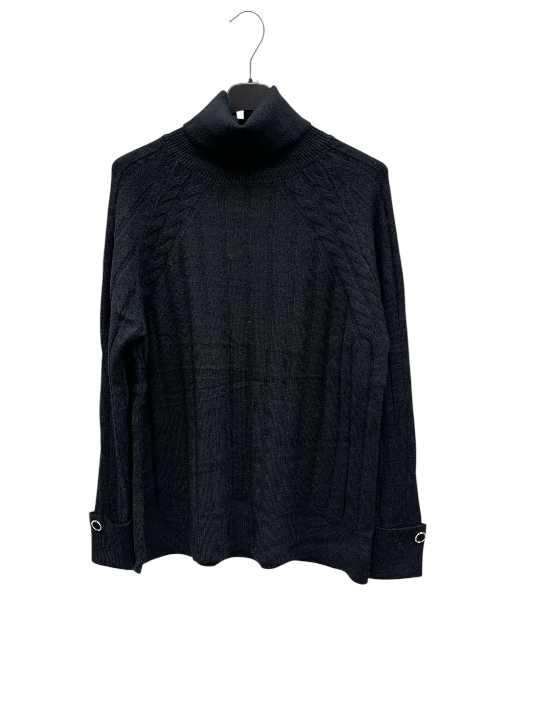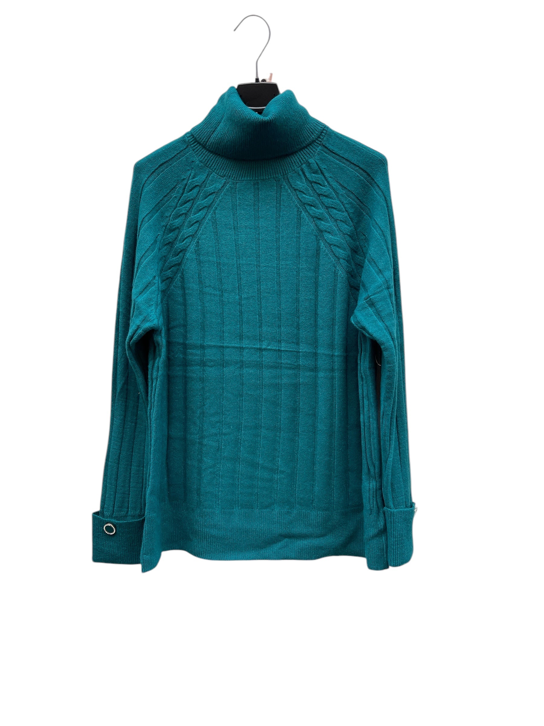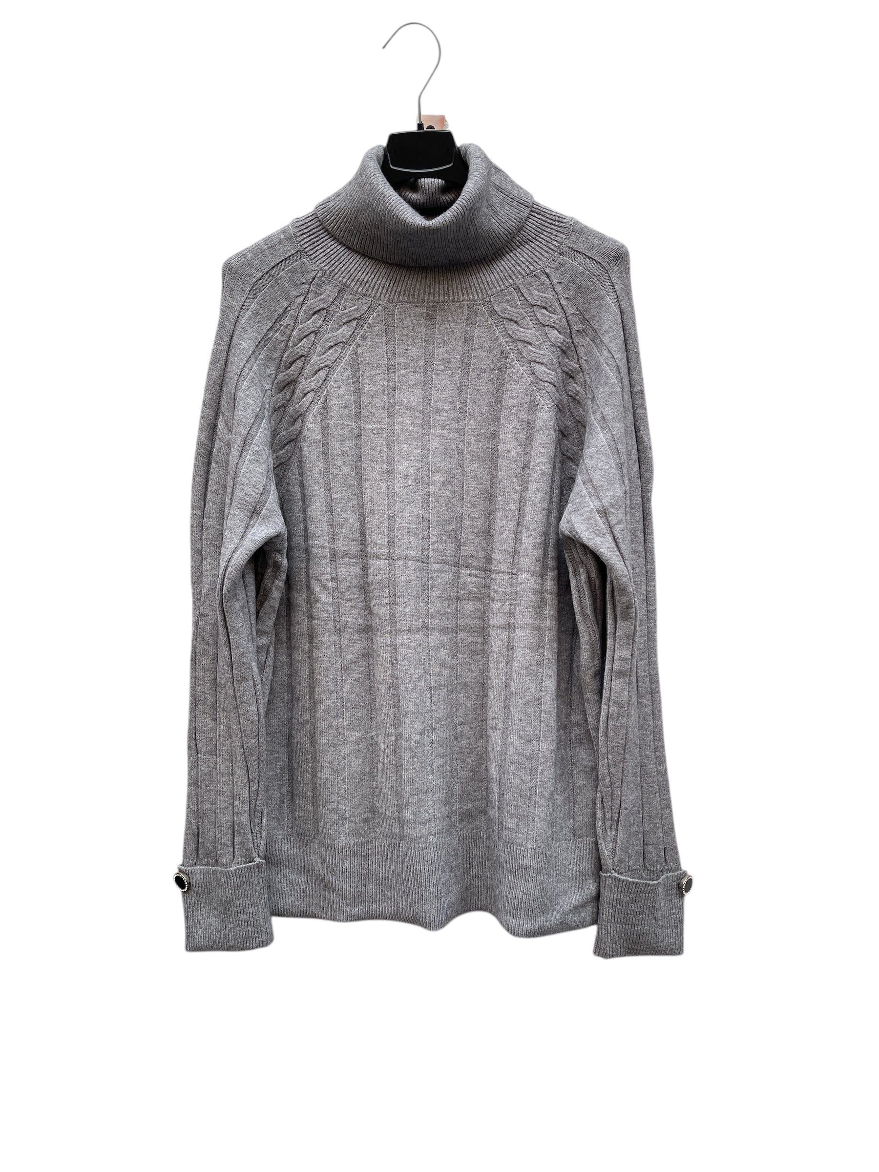 Maglia collo alto effetto a costine con bottone gioiello alla manica