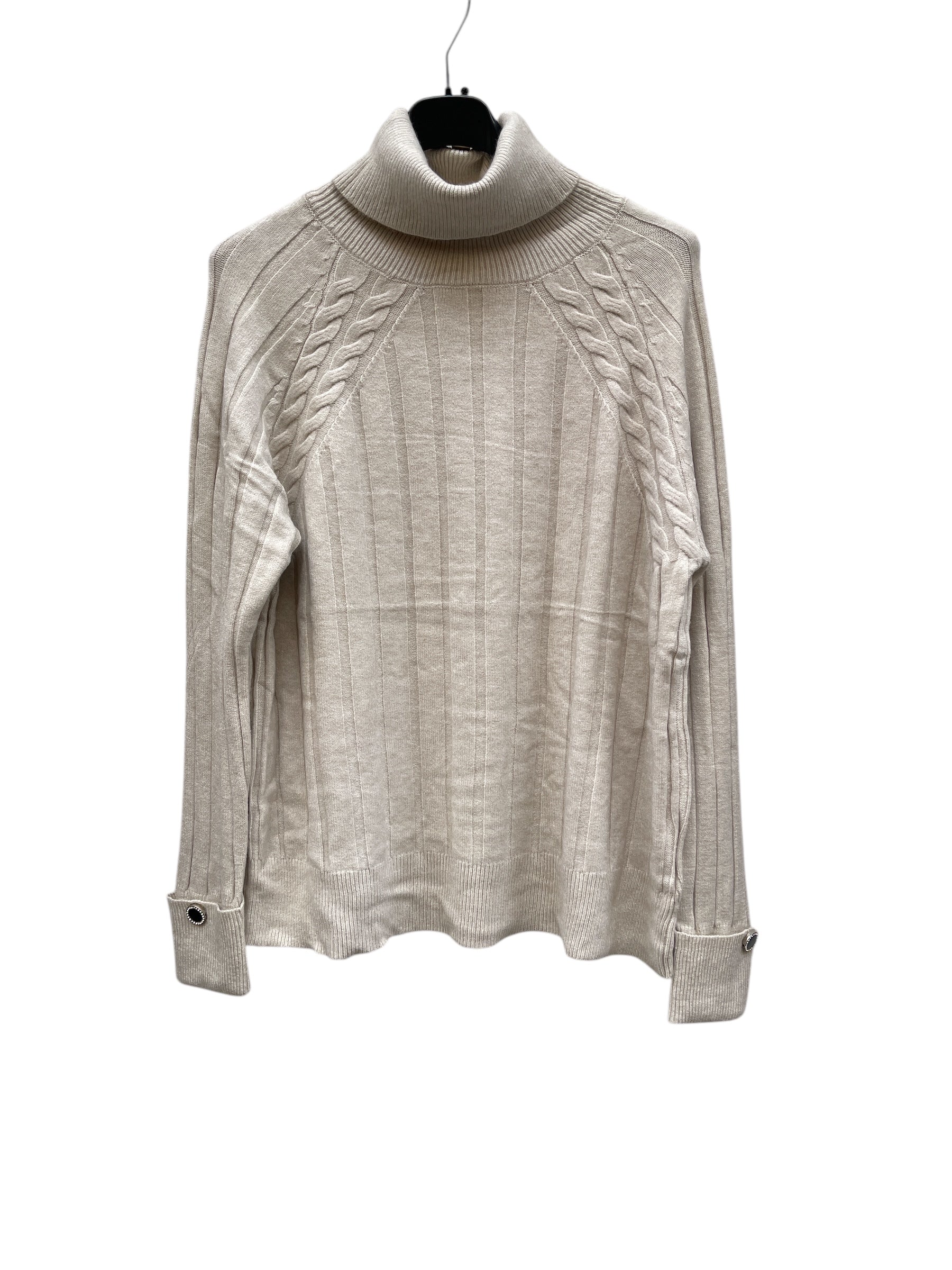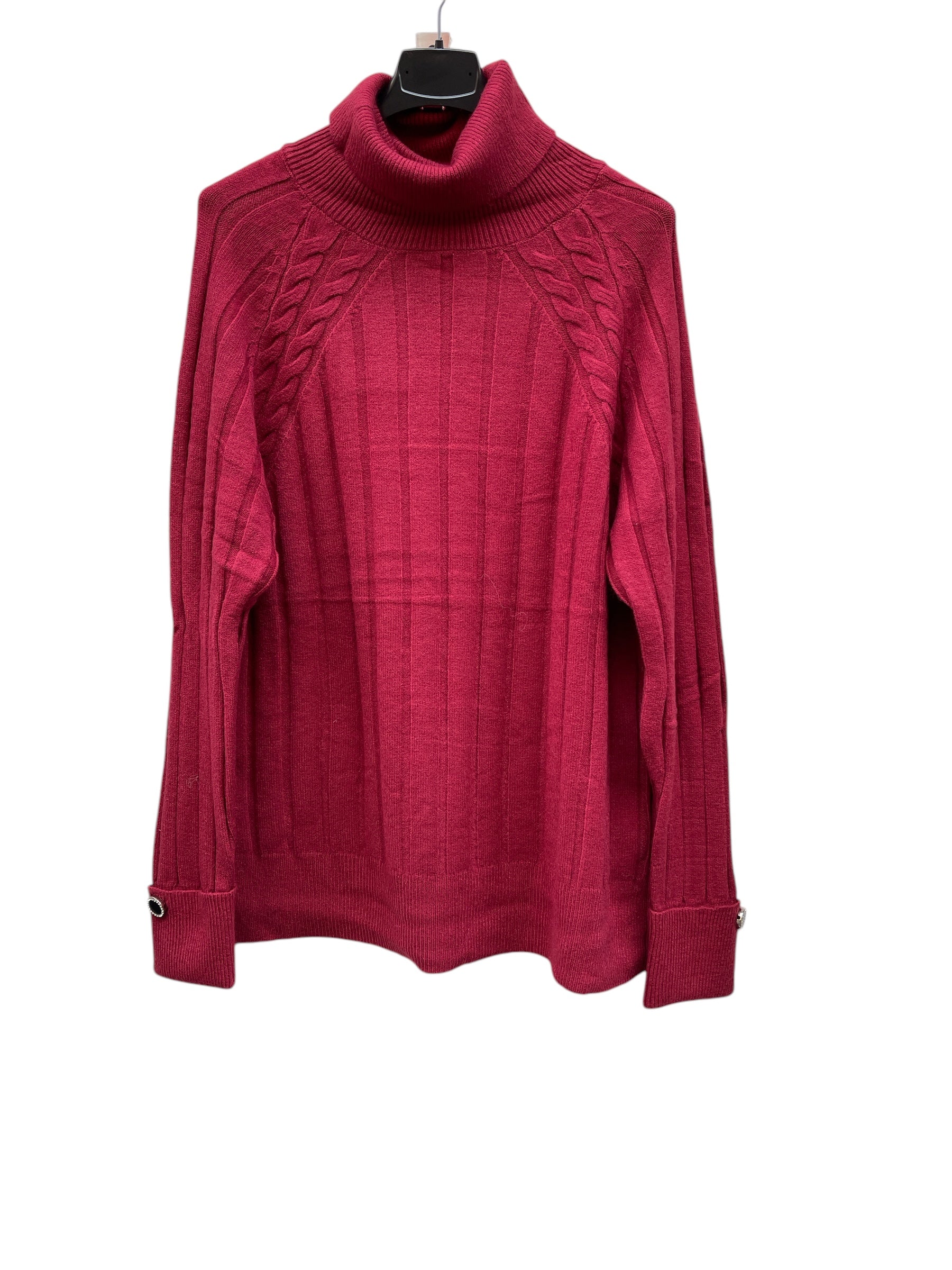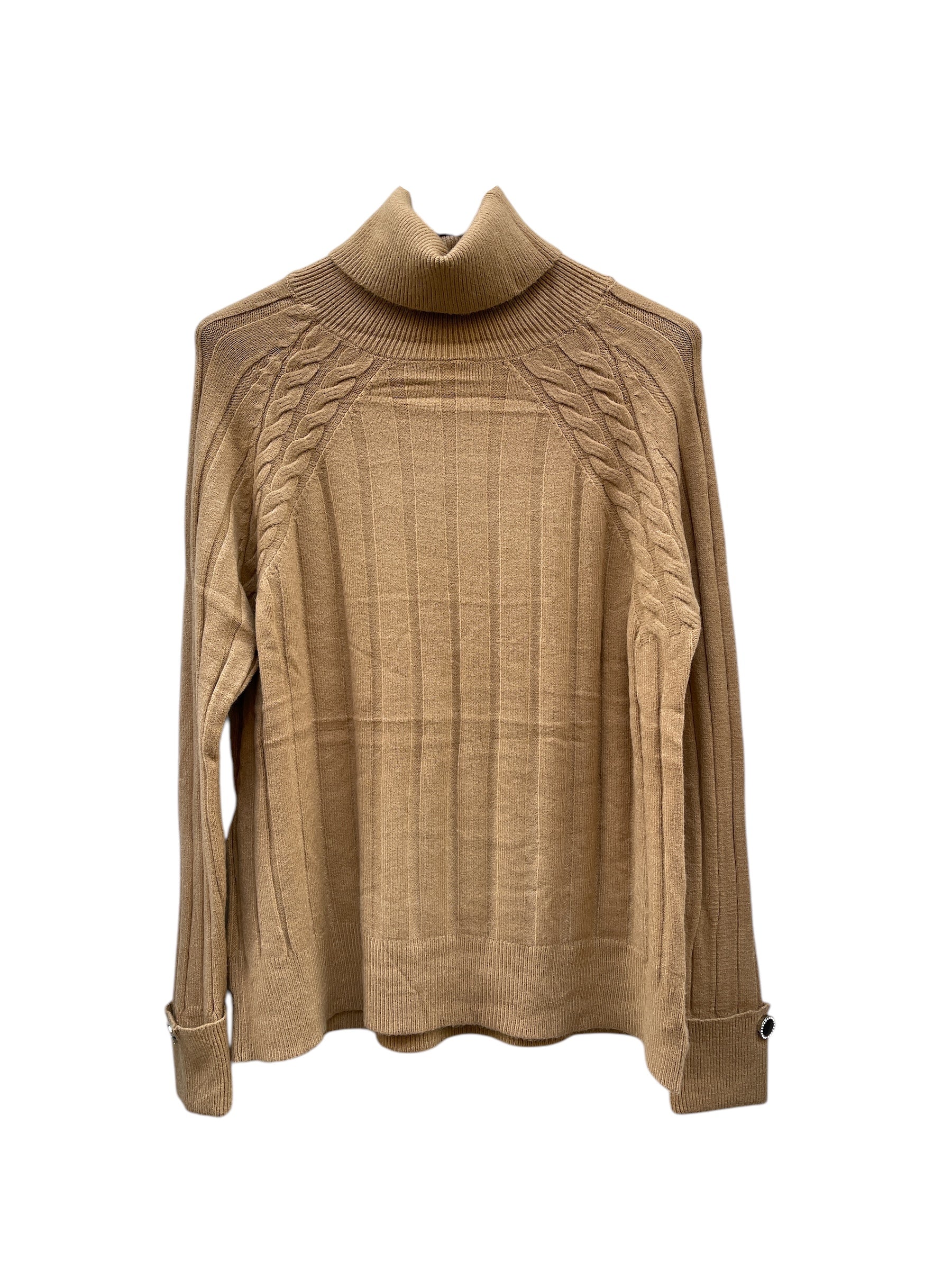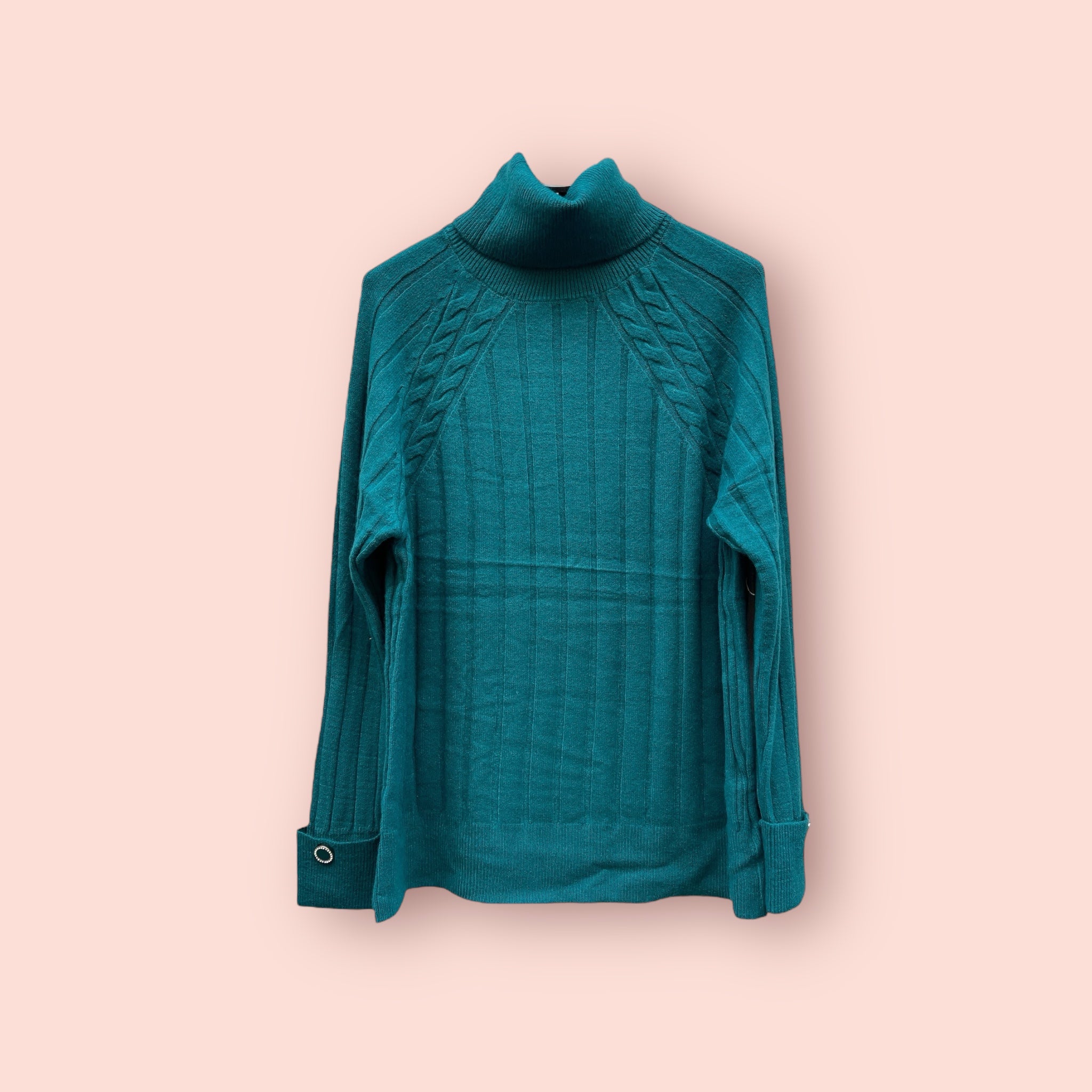 Maglia collo alto effetto a costine con bottone gioiello alla manica