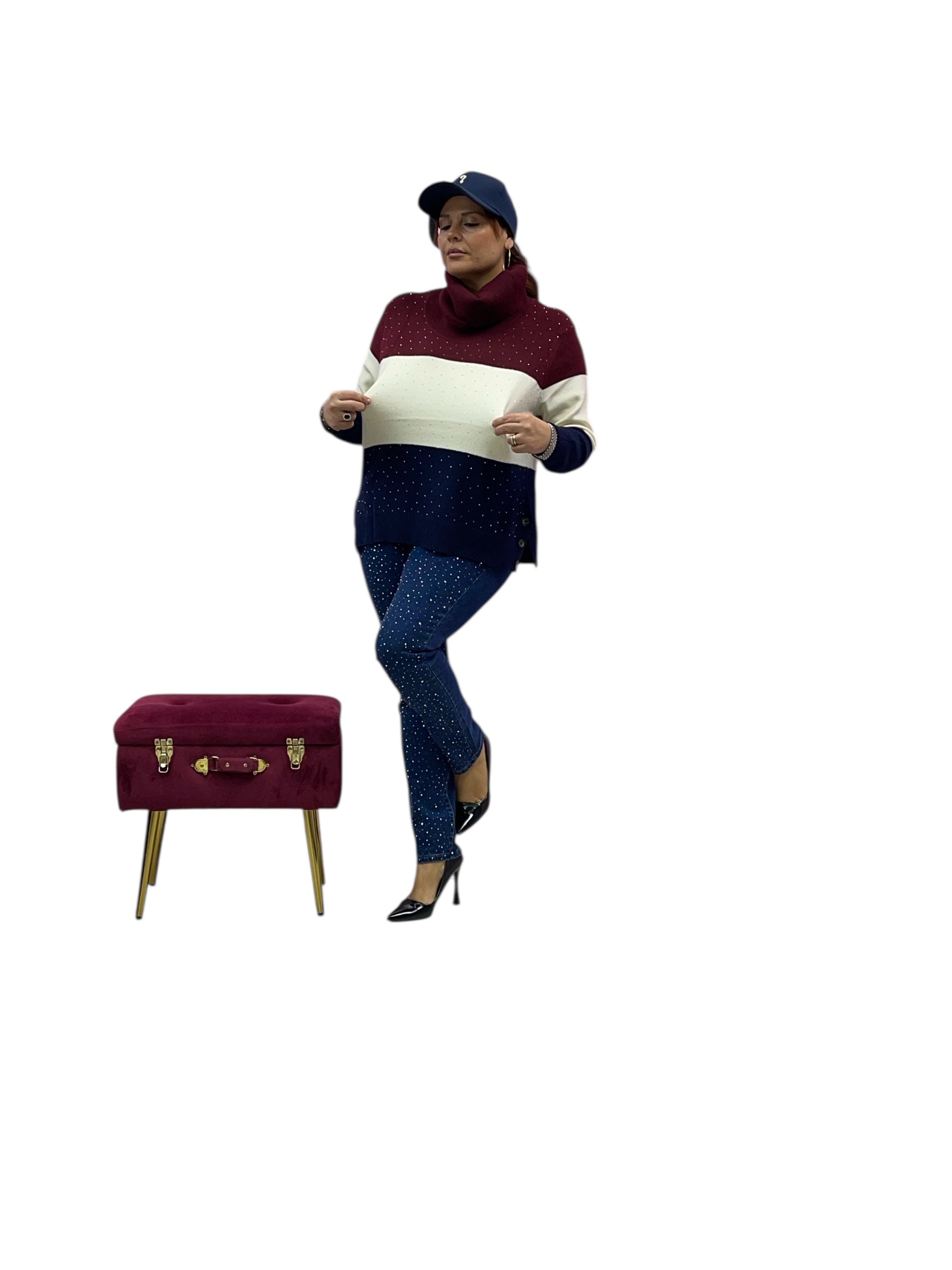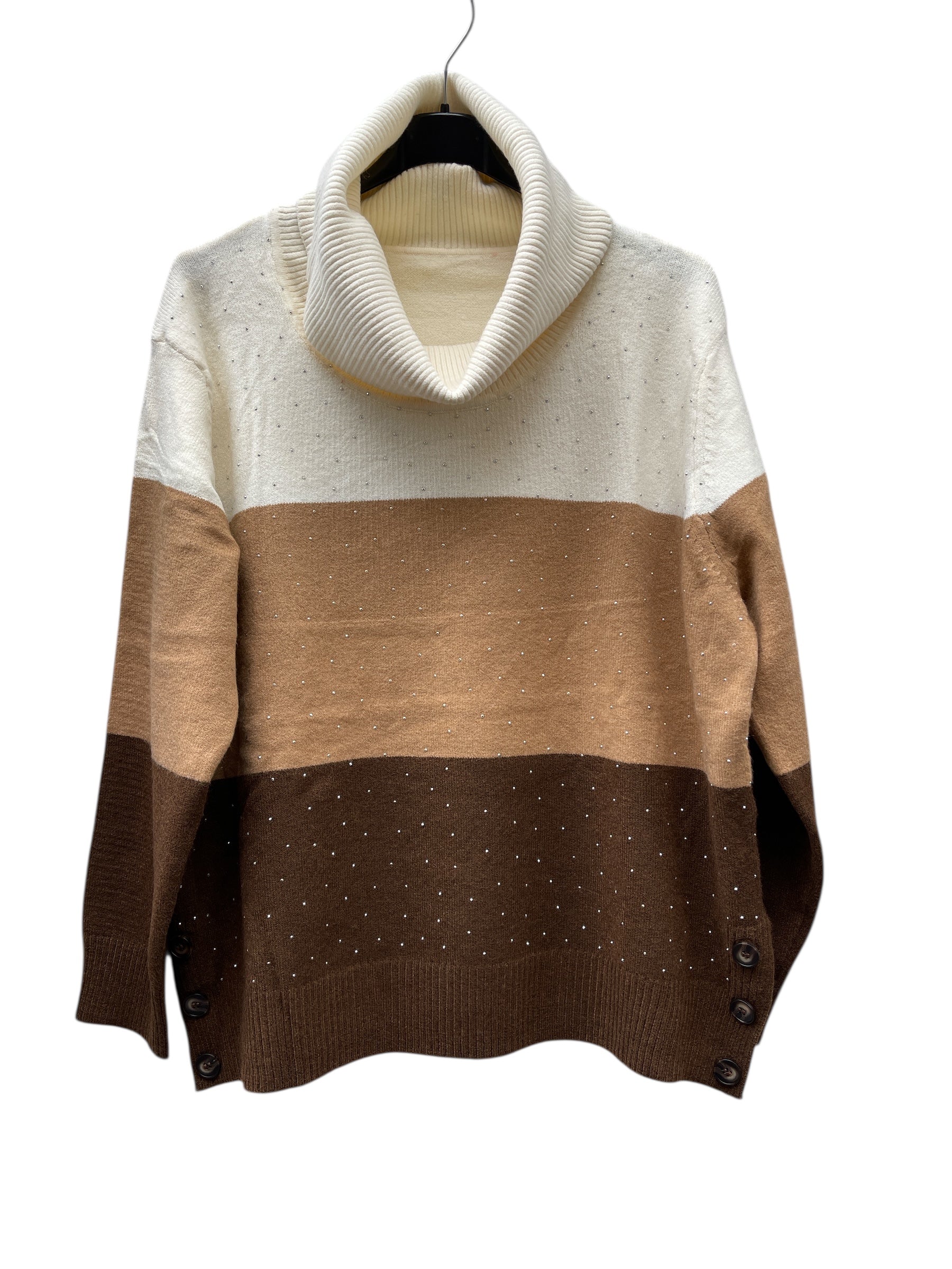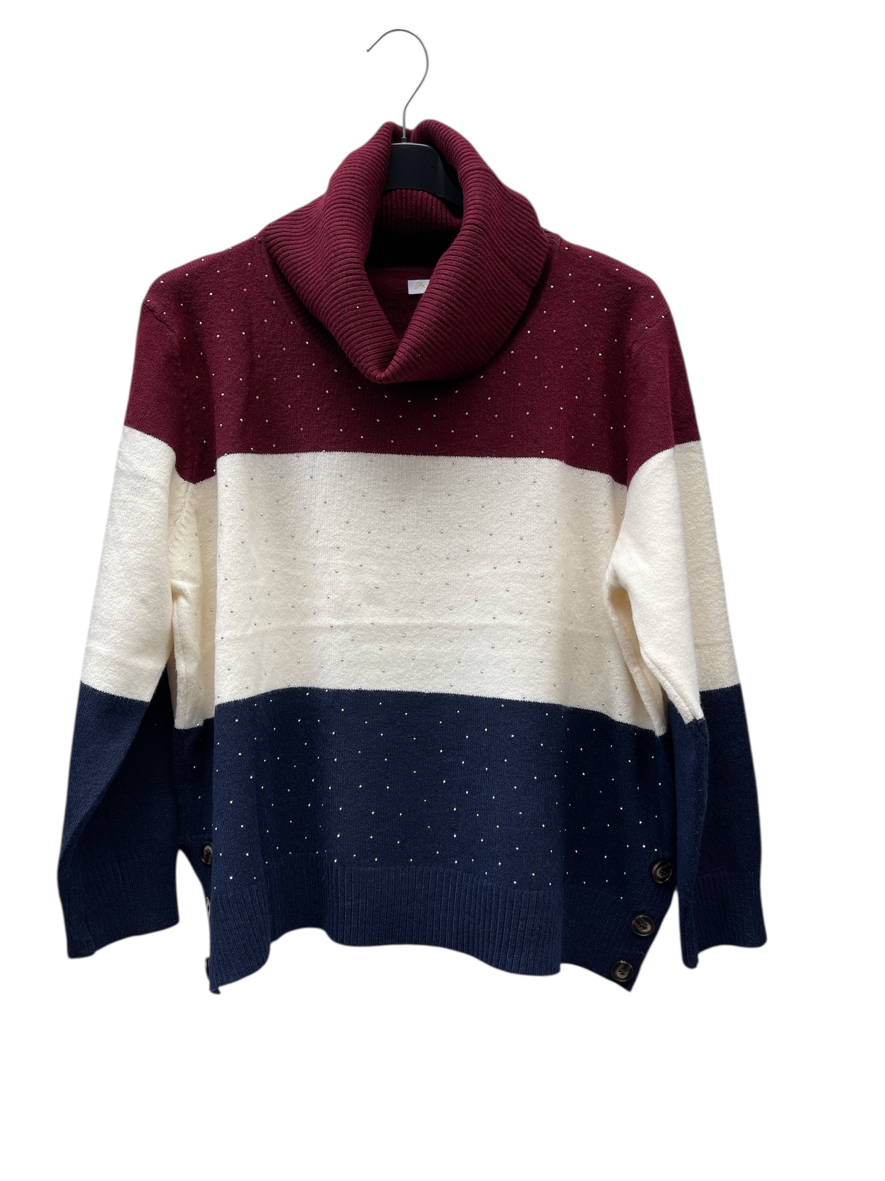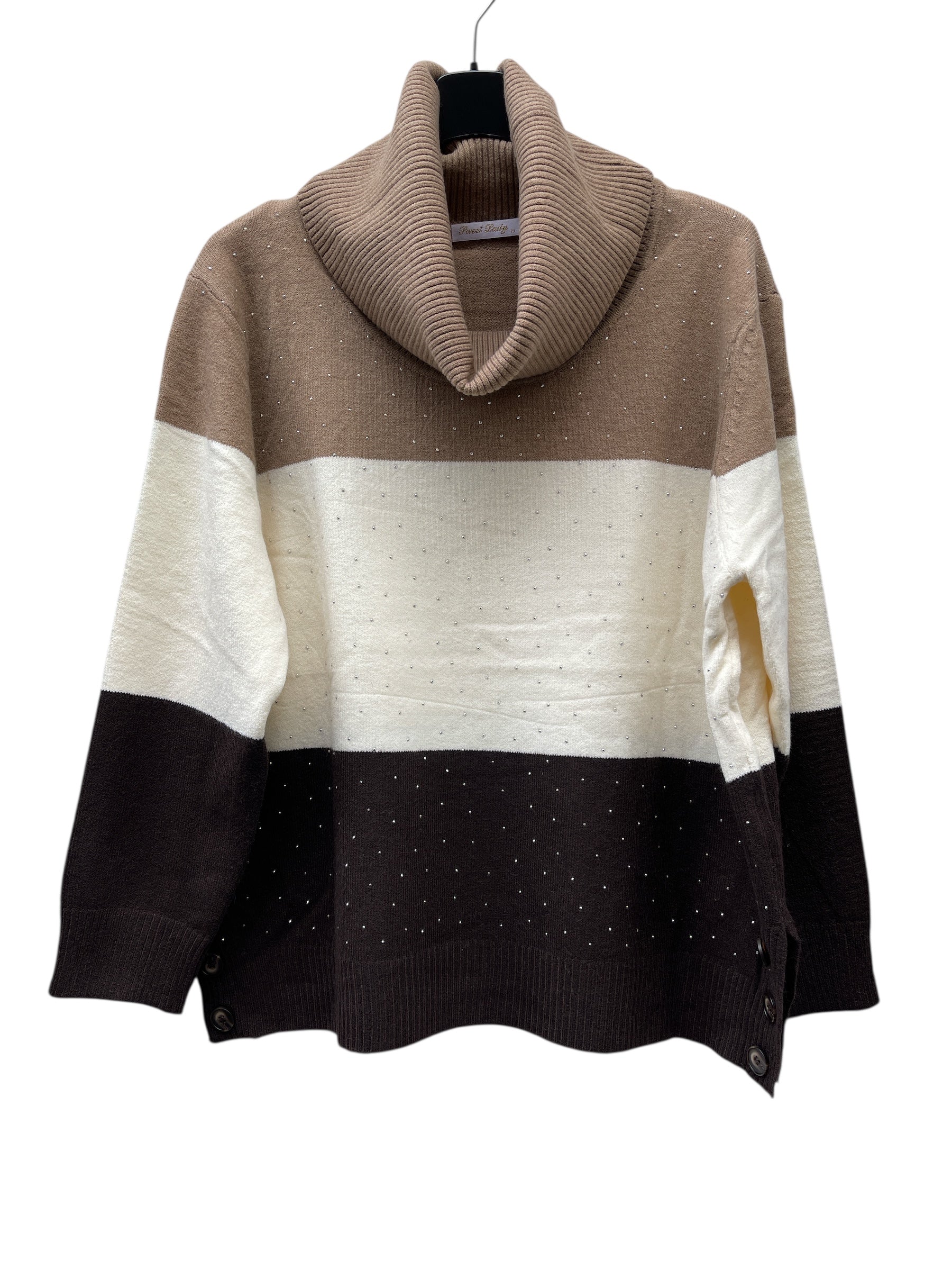 Maglia over collo alto fasciato colorato con brillantini avanti e bottoni allo spacchetto