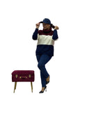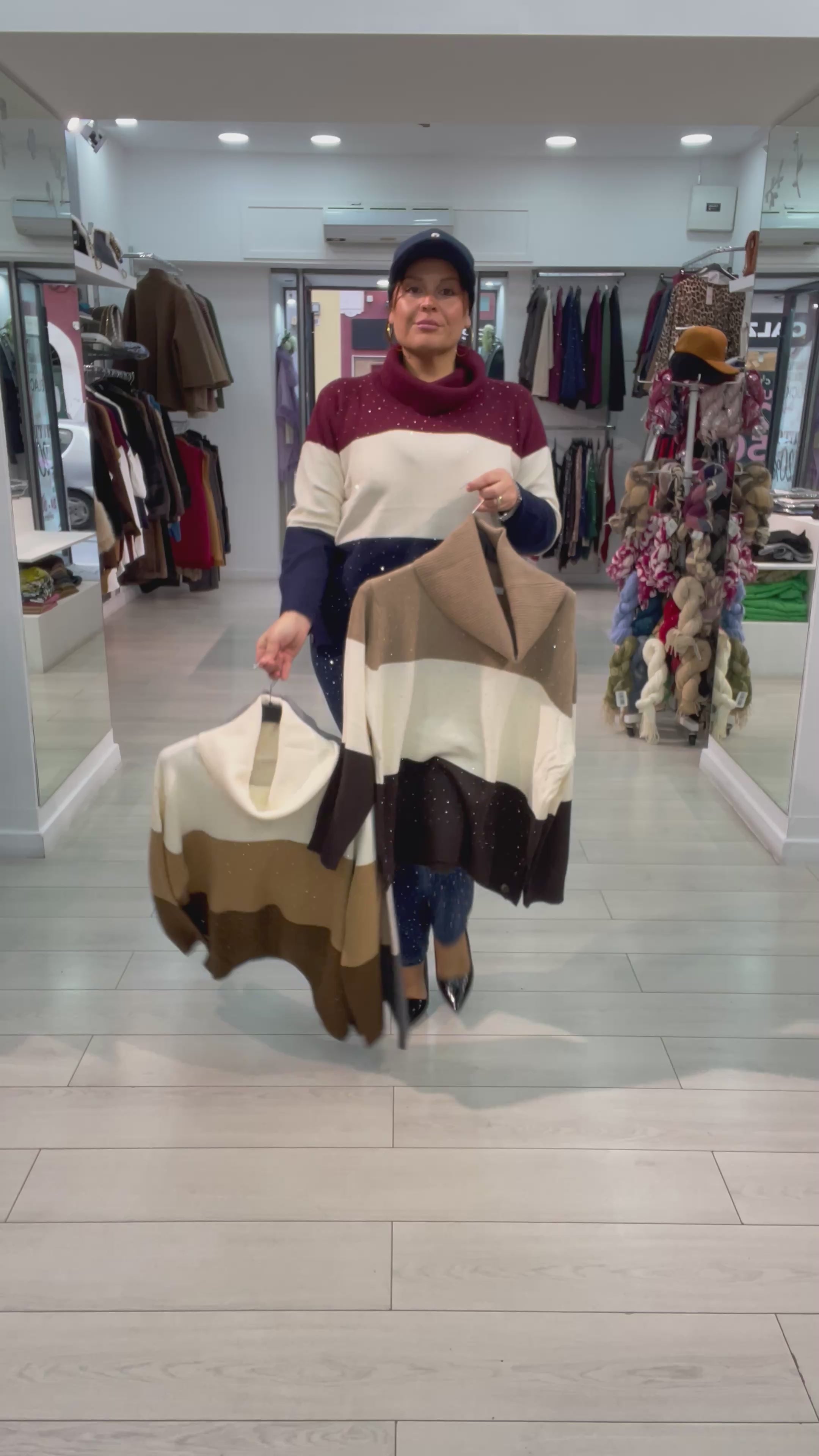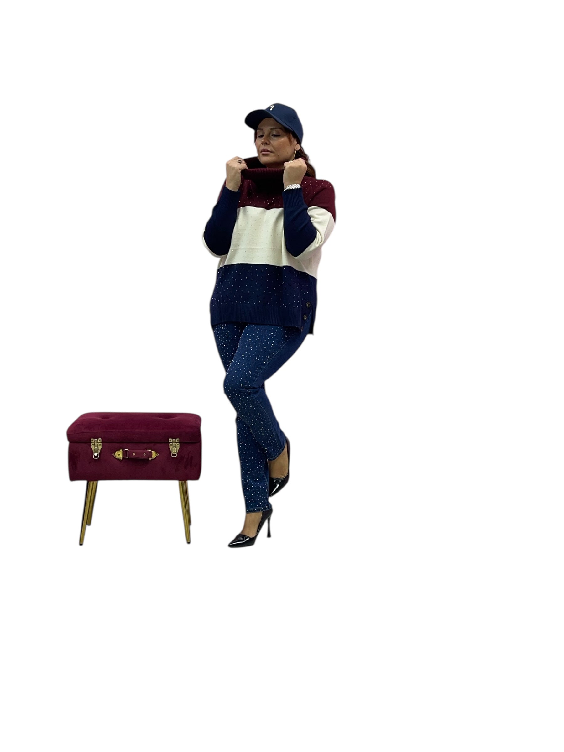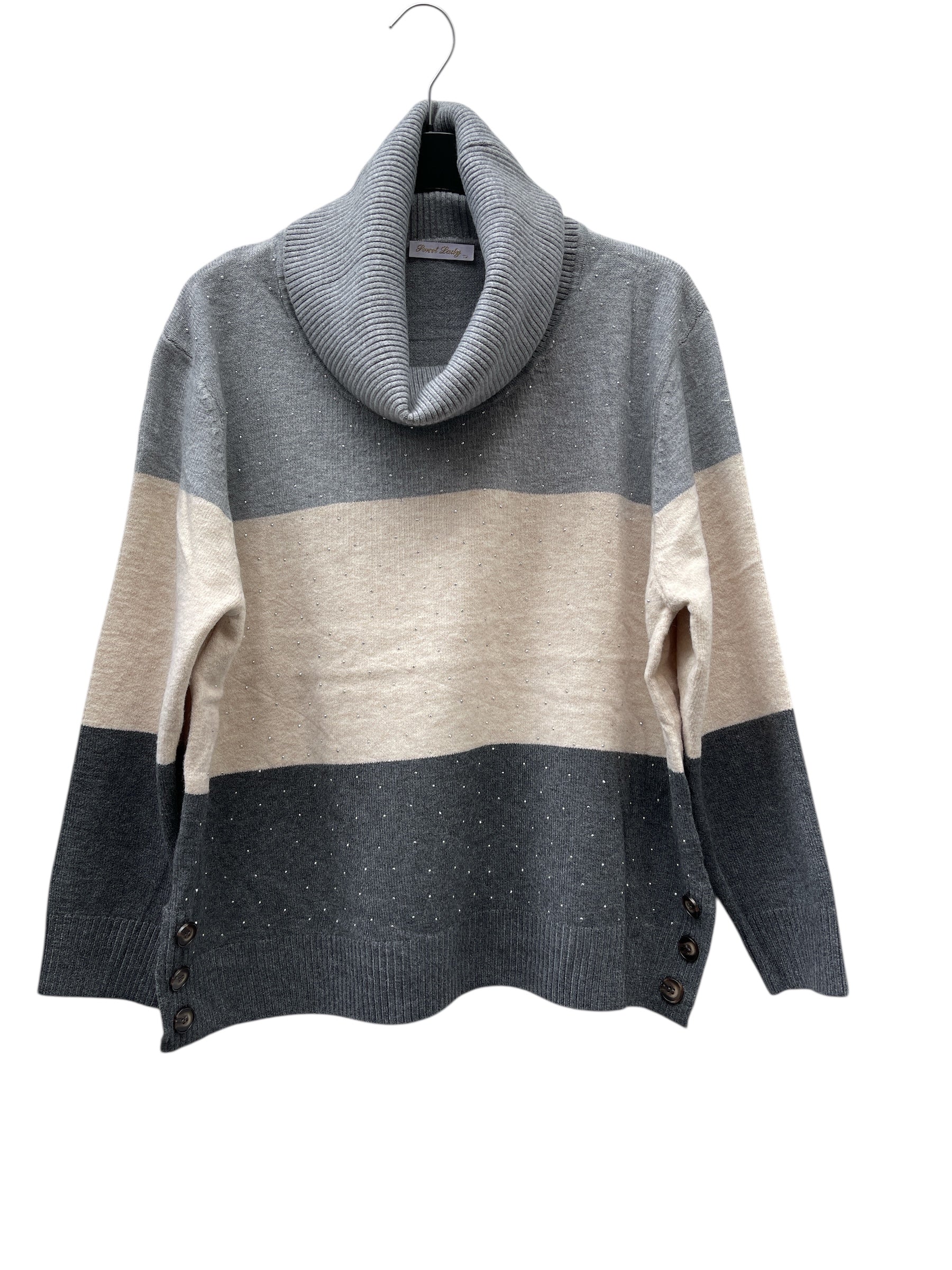 Maglia over collo alto fasciato colorato con brillantini avanti e bottoni allo spacchetto