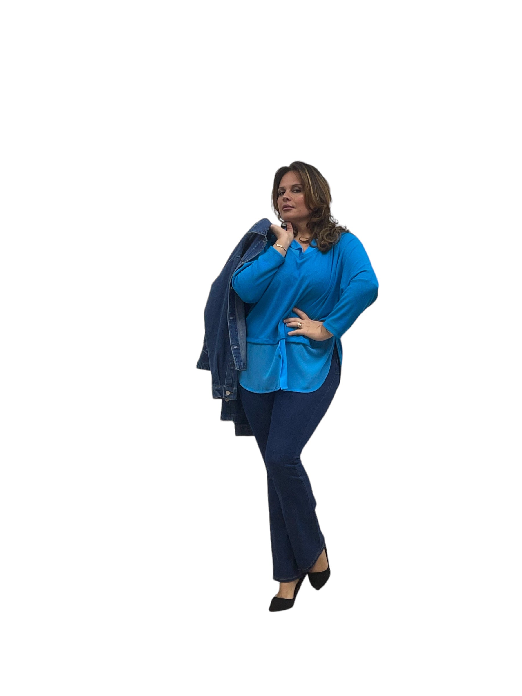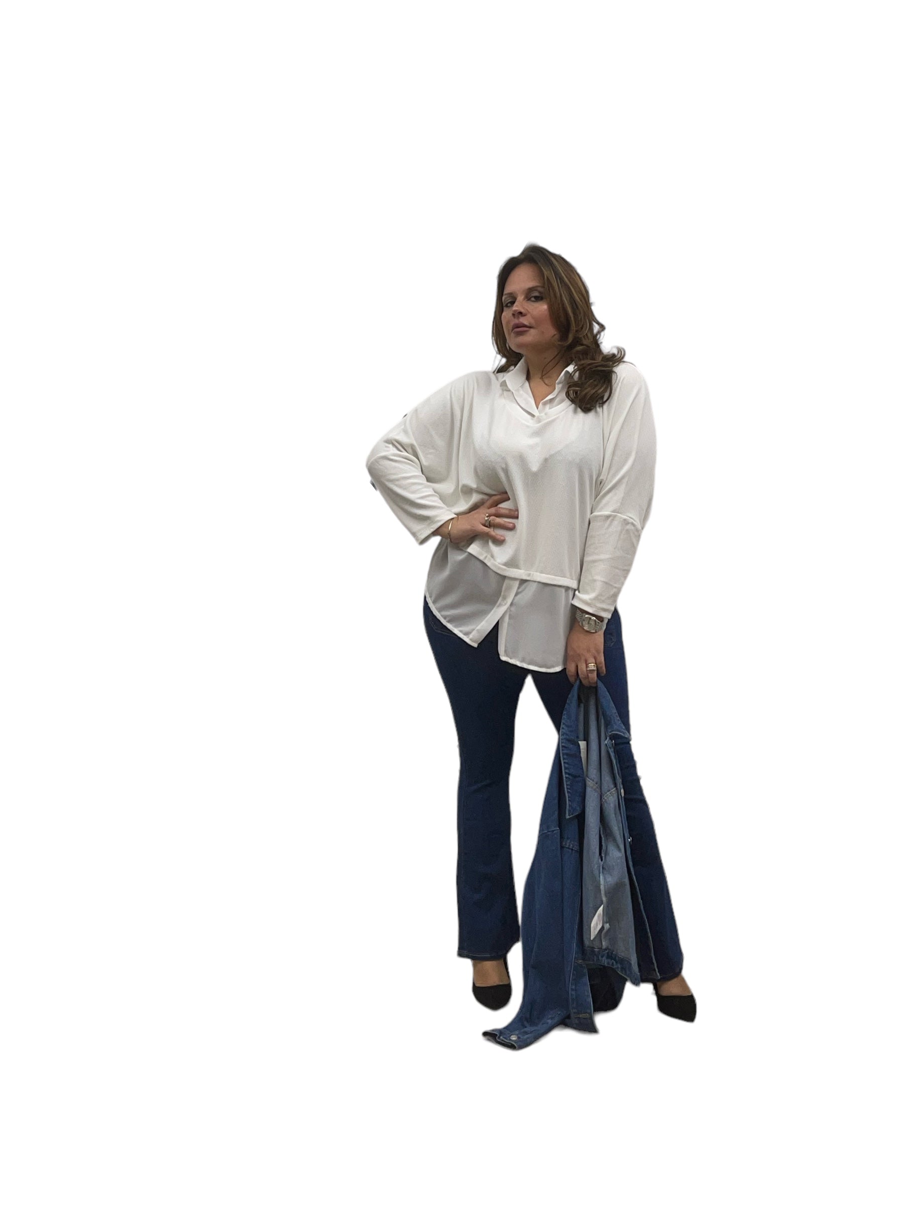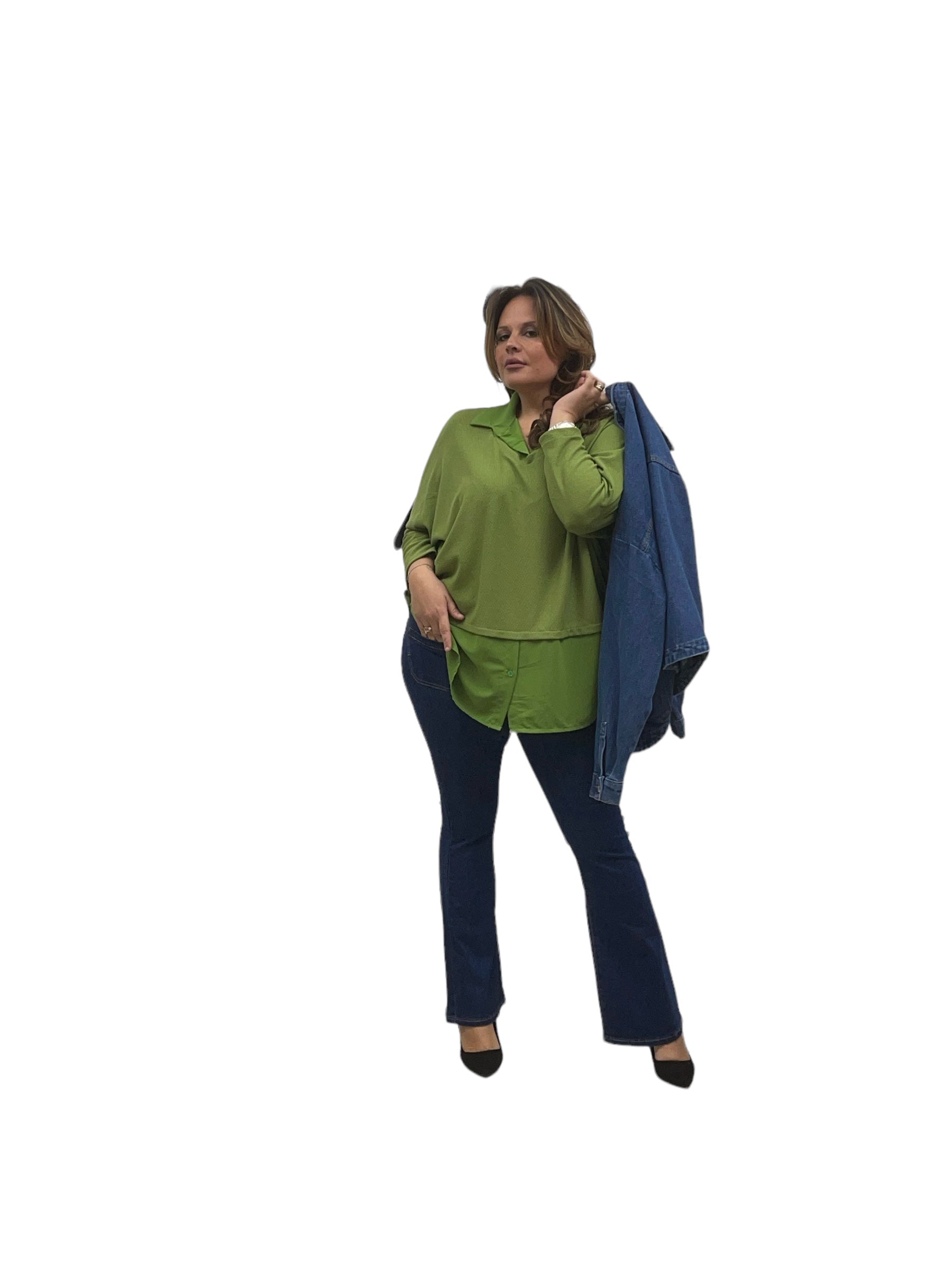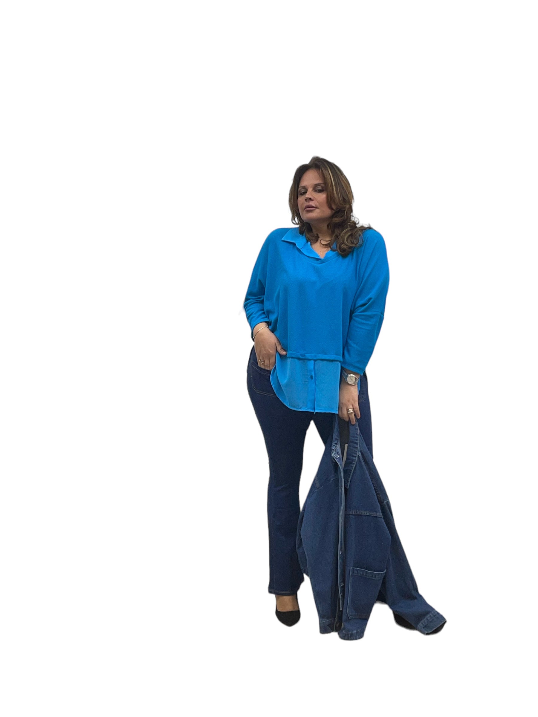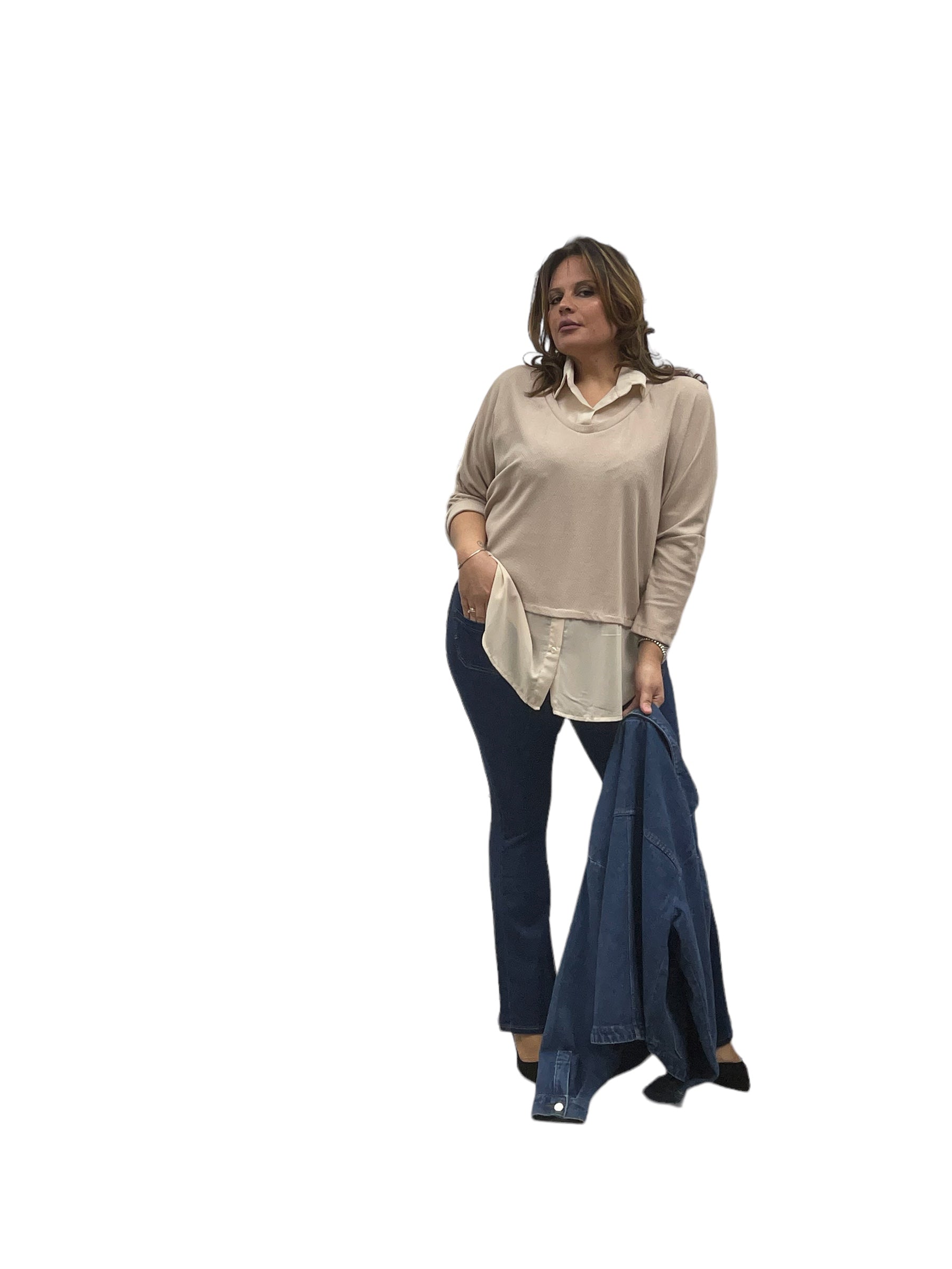 Maglia over con collo e fascia in georgette