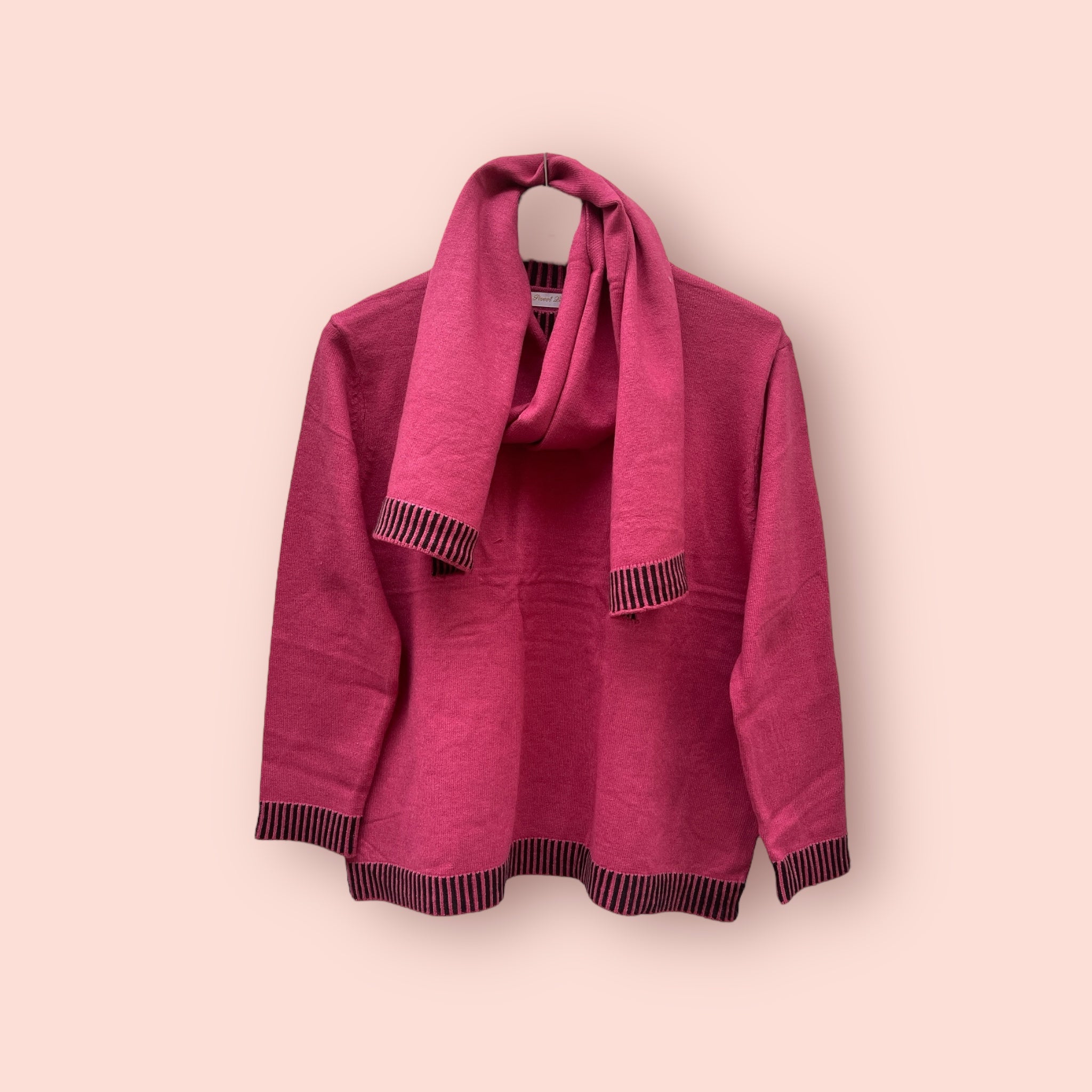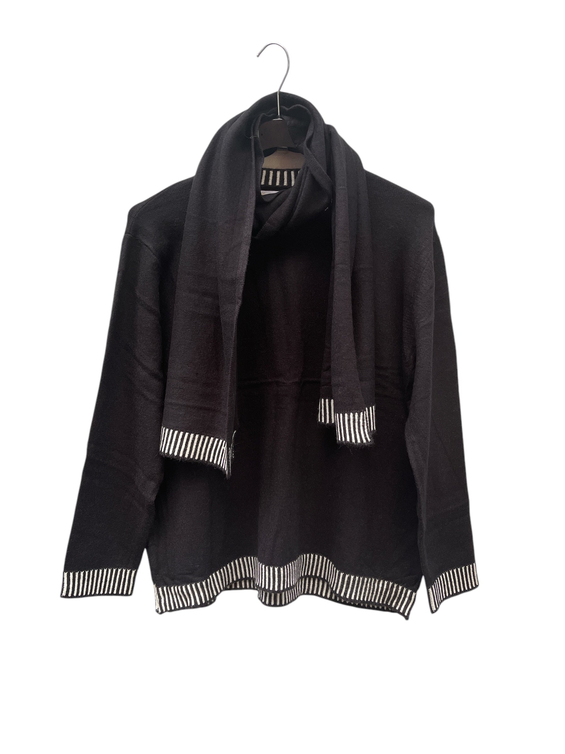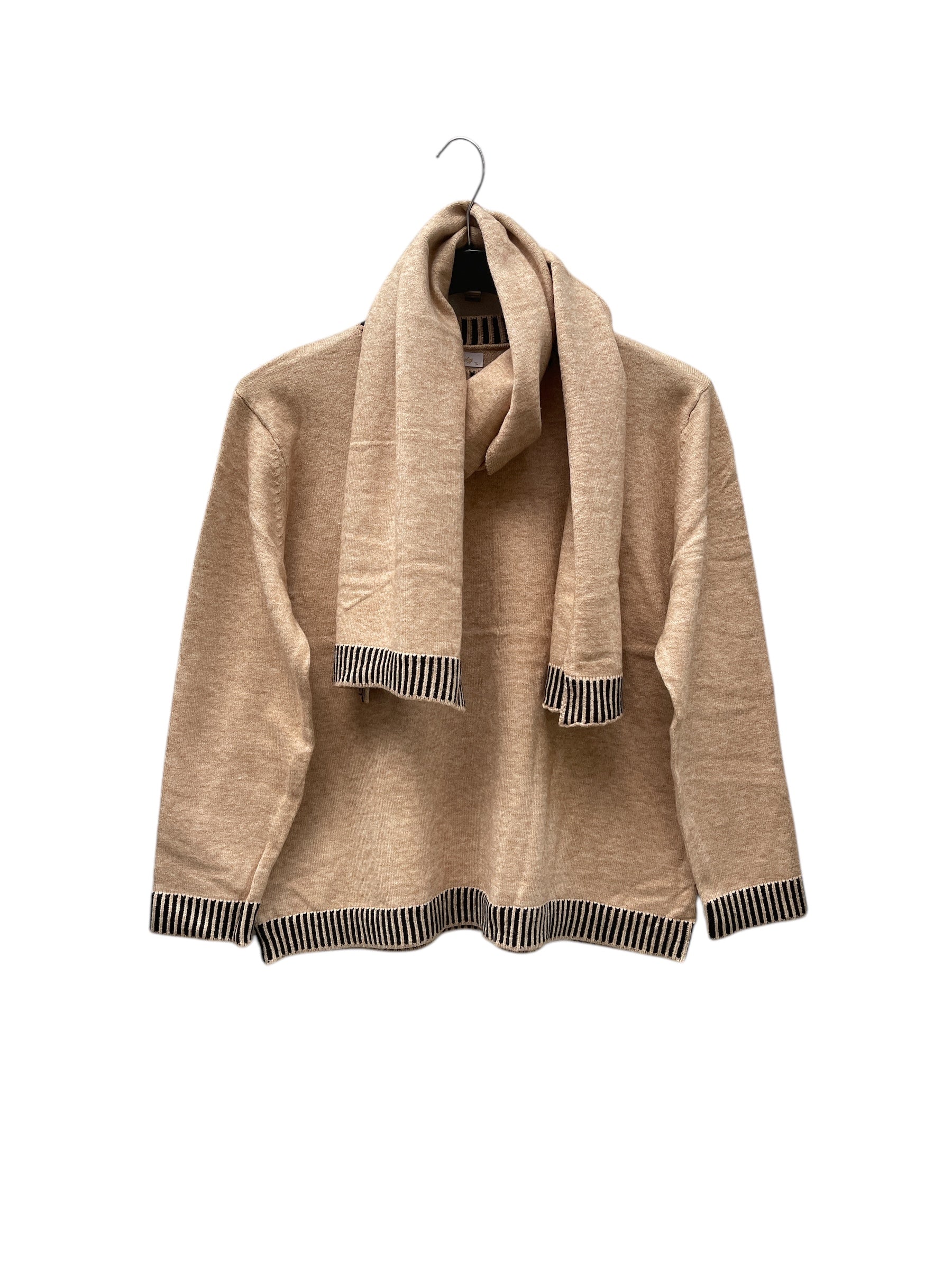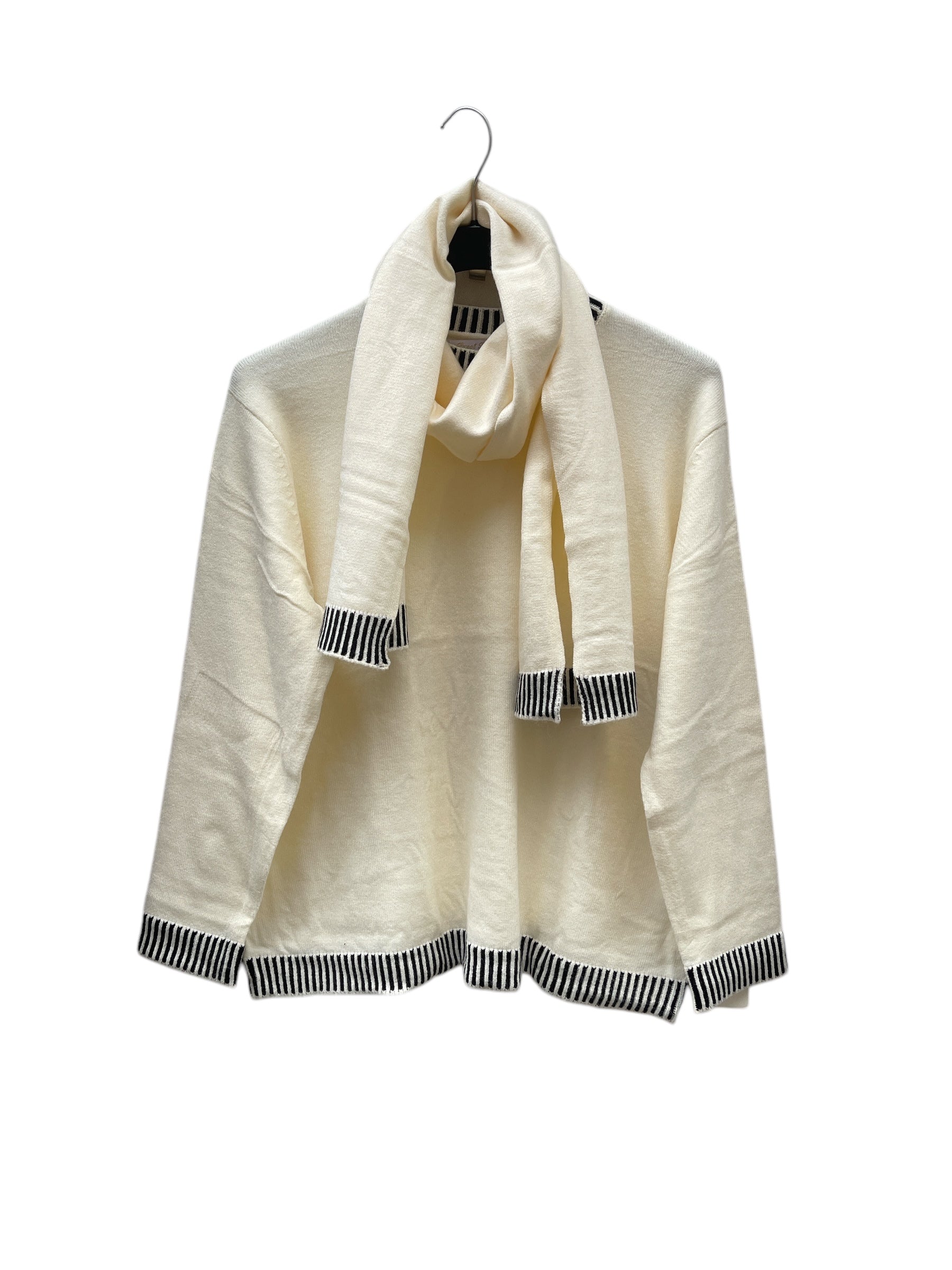 Maglia giro collo con bordo rigato e sciarpa