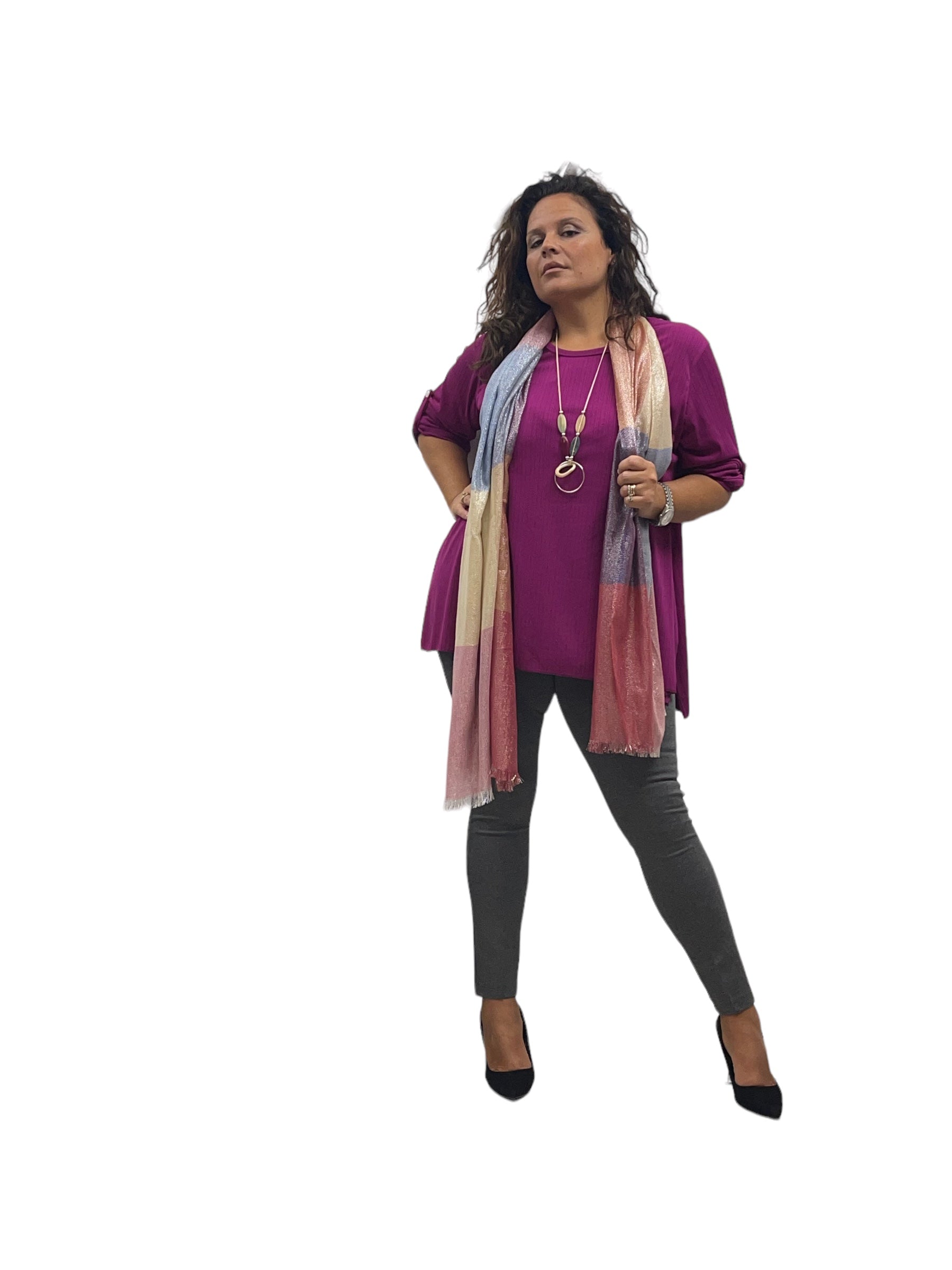 Maglia over svasata con bottoncini alla manica effetto rigato colore su colore