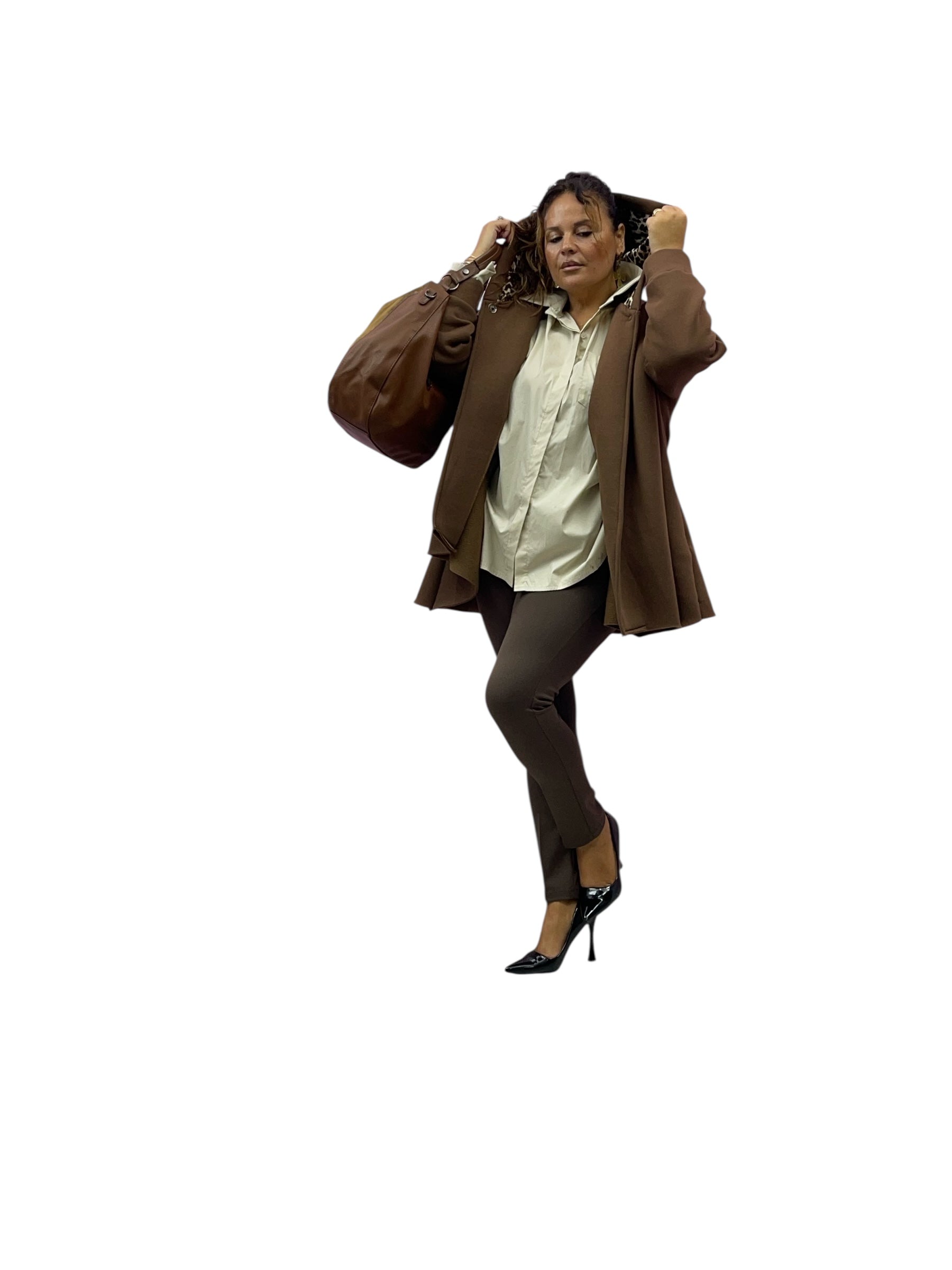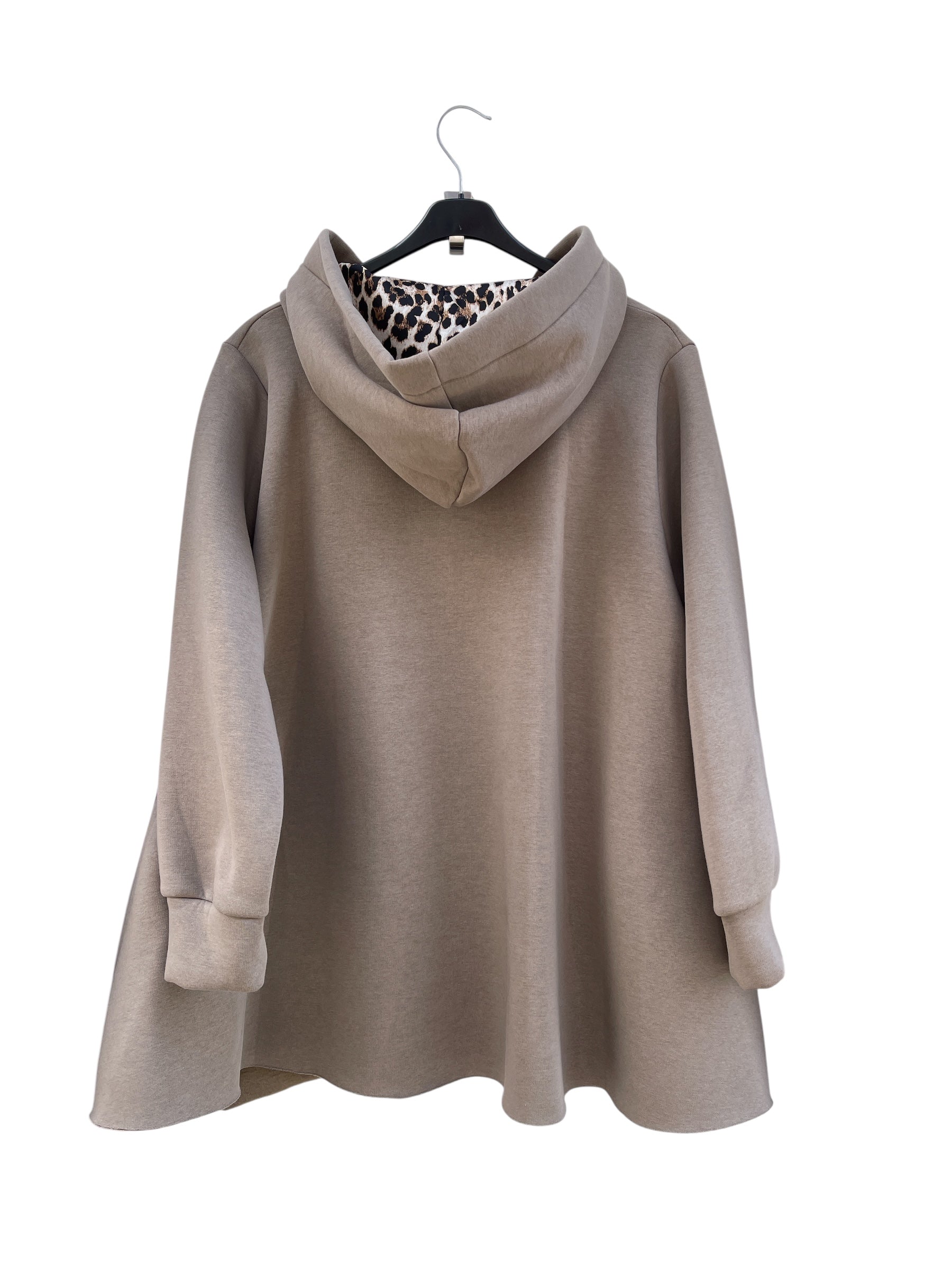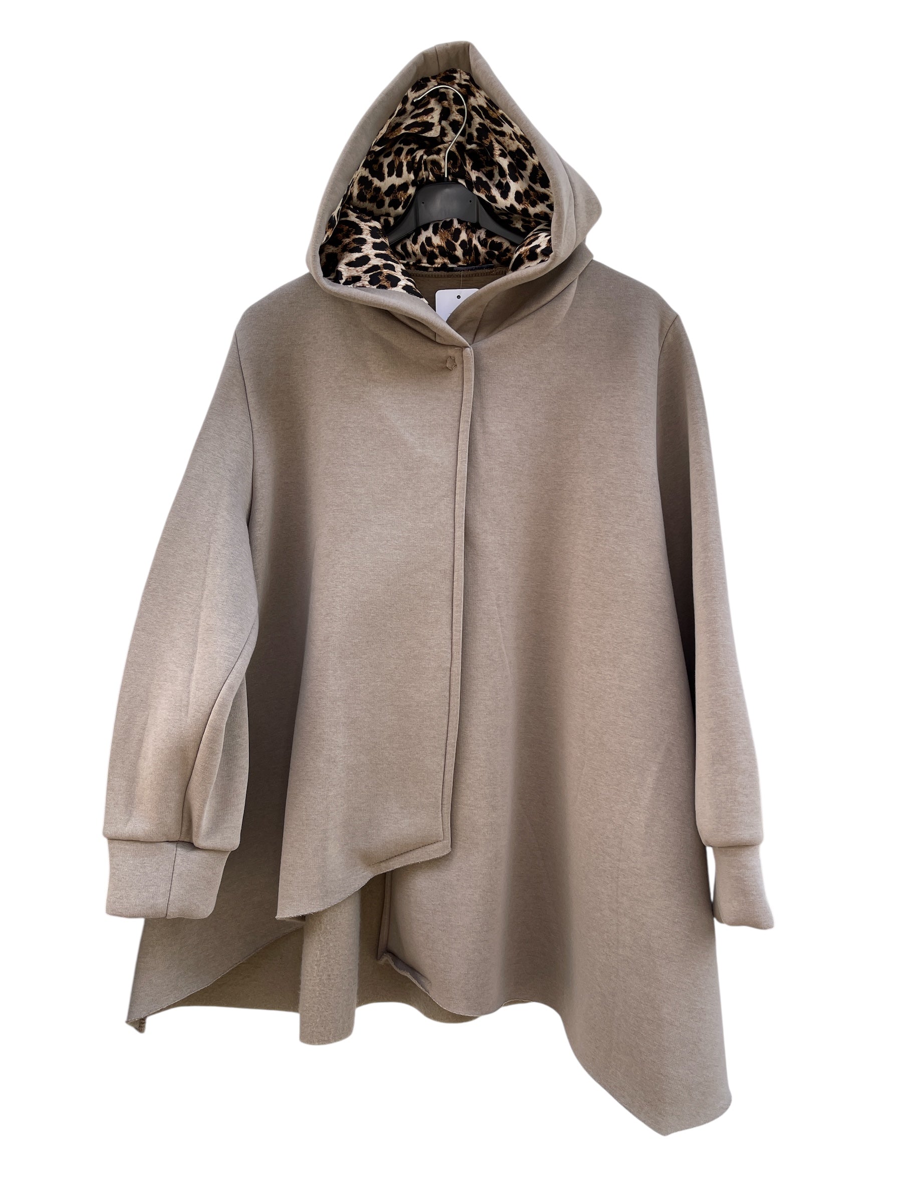 Mantella over in felpa asimmetrica felpata internamente con pail e cappuccio con interno leopardato