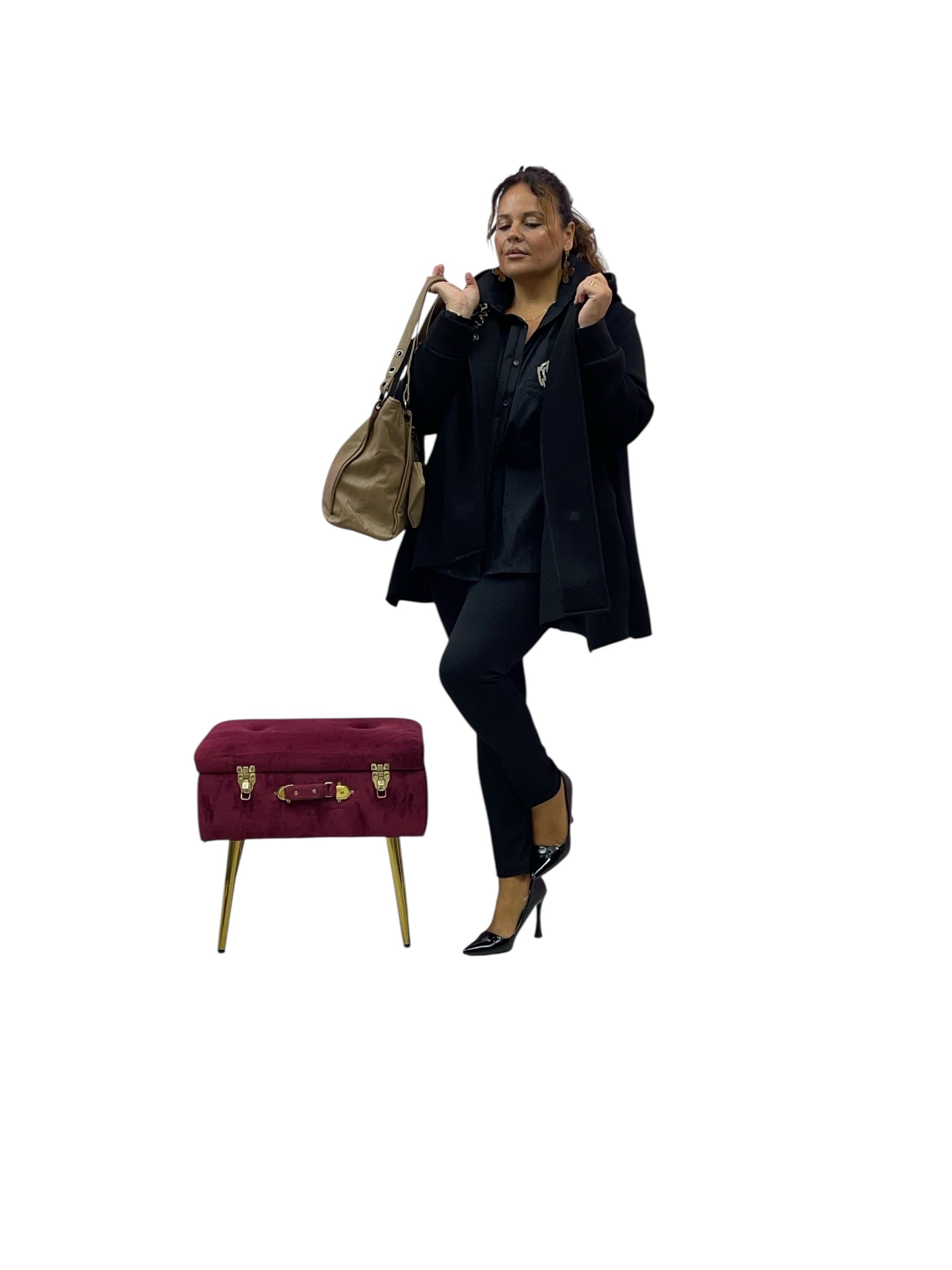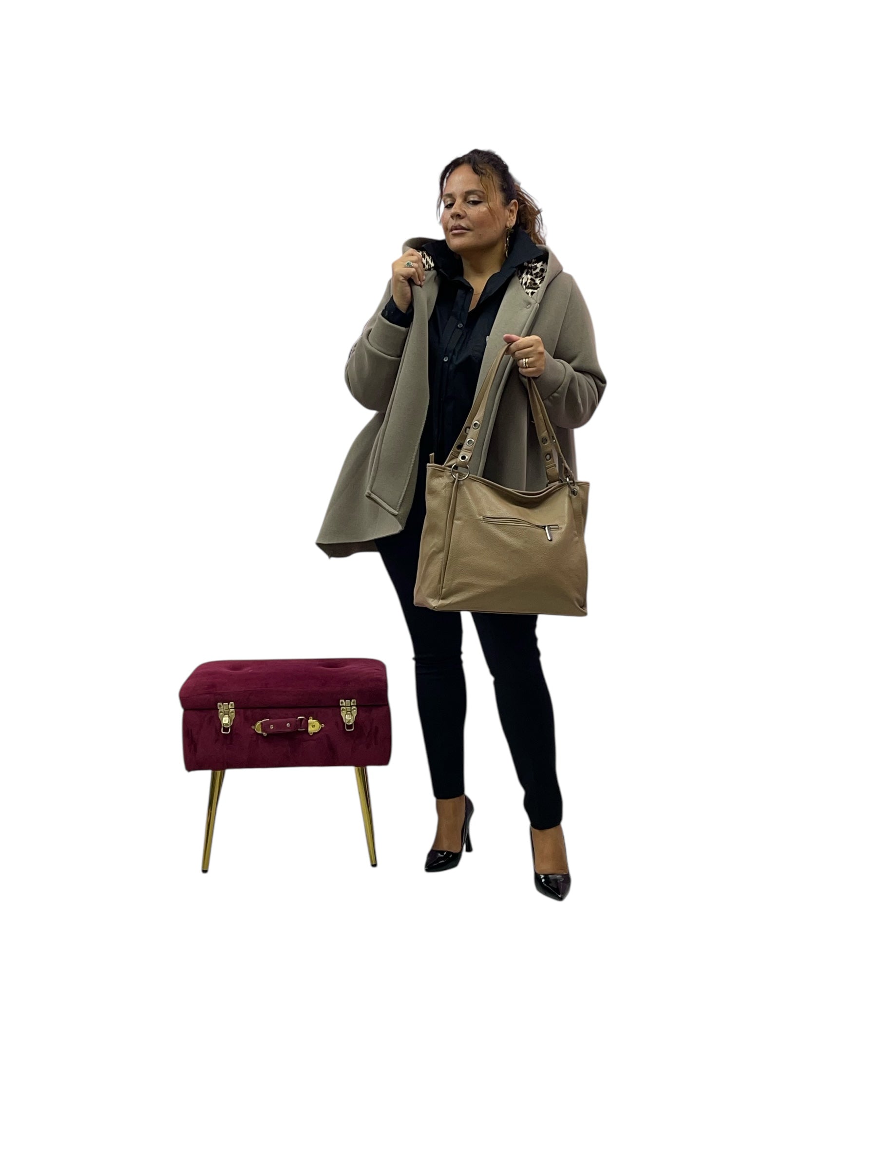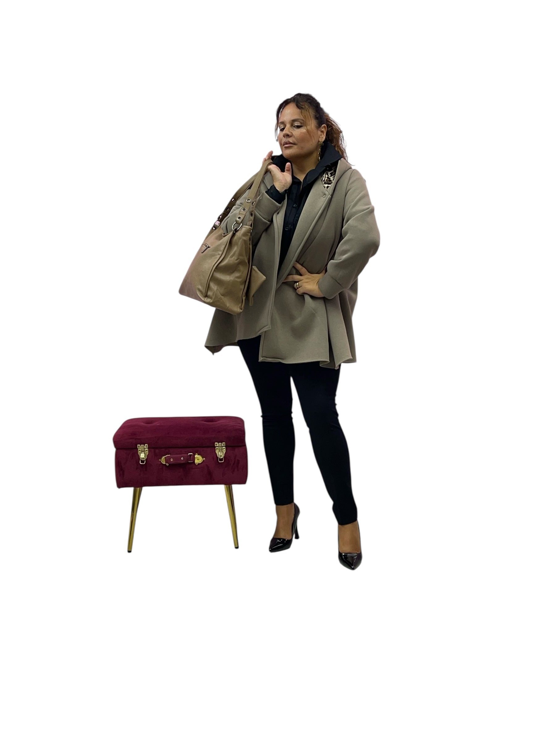Mantella over in felpa asimmetrica felpata internamente con pail e cappuccio con interno leopardato