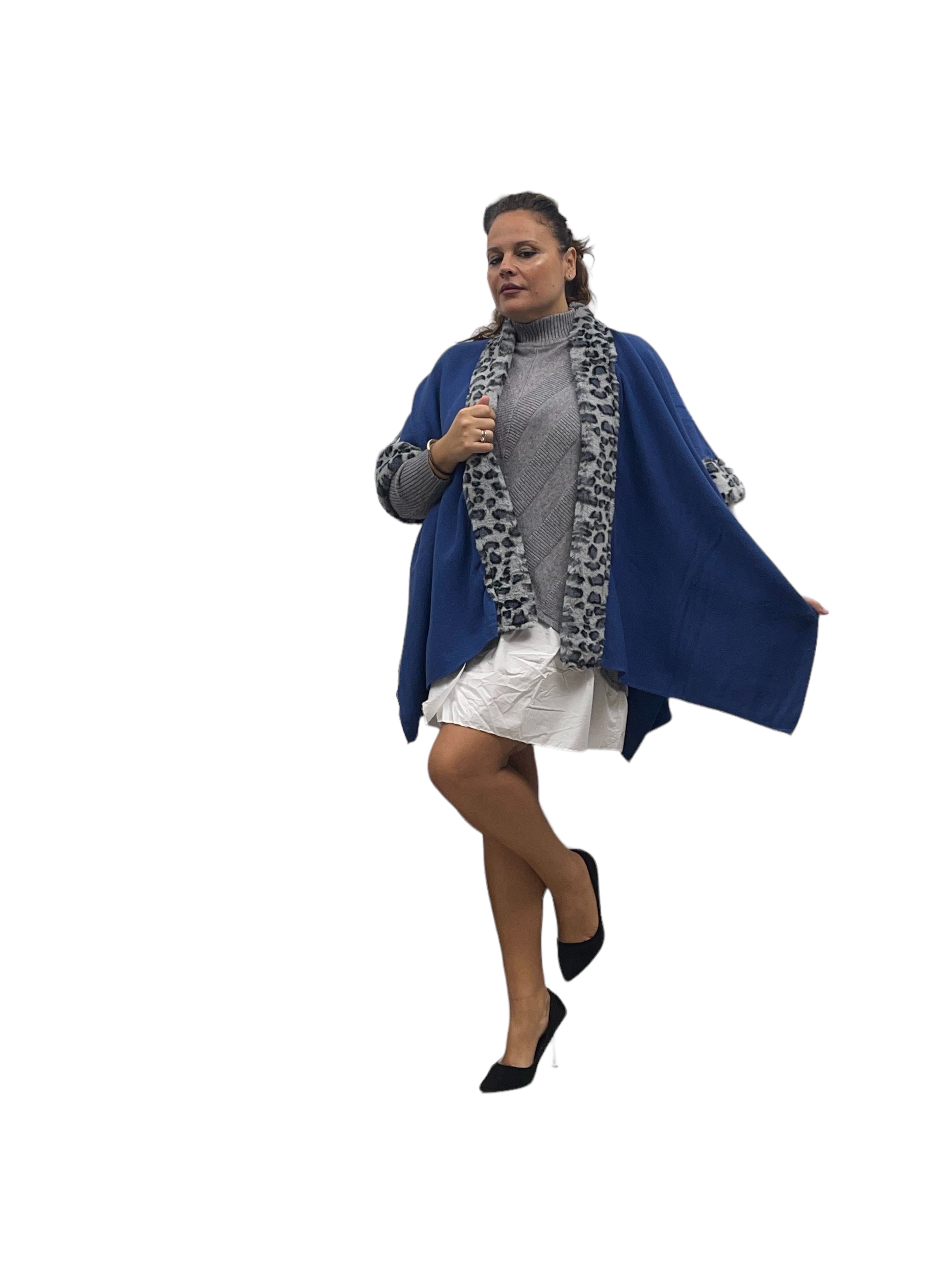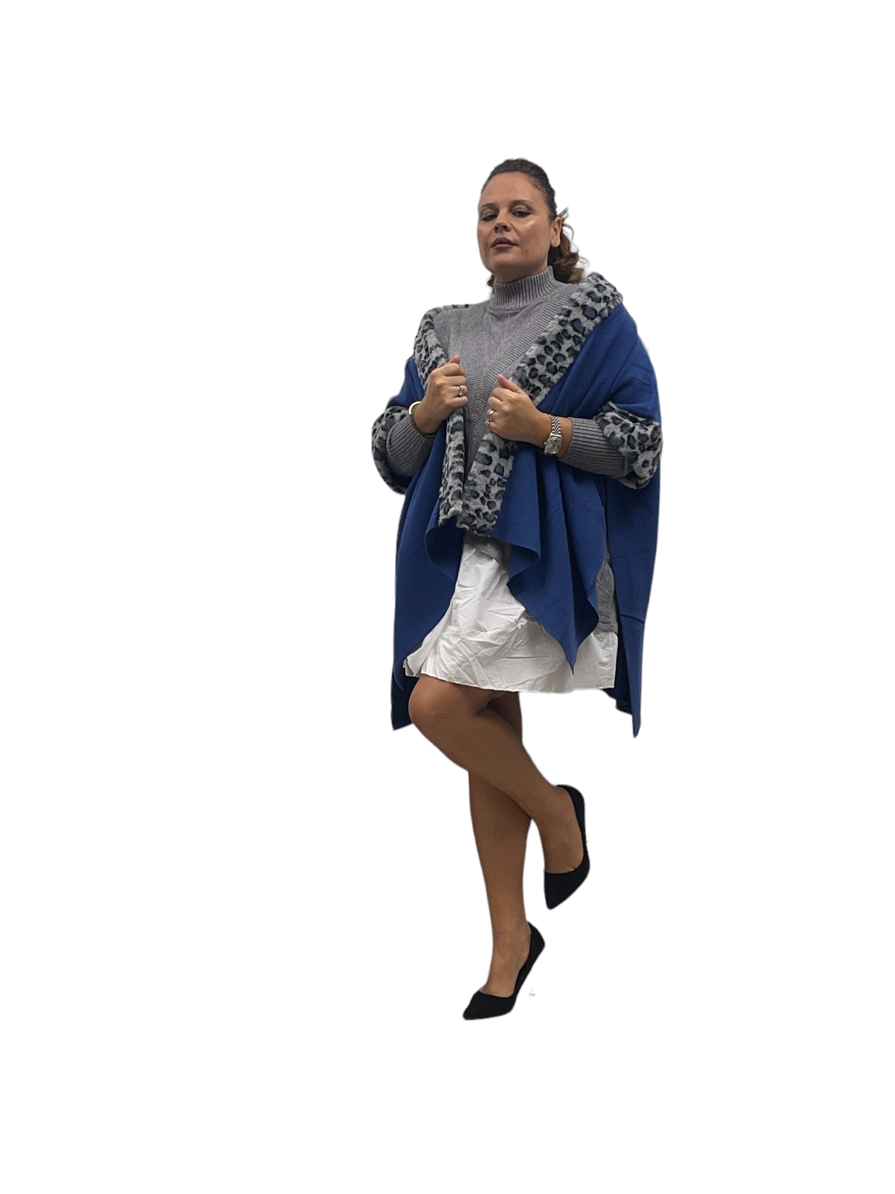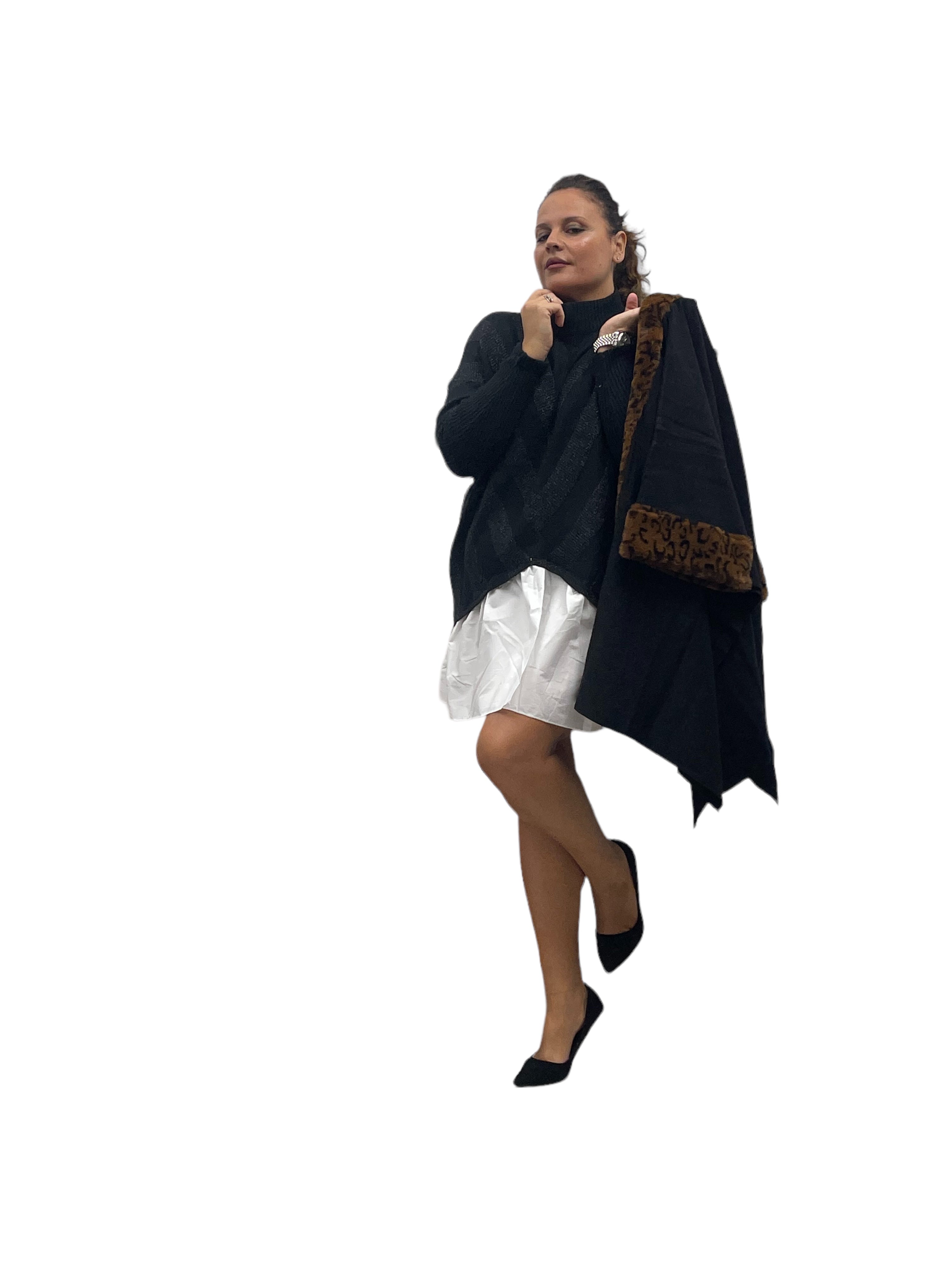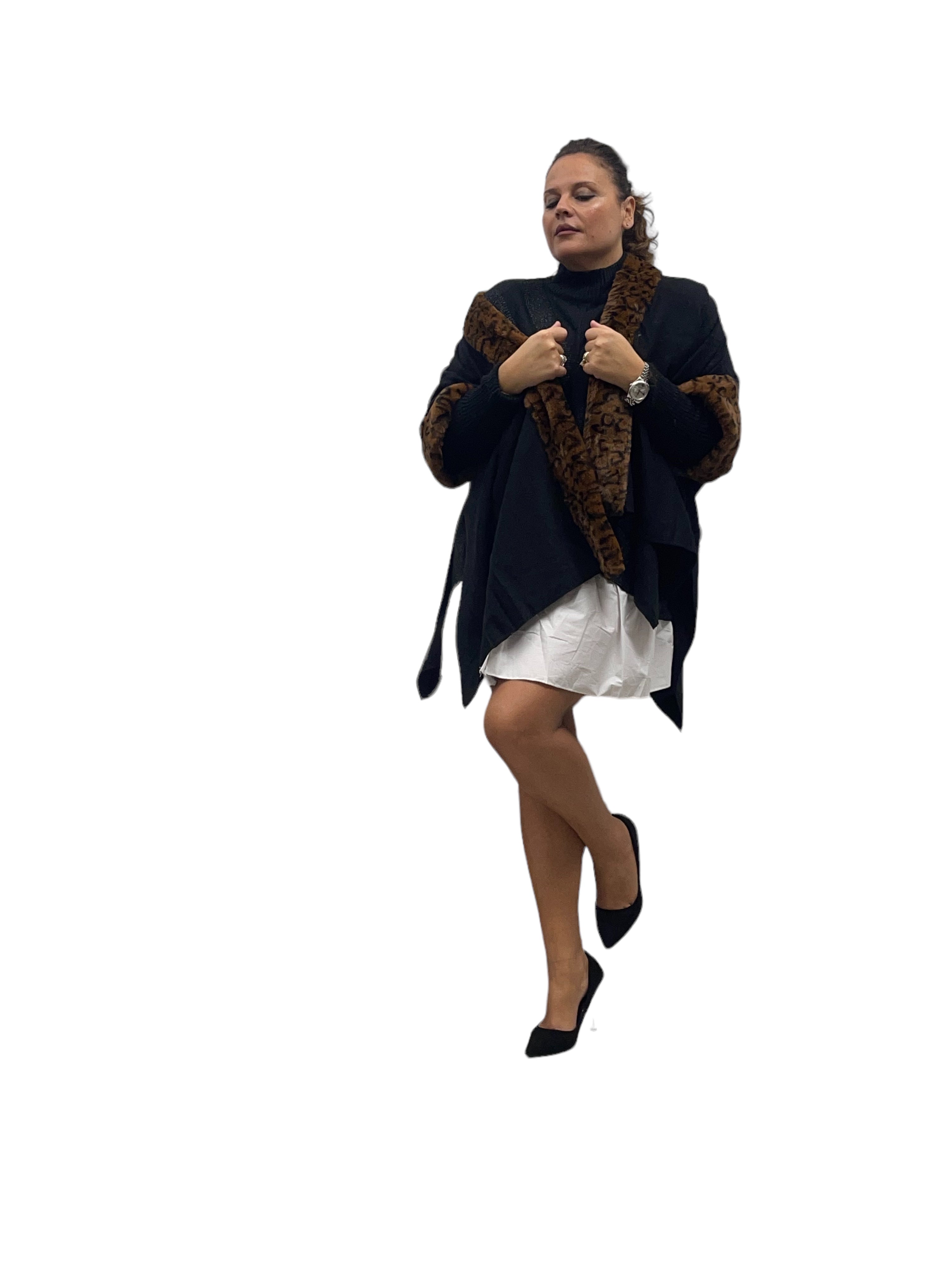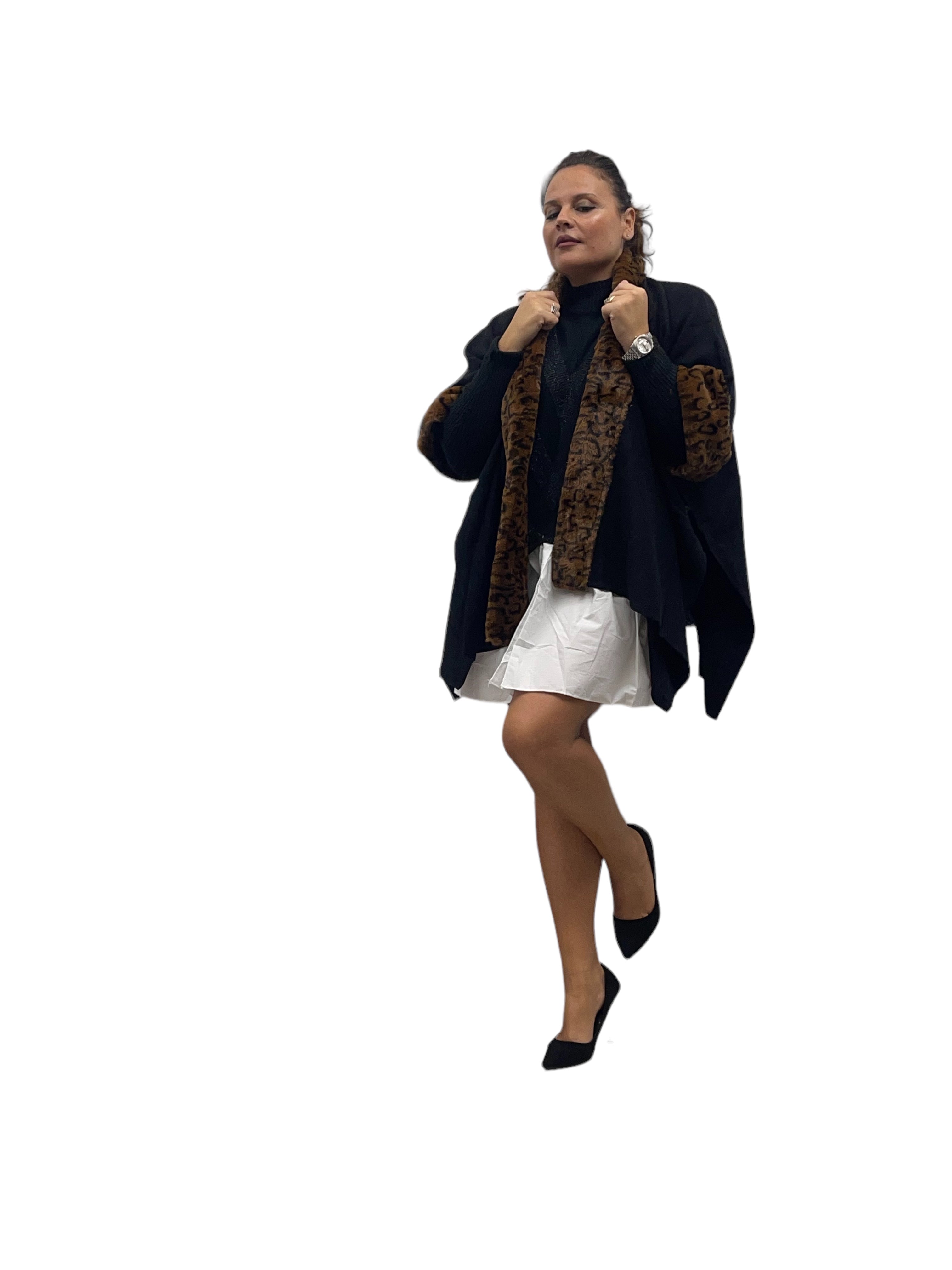 Mantella over con maniche e fasce in ecopelliccia maculata