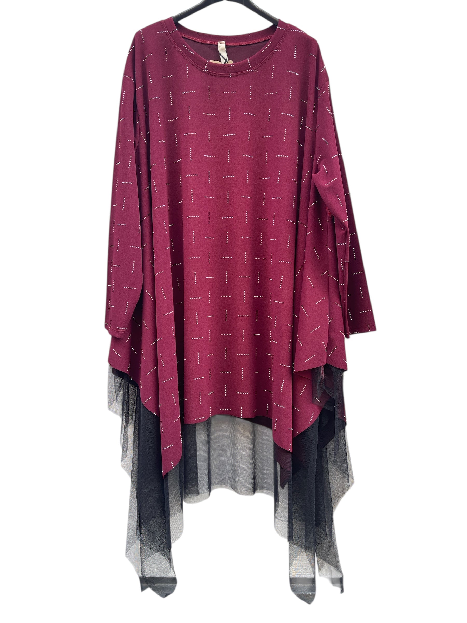 Abito/casacca lunga con brillantini svasata e sotto in tulle