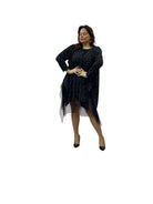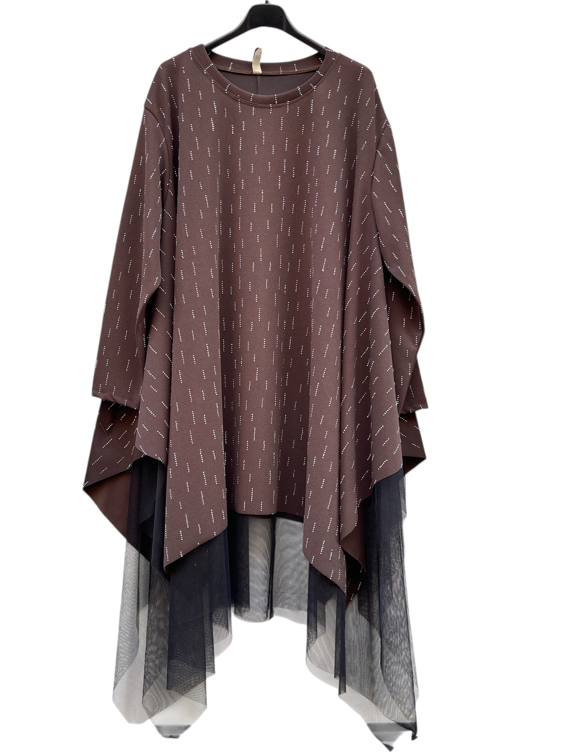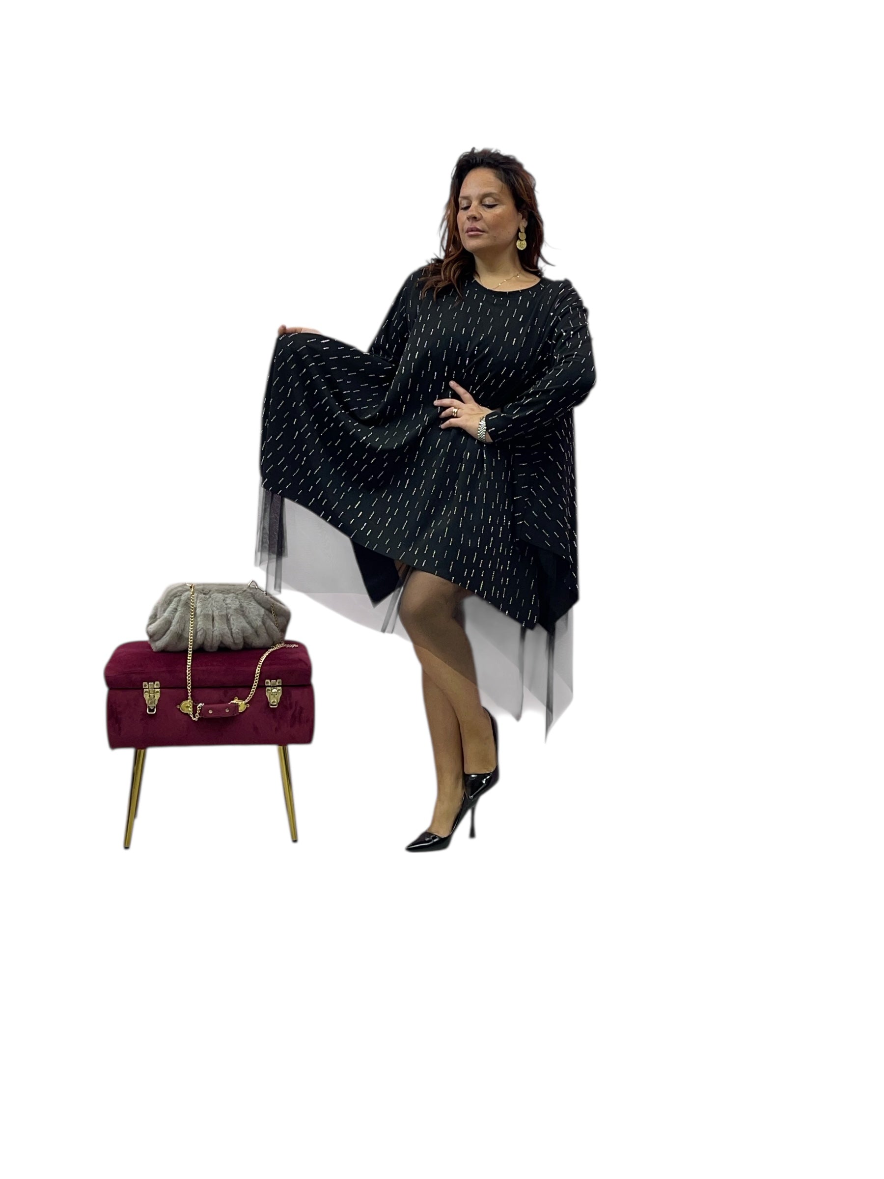 Abito/casacca lunga con brillantini svasata e sotto in tulle