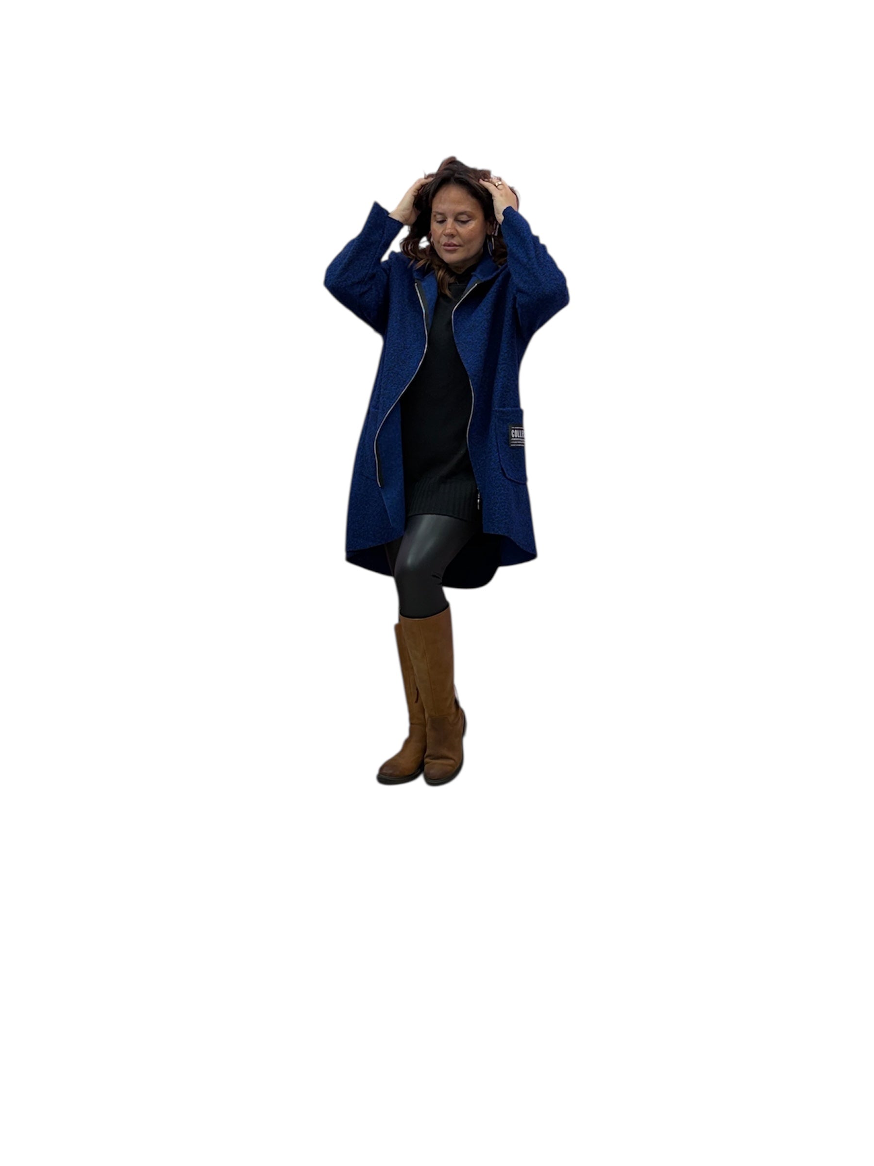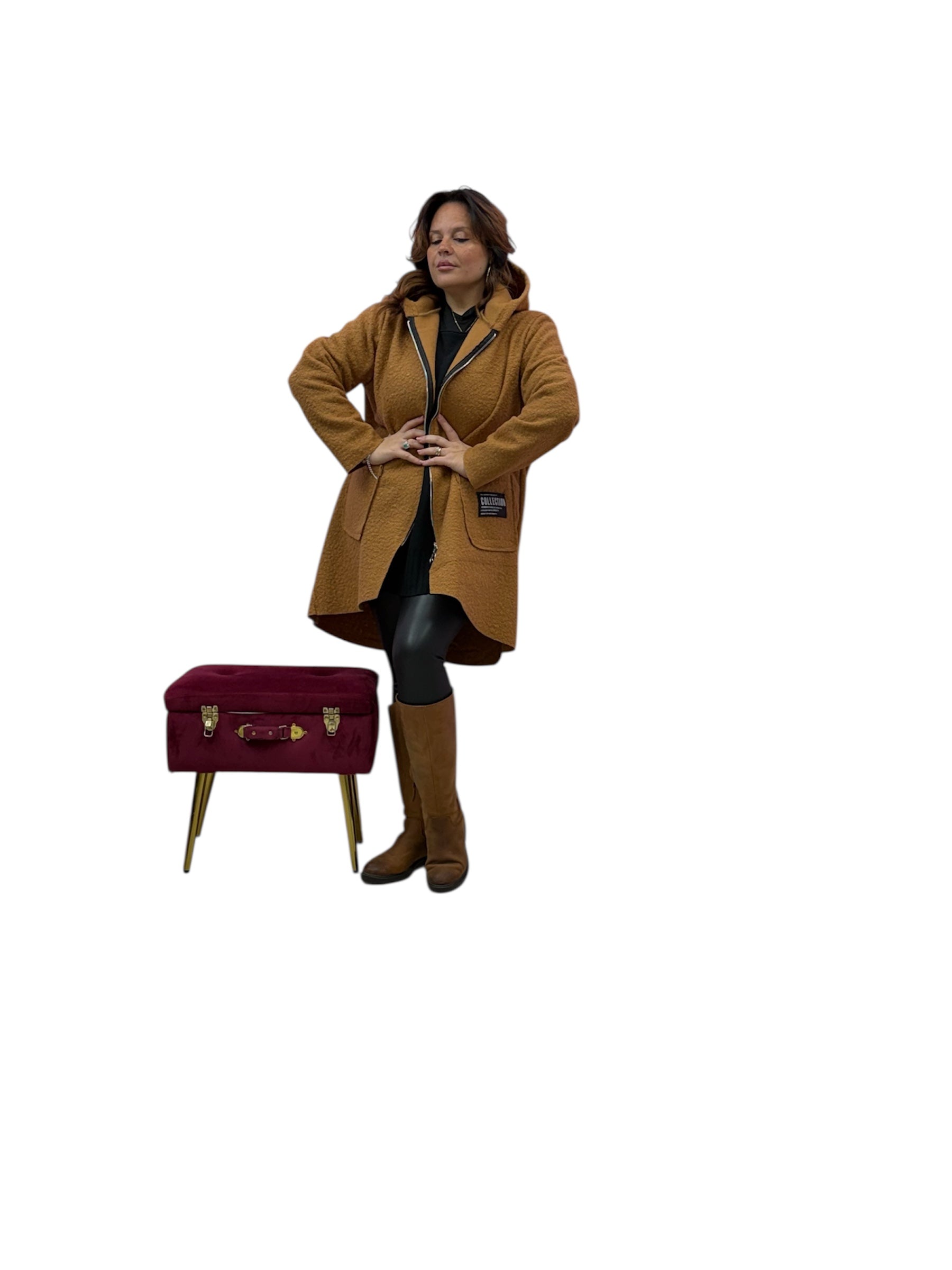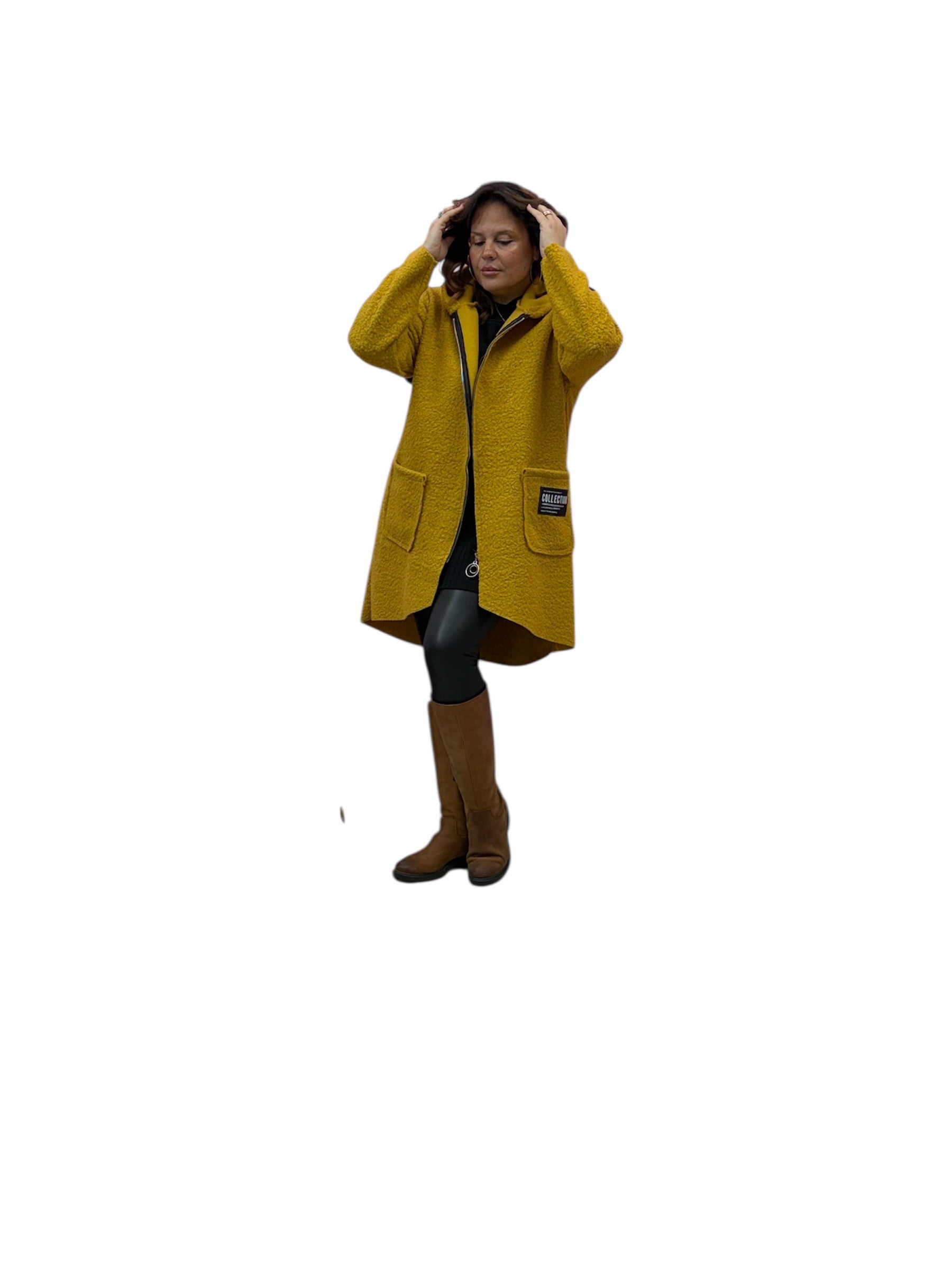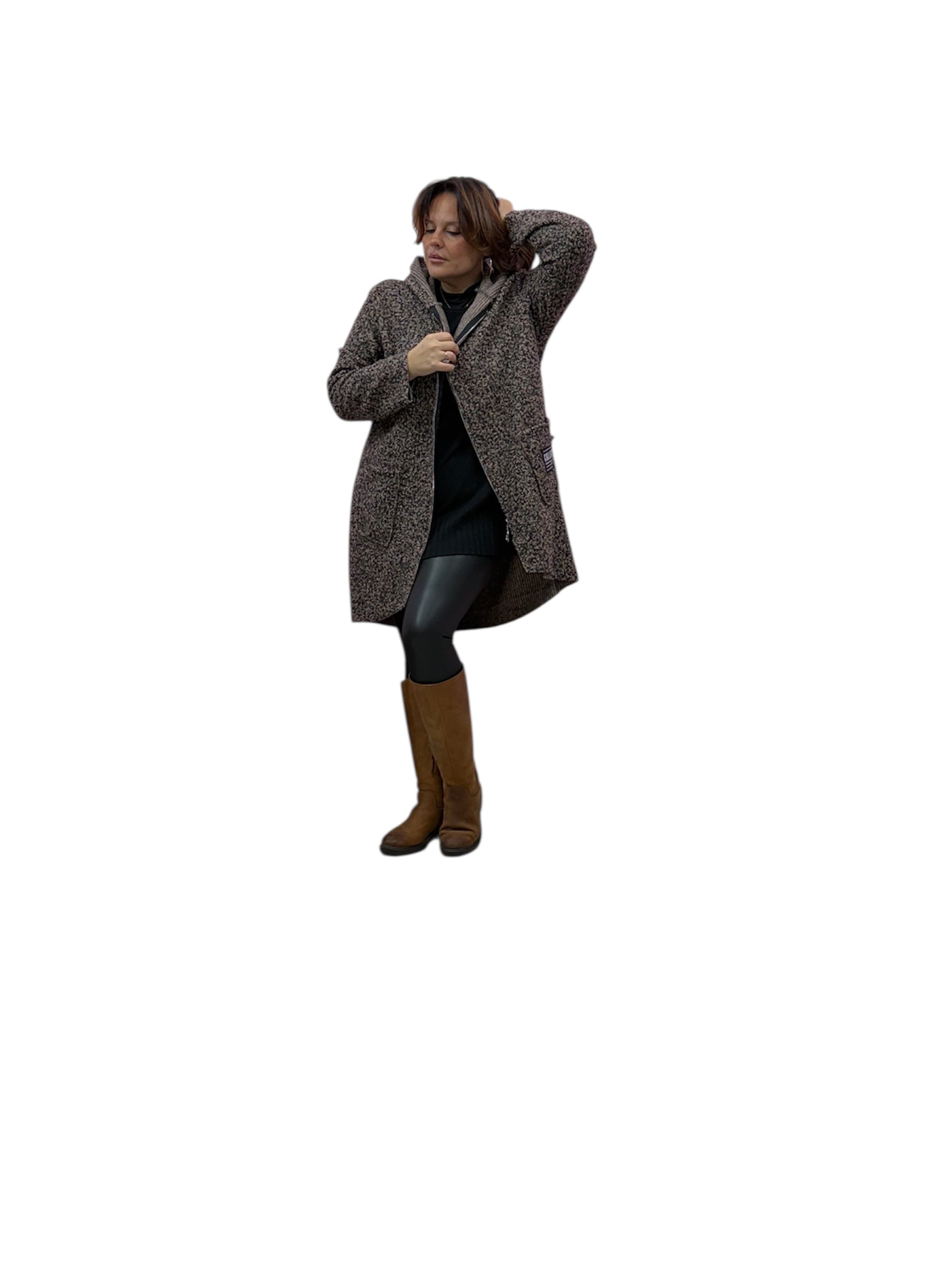 Cappotto over con cappuccio e zip in boucle'