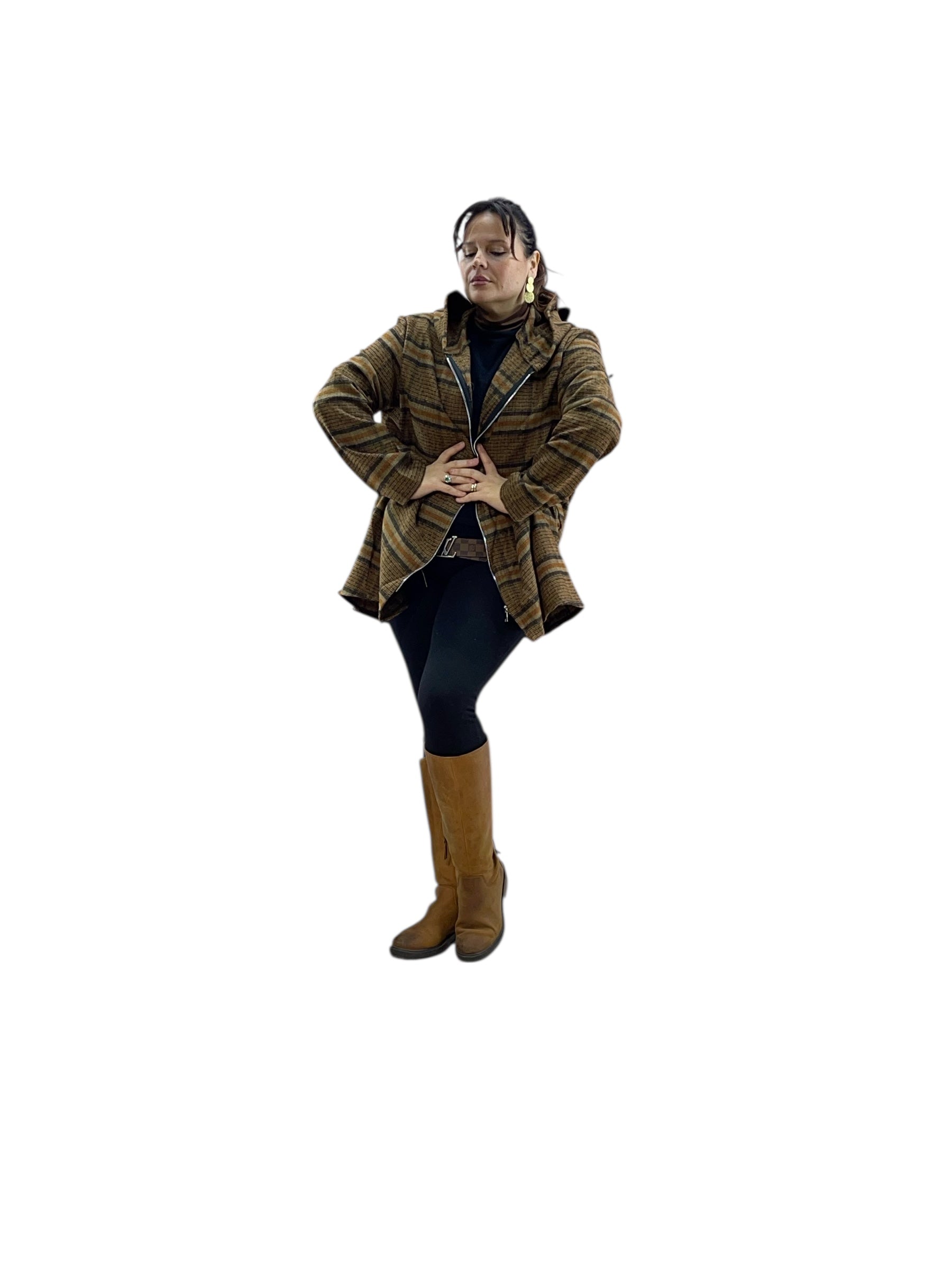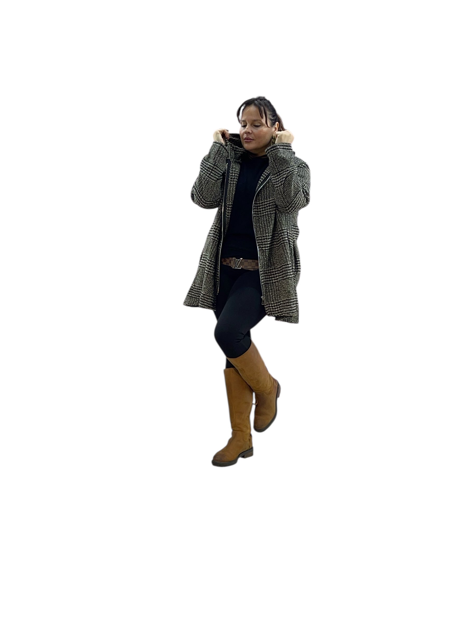 Cappotto/cardigan fantasia over con zip e cappuccio