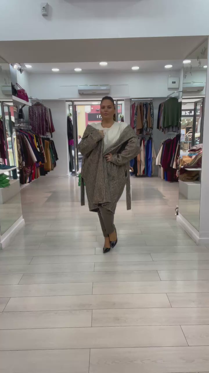 Cappotto over con cintura tessuto con lana effetto pelo