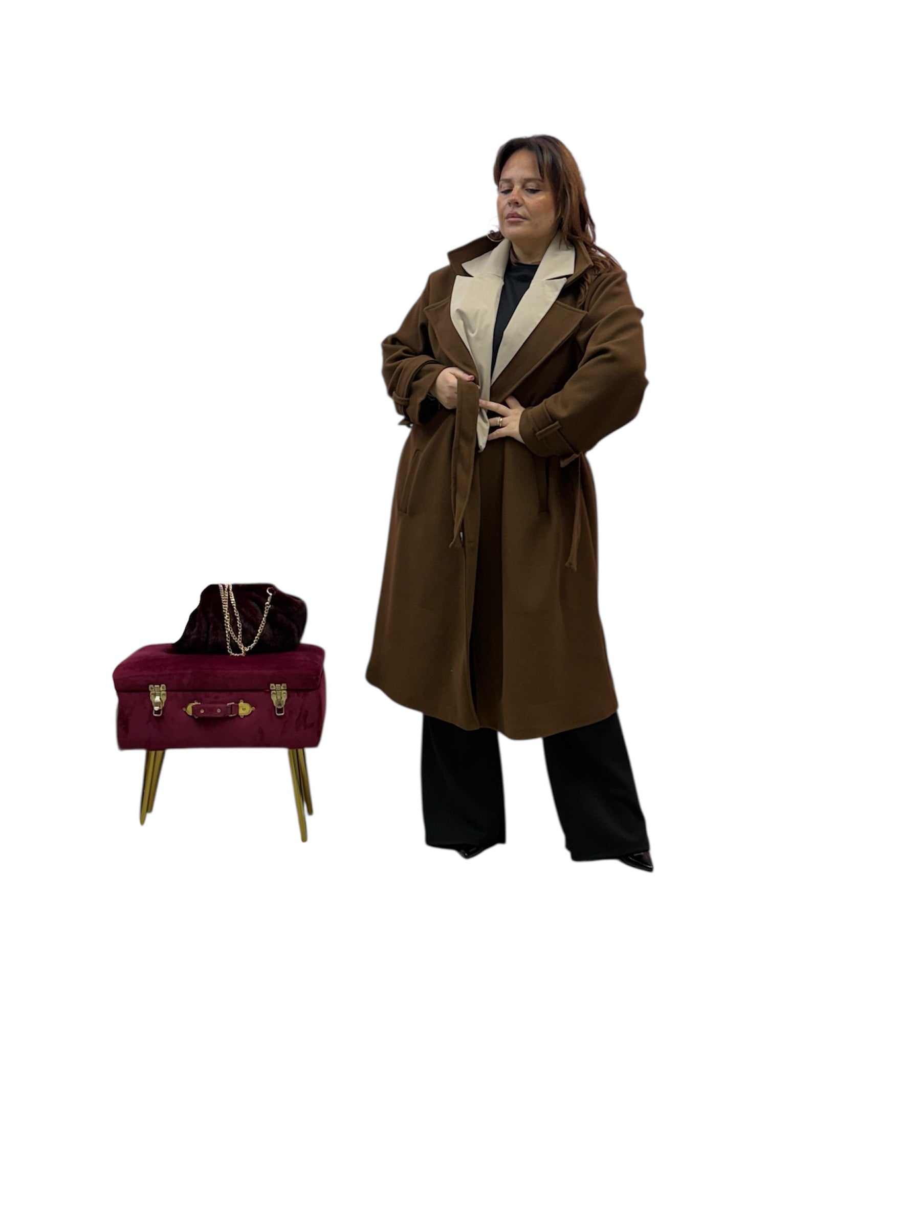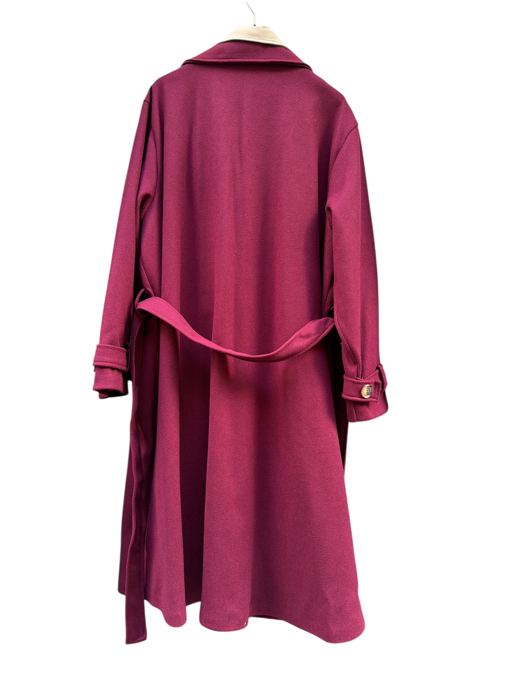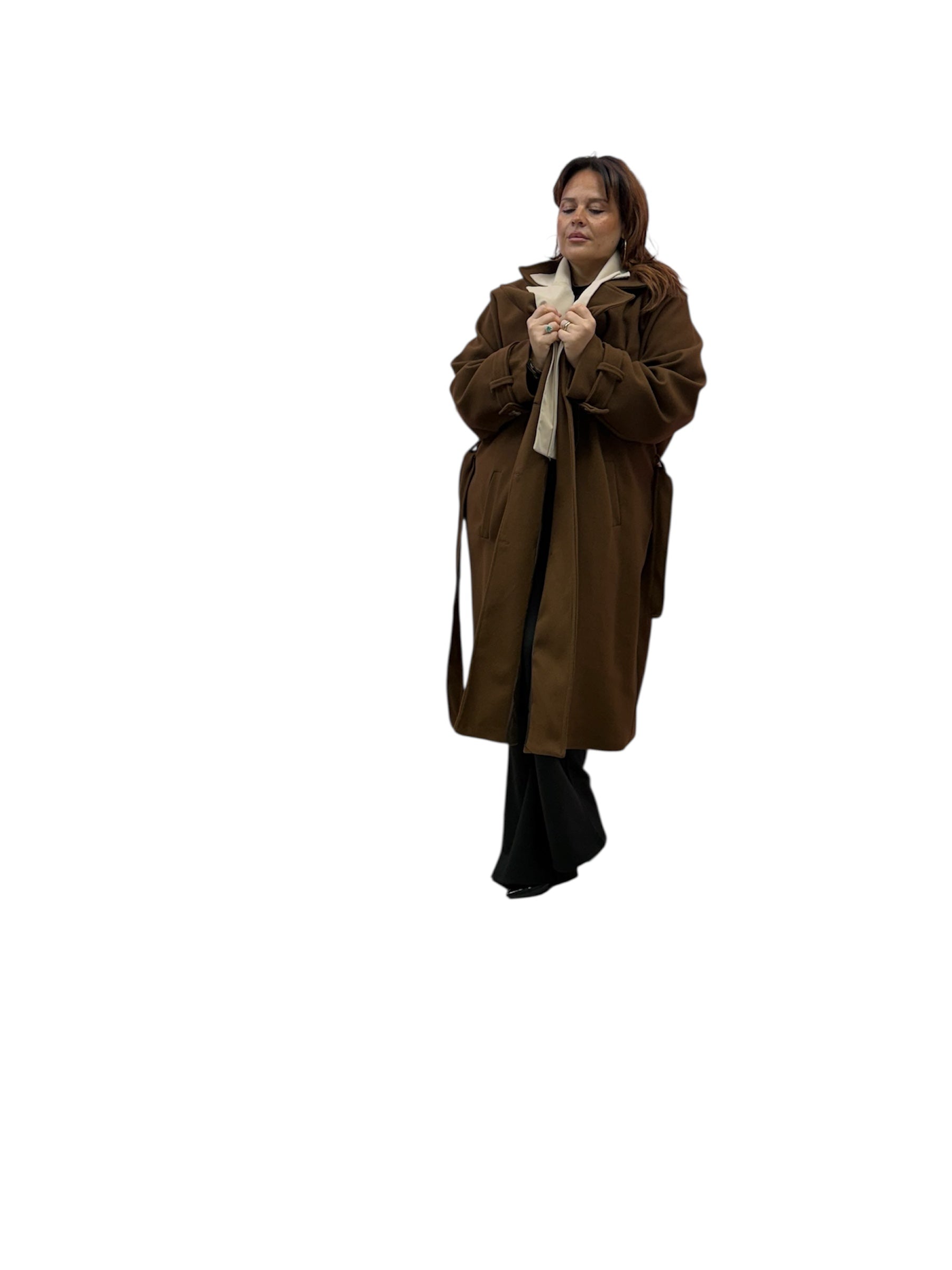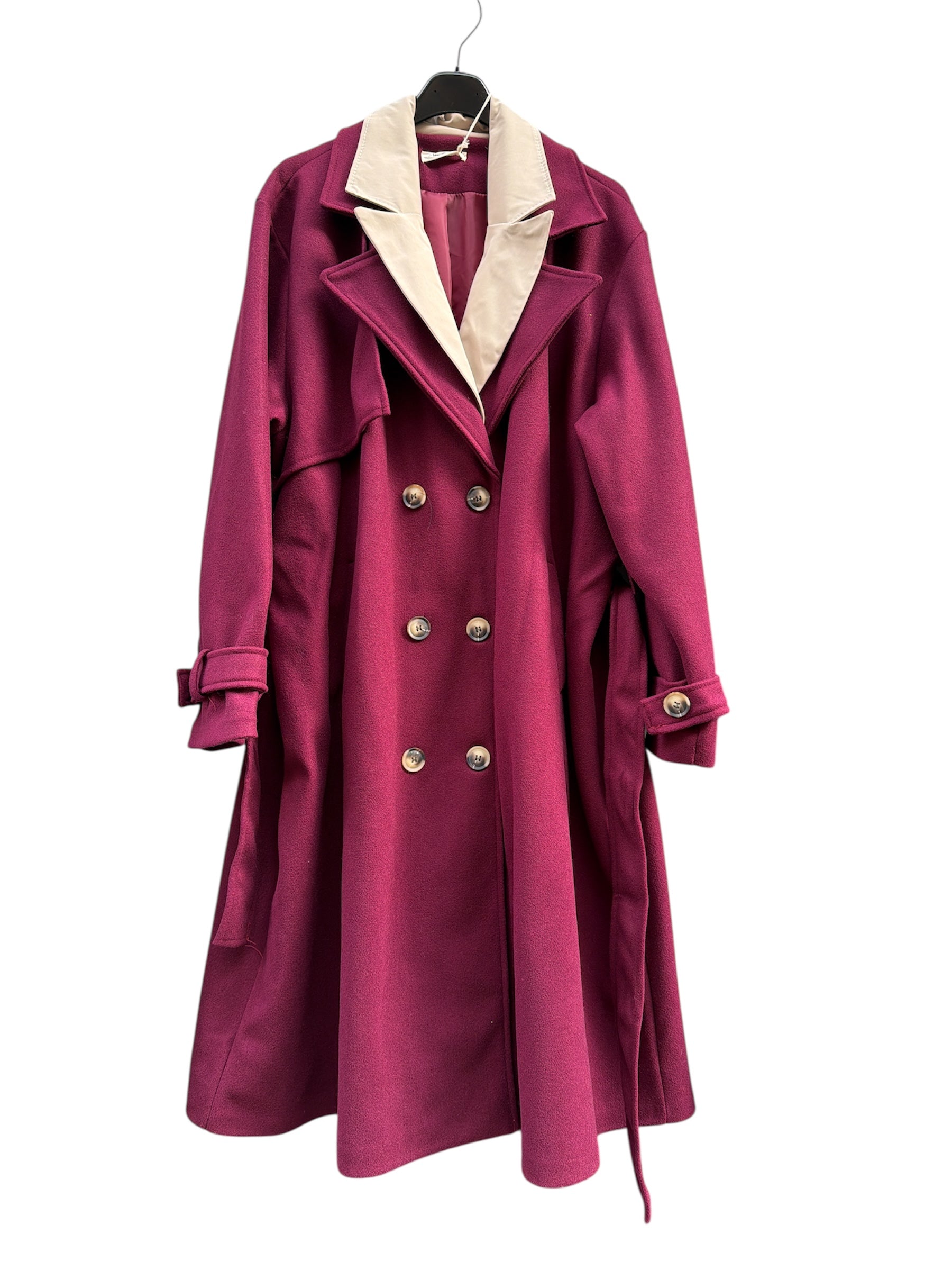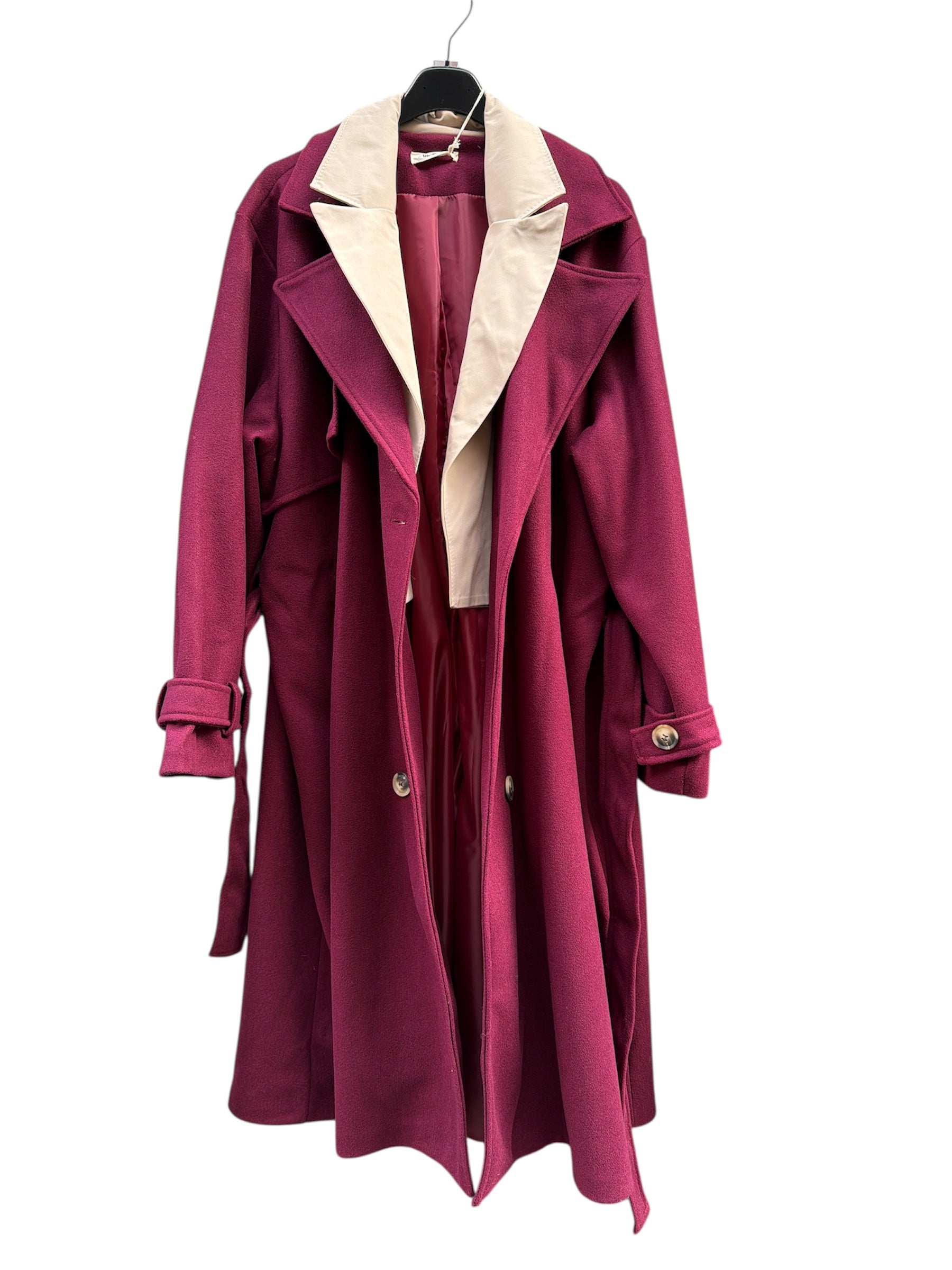 Cappotto over lungo foderato con doppio bavero,cintura e bottoni