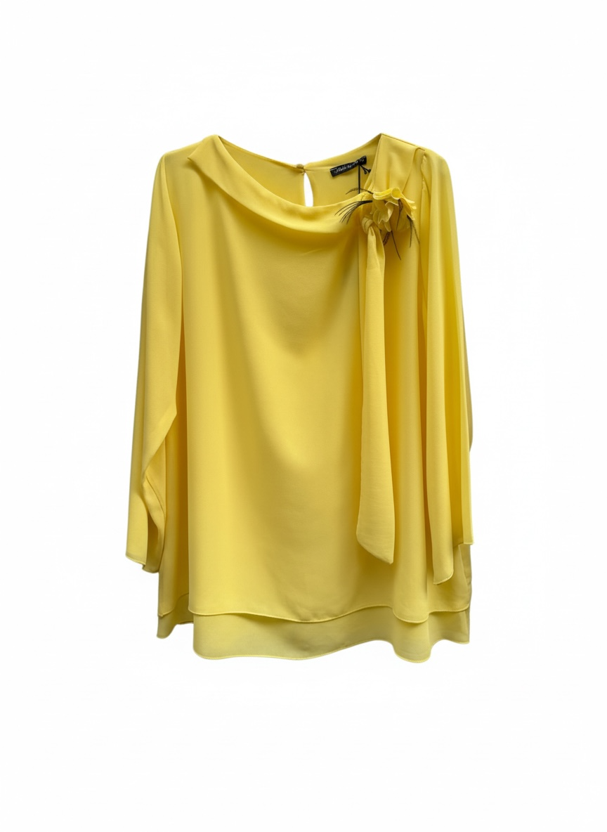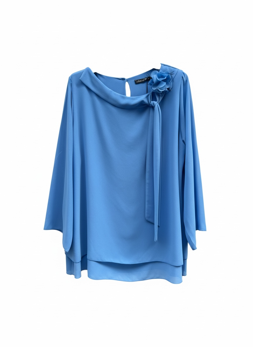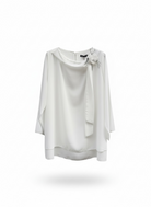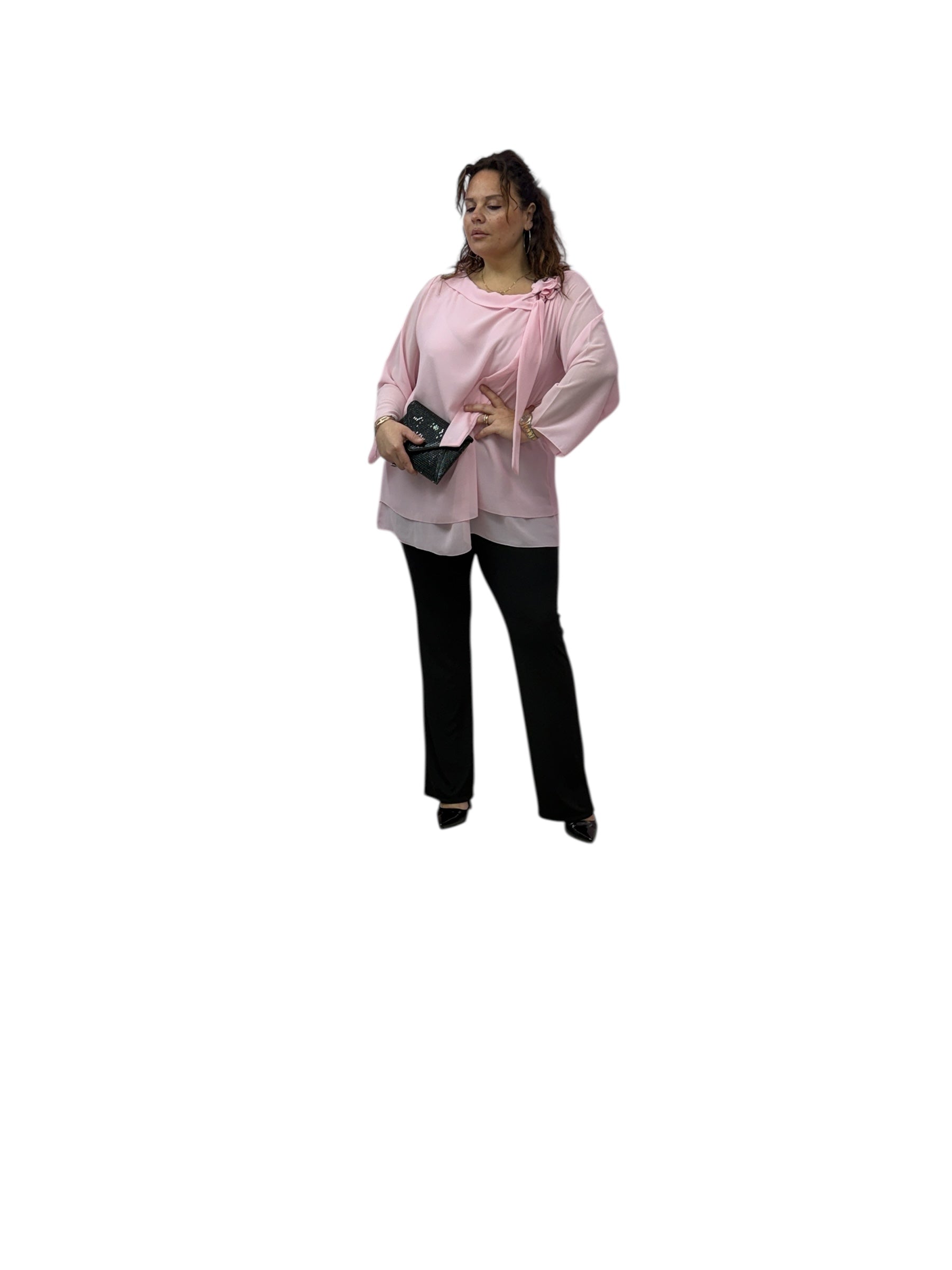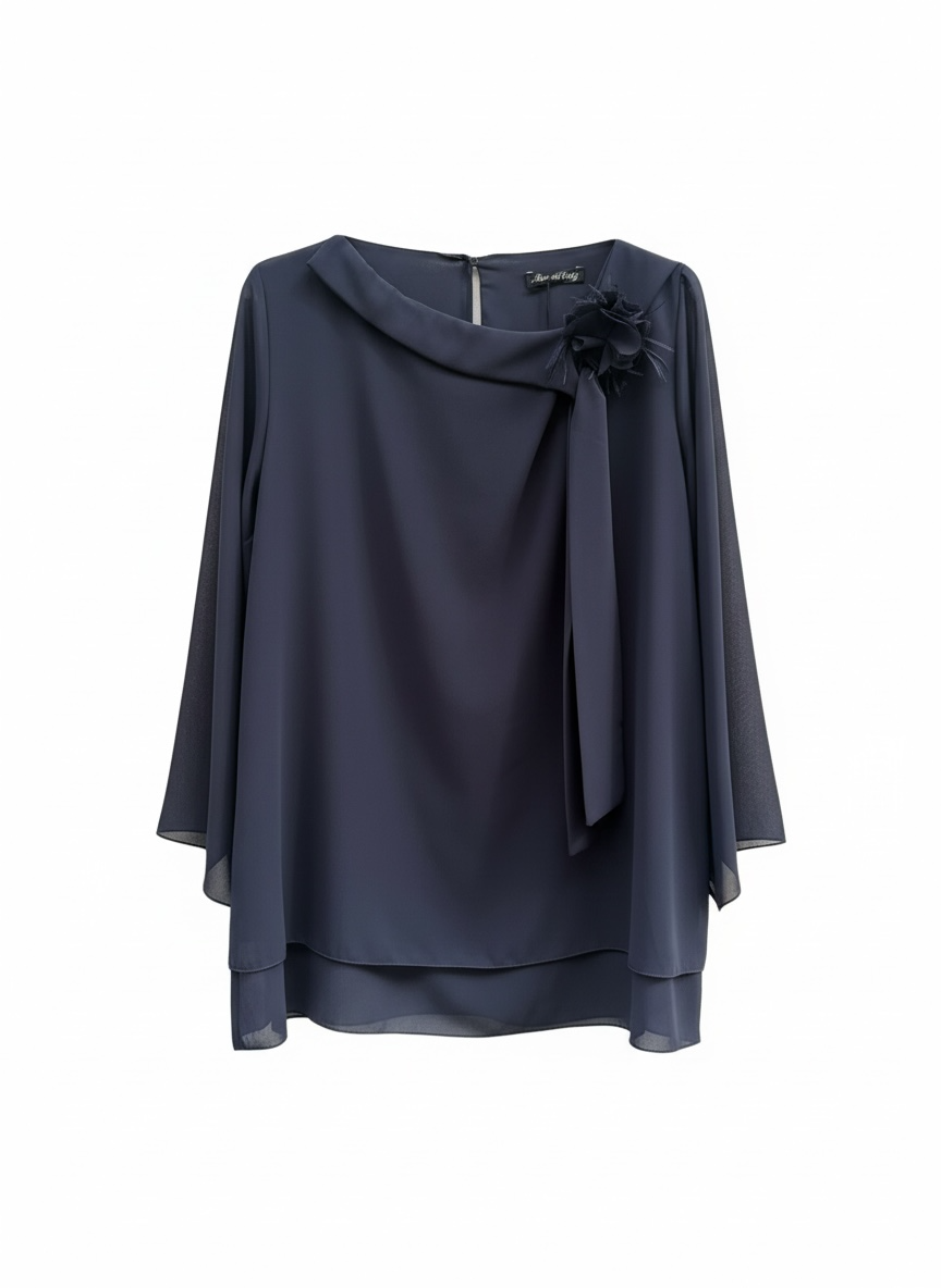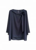 Casacca over in georgette doppio pannello con fiocco al collo e fiore spilla