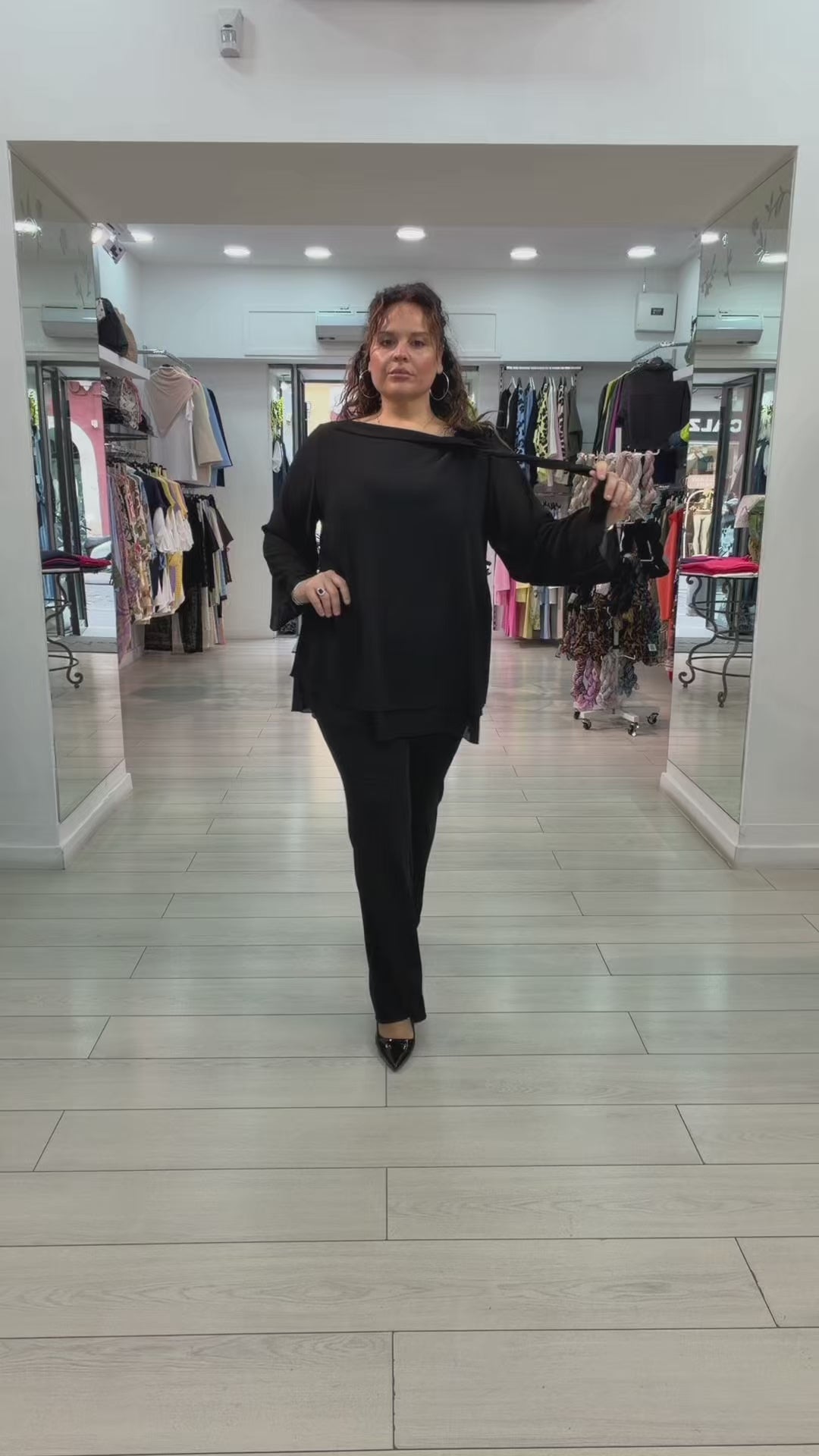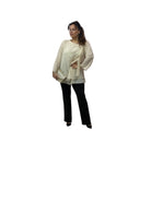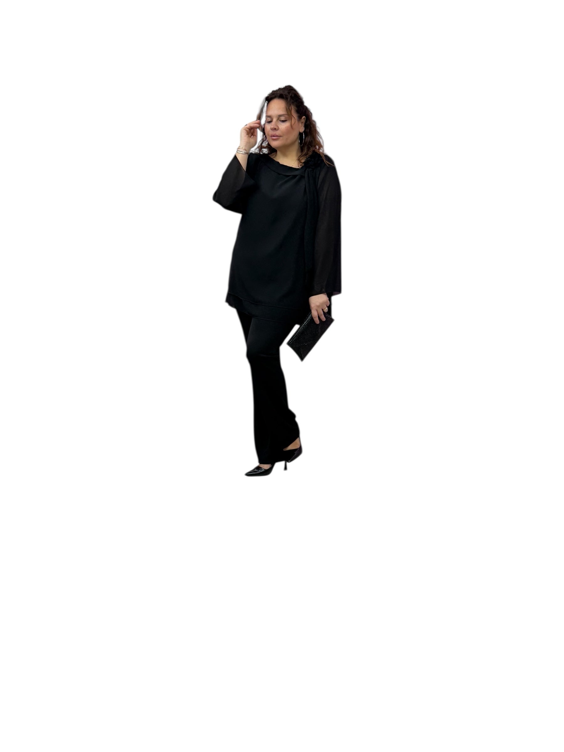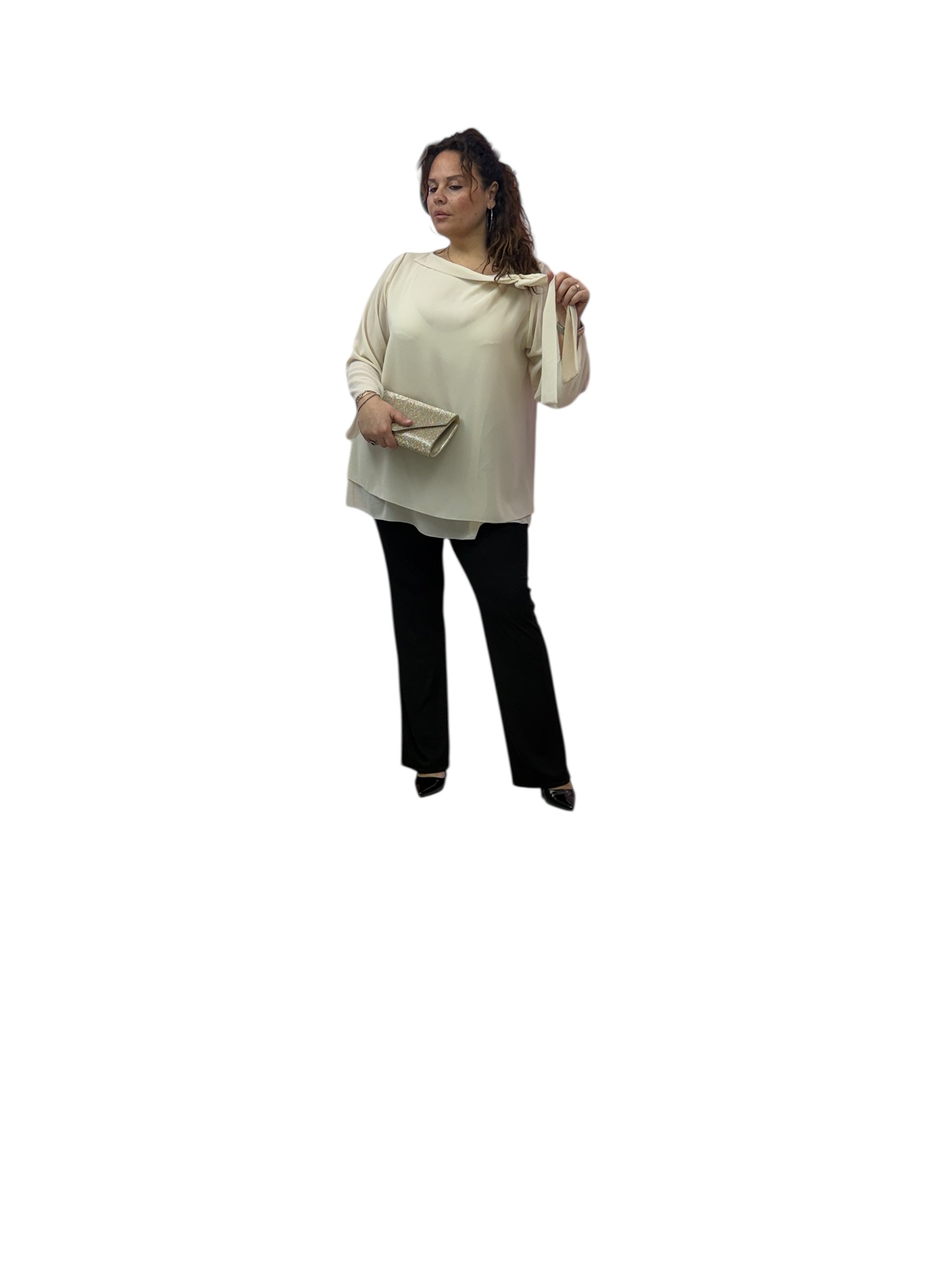 Casacca over in georgette doppio pannello con fiocco al collo e fiore spilla