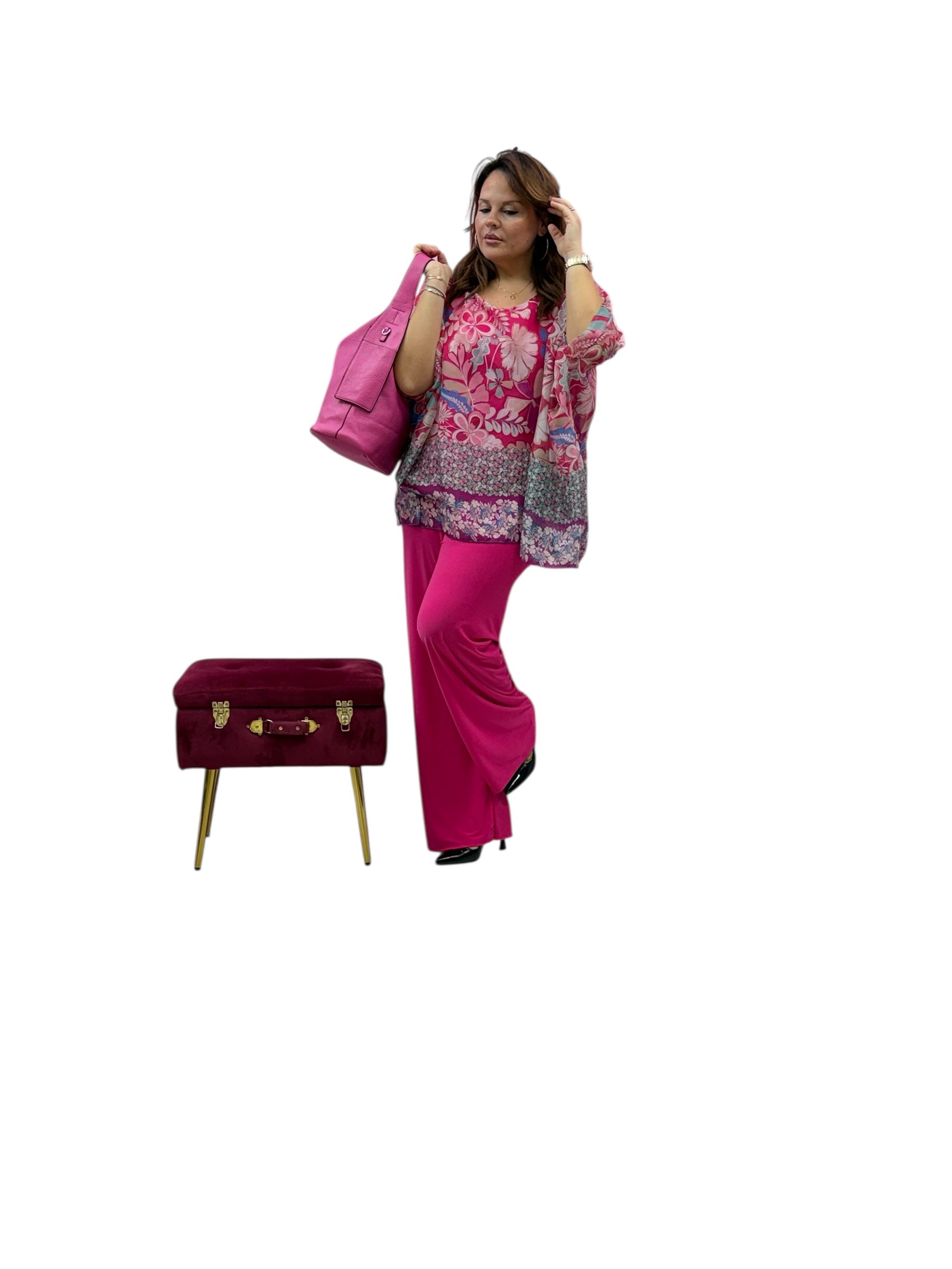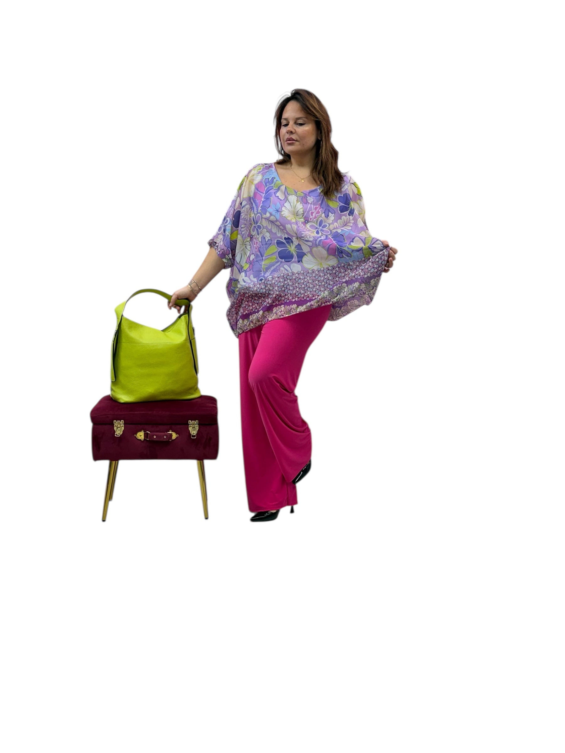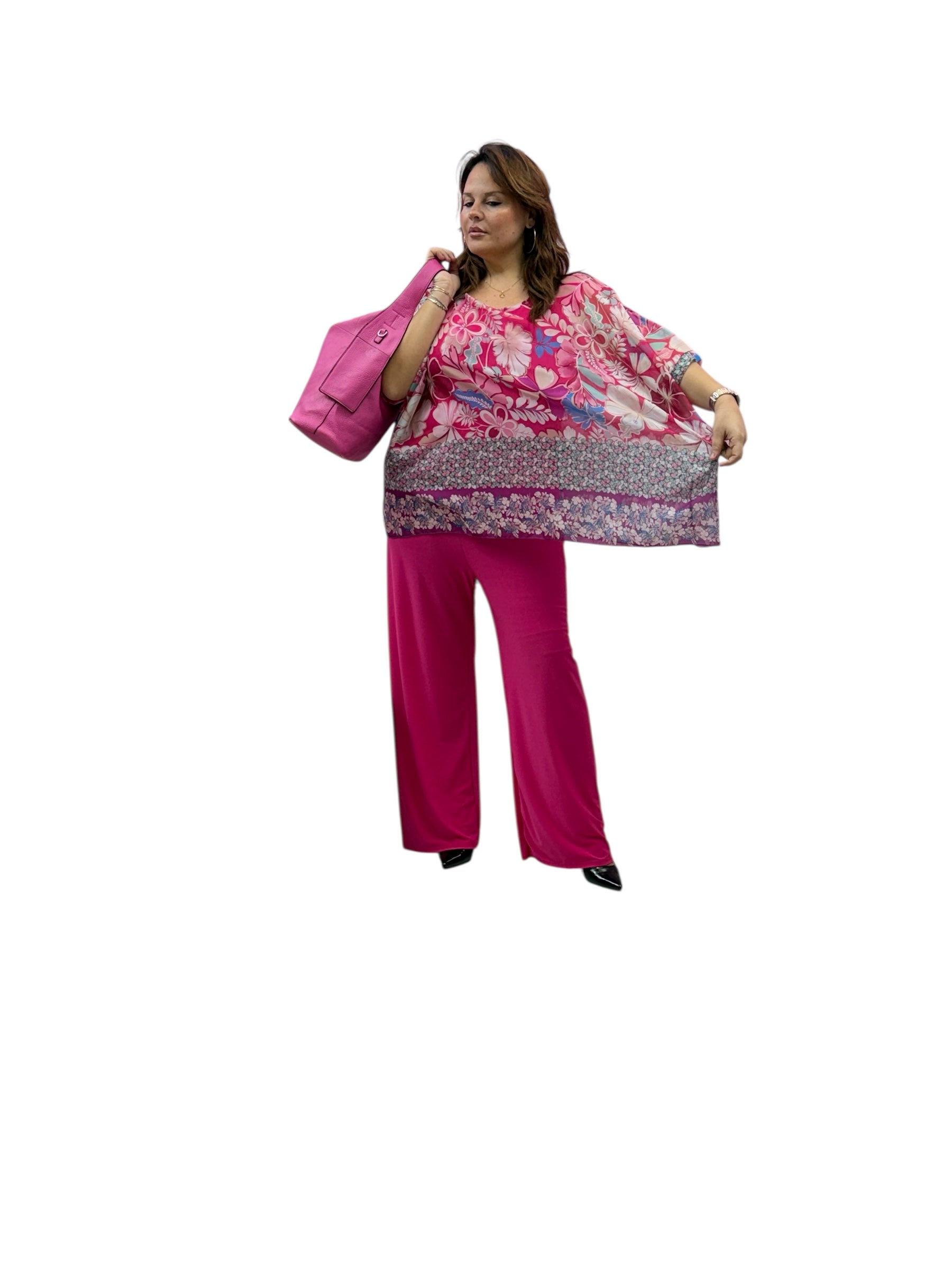 Casacca over in geirgette fantasia con top in magliana elastico