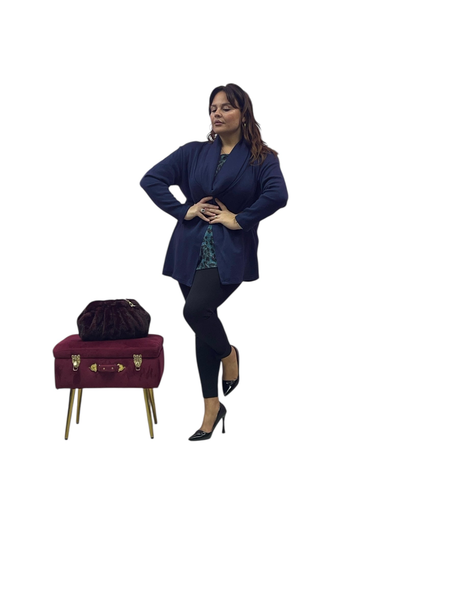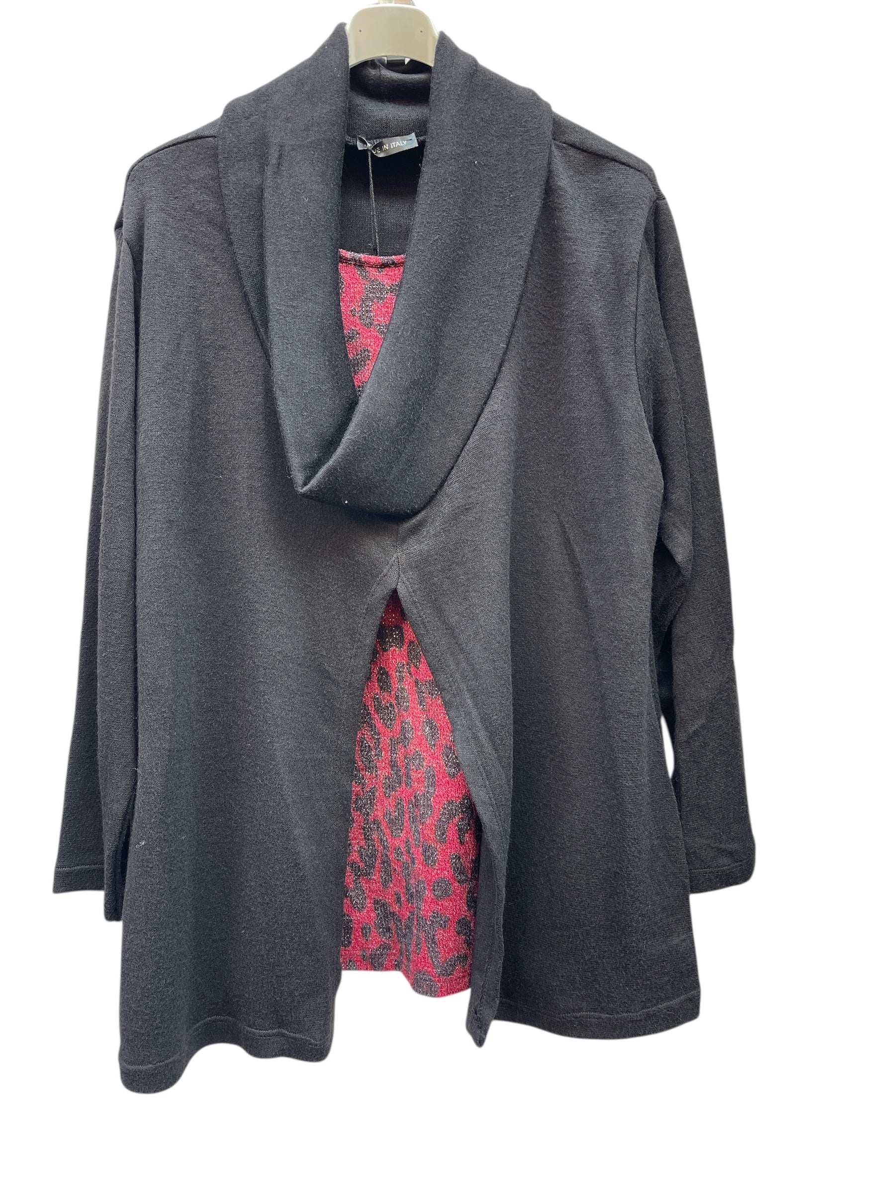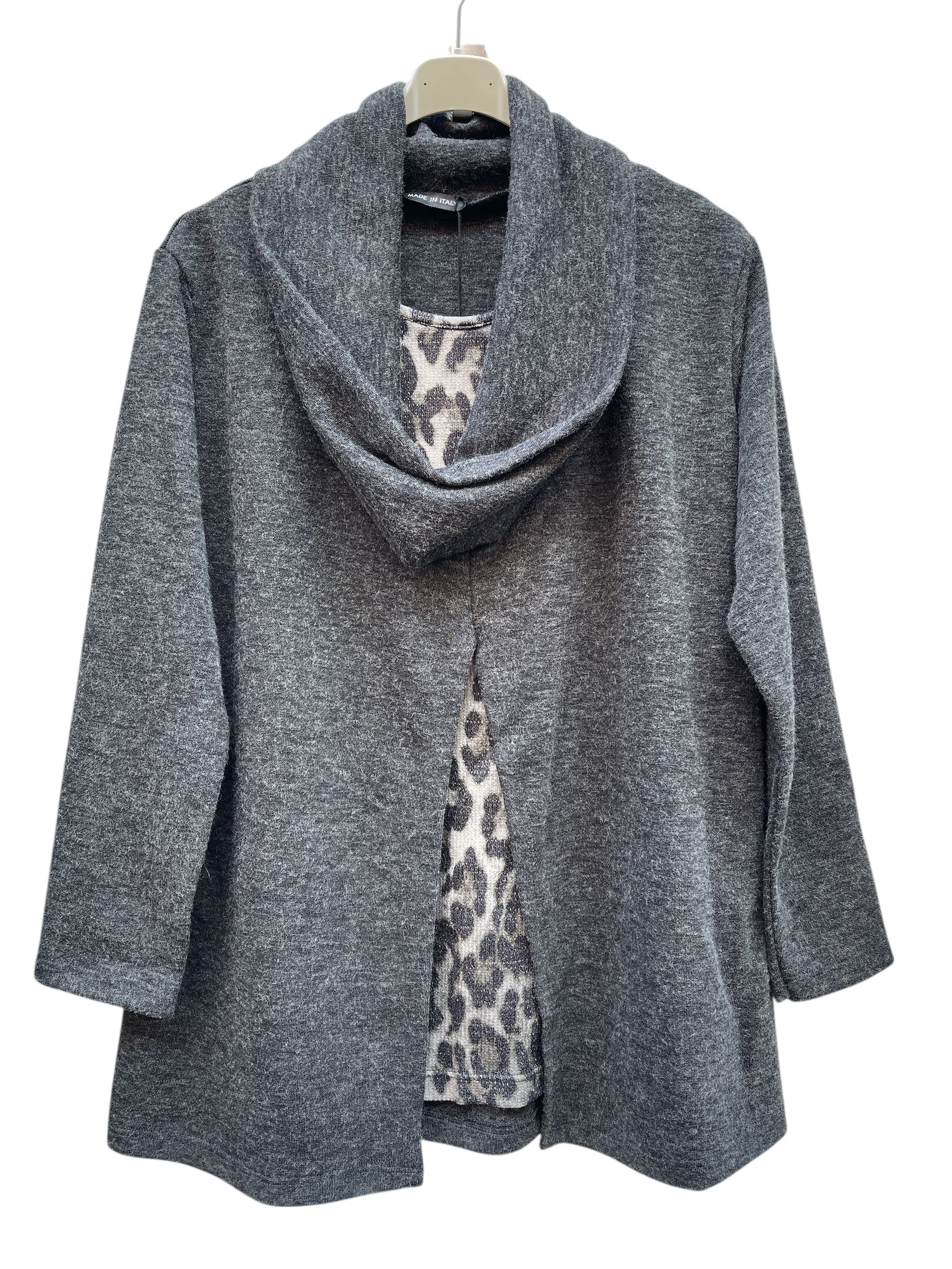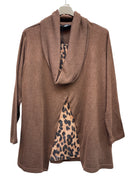 Casacca over con collo ad anello morbido e pannello leopardato laminato