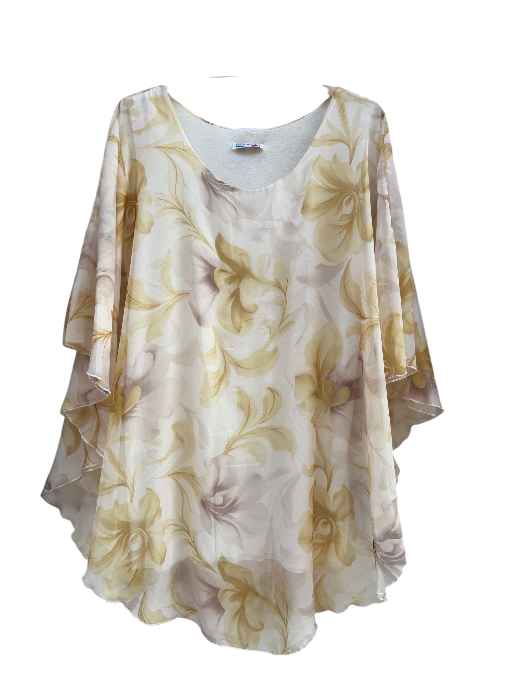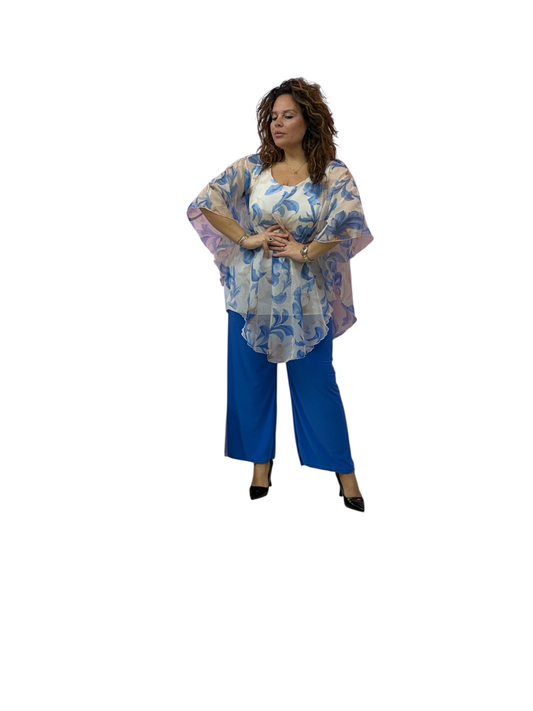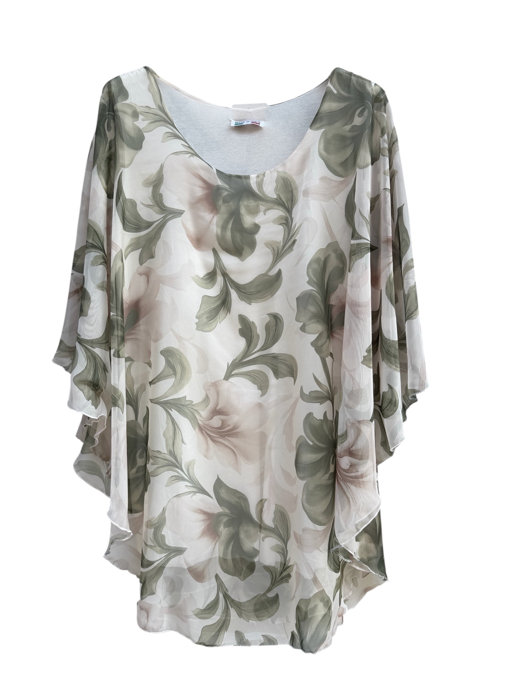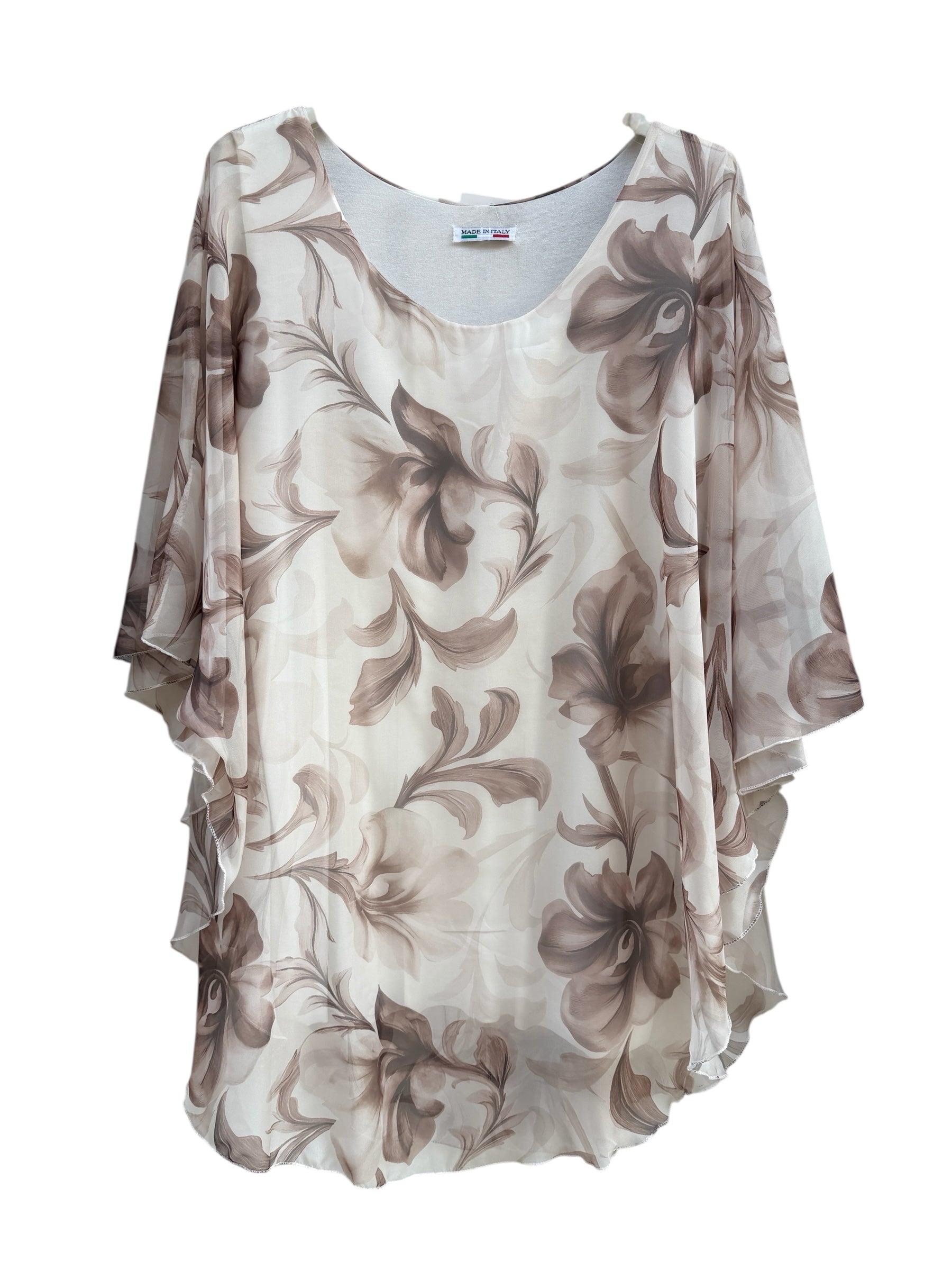 Casacca over con pannello in georgette fiorato e canotta lunga in maglina cucita
