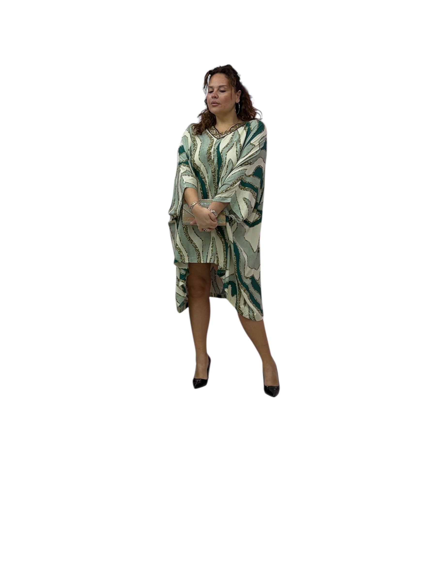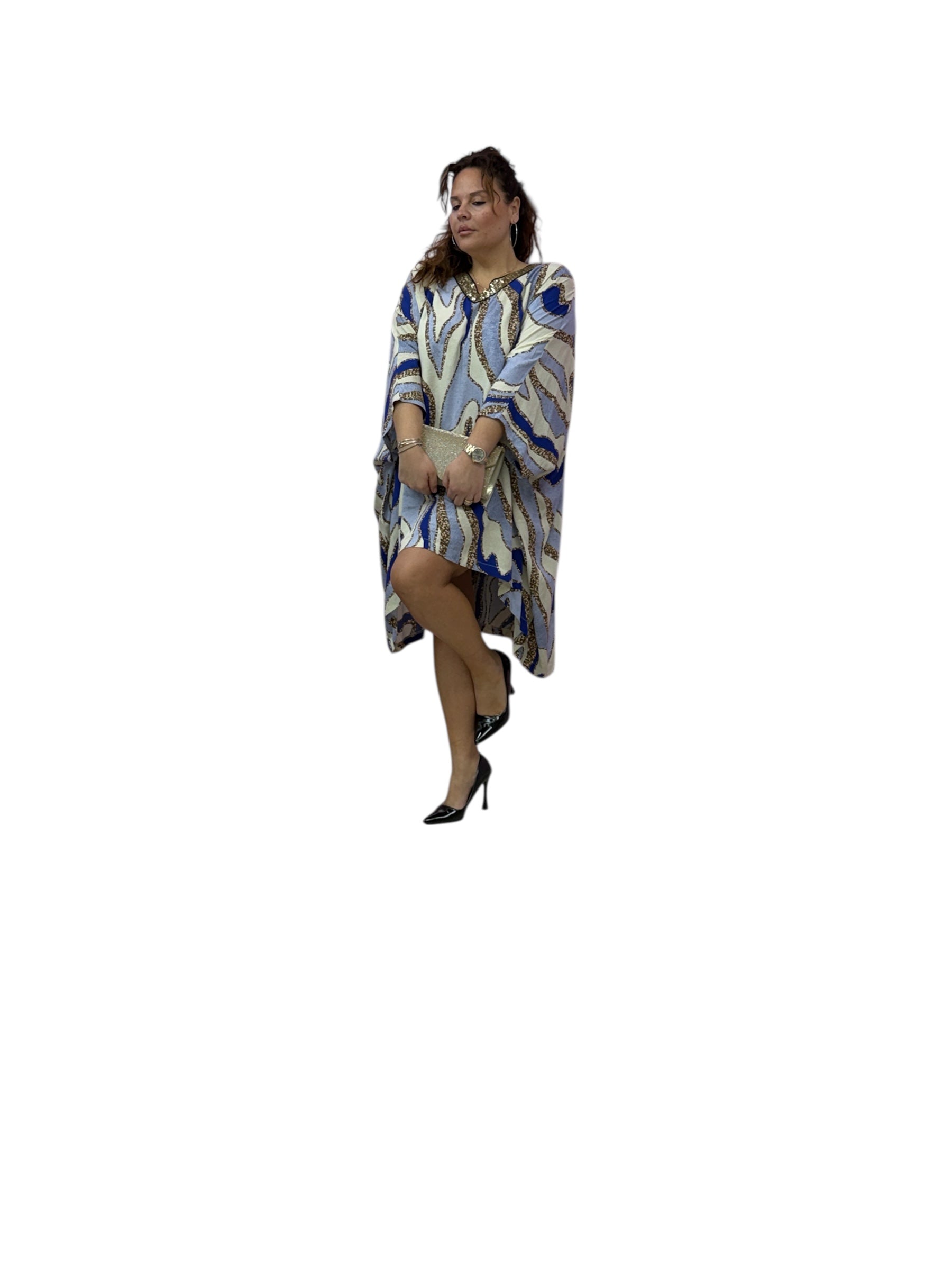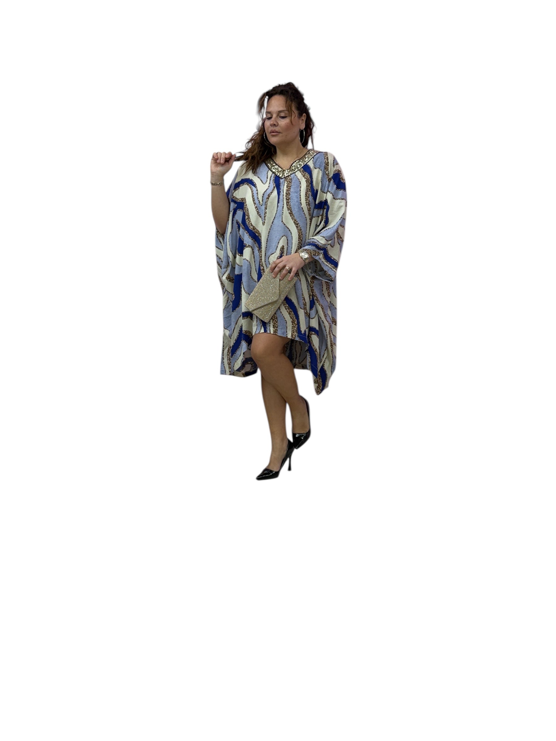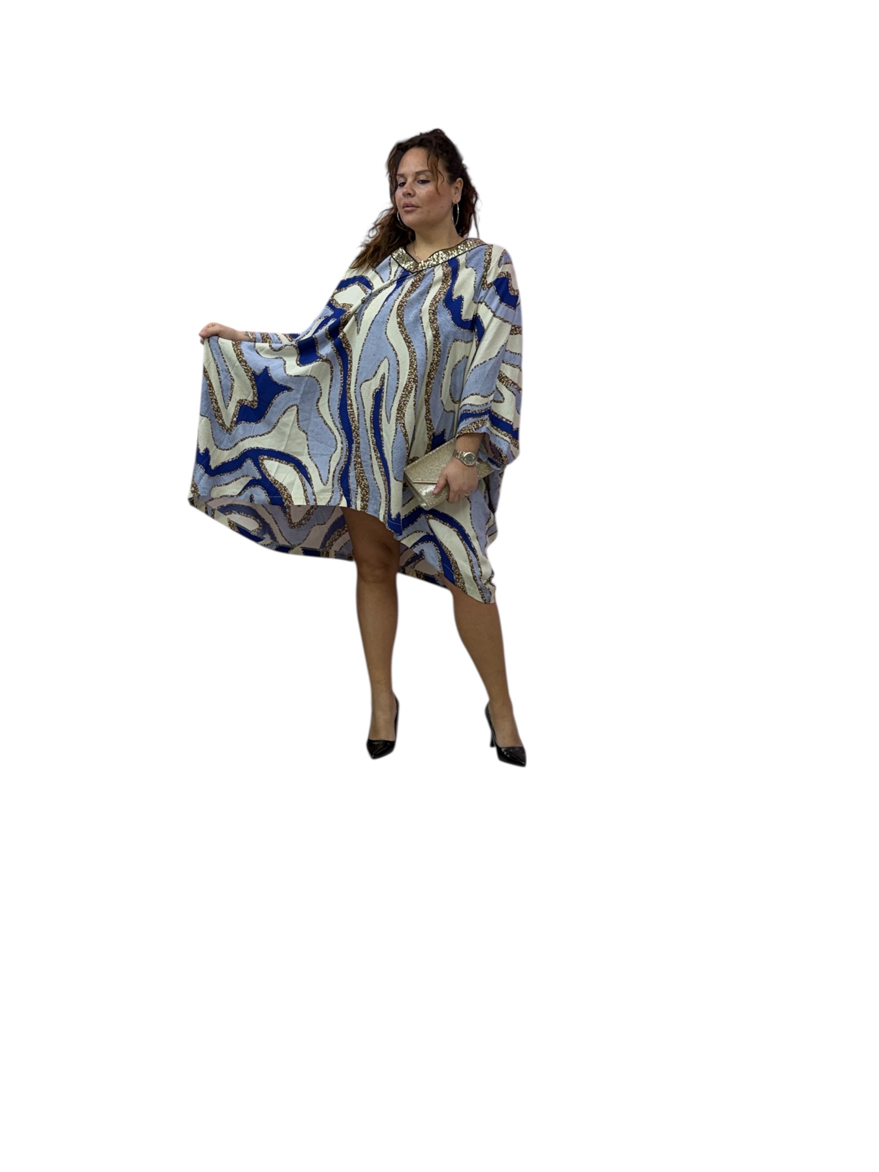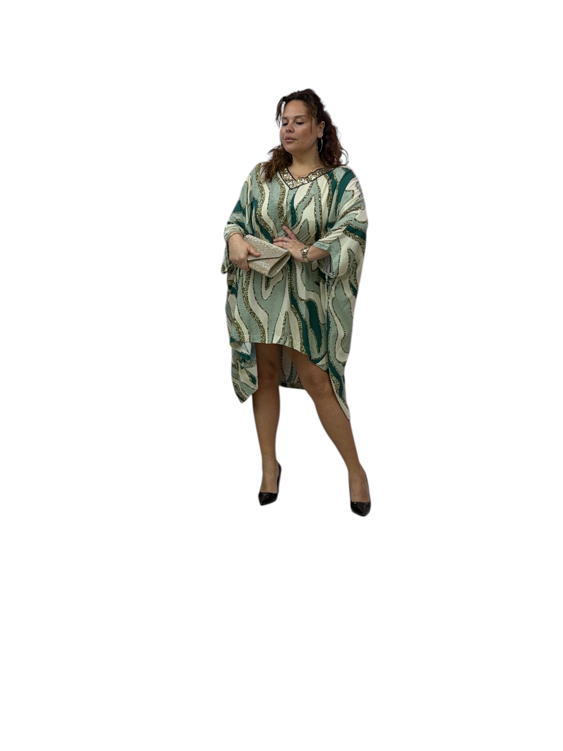 Casacca/kaftano lungo fantasia, con scollo a v, di paiette