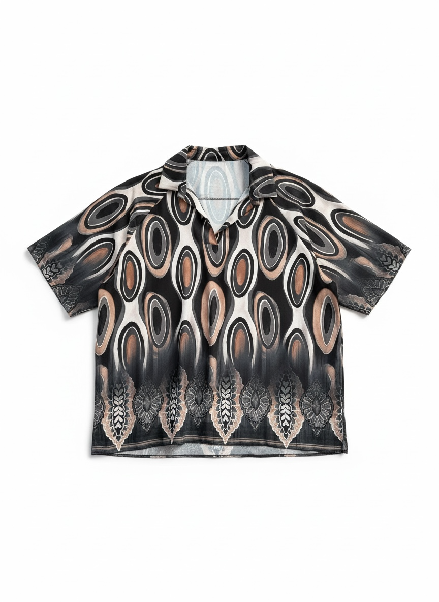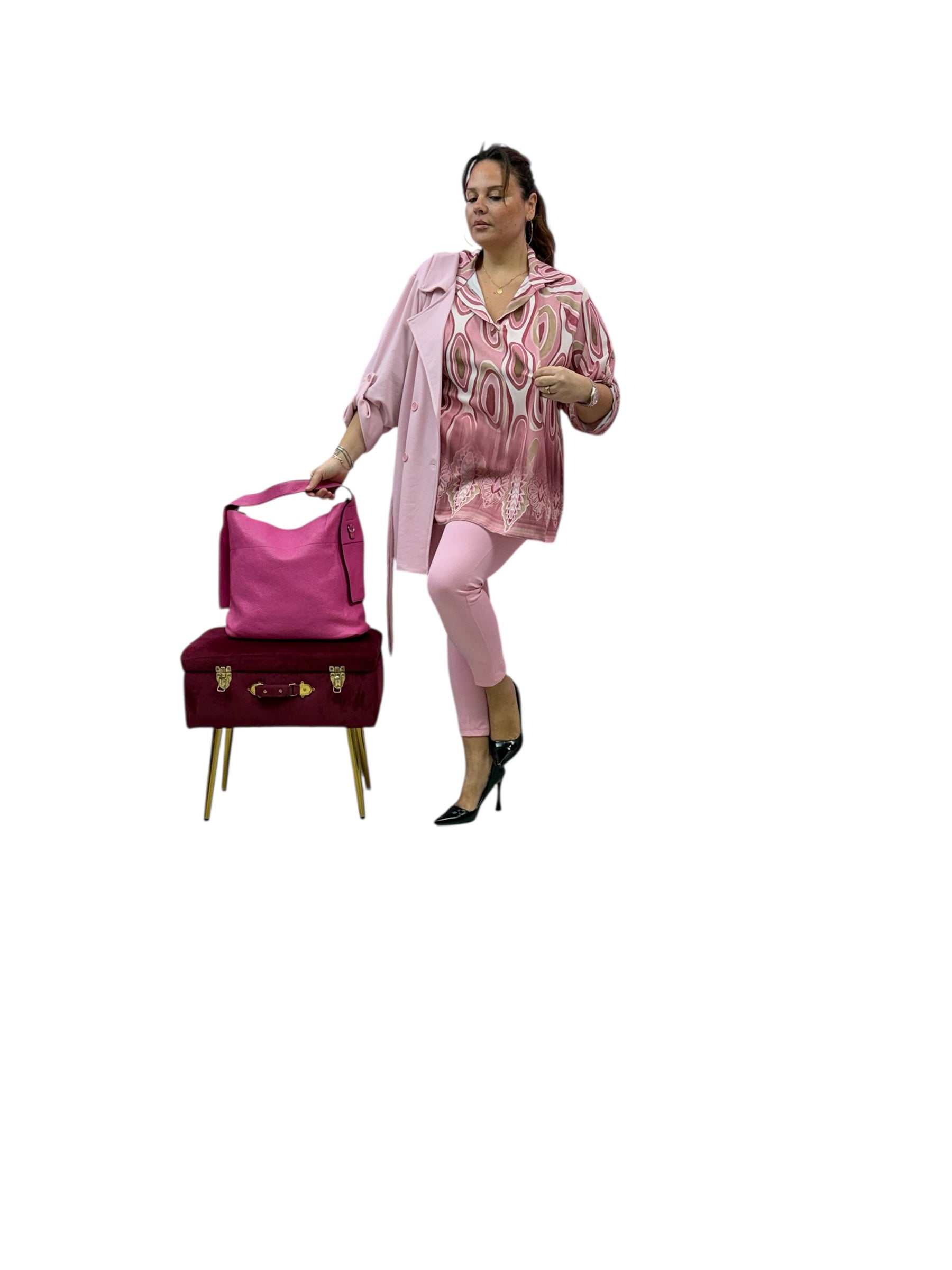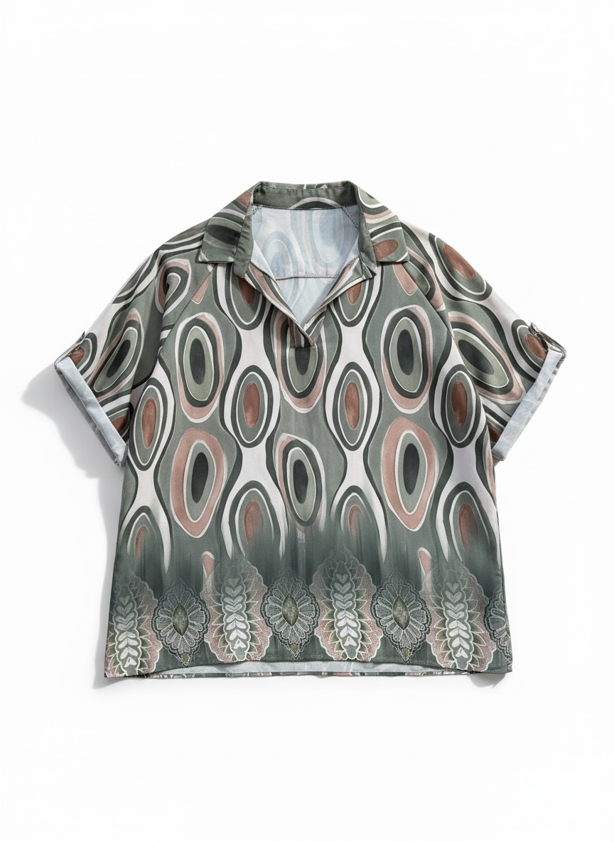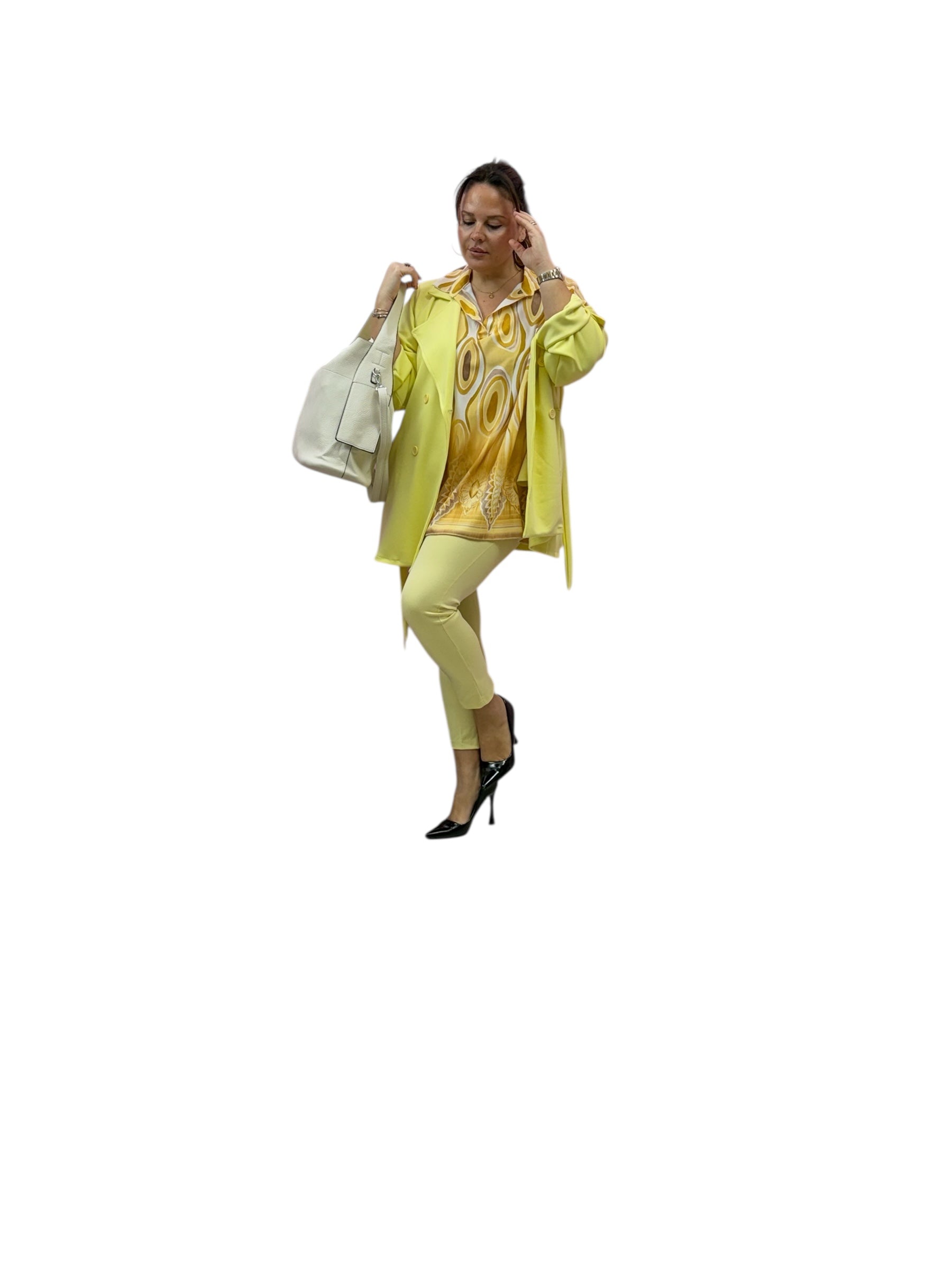 Casacca over fantasia con scollo a v e collo camicia con manica regolabile