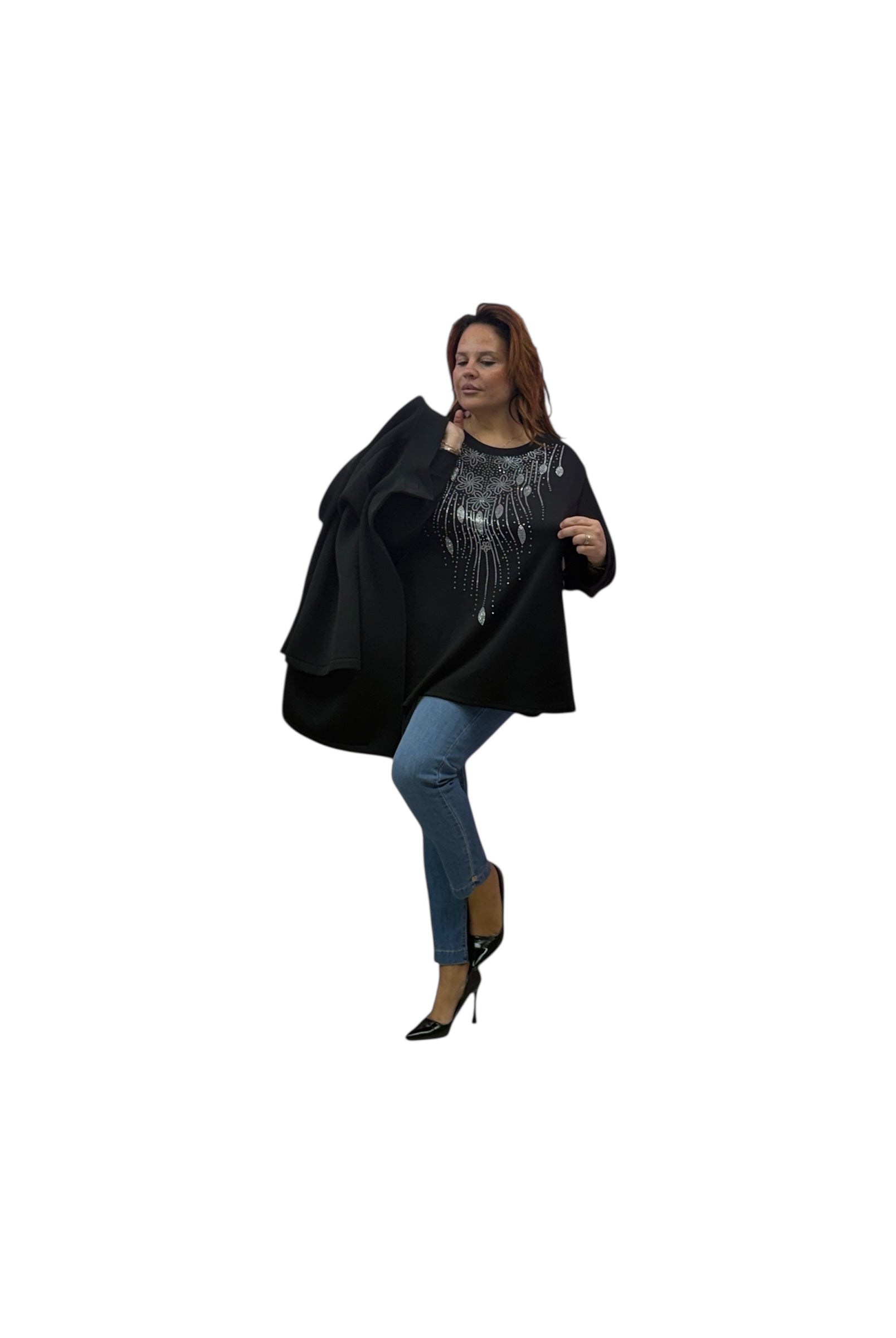 Casacca over fantasia lame' con scollo a v