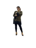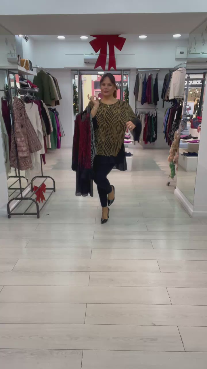 Casacca over in Jersey con disegno laminato e fasce in georgette