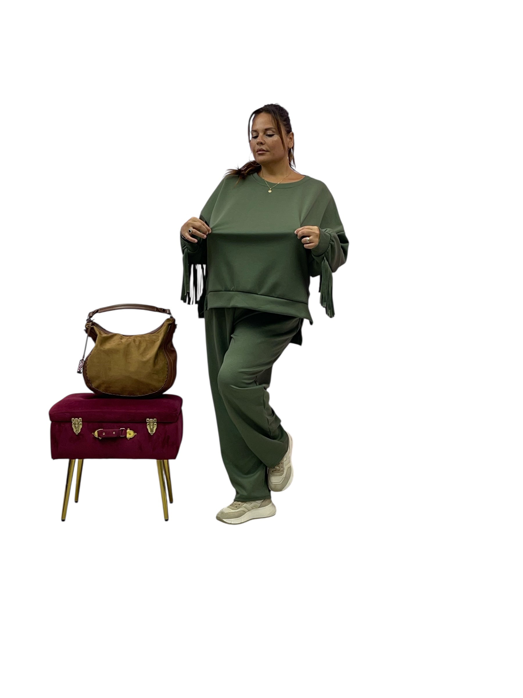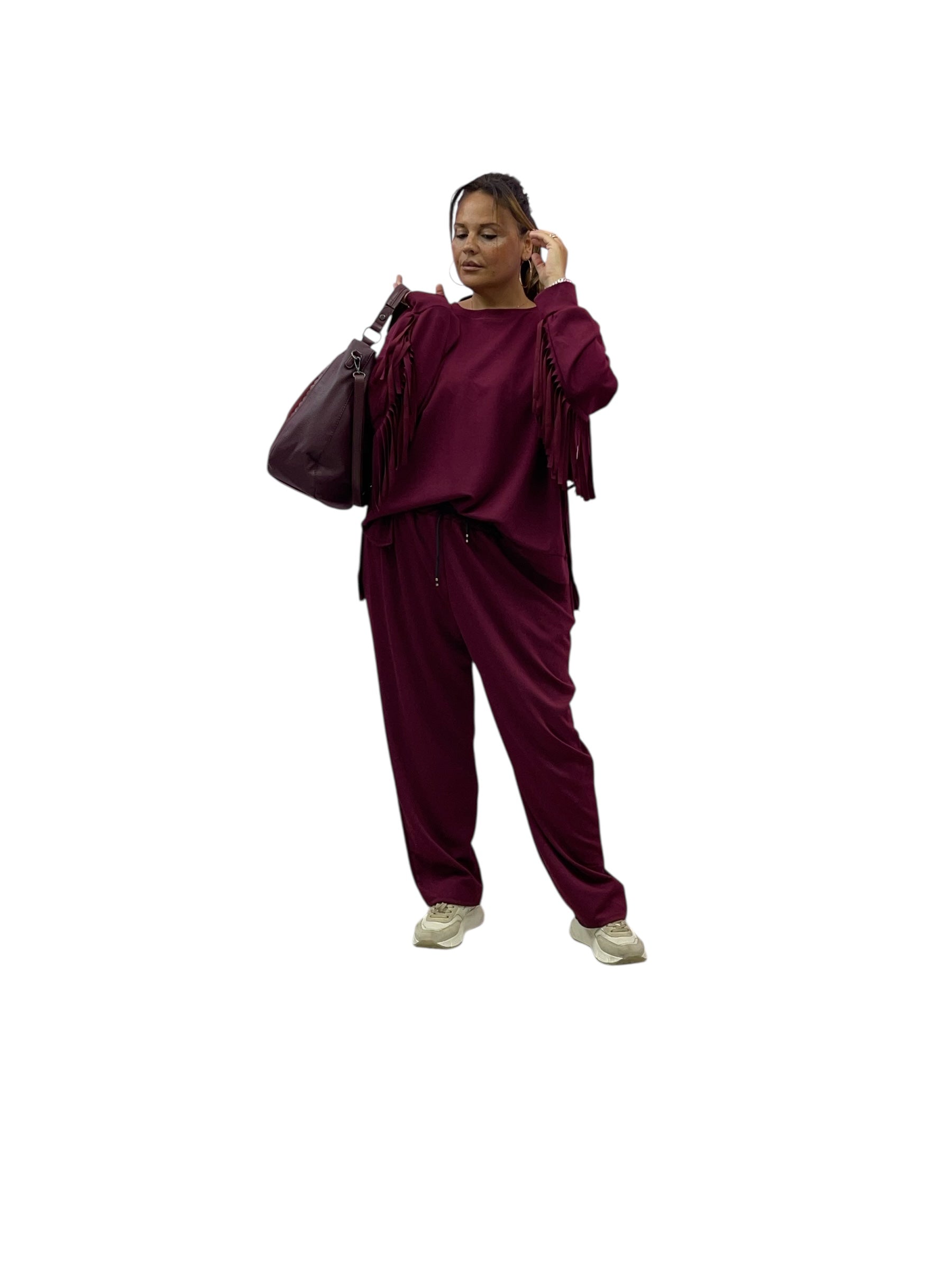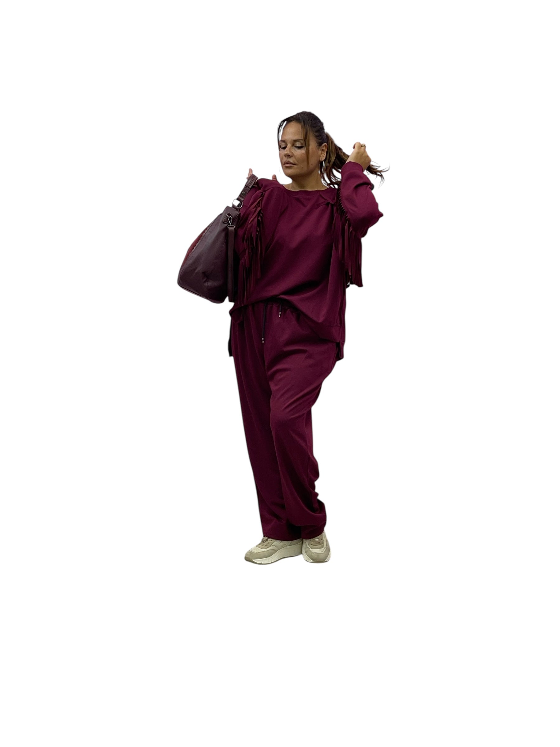 Completo tuta in felpa over con frange