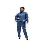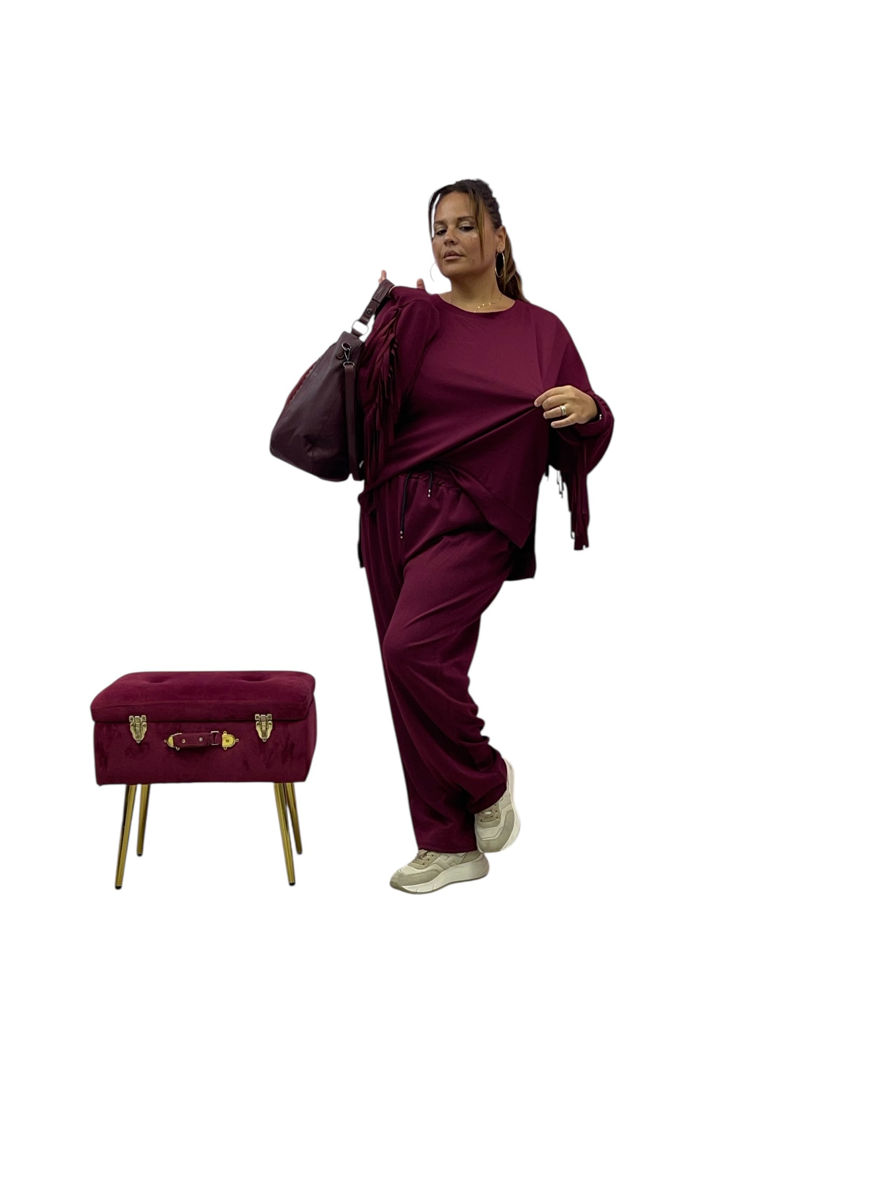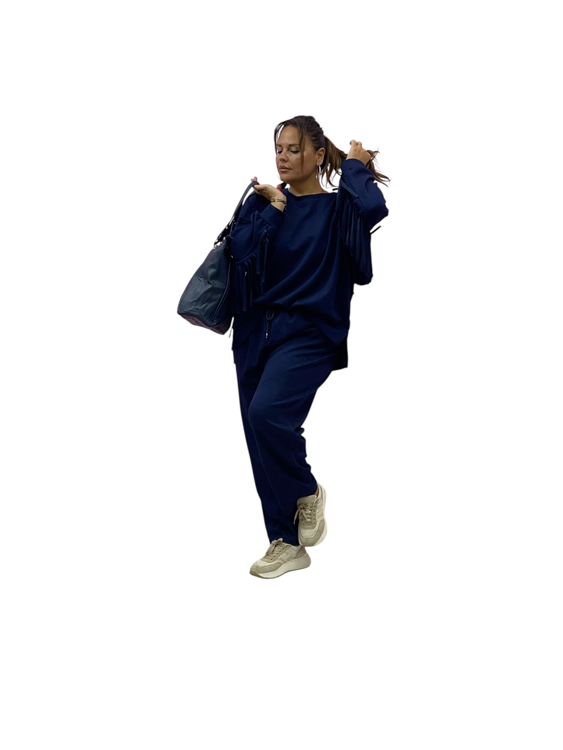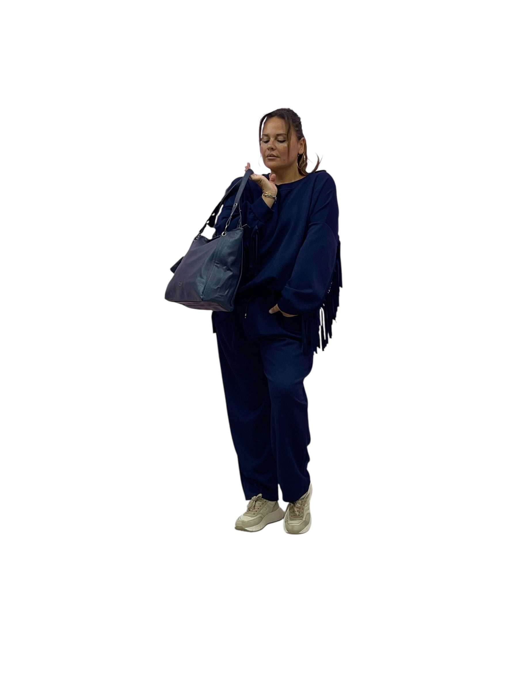 Completo tuta in felpa over con frange