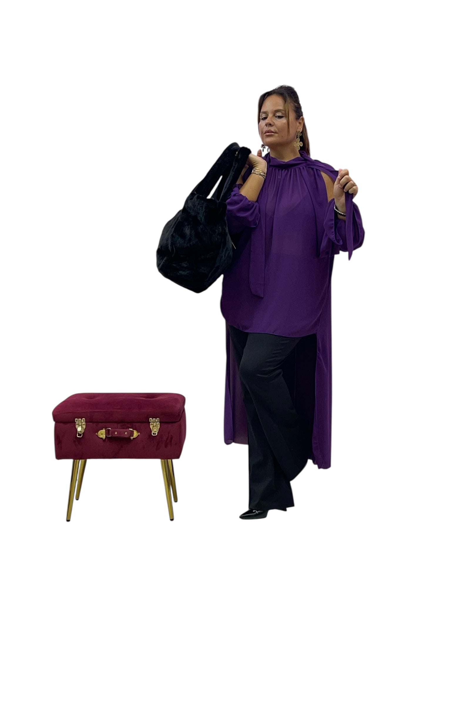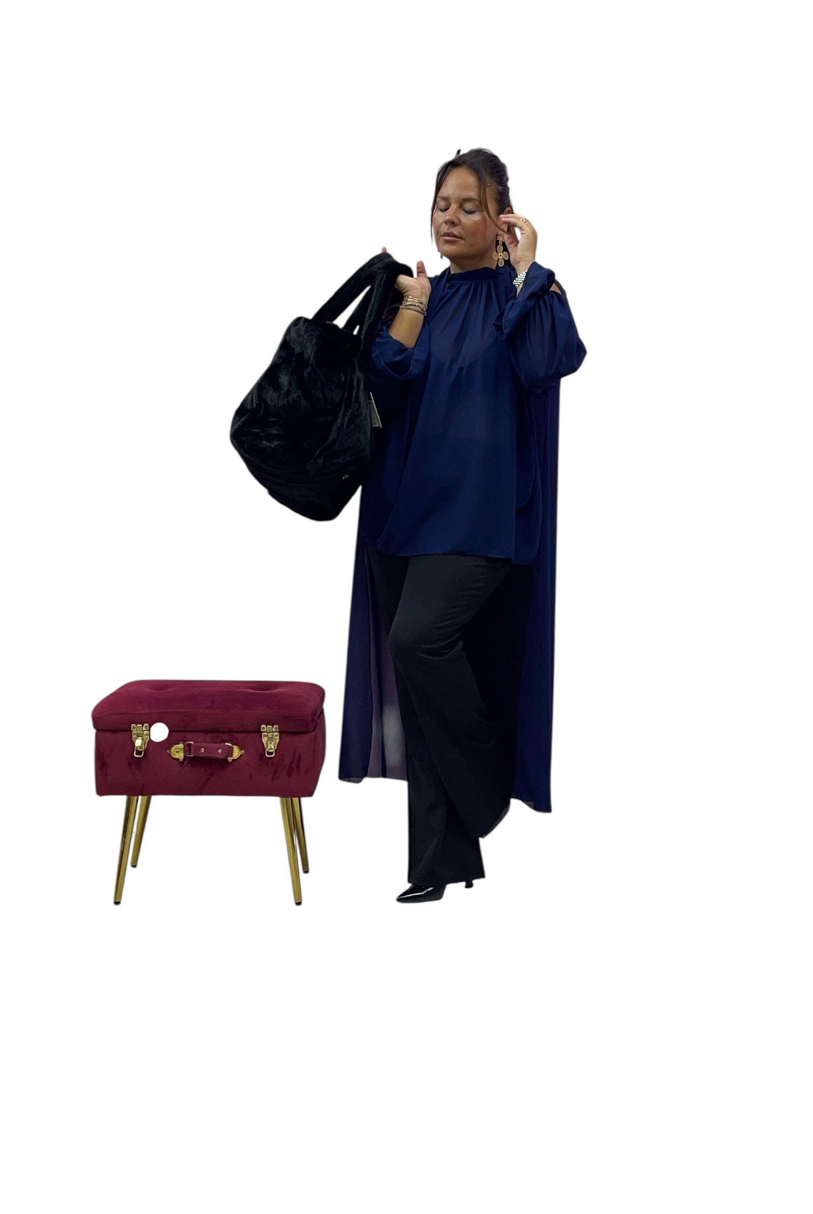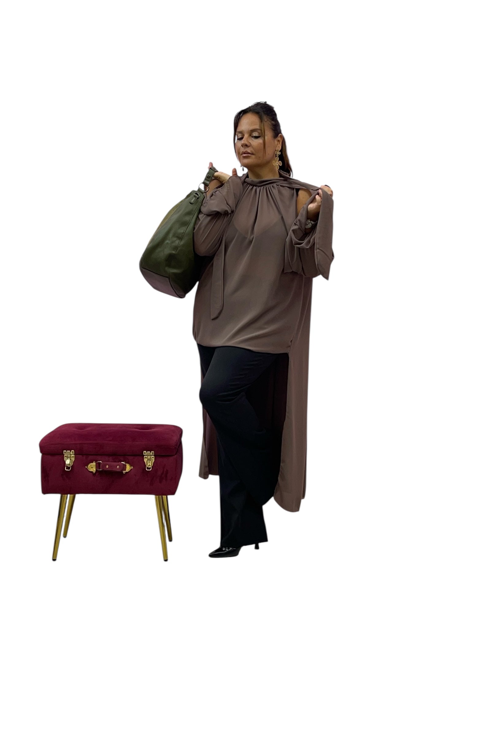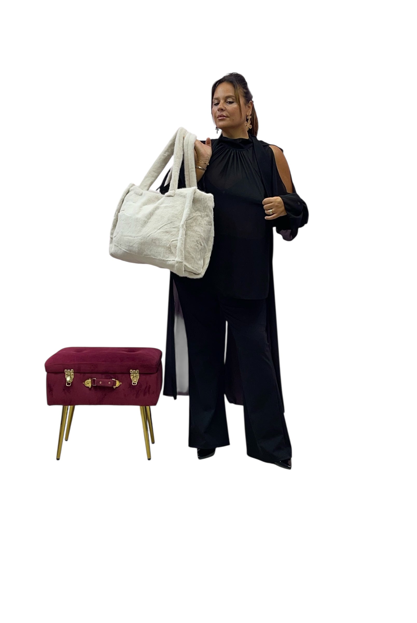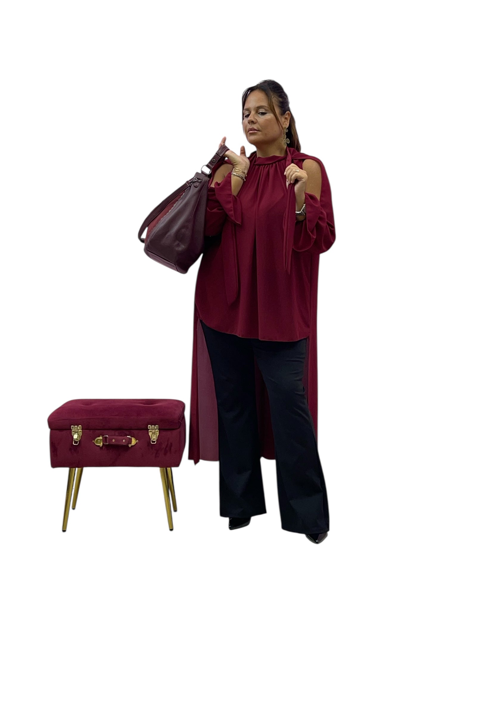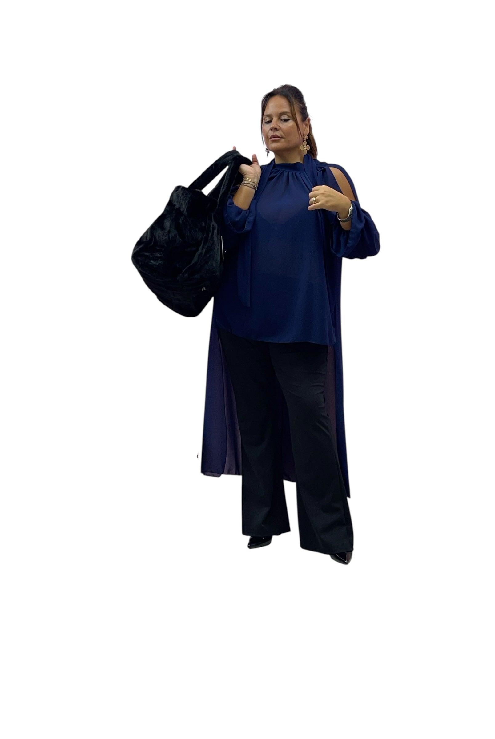 Completo in pizzo e velluto foderato con pantaloni palazzo a zampa ed elastico in vita