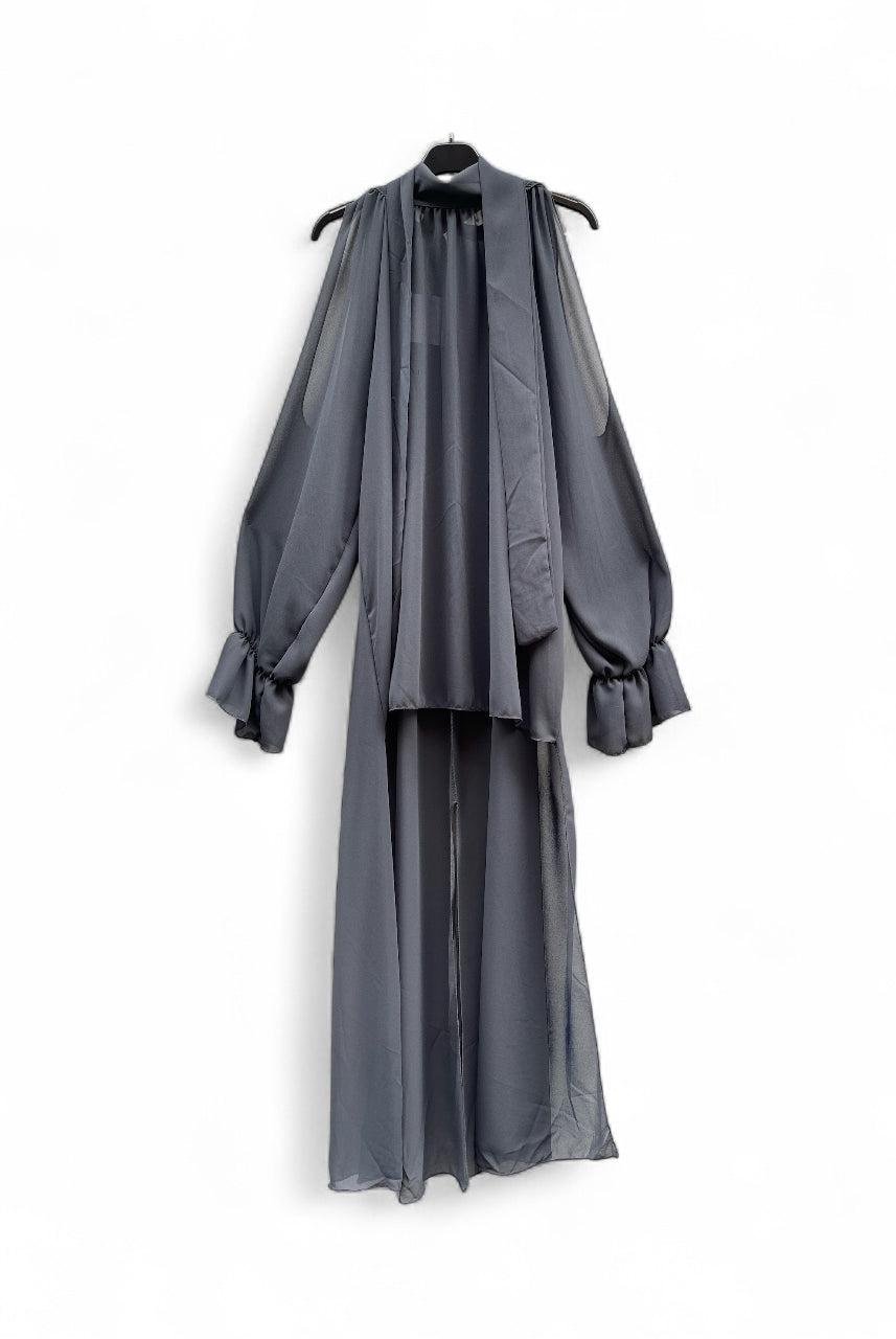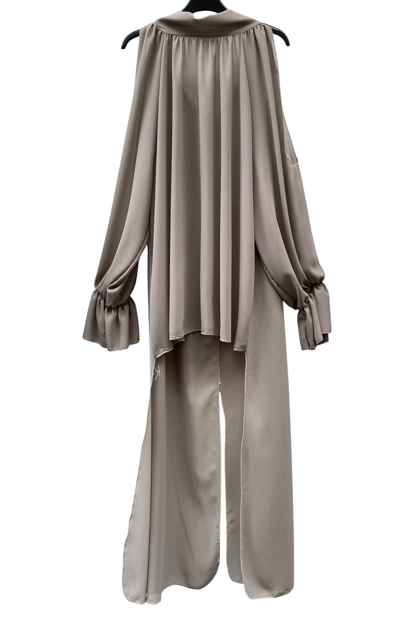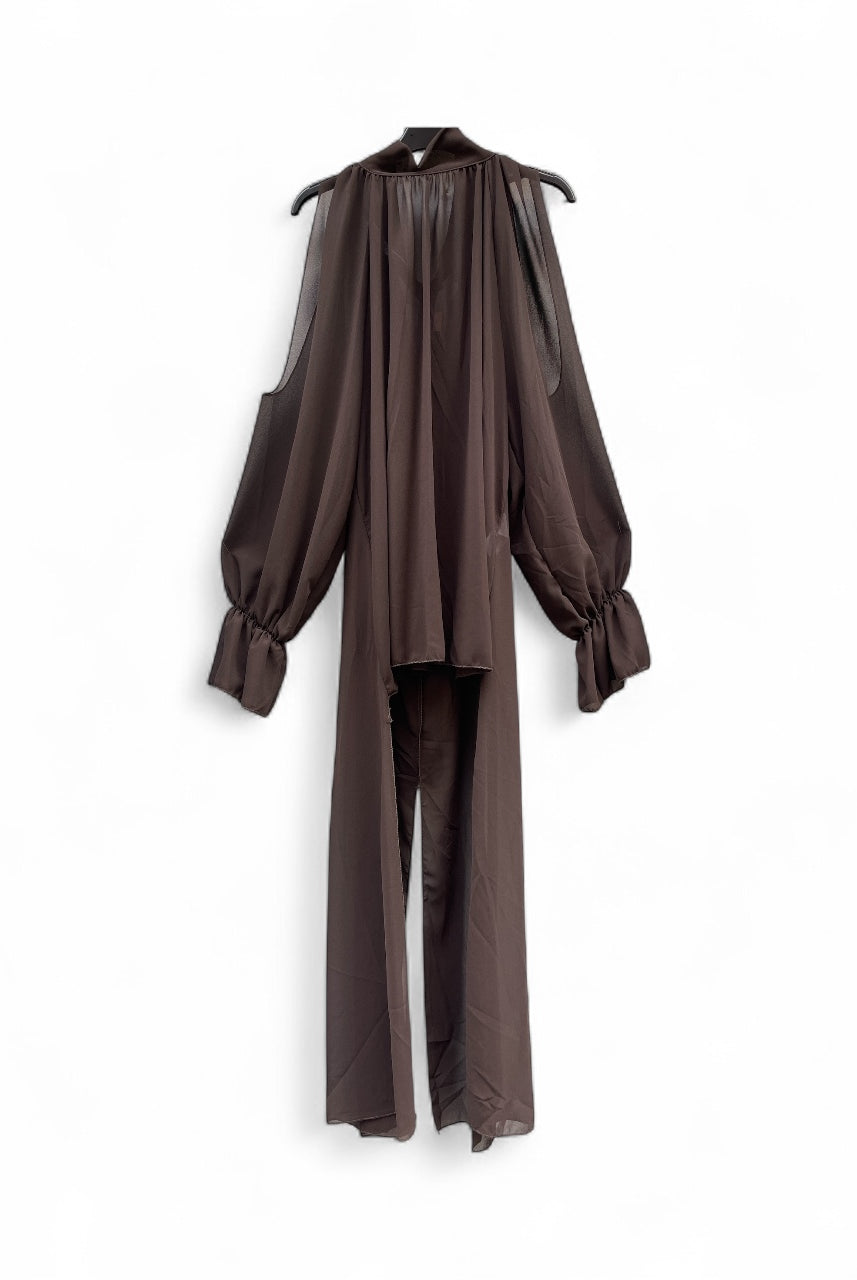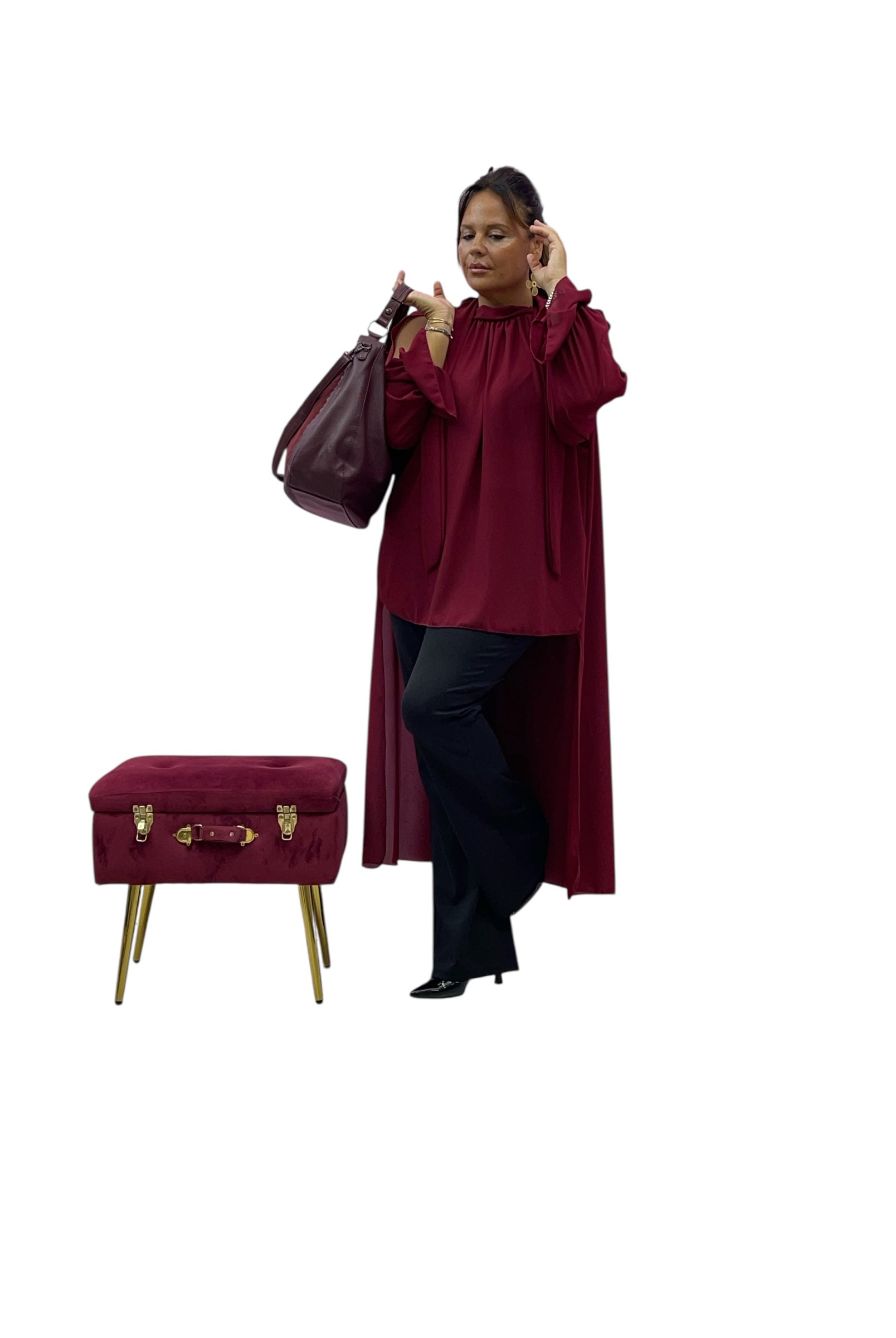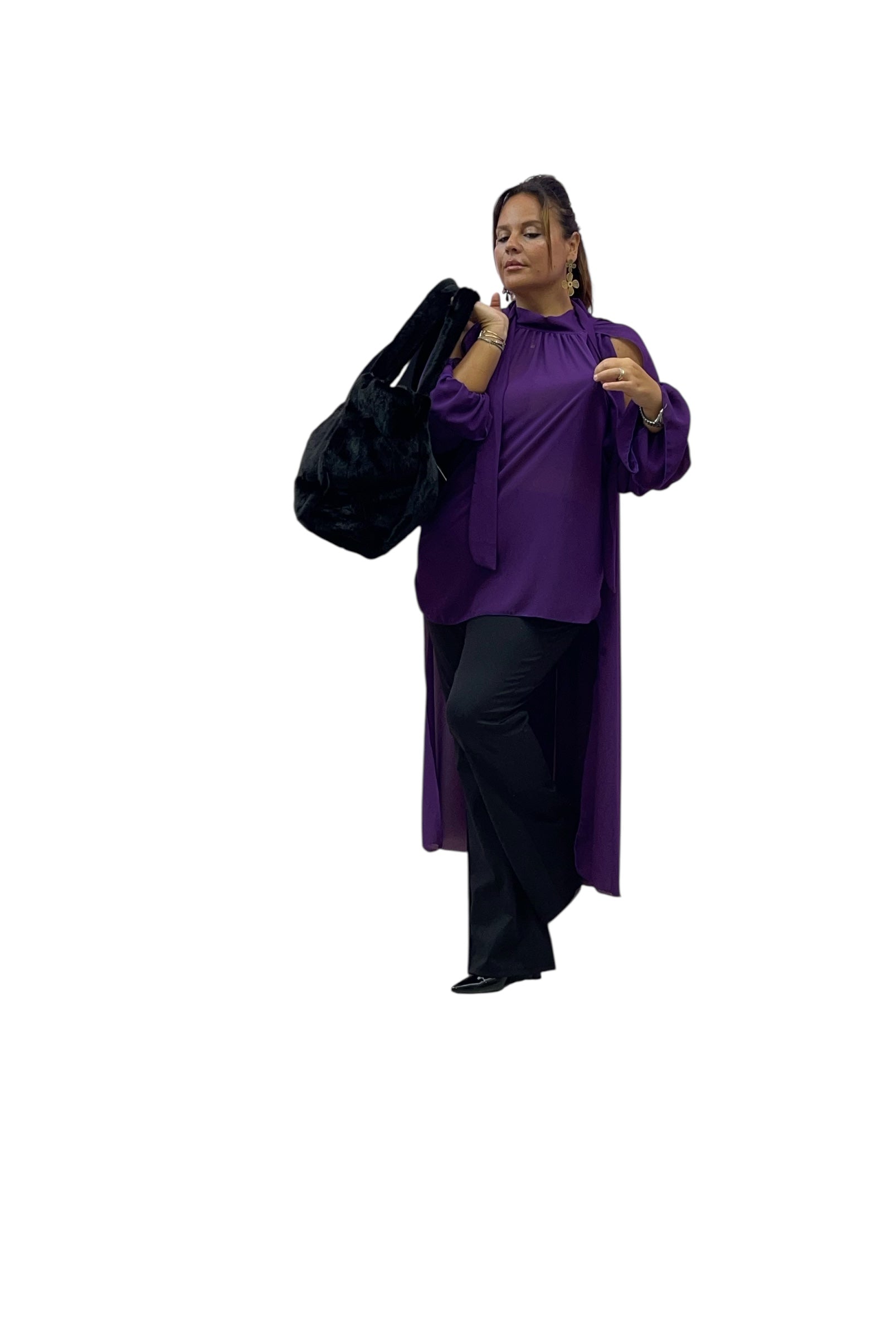 Completo in pizzo e velluto foderato con pantaloni palazzo a zampa ed elastico in vita