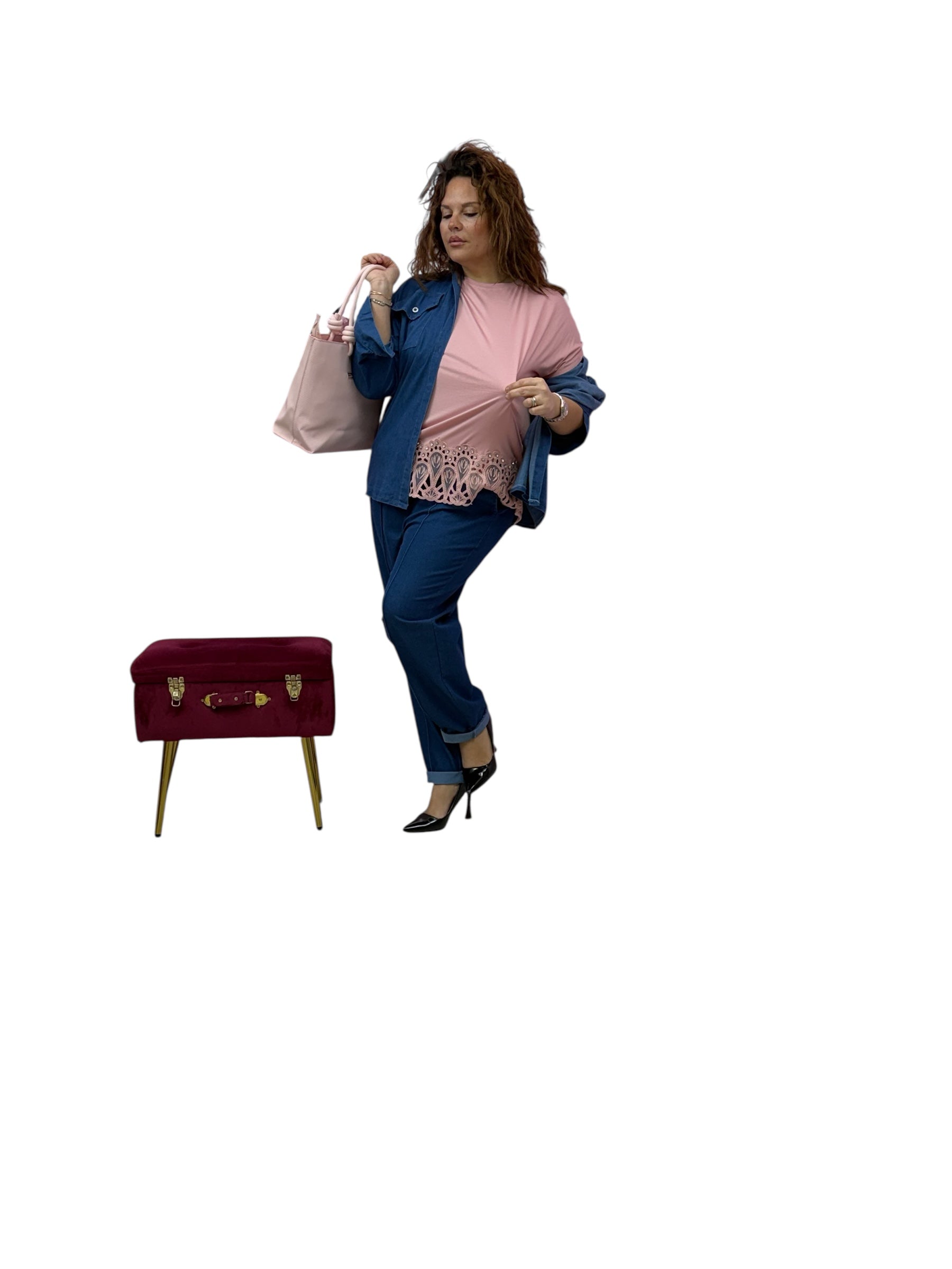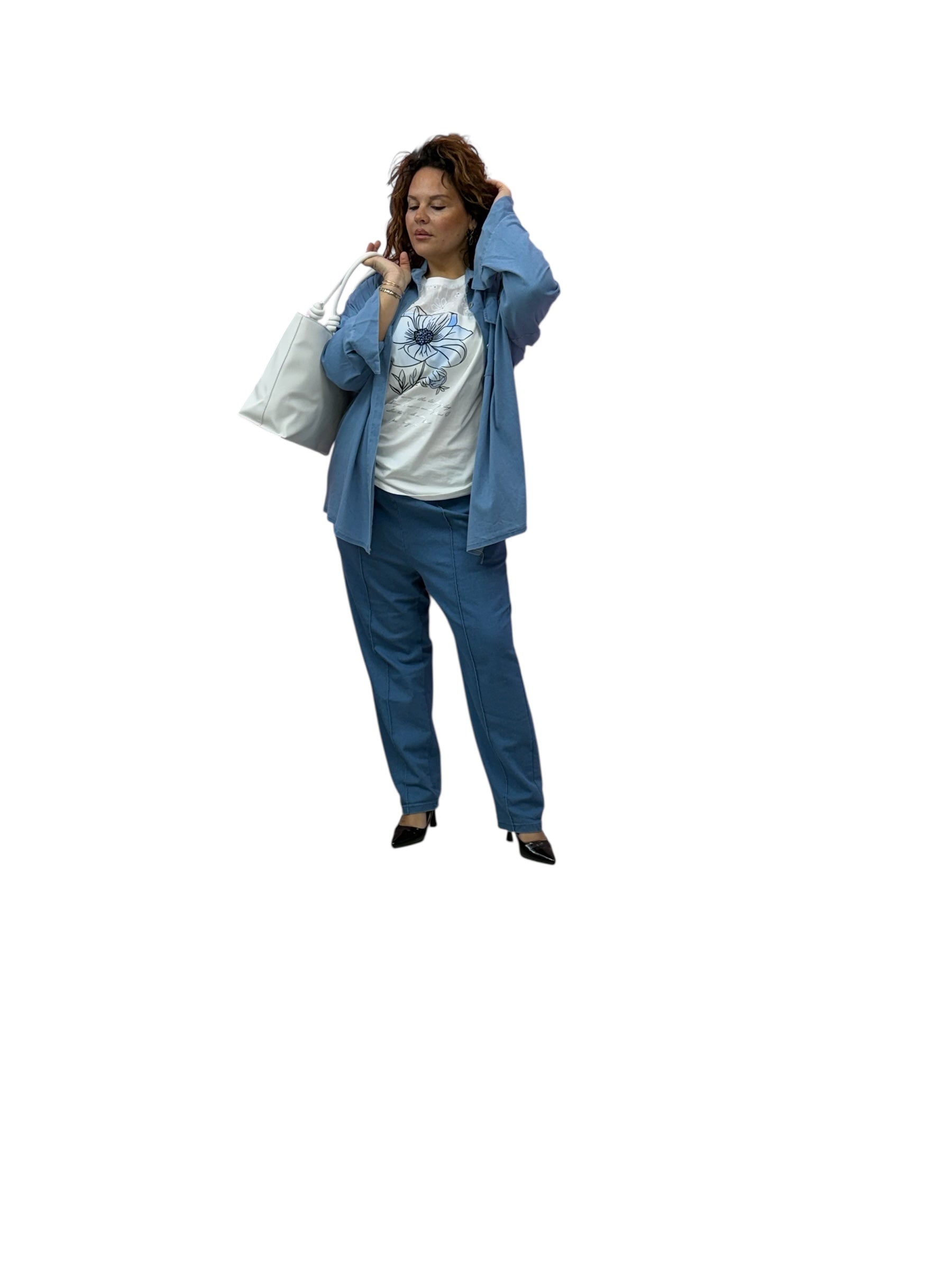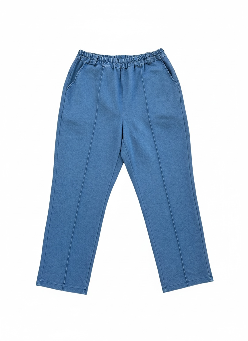 Jeans over palazzo con rigo centrale,tasca america ed elastico in vita