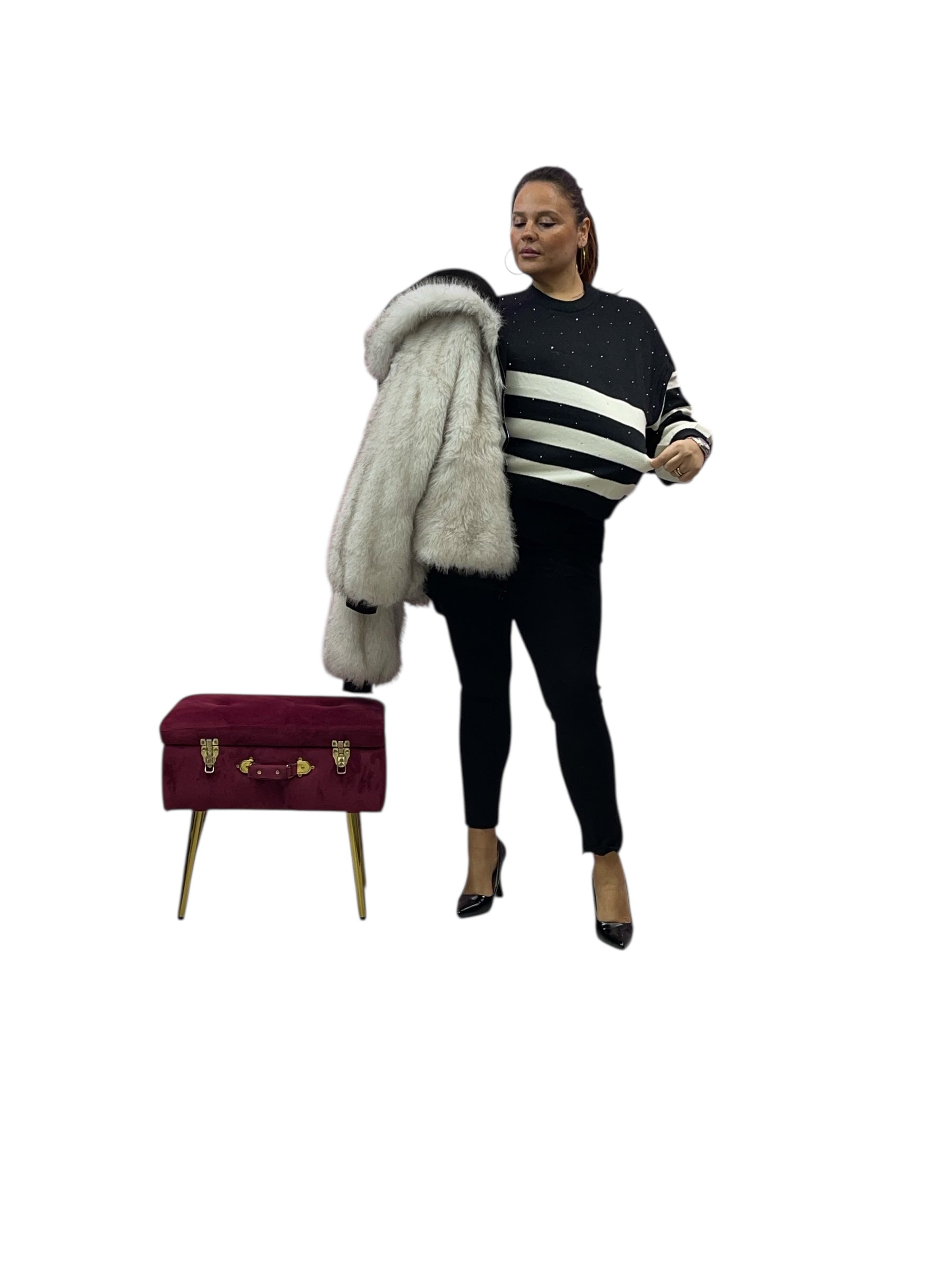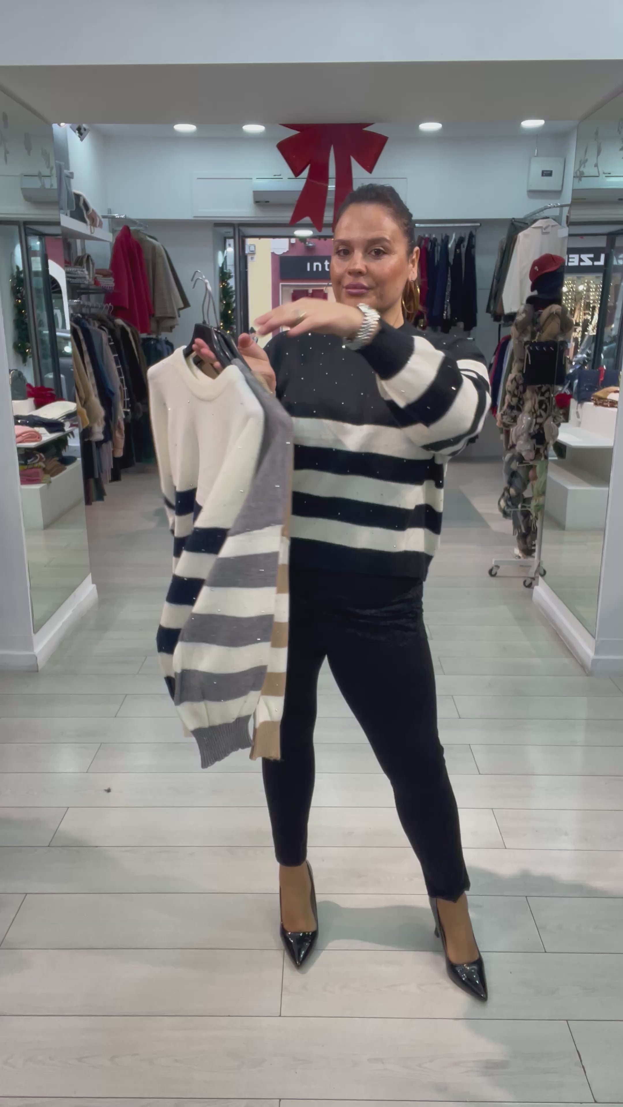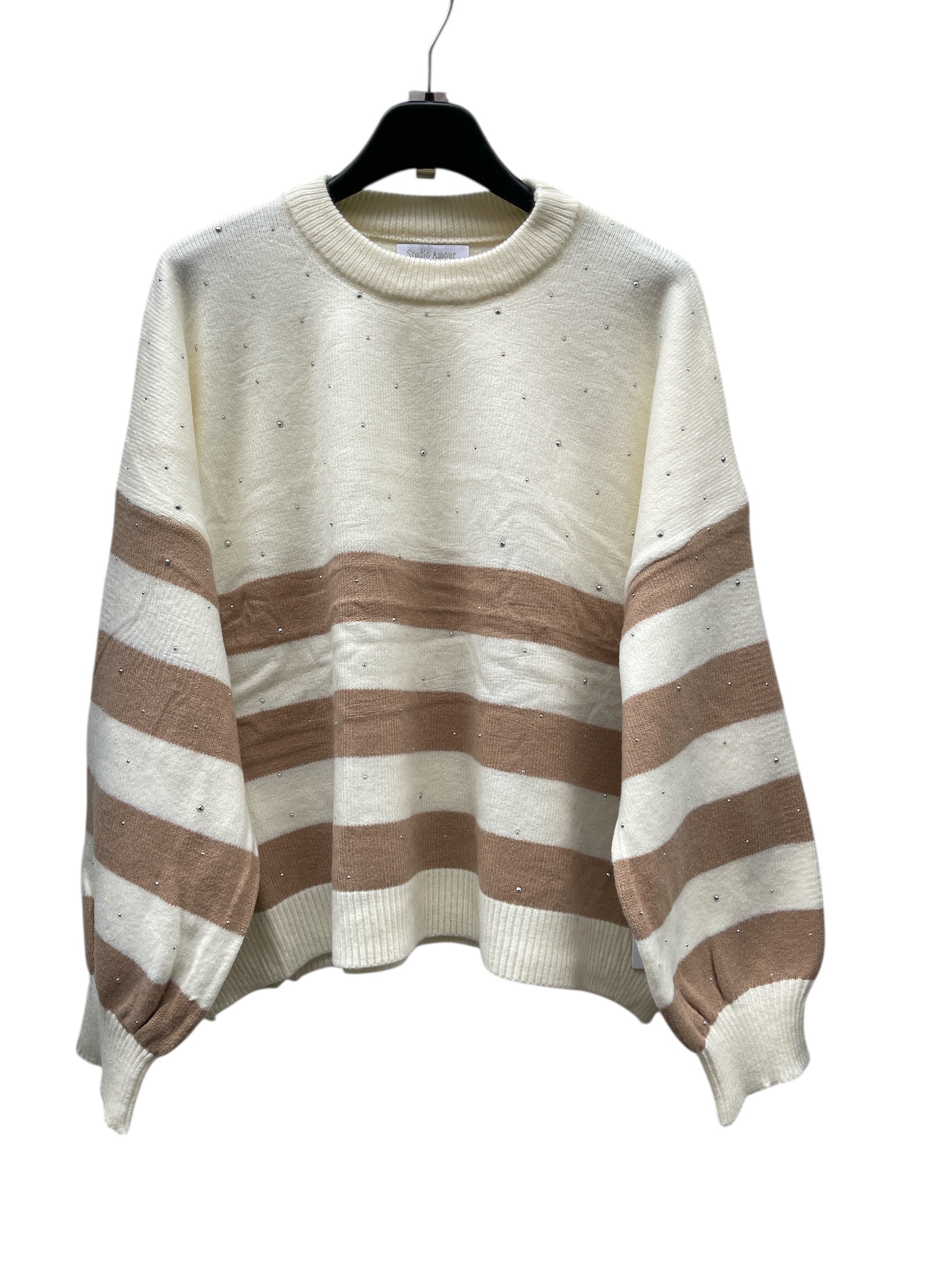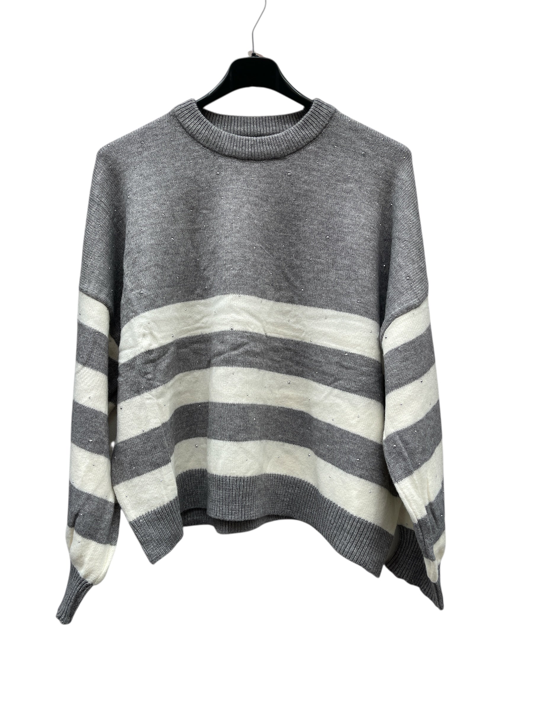 Maglioncino over modello morbido fasciato giro collo con brillantini