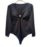 Maglia/body un jersey con scollo a v con applicazione oro